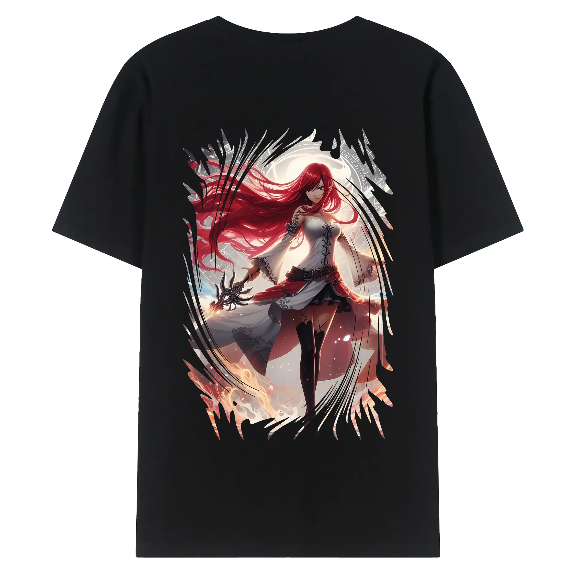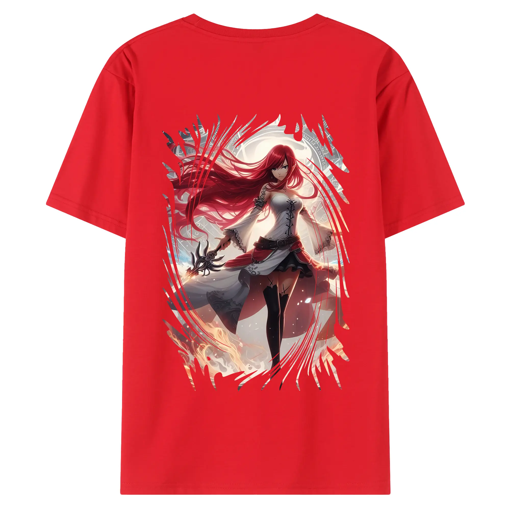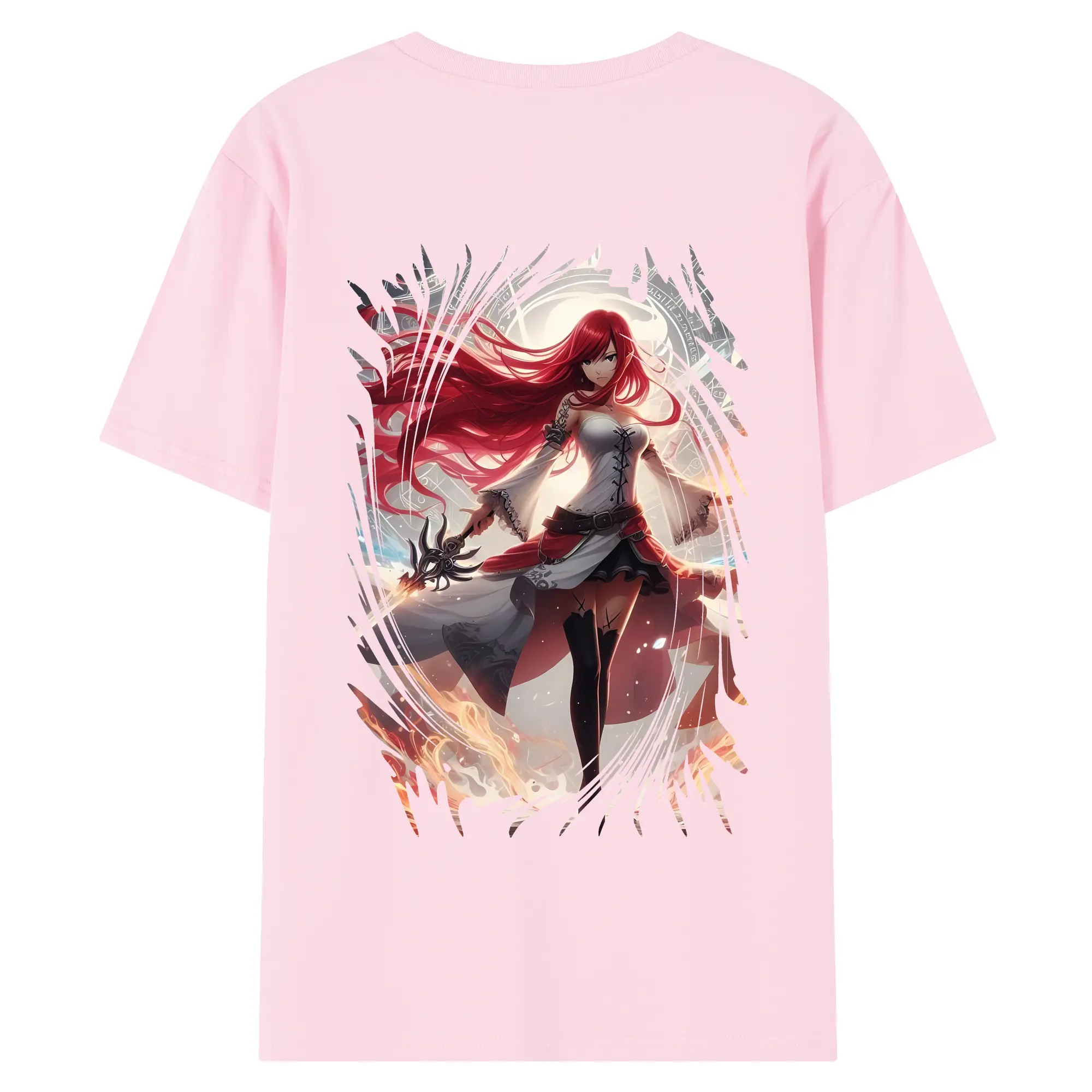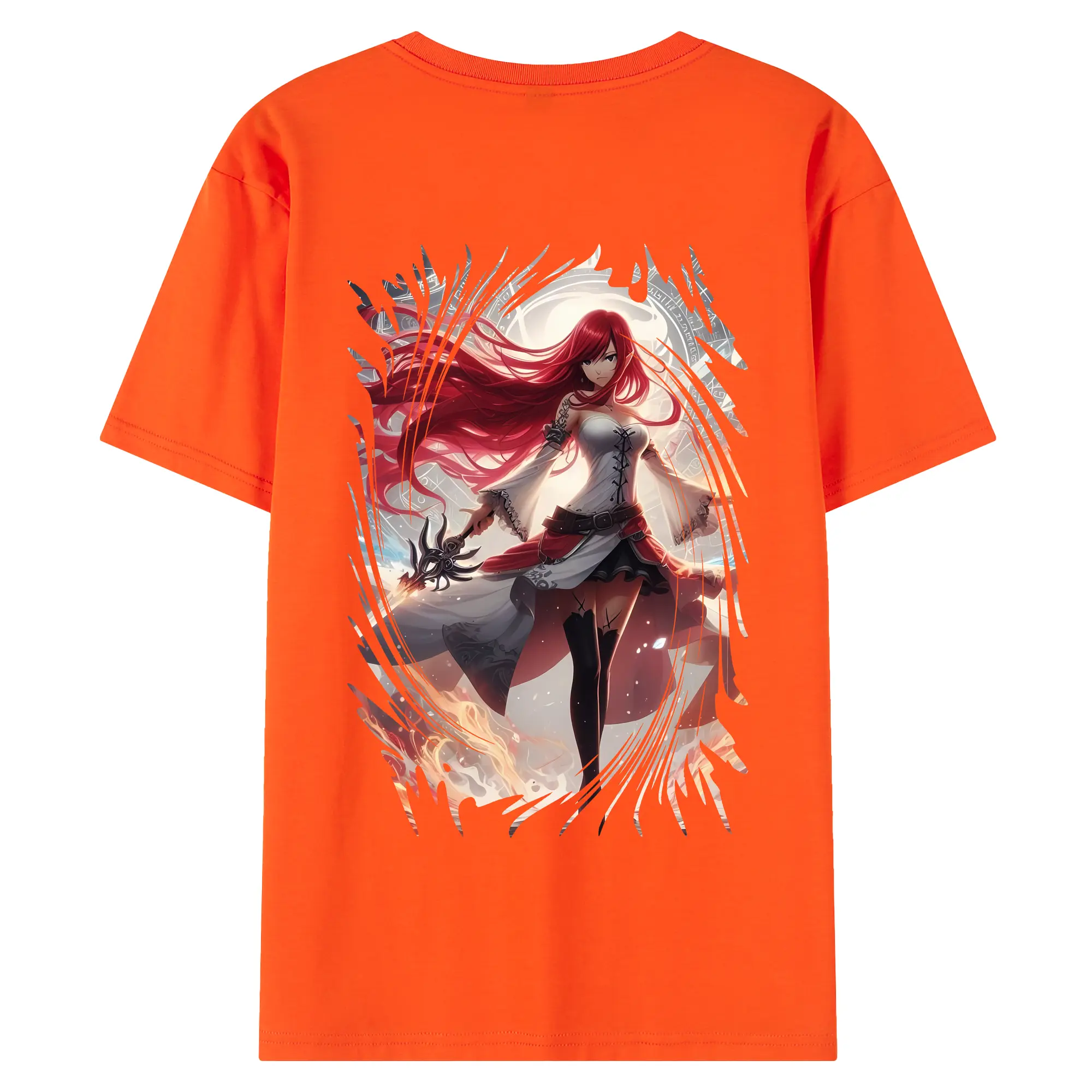 フェアリーテイル グッズ エルザ・スカーレット - 綿100% ヴィンテージ風 半袖Tシャツ ・ 背面プリント ・ 柔らか肌触り ・ 通気性 快適 ・ スポーツ カジュアル 外出用