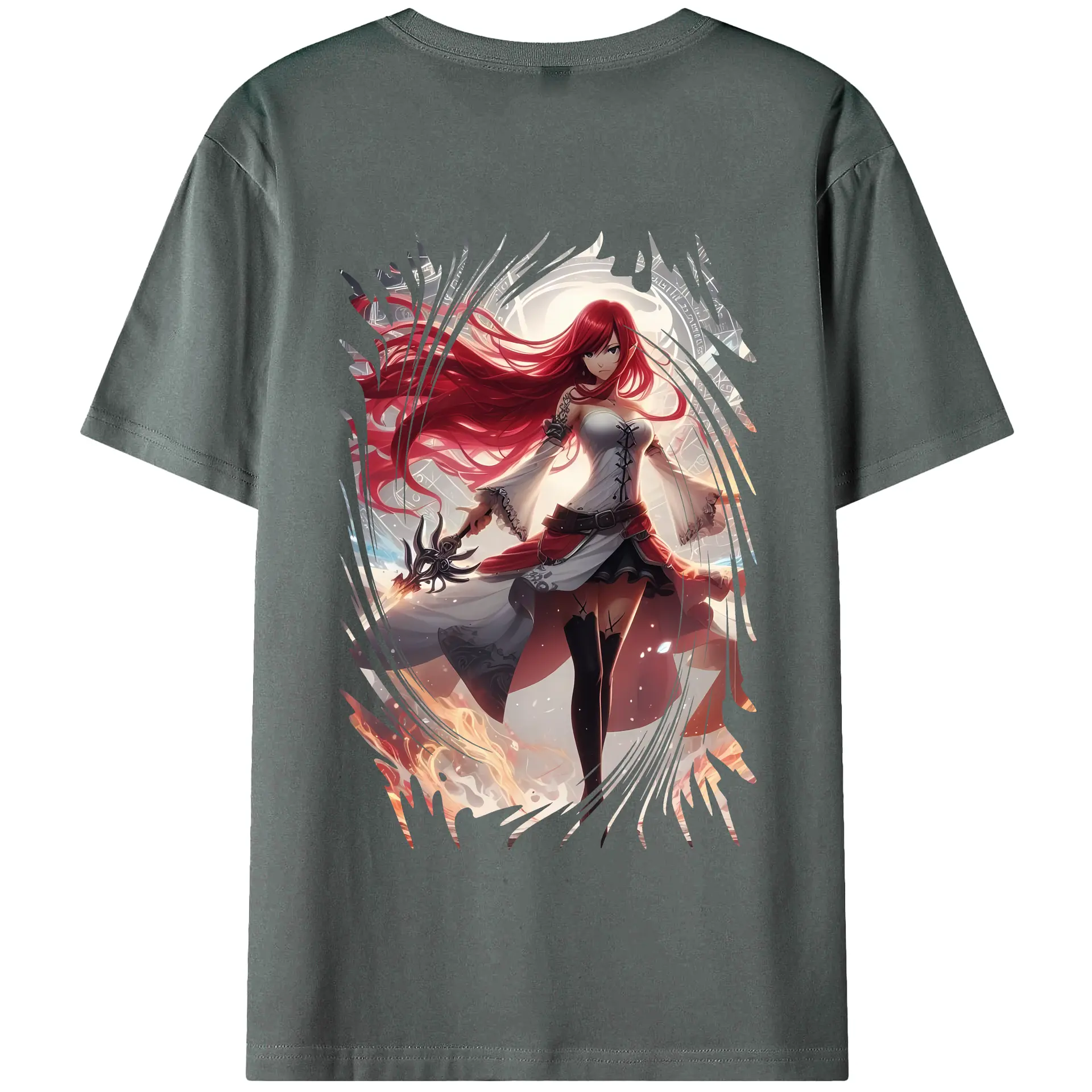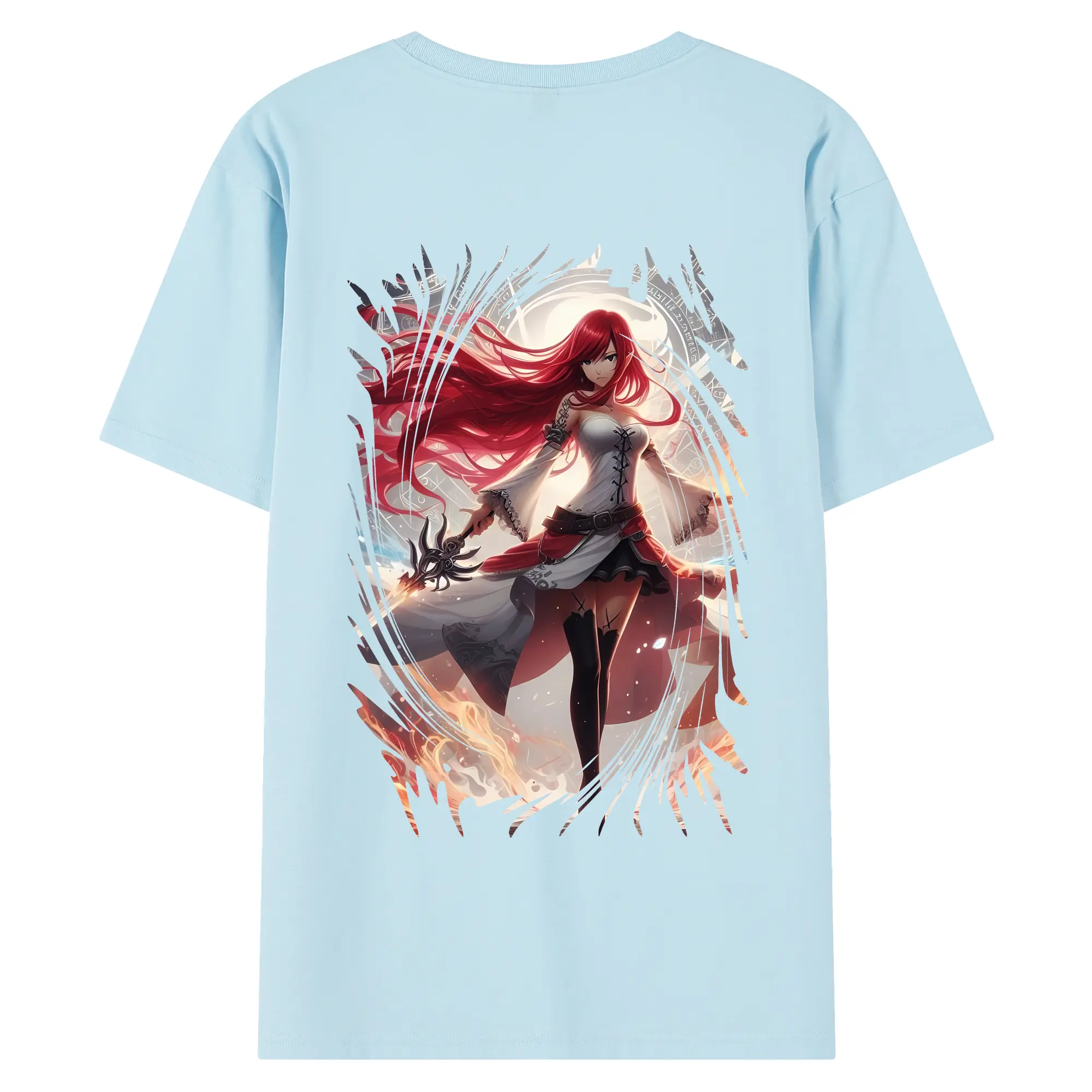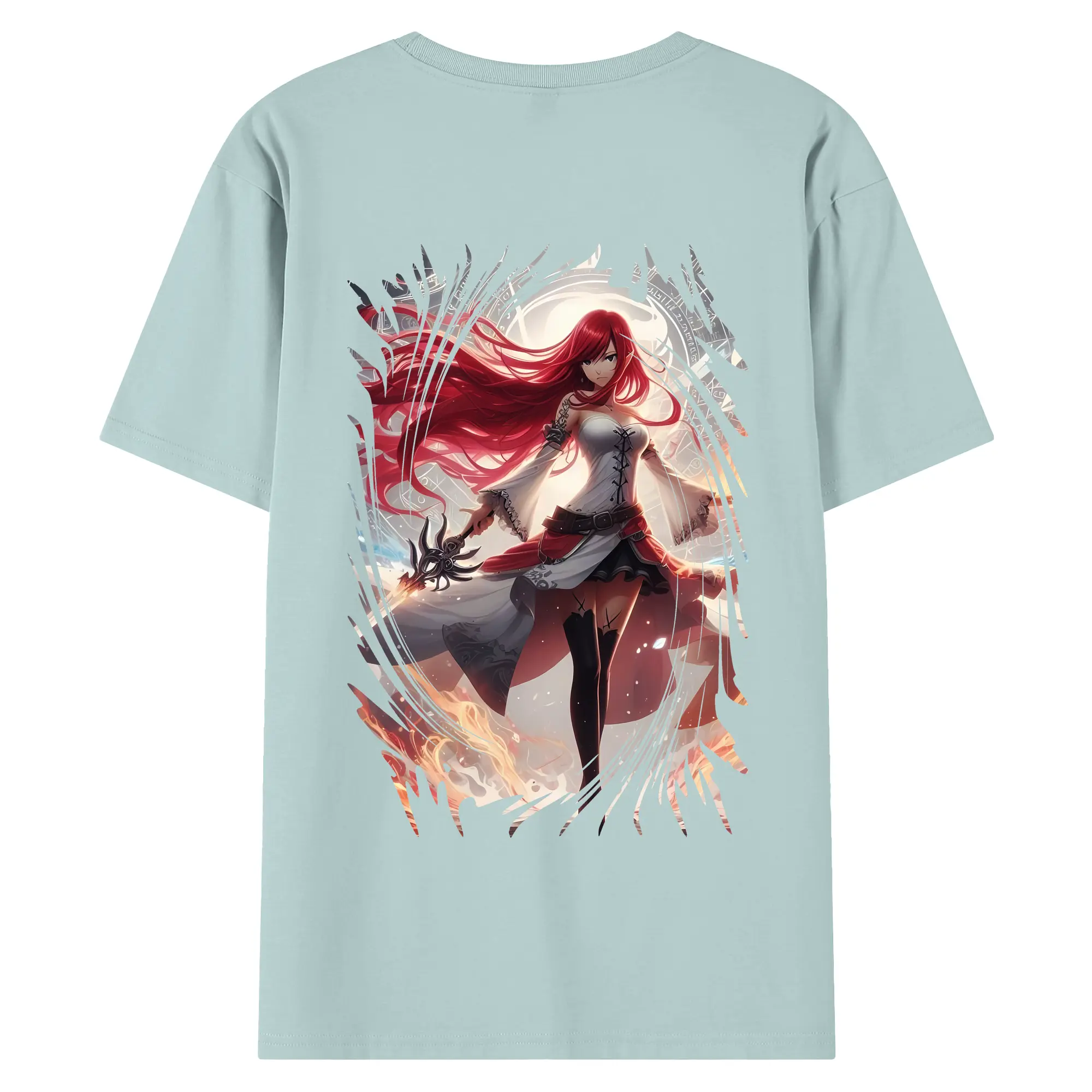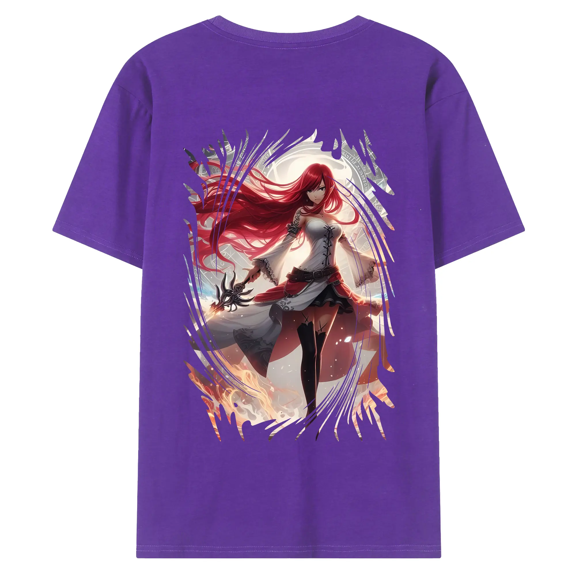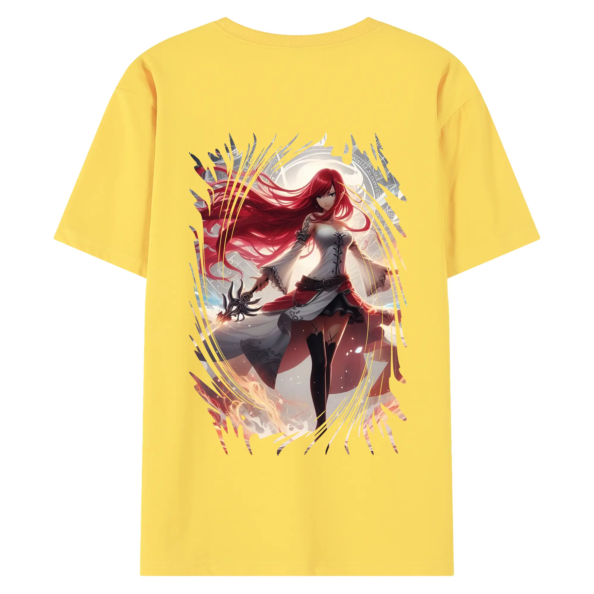 フェアリーテイル グッズ エルザ・スカーレット - 綿100% ヴィンテージ風 半袖Tシャツ ・ 背面プリント ・ 柔らか肌触り ・ 通気性 快適 ・ スポーツ カジュアル 外出用
