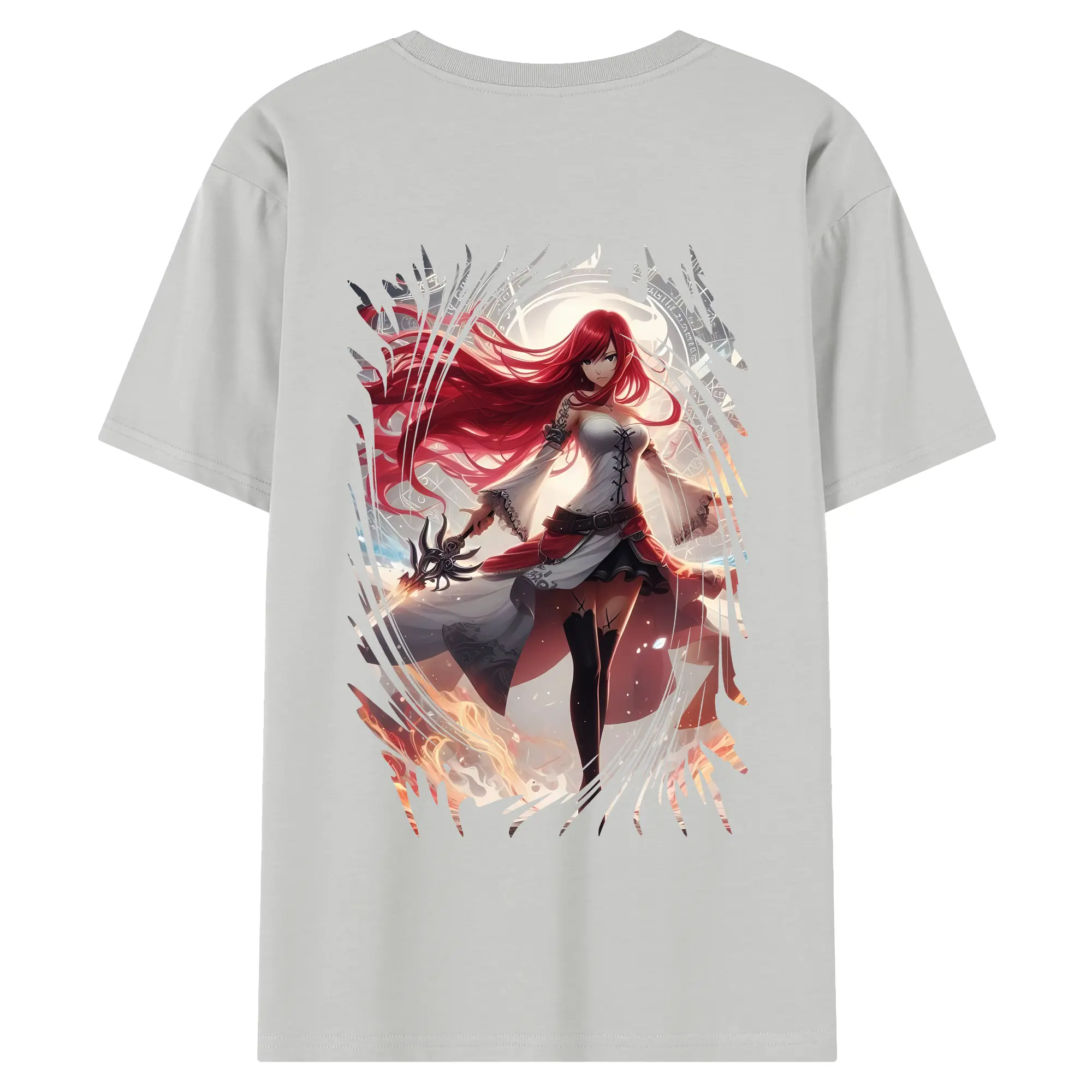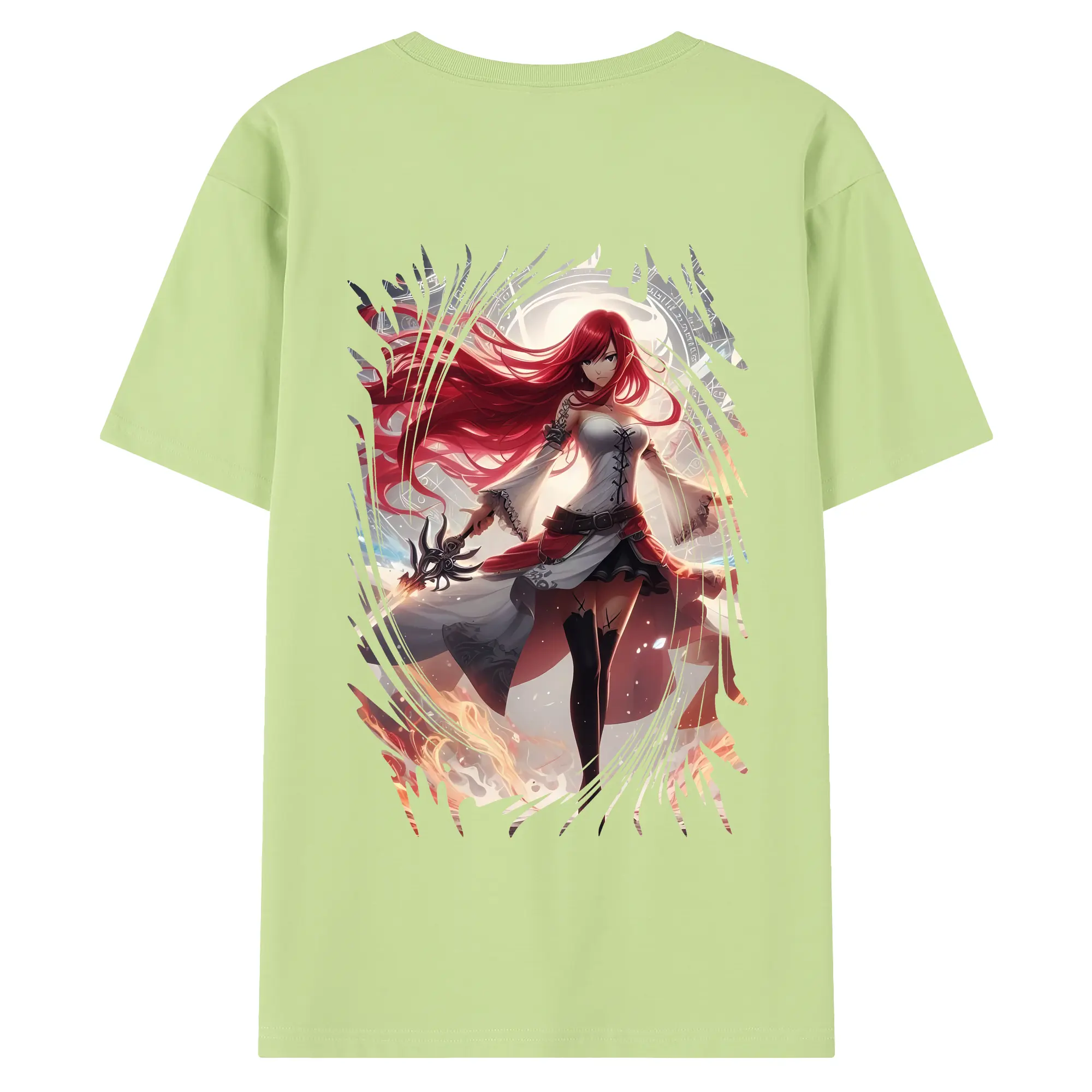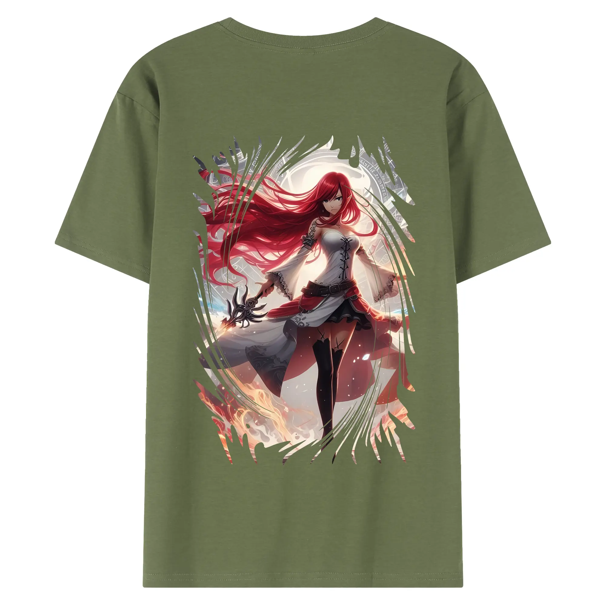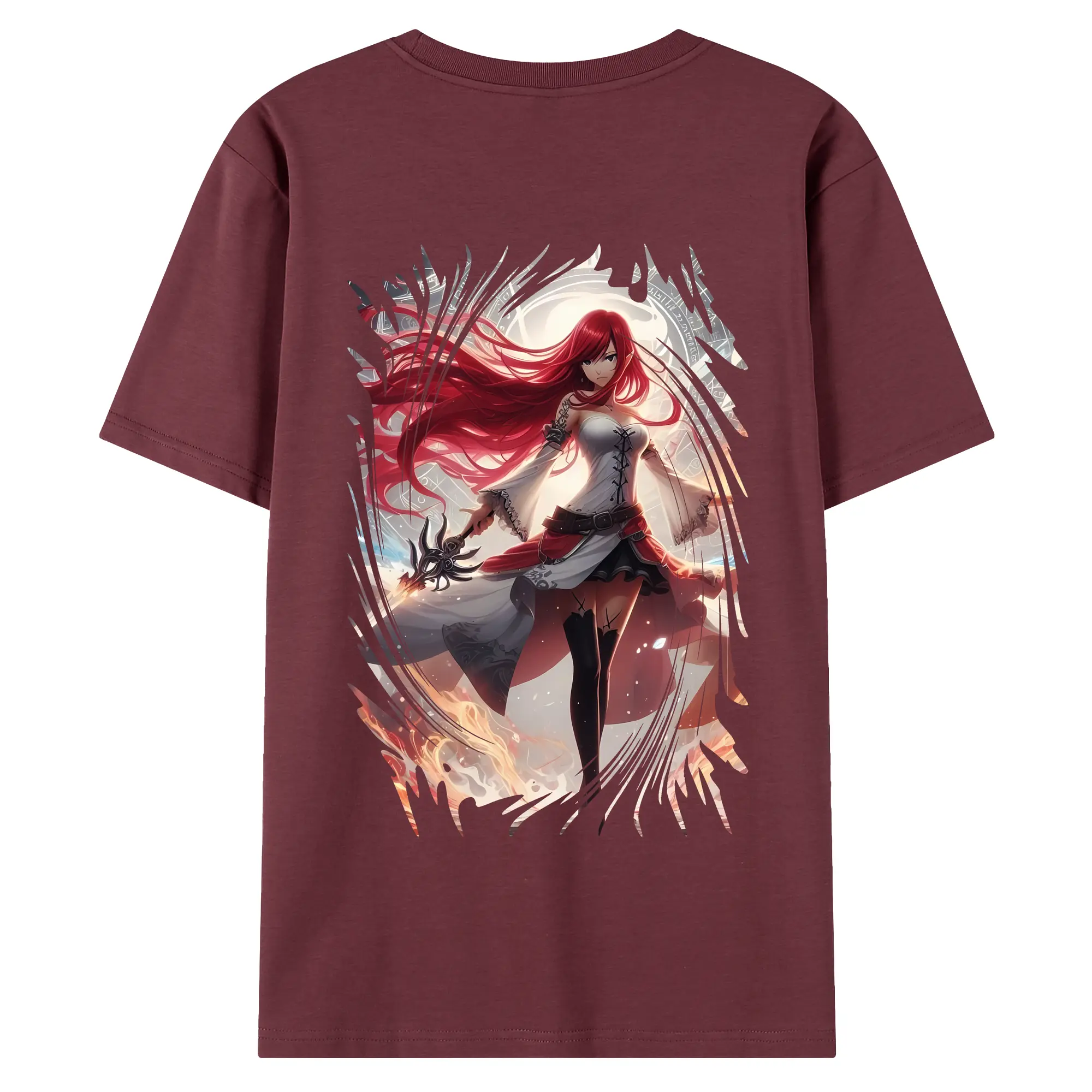 フェアリーテイル グッズ エルザ・スカーレット - 綿100% ヴィンテージ風 半袖Tシャツ ・ 背面プリント ・ 柔らか肌触り ・ 通気性 快適 ・ スポーツ カジュアル 外出用