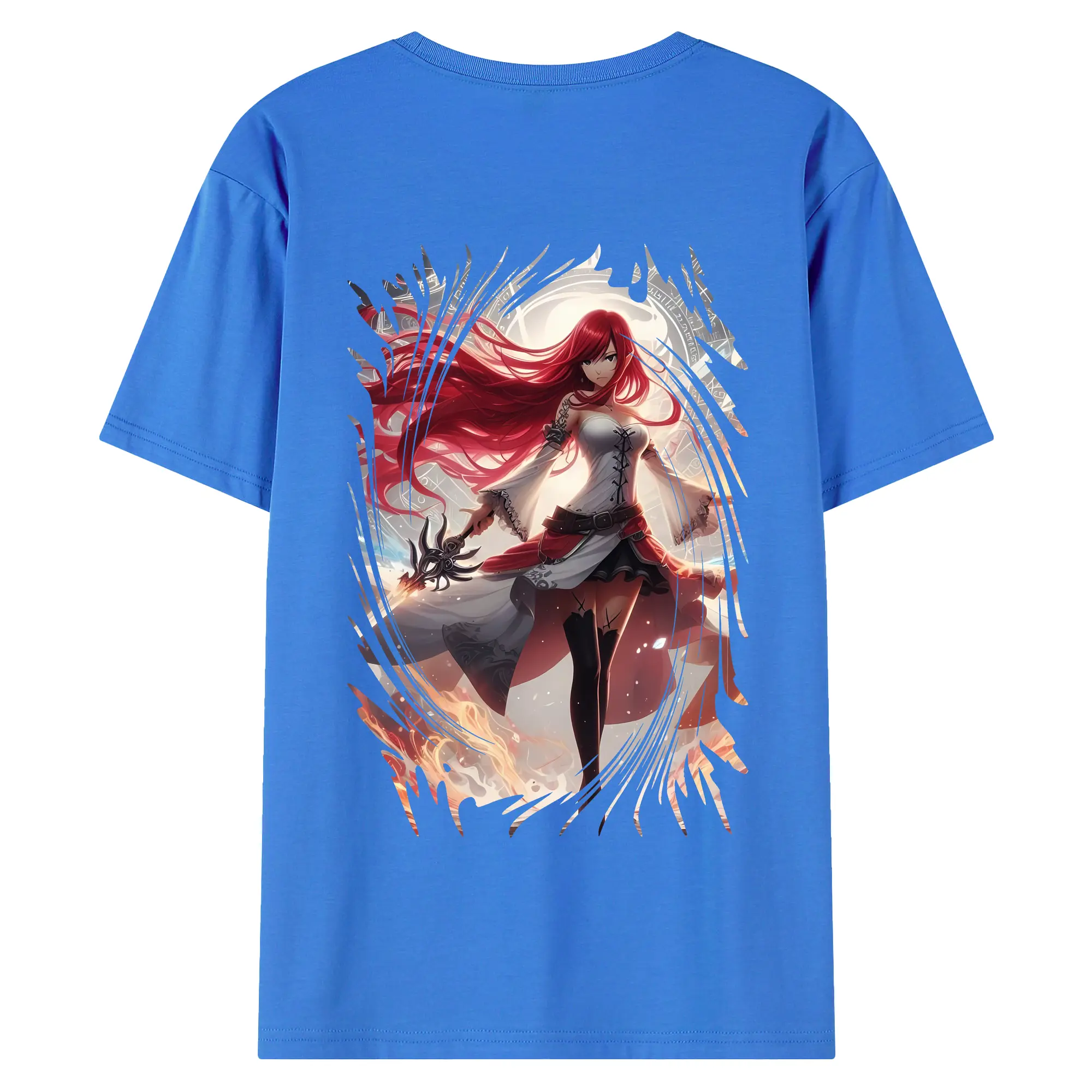 フェアリーテイル グッズ エルザ・スカーレット - 綿100% 半袖Tシャツ ・ フロントプリント ・ 快適 通気性 ・ 日常使い 散歩 スポーツ用
