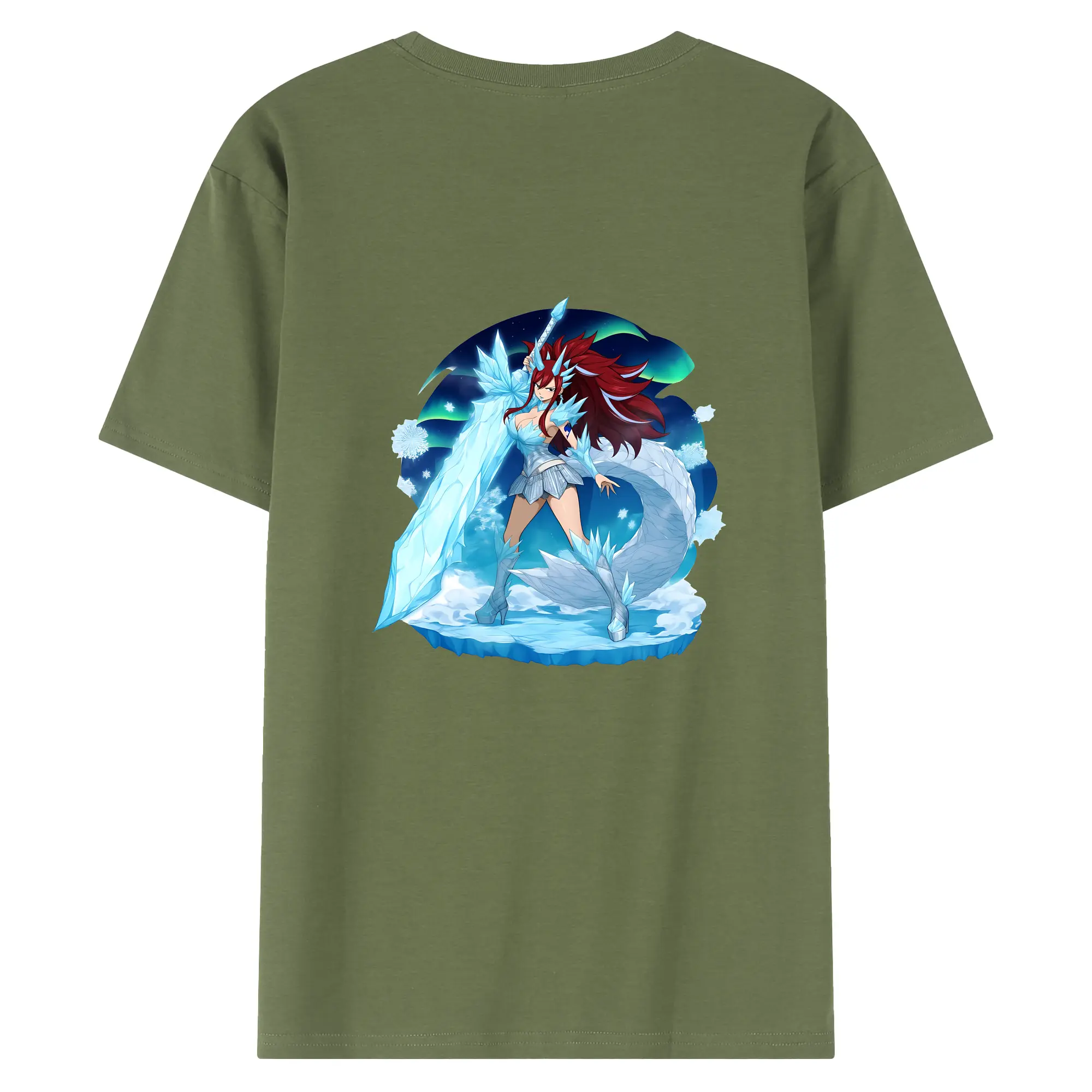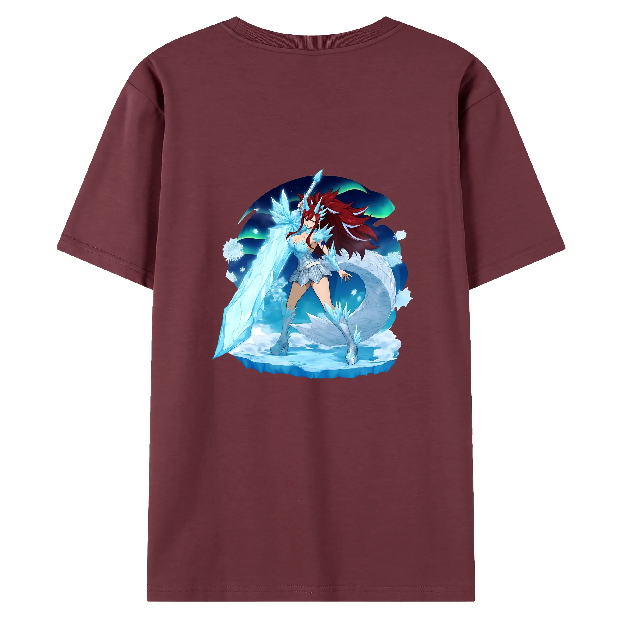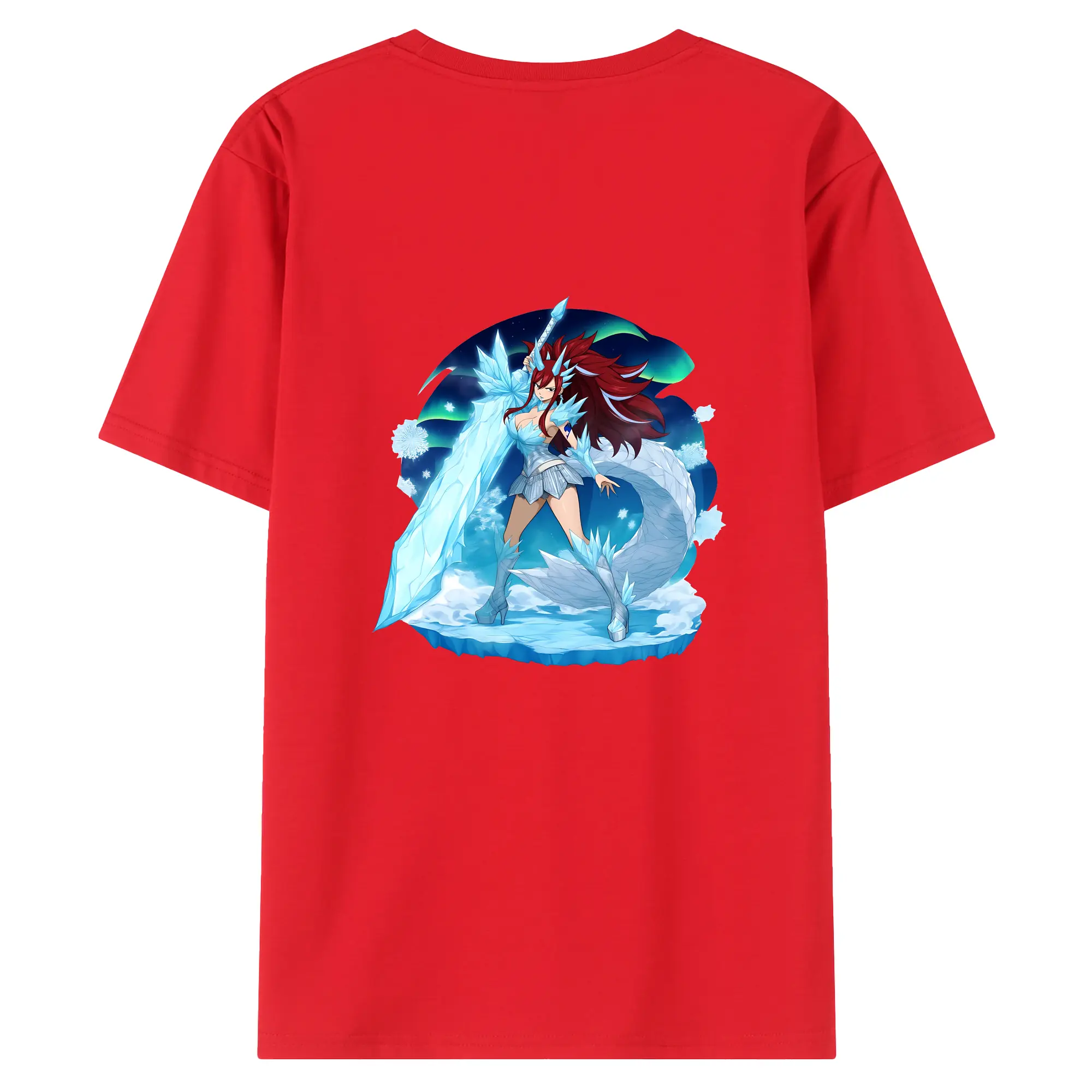 フェアリーテイル グッズ エルザ・スカーレット - 綿100% 半袖Tシャツ ・ フロントプリント ・ 快適 通気性 ・ 日常使い 散歩 スポーツ用
