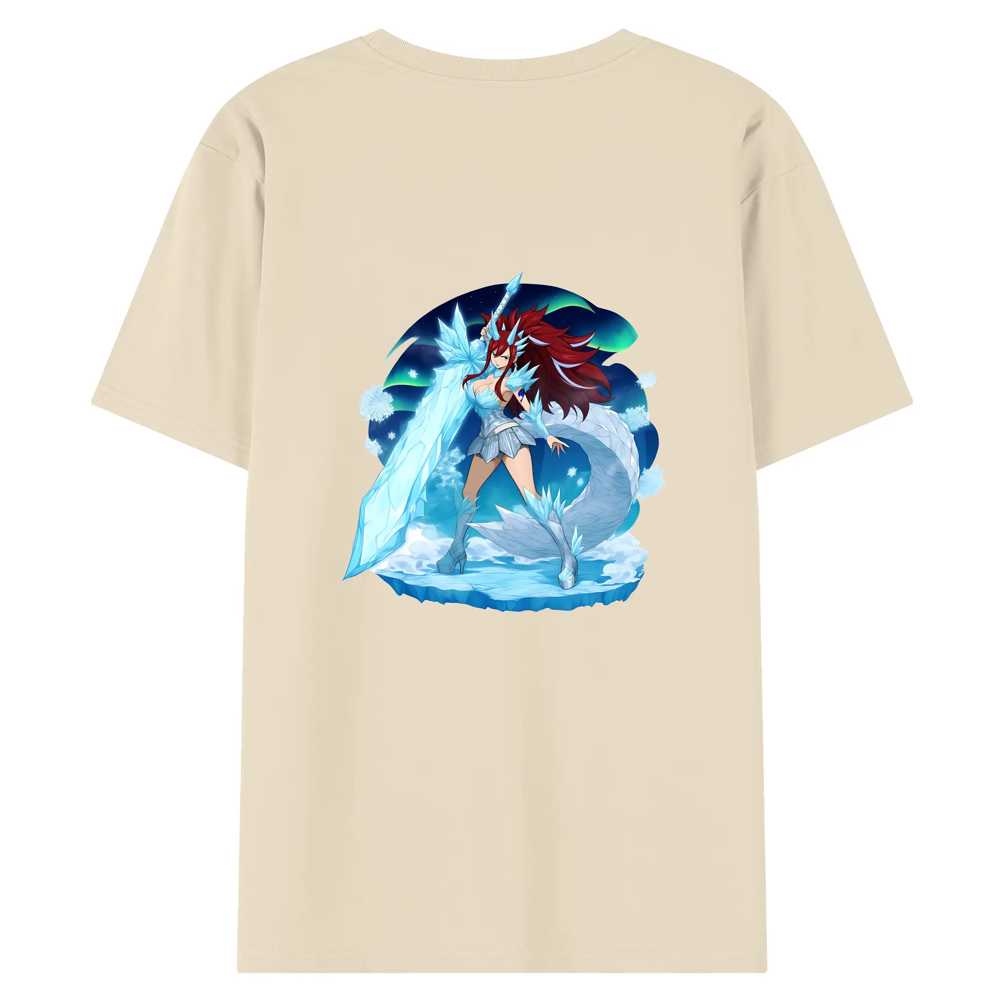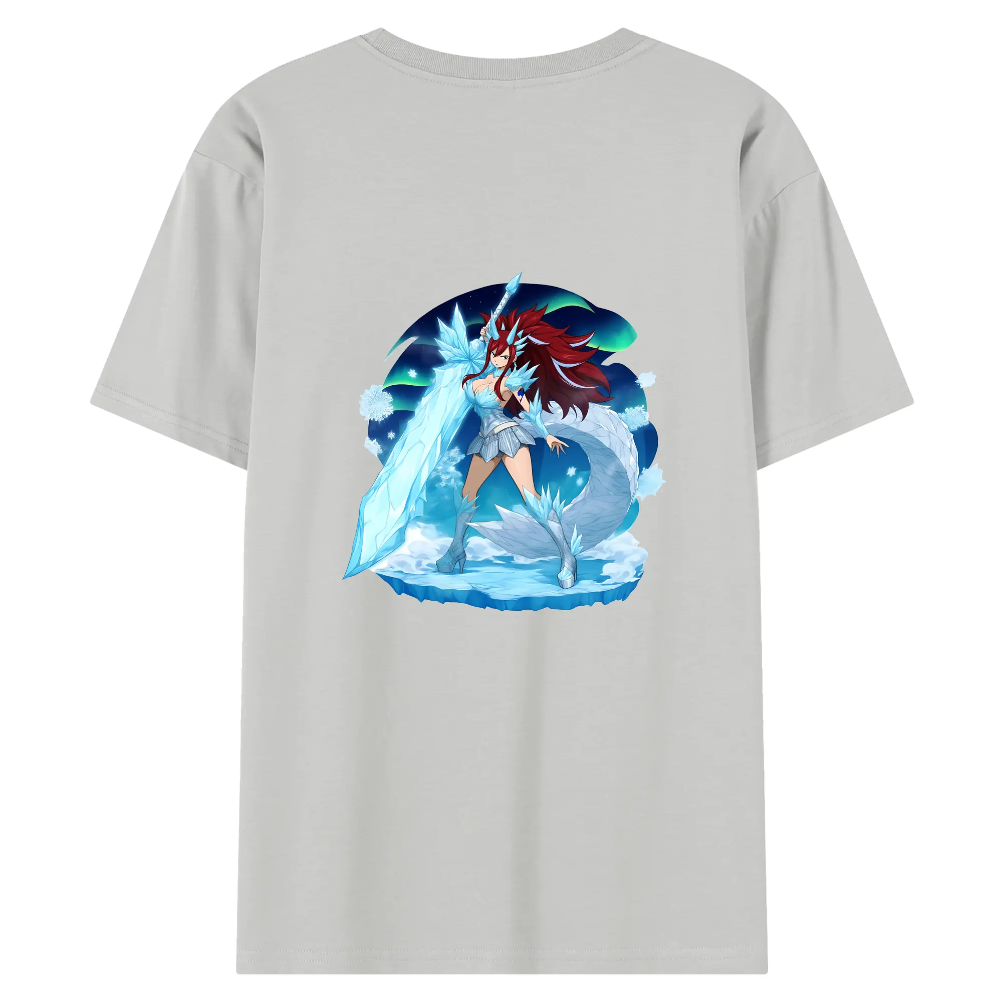 フェアリーテイル グッズ エルザ・スカーレット - 綿100% ヴィンテージ風 半袖Tシャツ ・ 背面プリント ・ 柔らか肌触り ・ 通気性 快適 ・ スポーツ カジュアル 外出用