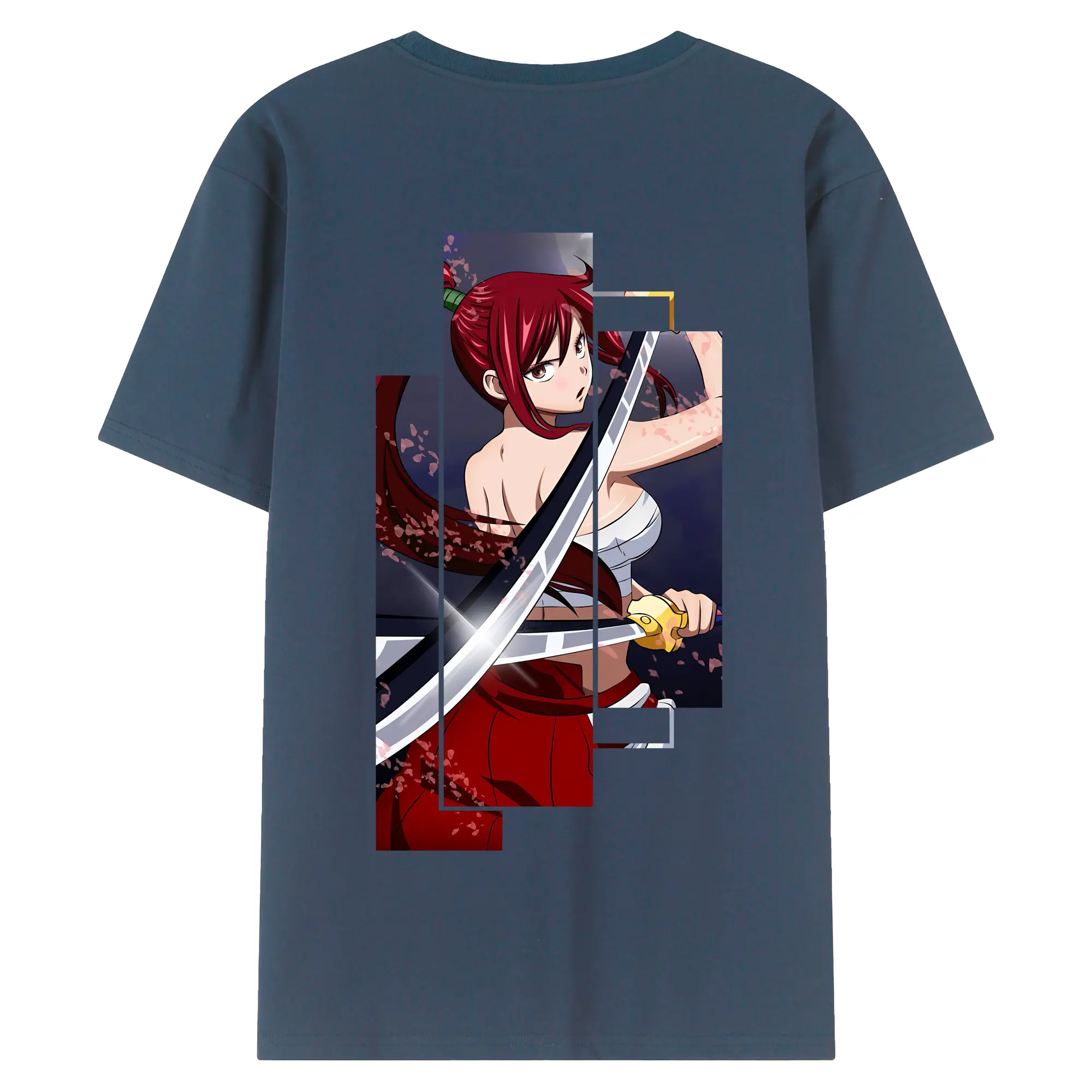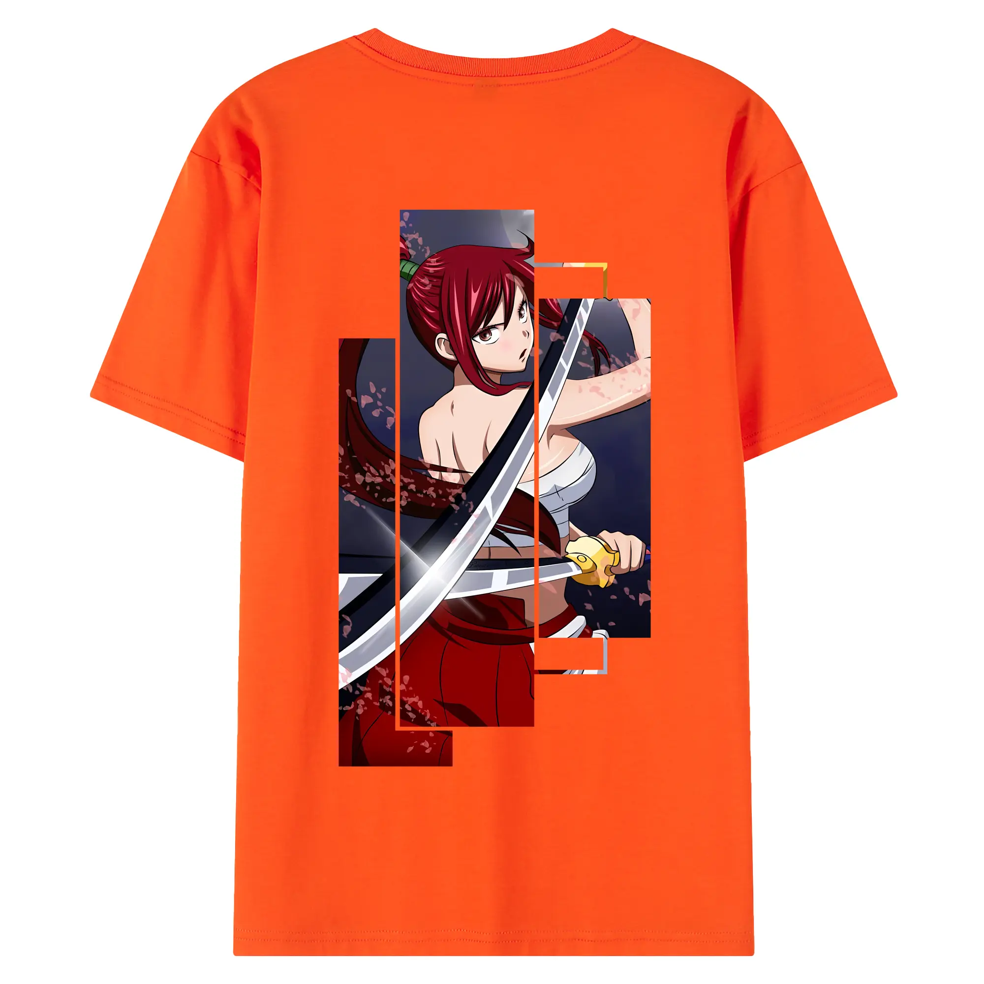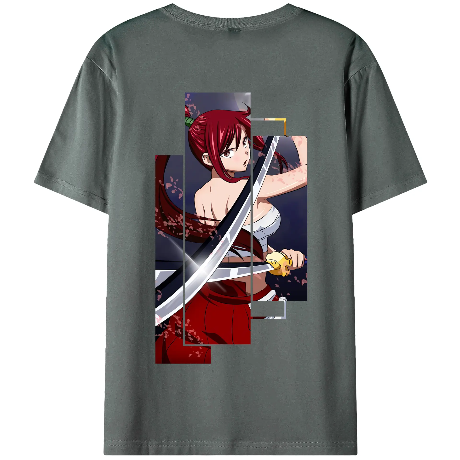 フェアリーテイル グッズ エルザ・スカーレット - 綿100% ヴィンテージ風 半袖Tシャツ ・ 背面プリント ・ 柔らか肌触り ・ 通気性 快適 ・ スポーツ カジュアル 外出用