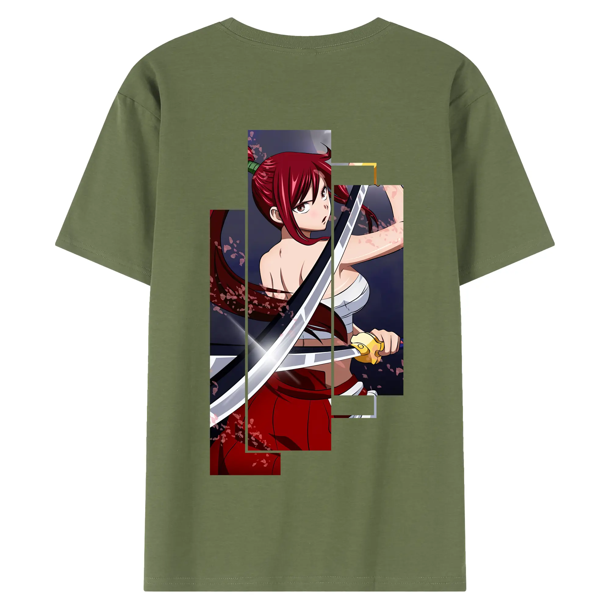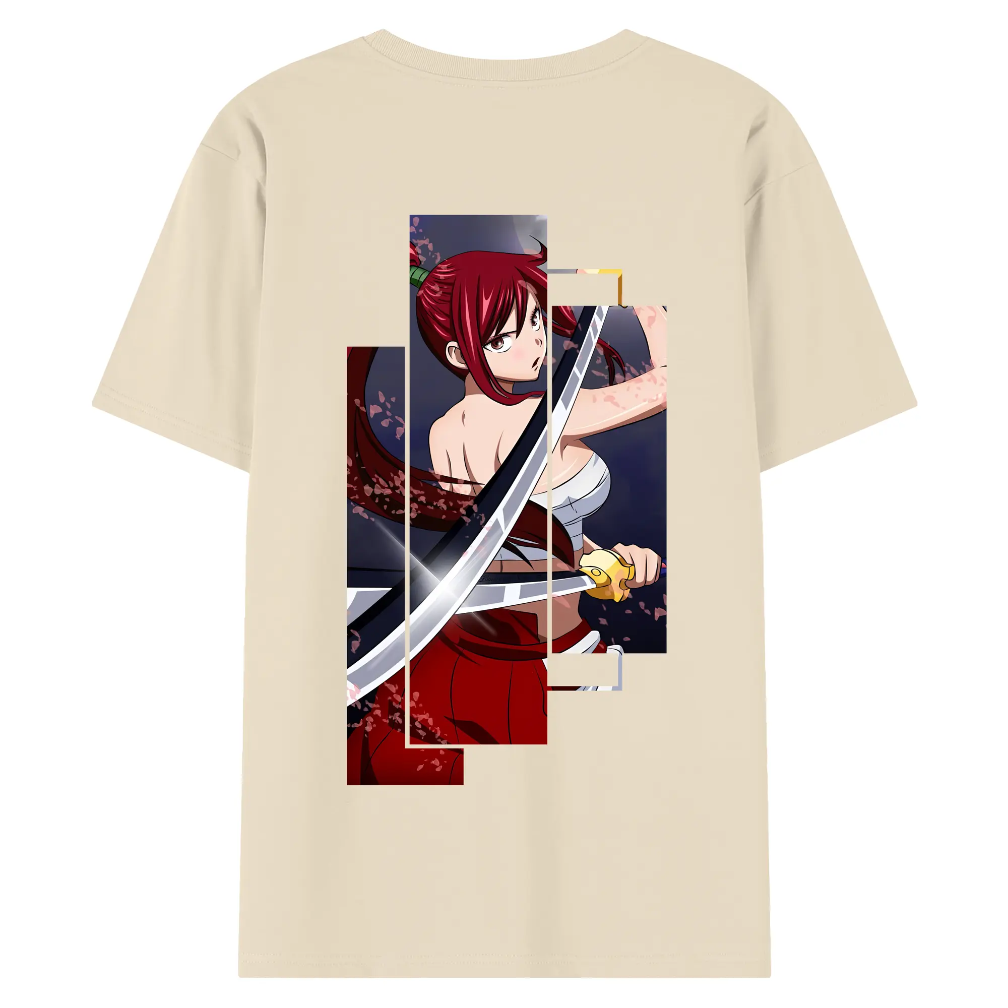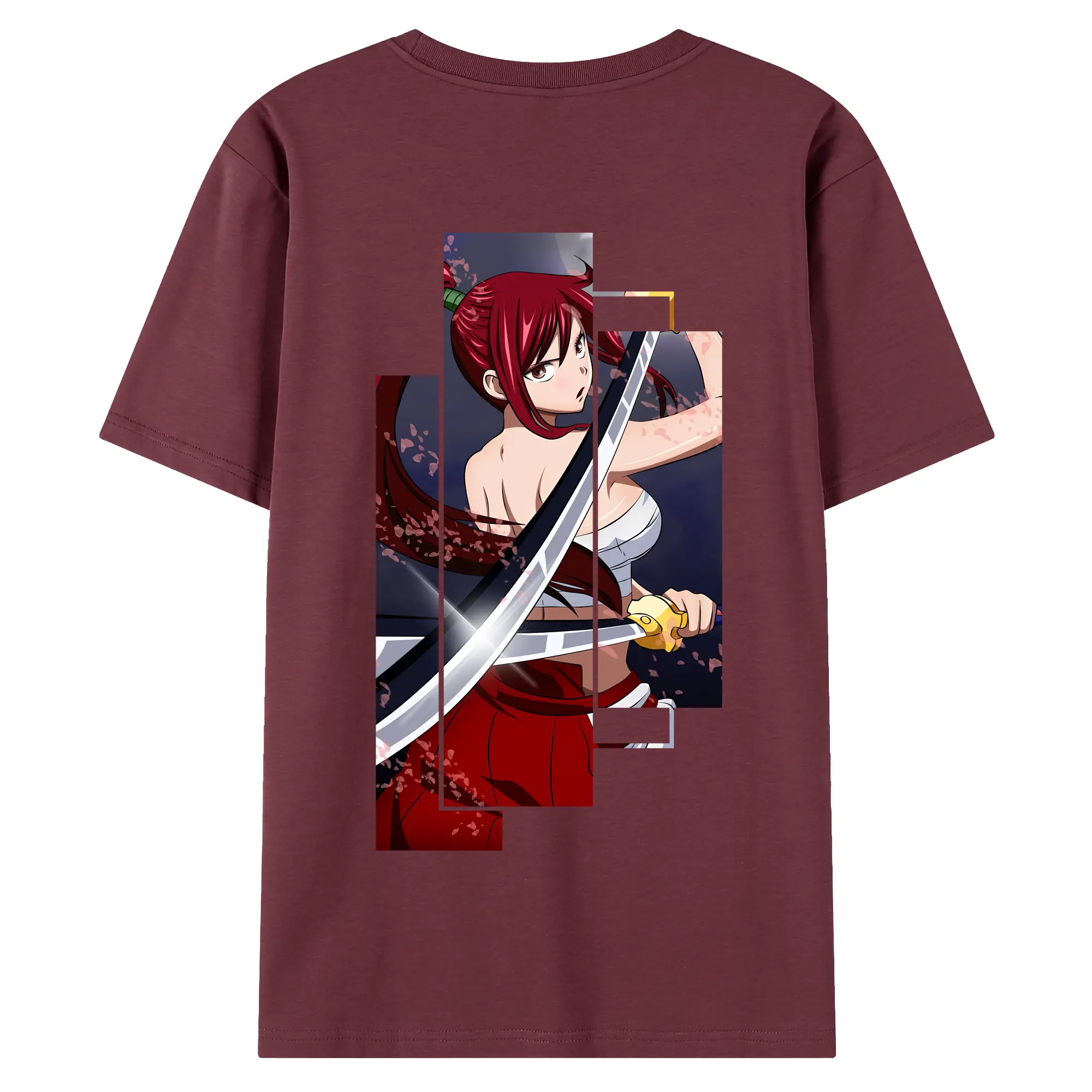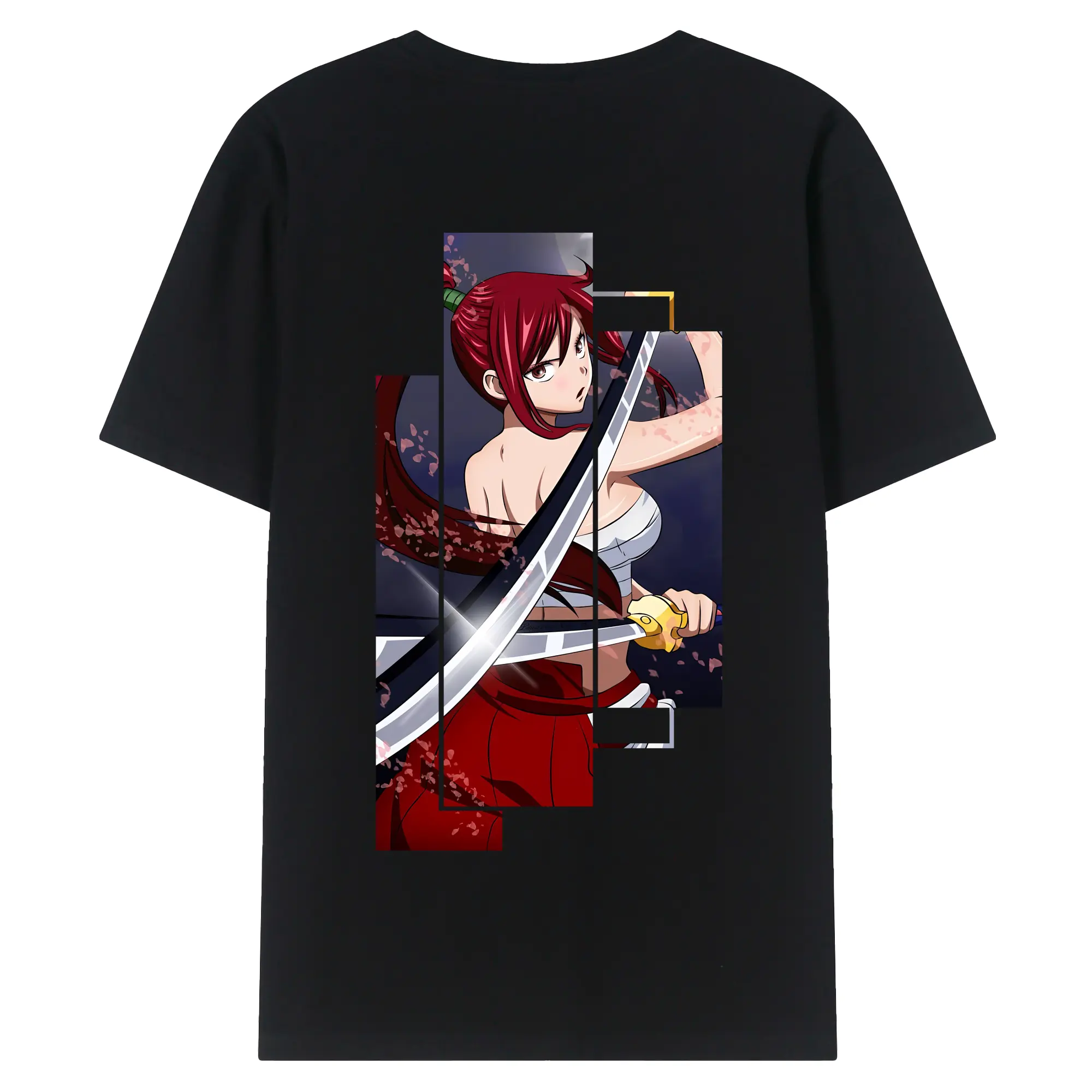 フェアリーテイル グッズ エルザ・スカーレット - 綿100% ヴィンテージ風 半袖Tシャツ ・ 背面プリント ・ 柔らか肌触り ・ 通気性 快適 ・ スポーツ カジュアル 外出用