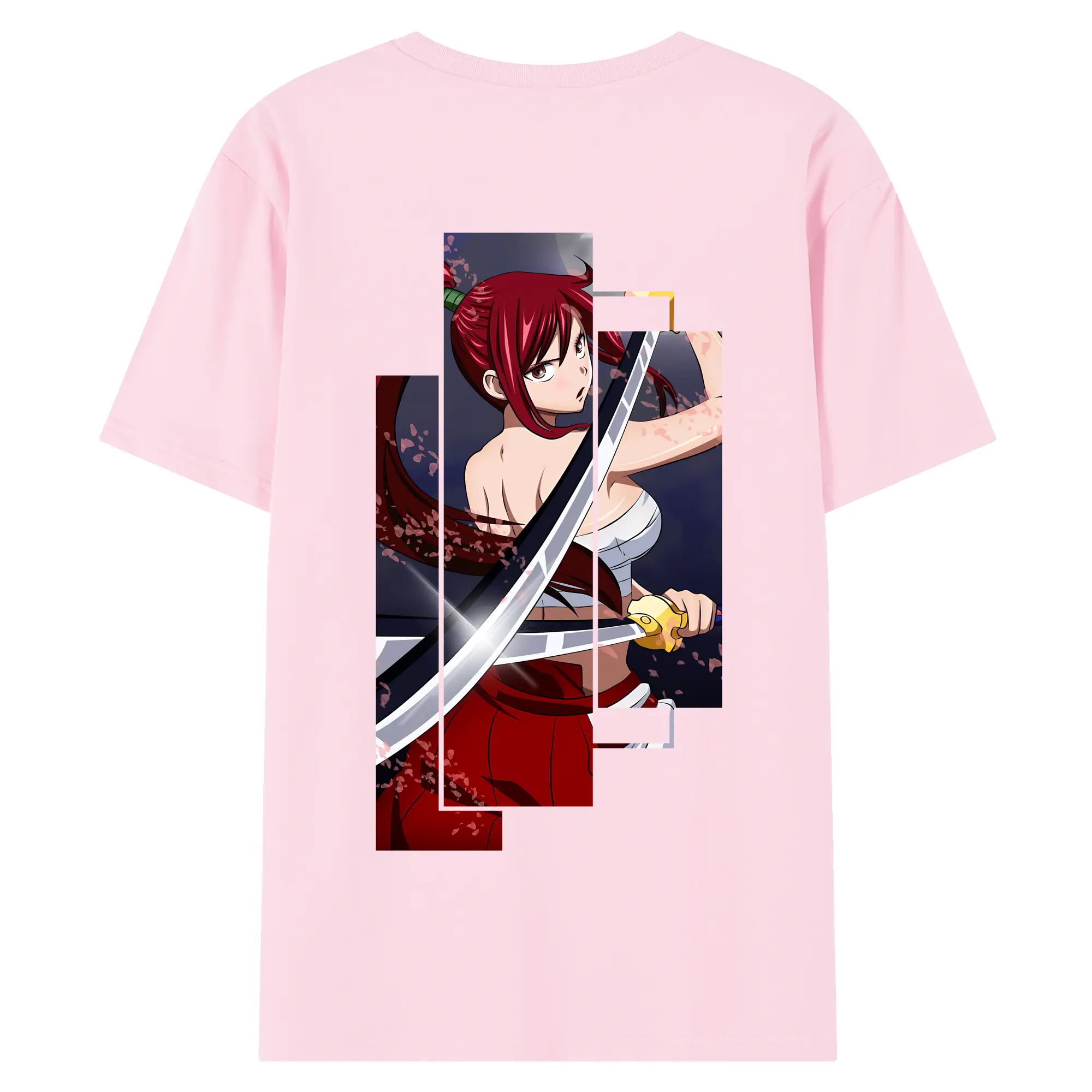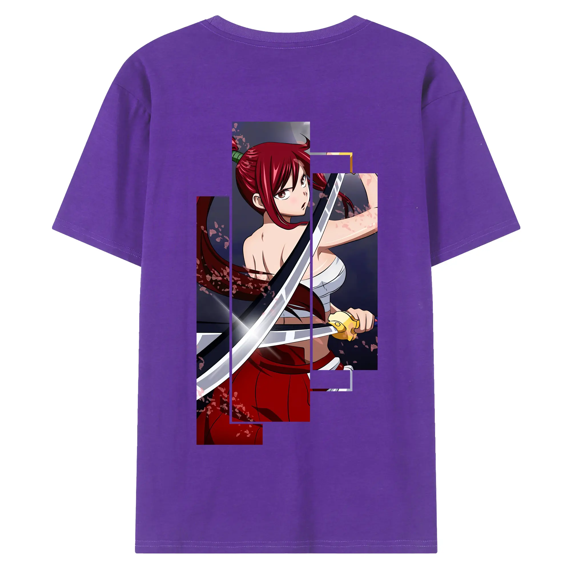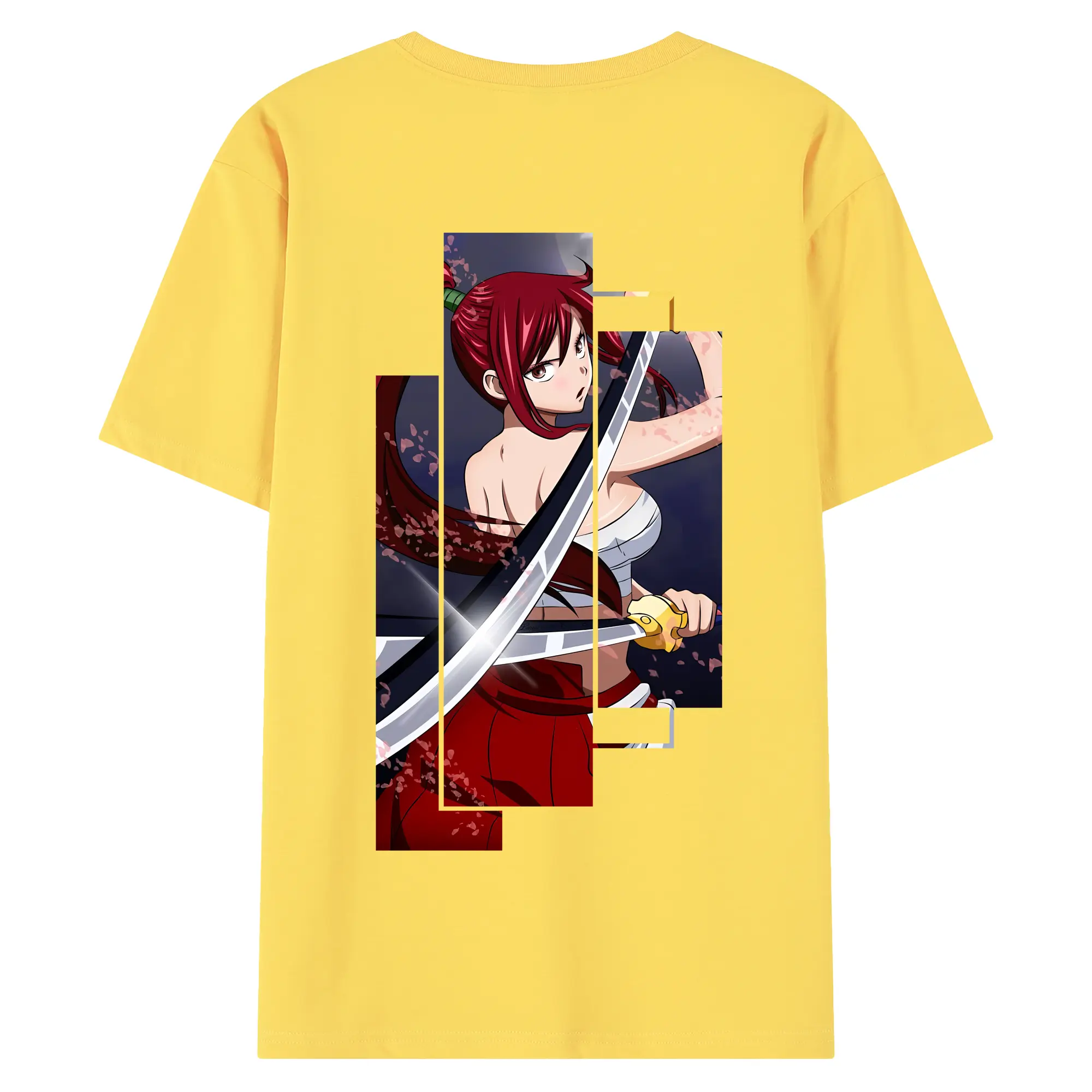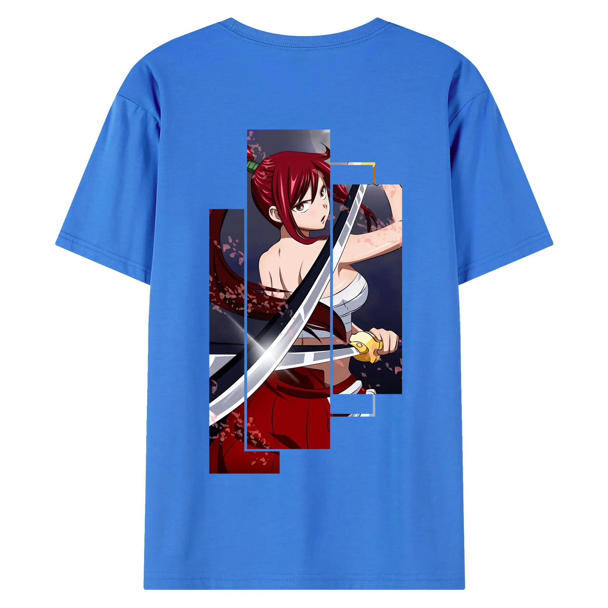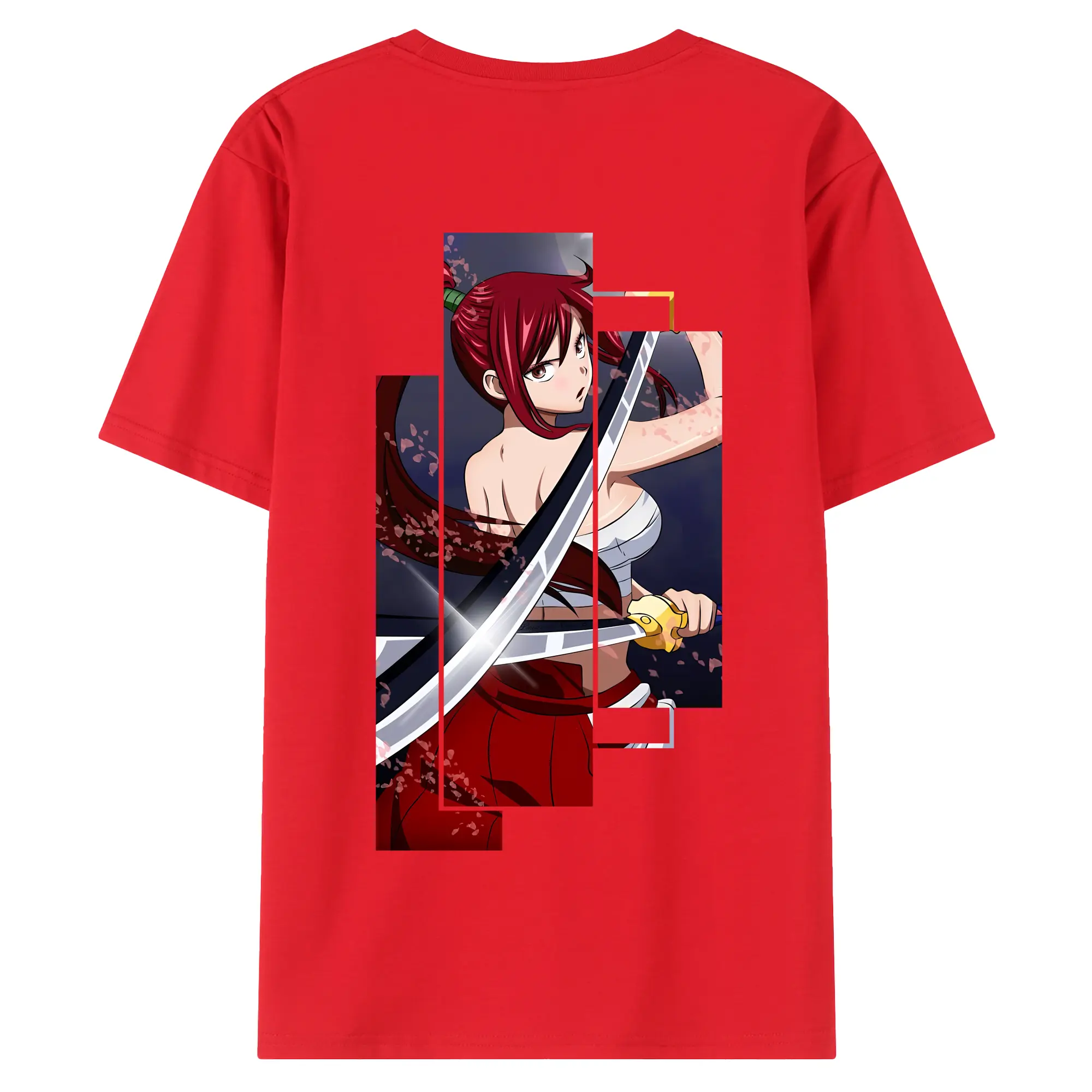 フェアリーテイル グッズ エルザ・スカーレット - 綿100% 半袖Tシャツ ・ フロントプリント ・ 快適 通気性 ・ 日常使い 散歩 スポーツ用