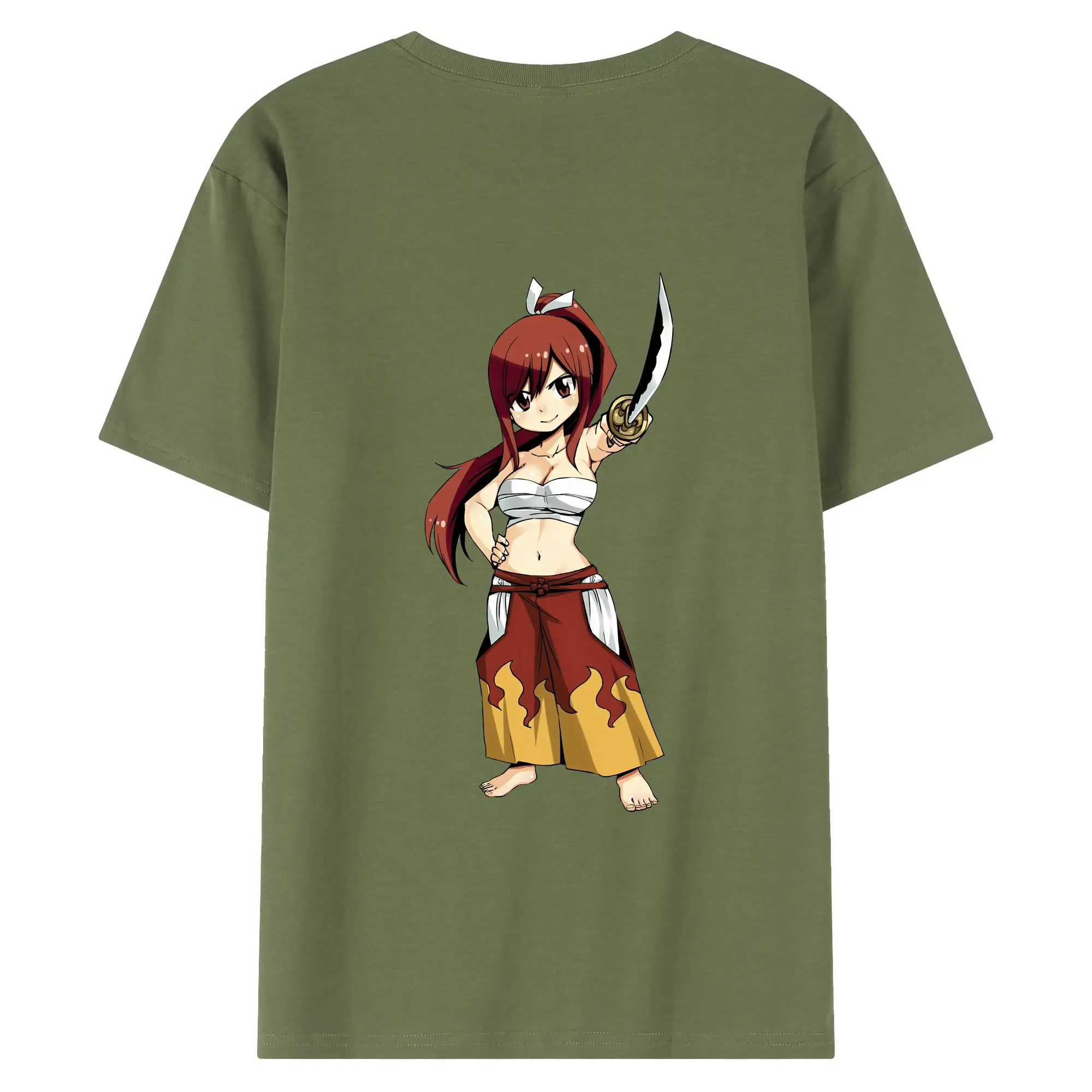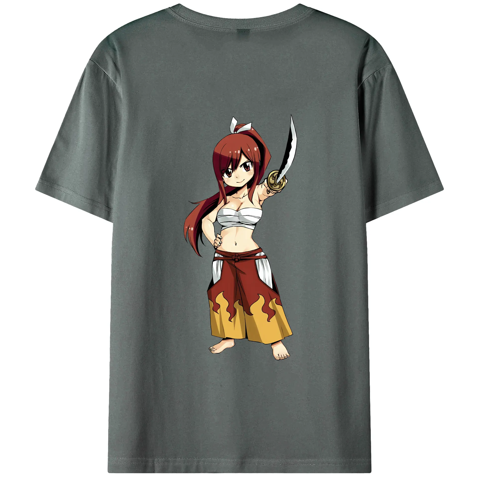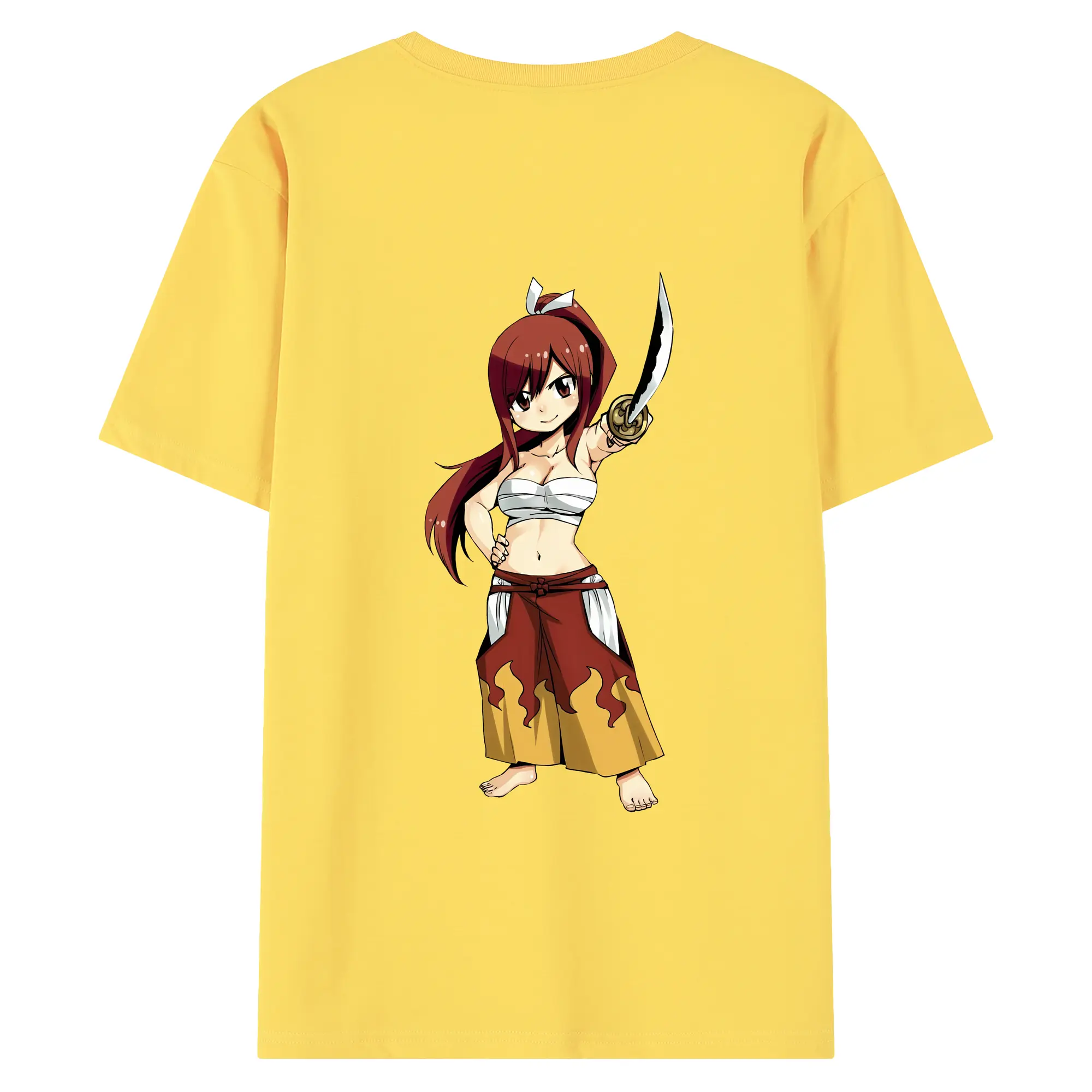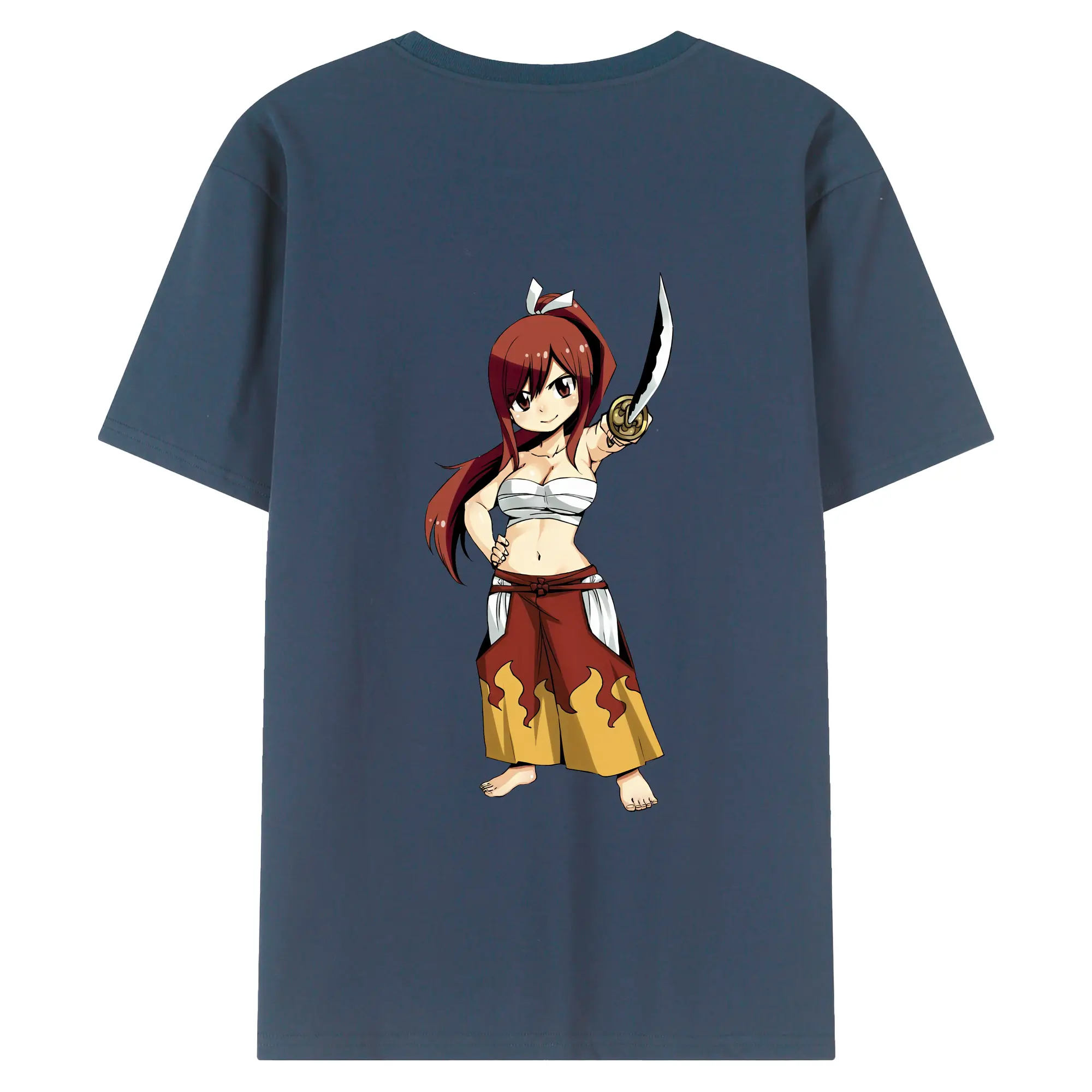 フェアリーテイル グッズ エルザ・スカーレット - 綿100% ヴィンテージ風 半袖Tシャツ ・ 背面プリント ・ 柔らか肌触り ・ 通気性 快適 ・ スポーツ カジュアル 外出用