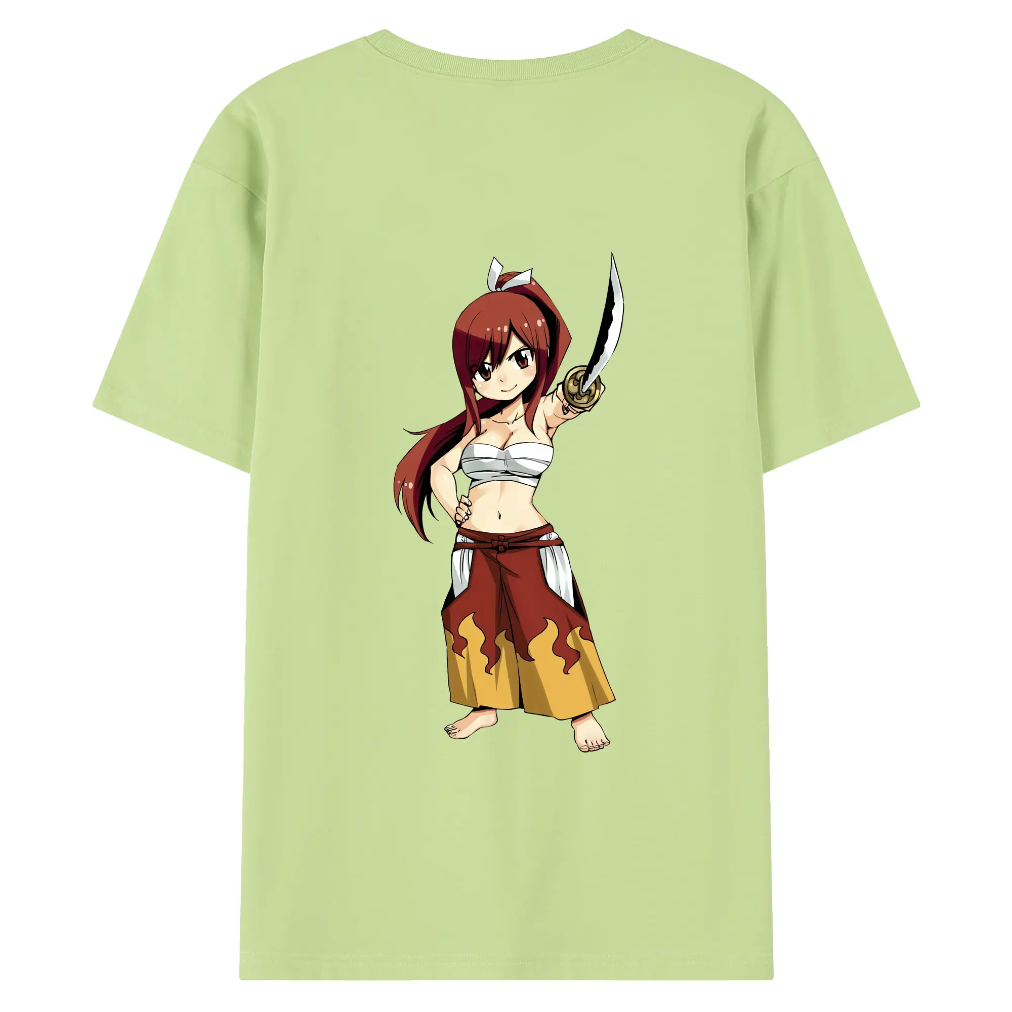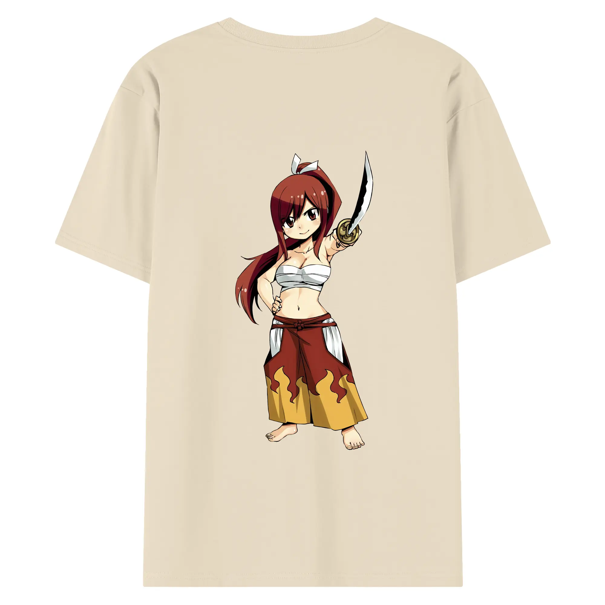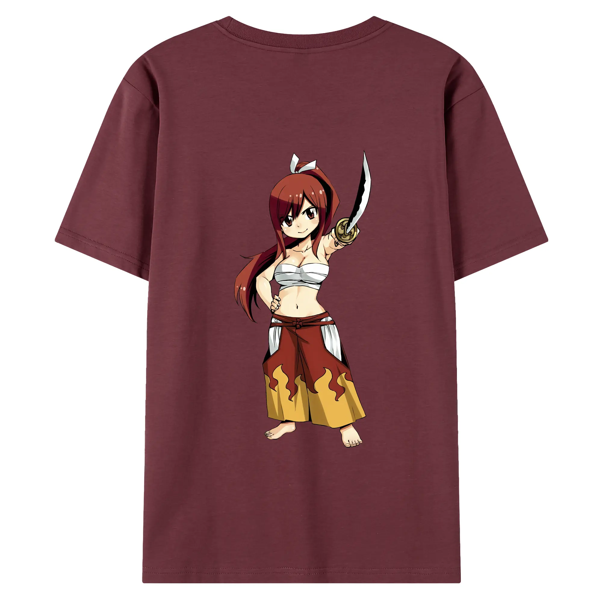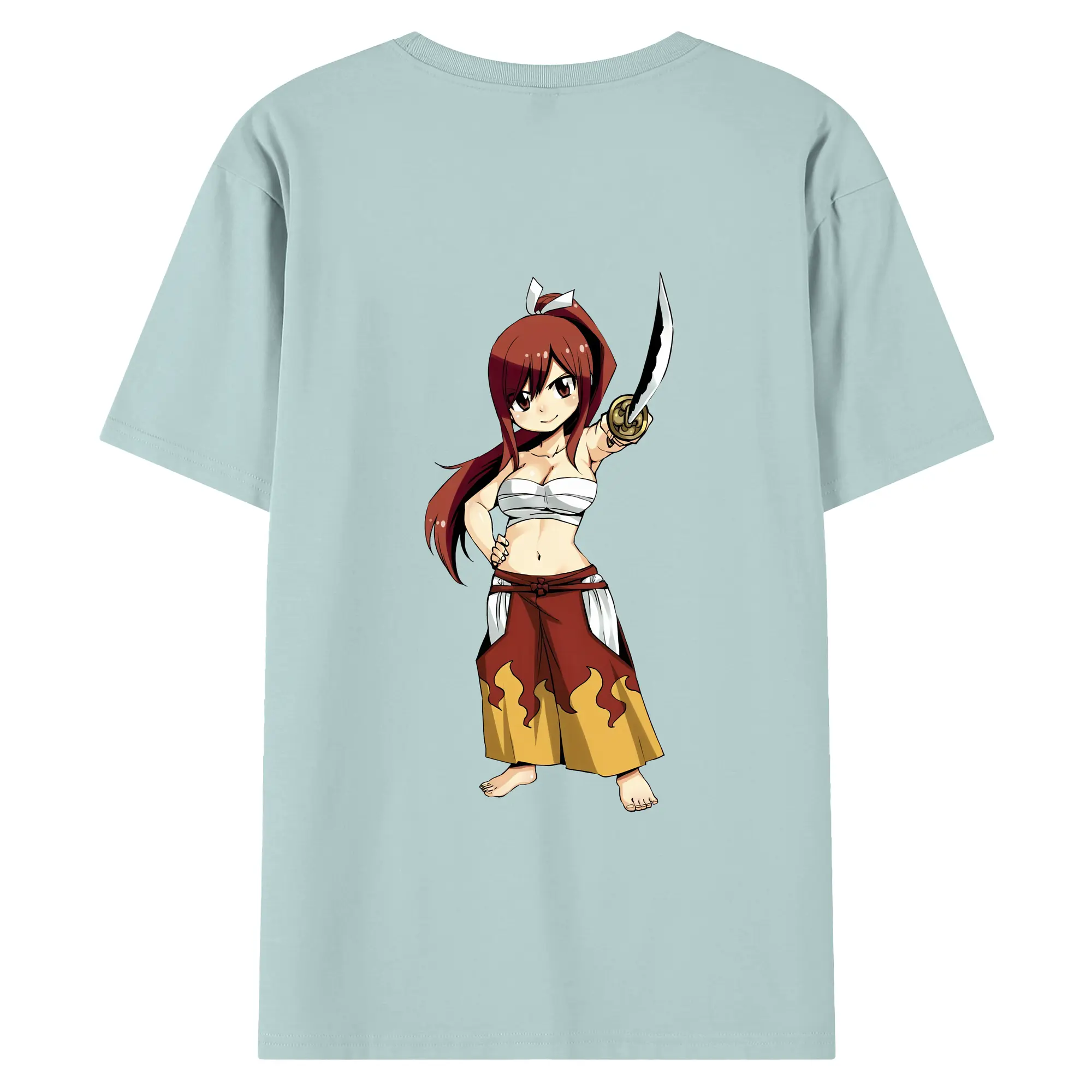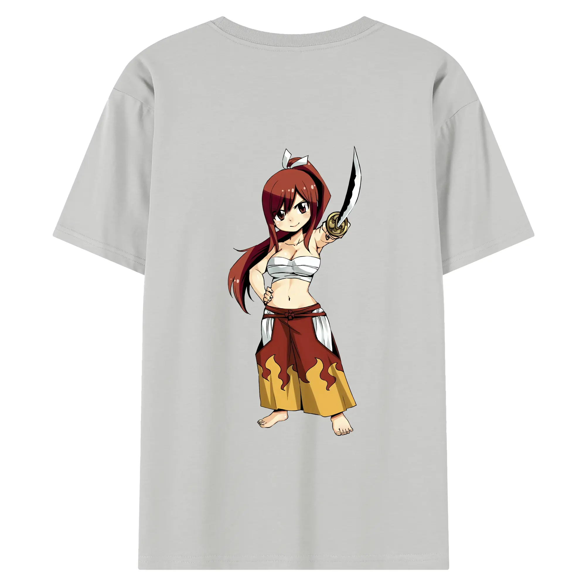 フェアリーテイル グッズ エルザ・スカーレット - 綿100% ヴィンテージ風 半袖Tシャツ ・ 背面プリント ・ 柔らか肌触り ・ 通気性 快適 ・ スポーツ カジュアル 外出用