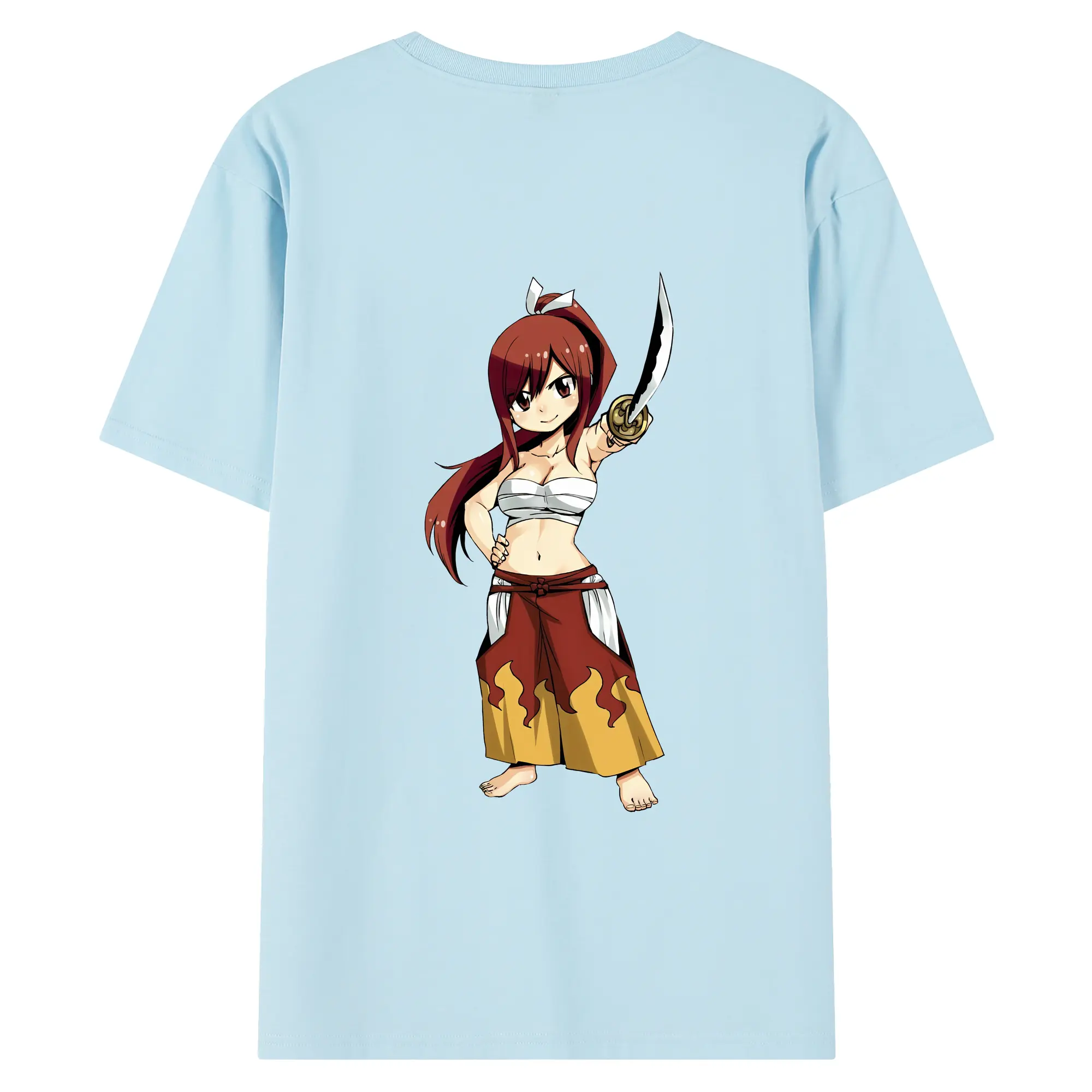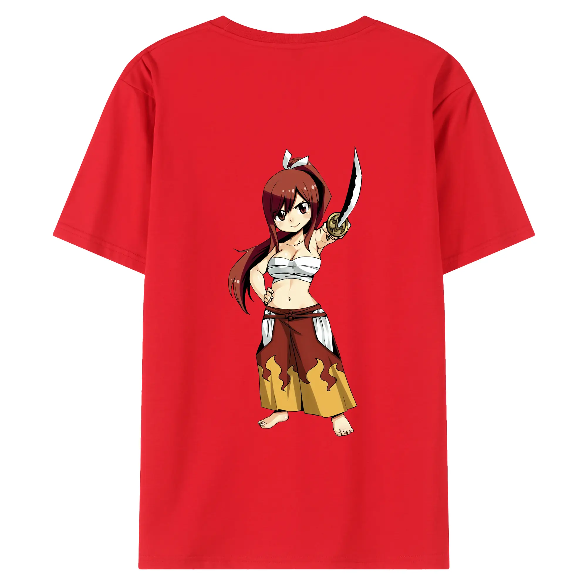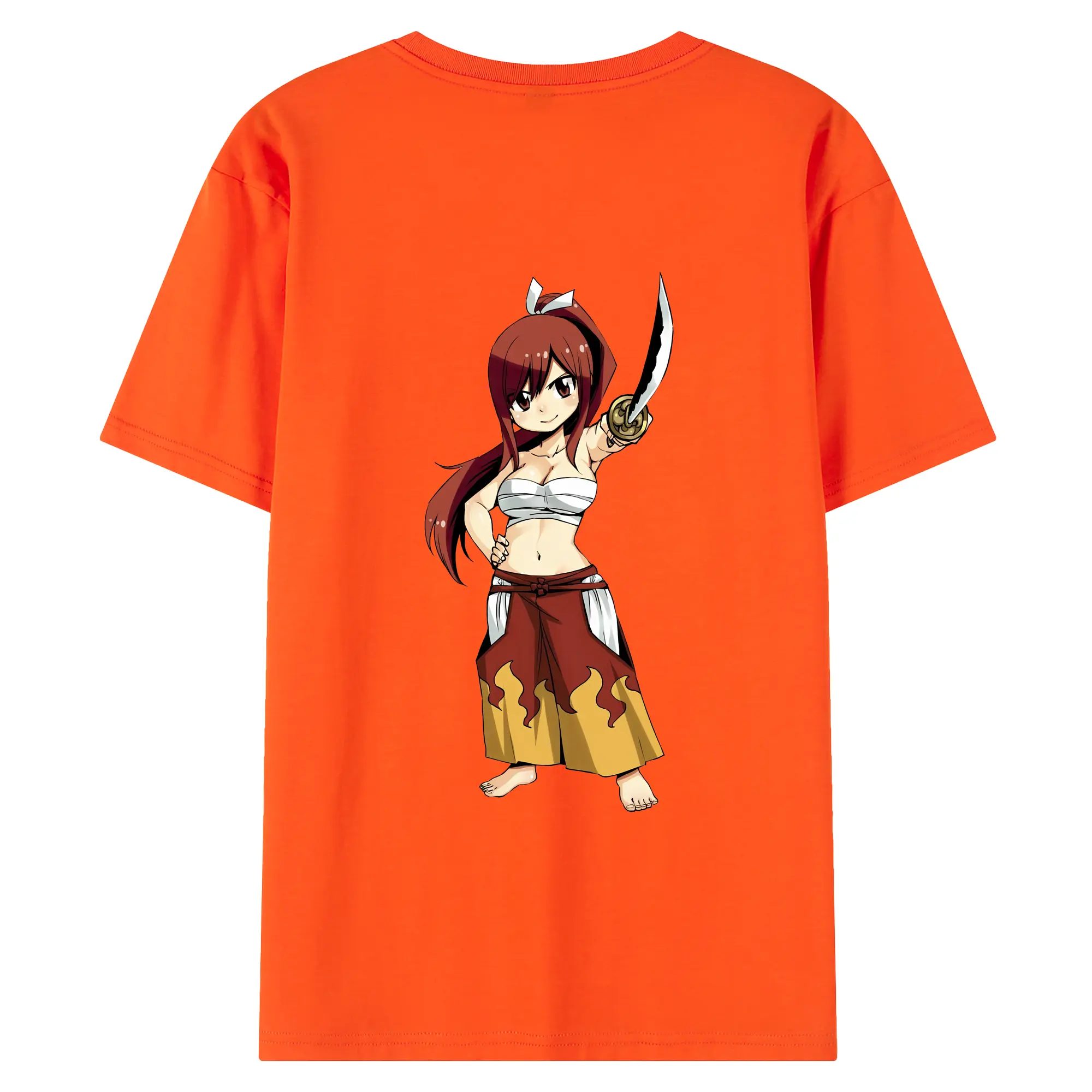 フェアリーテイル グッズ エルザ・スカーレット - 綿100% 半袖Tシャツ ・ フロントプリント ・ 快適 通気性 ・ 日常使い 散歩 スポーツ用