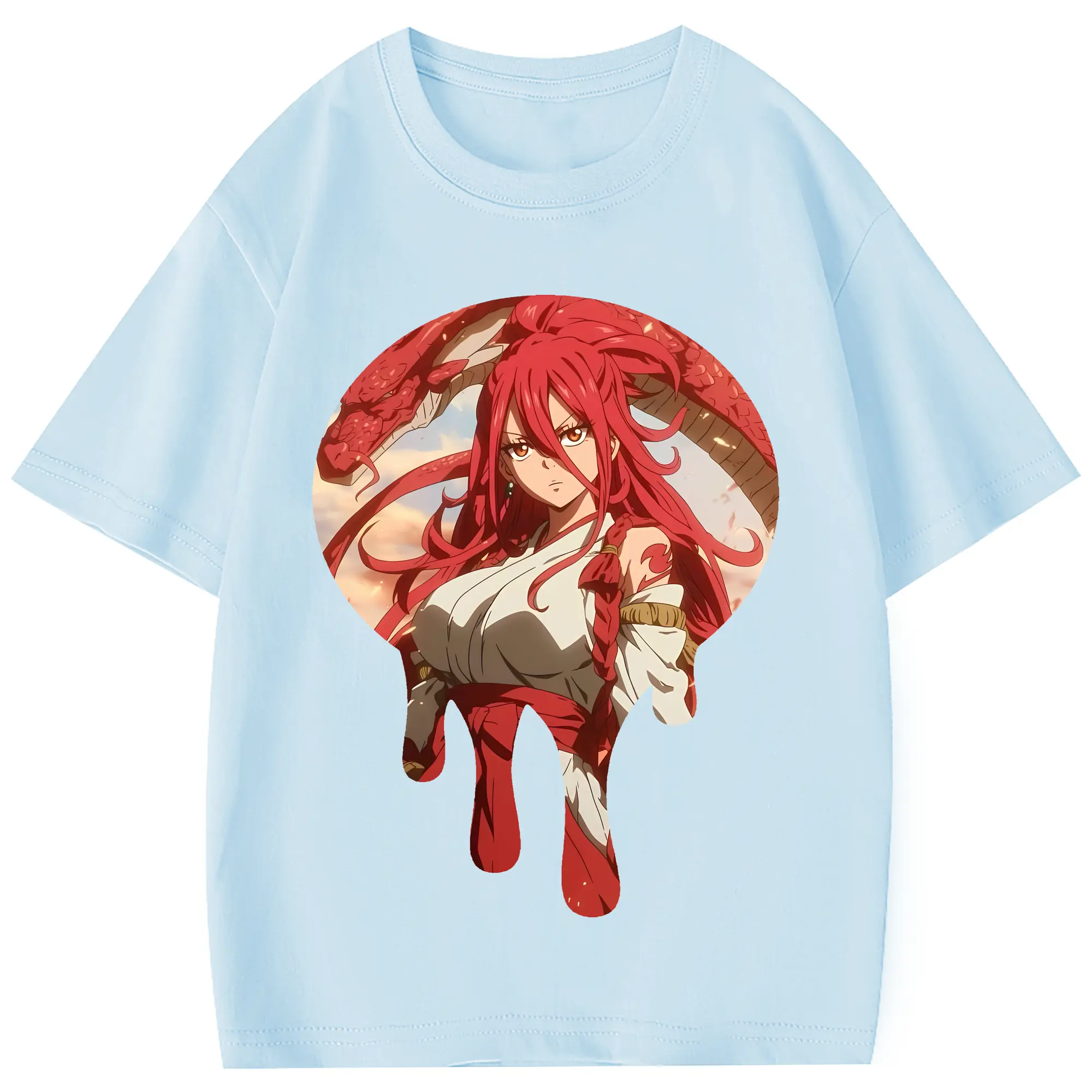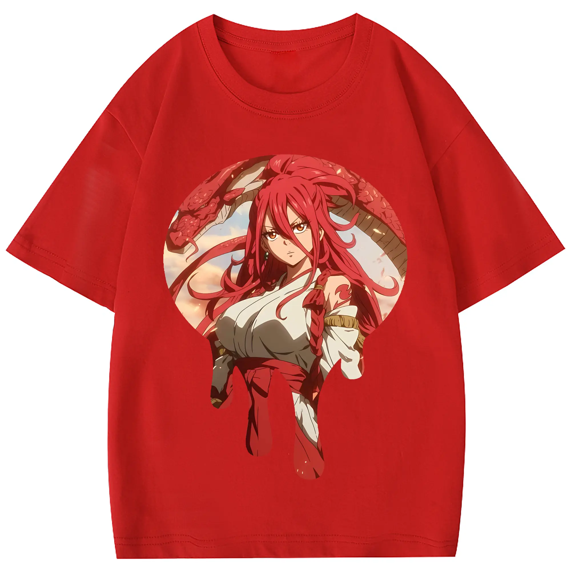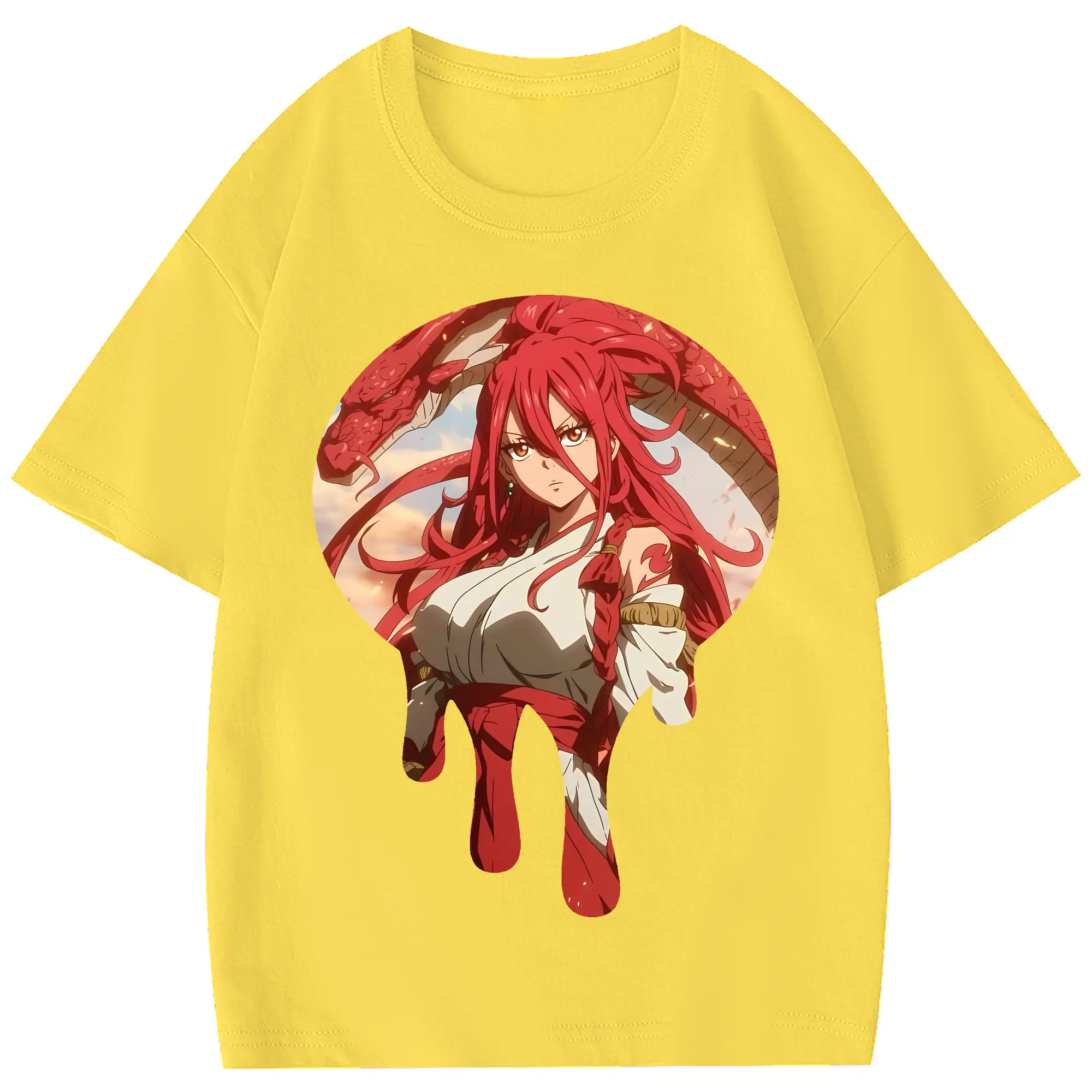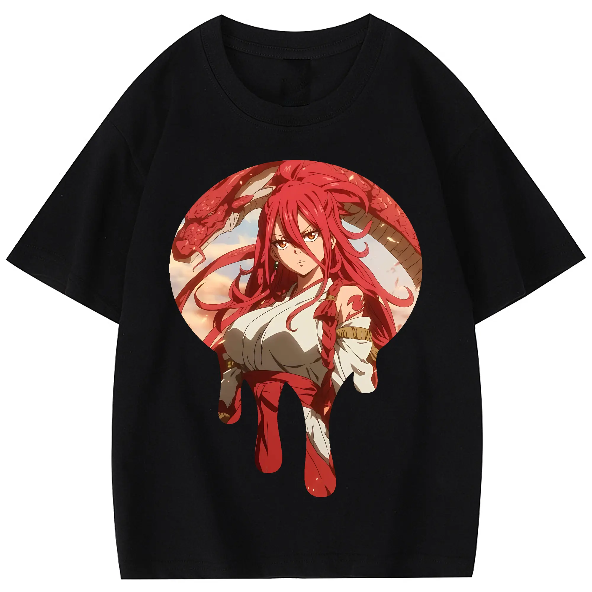 フェアリーテイル グッズ エルザ・スカーレット - 綿100% ヴィンテージ風 半袖Tシャツ ・ フロントプリント ・ 柔らか肌触り ・ 通気性 快適 ・ スポーツ カジュアル 外出用