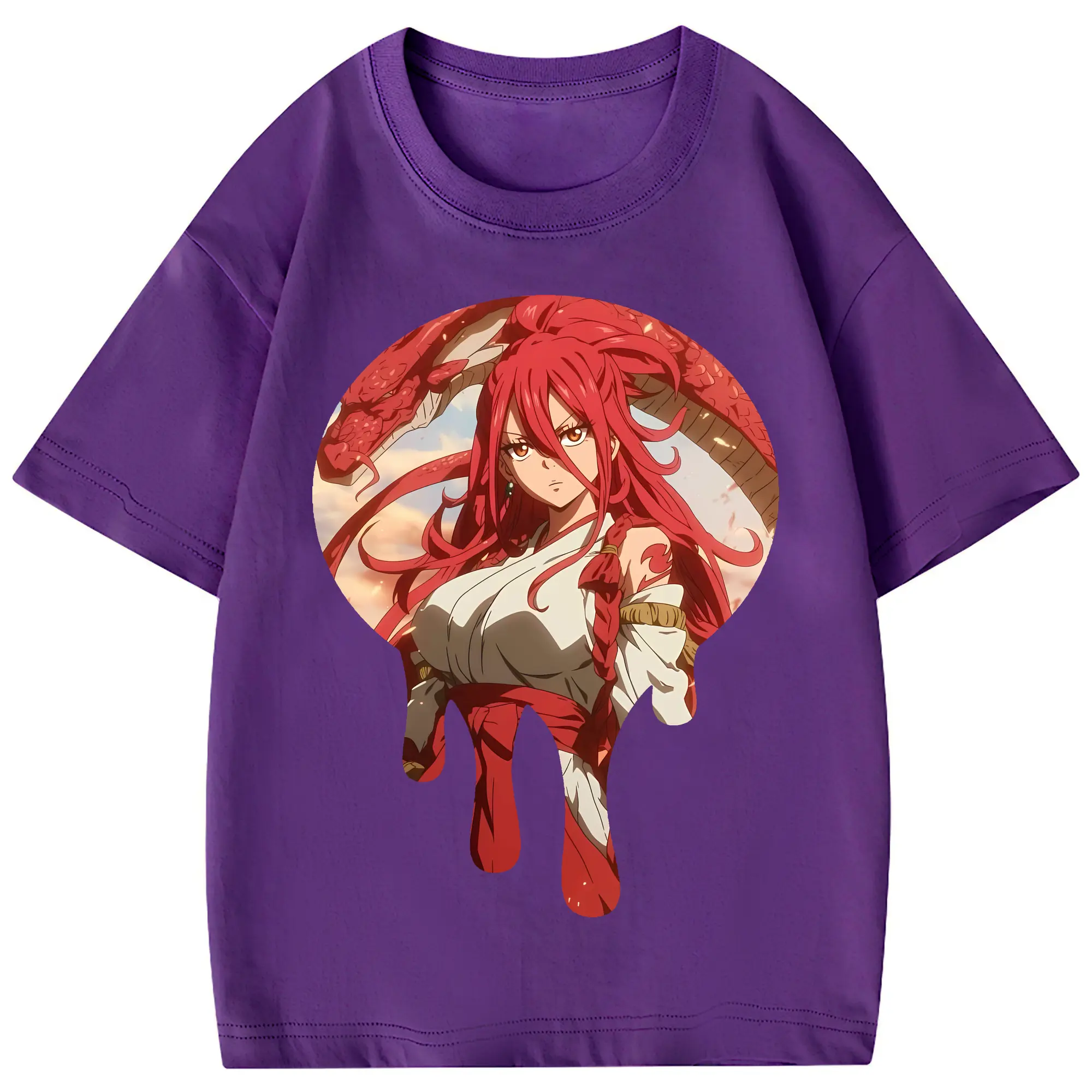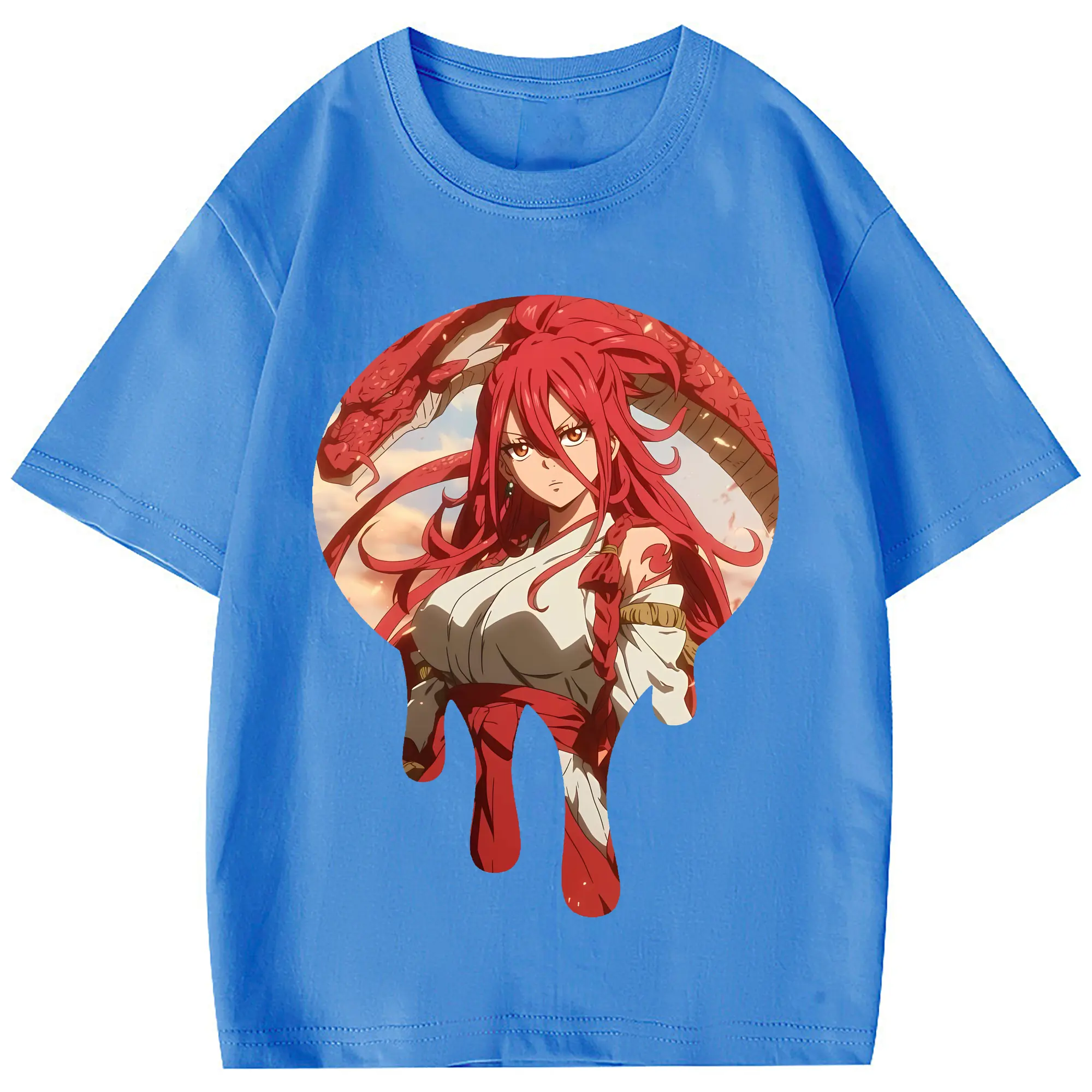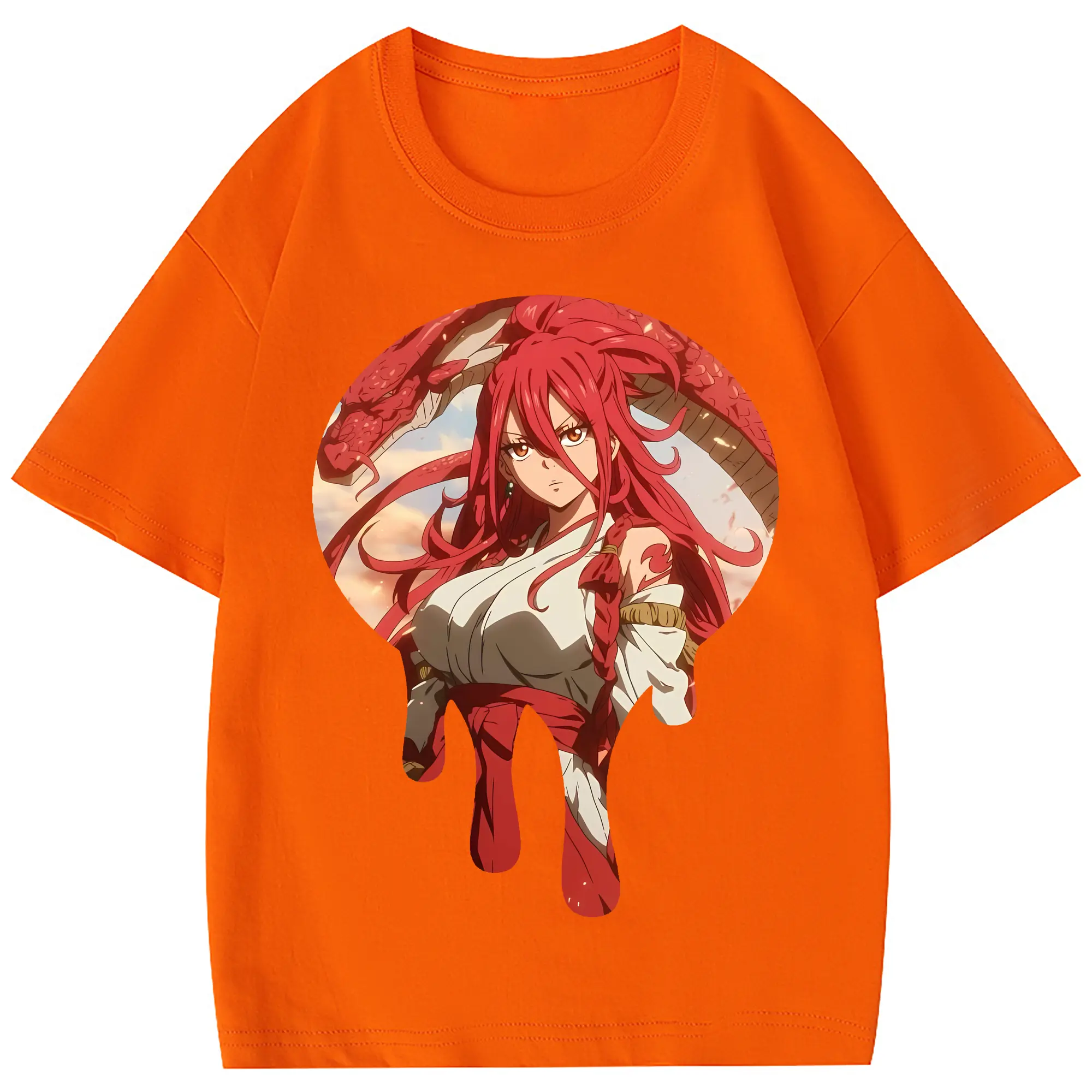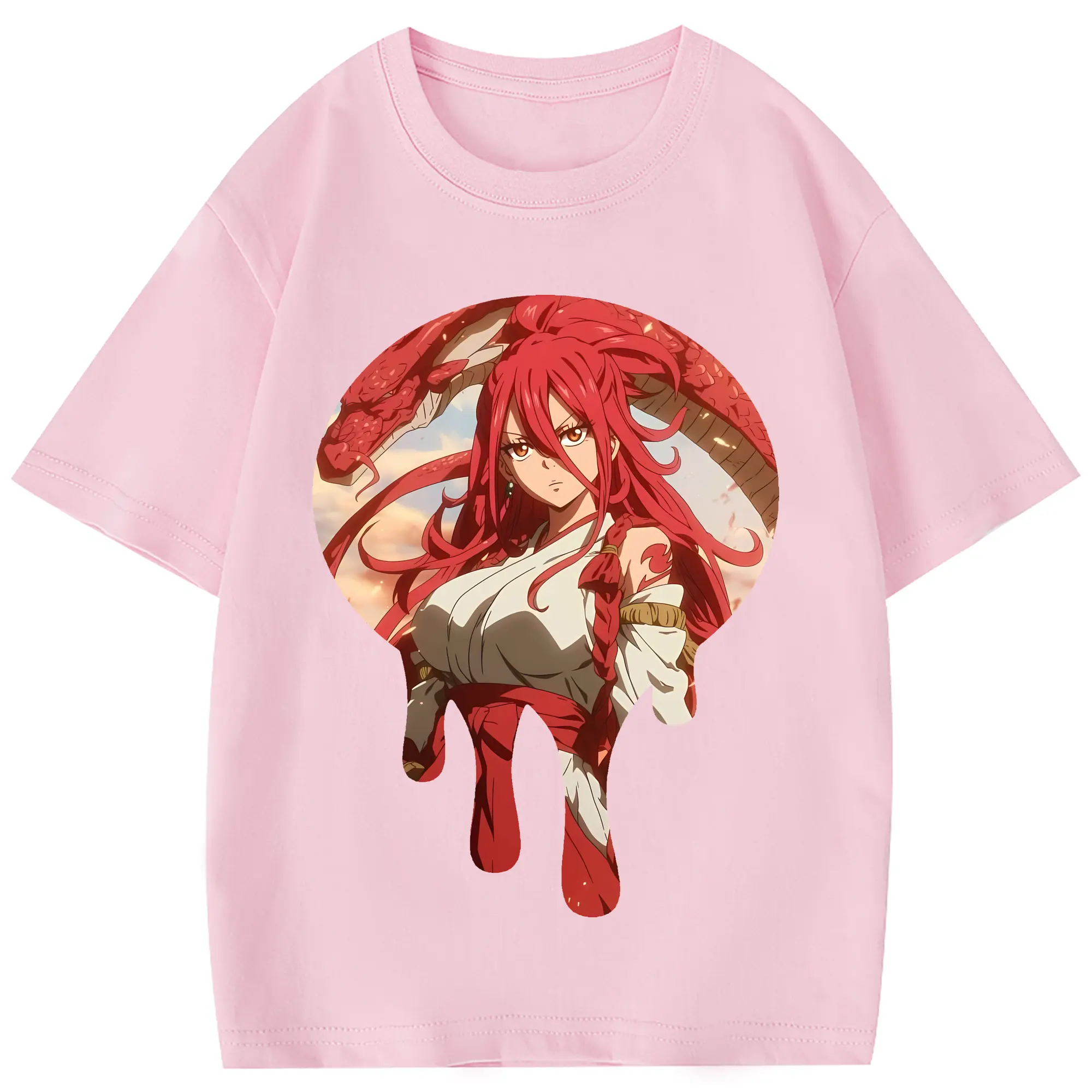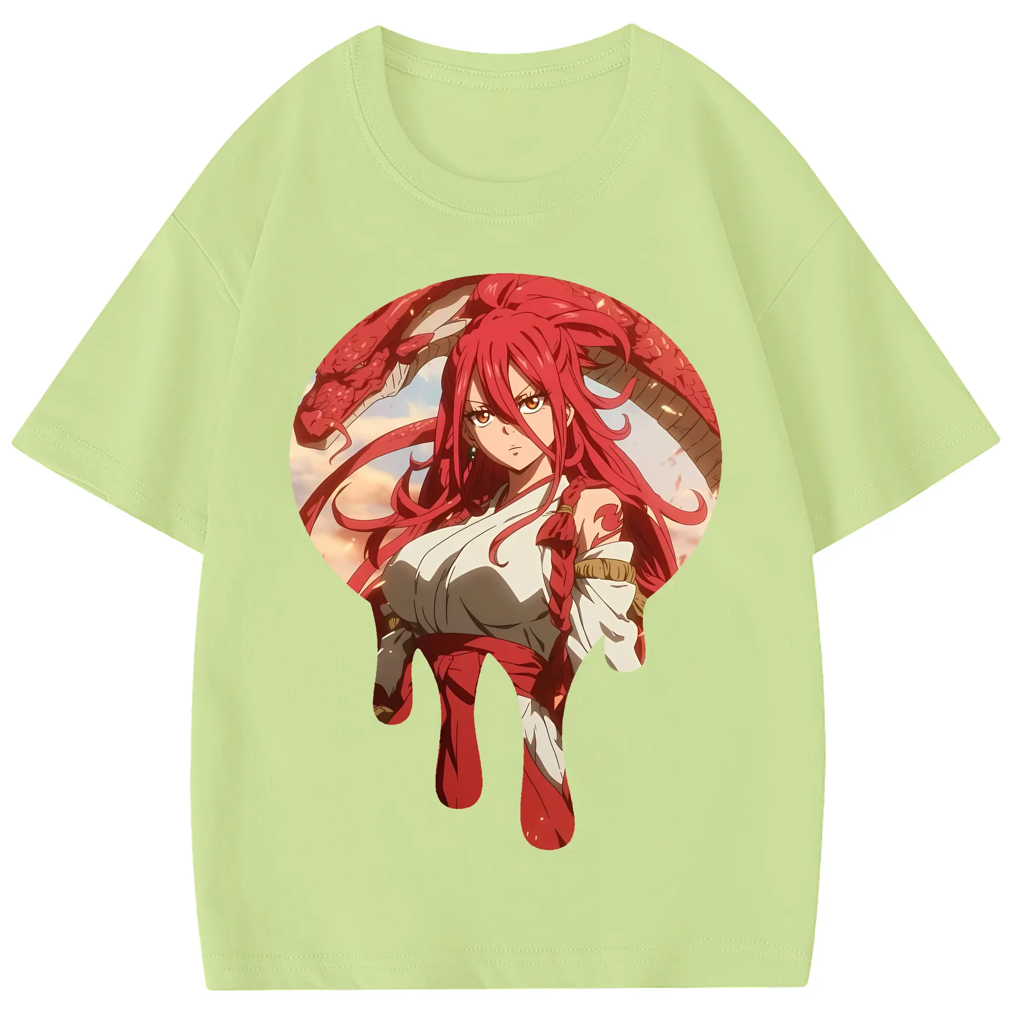 フェアリーテイル グッズ エルザ・スカーレット - 綿100% ヴィンテージ風 半袖Tシャツ ・ フロントプリント ・ 柔らか肌触り ・ 通気性 快適 ・ スポーツ カジュアル 外出用