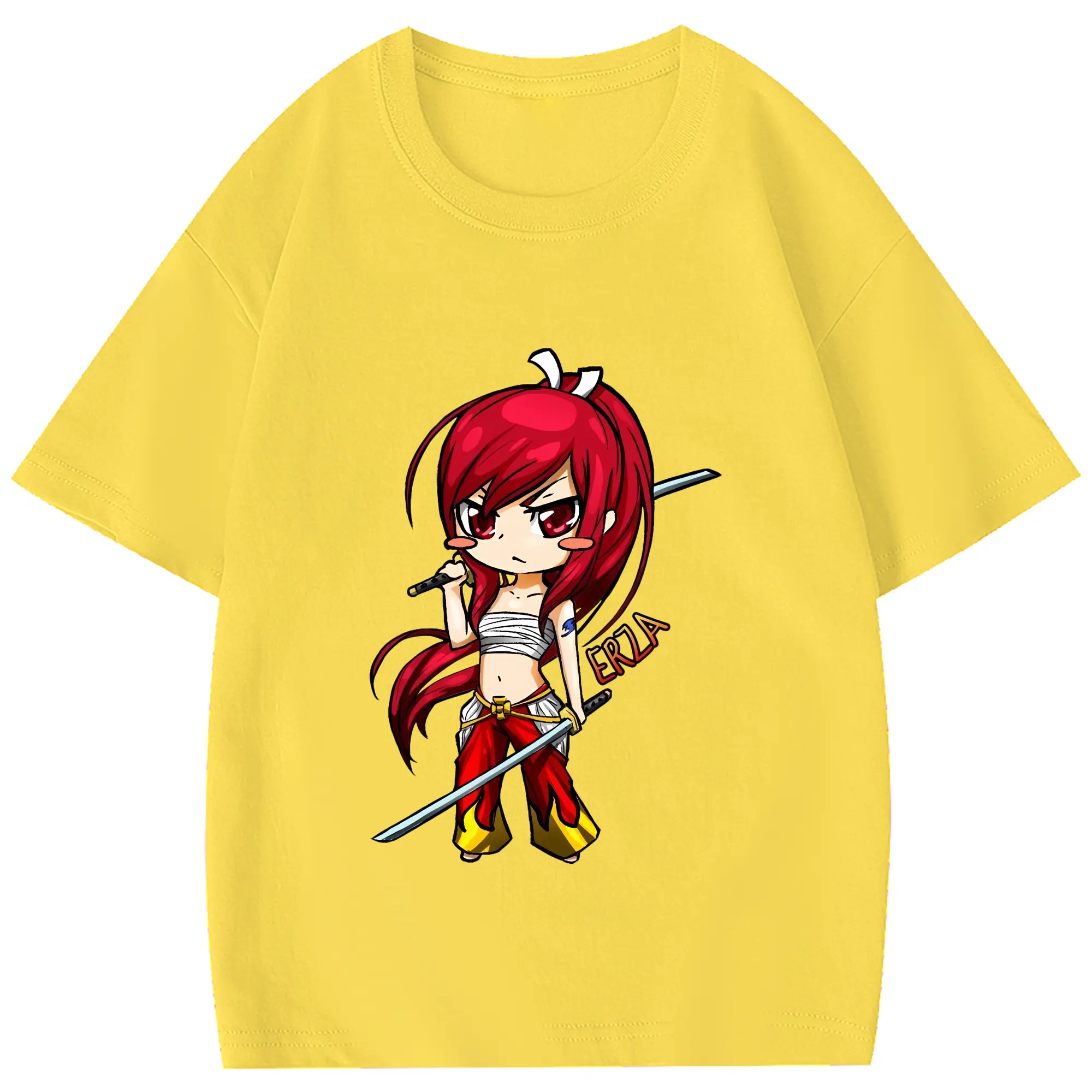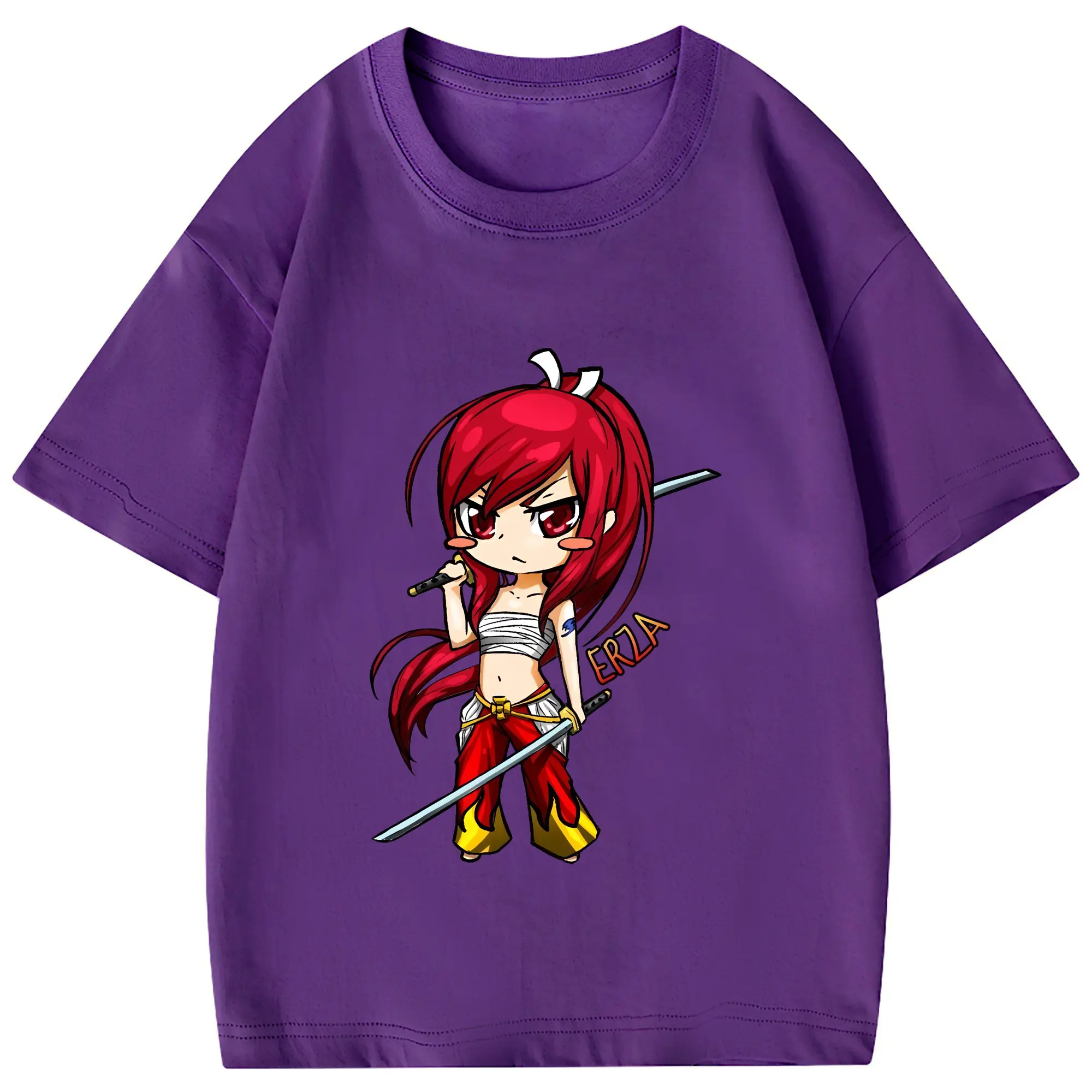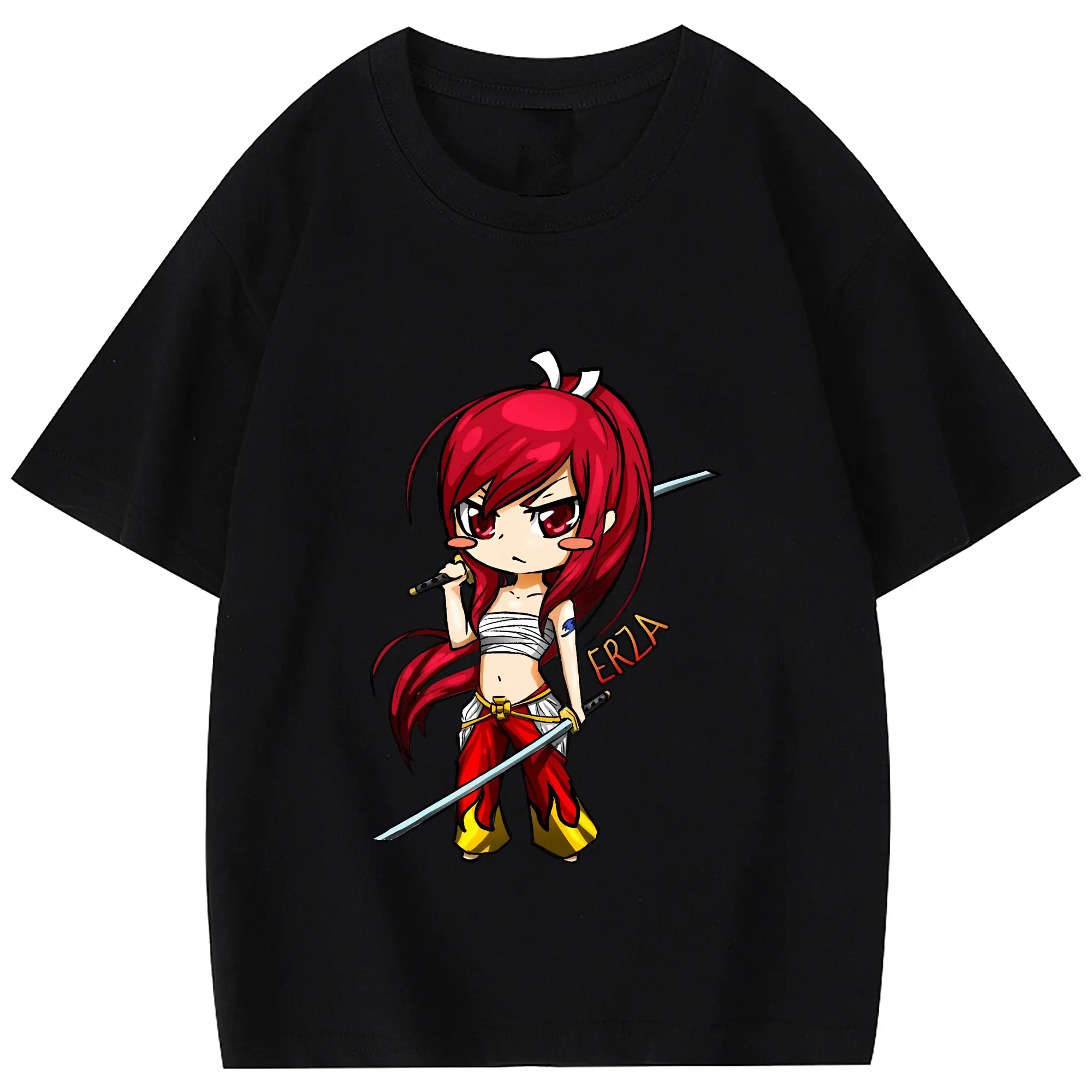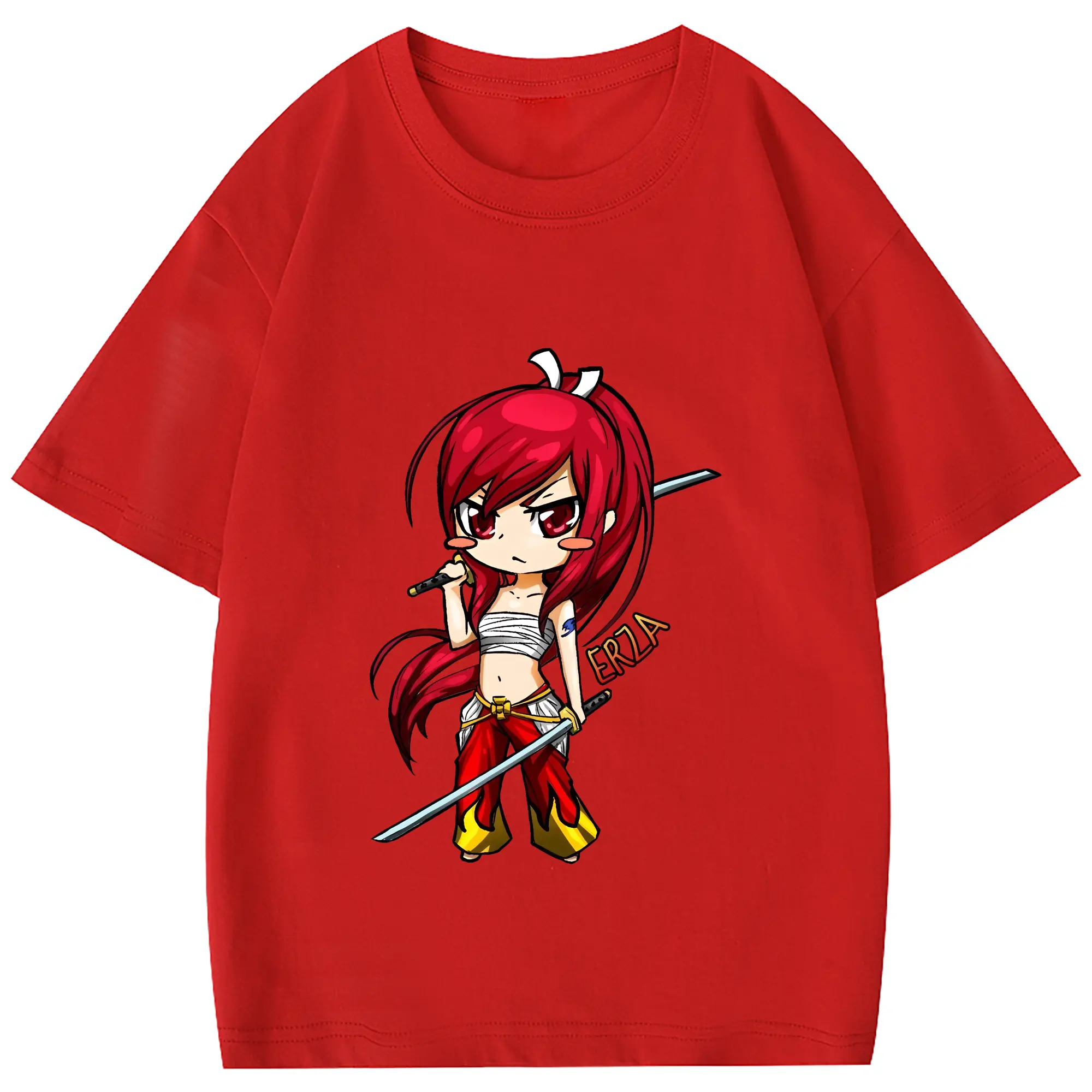 フェアリーテイル グッズ エルザ・スカーレット - 綿100% 半袖Tシャツ ・ フロントプリント ・ 快適 通気性 ・ 日常使い 散歩 スポーツ用