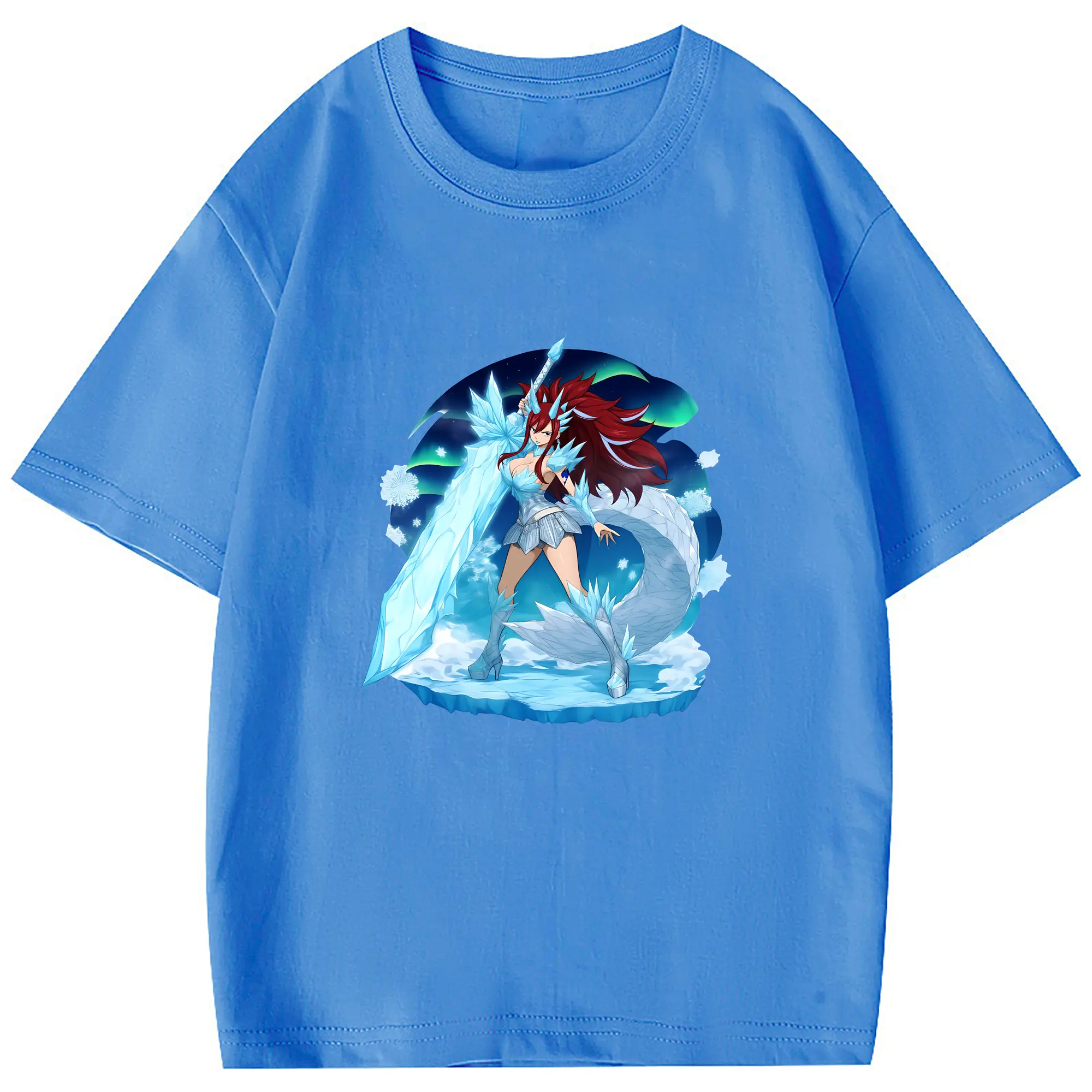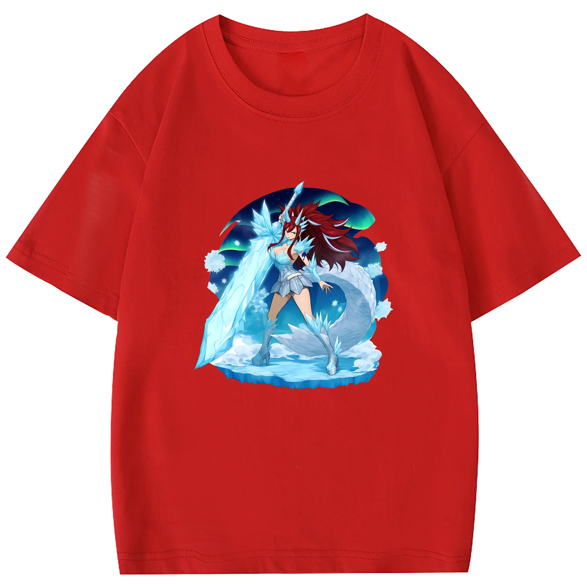 フェアリーテイル グッズ エルザ・スカーレット - 綿100% 半袖Tシャツ ・ フロントプリント ・ 快適 通気性 ・ 日常使い 散歩 スポーツ用