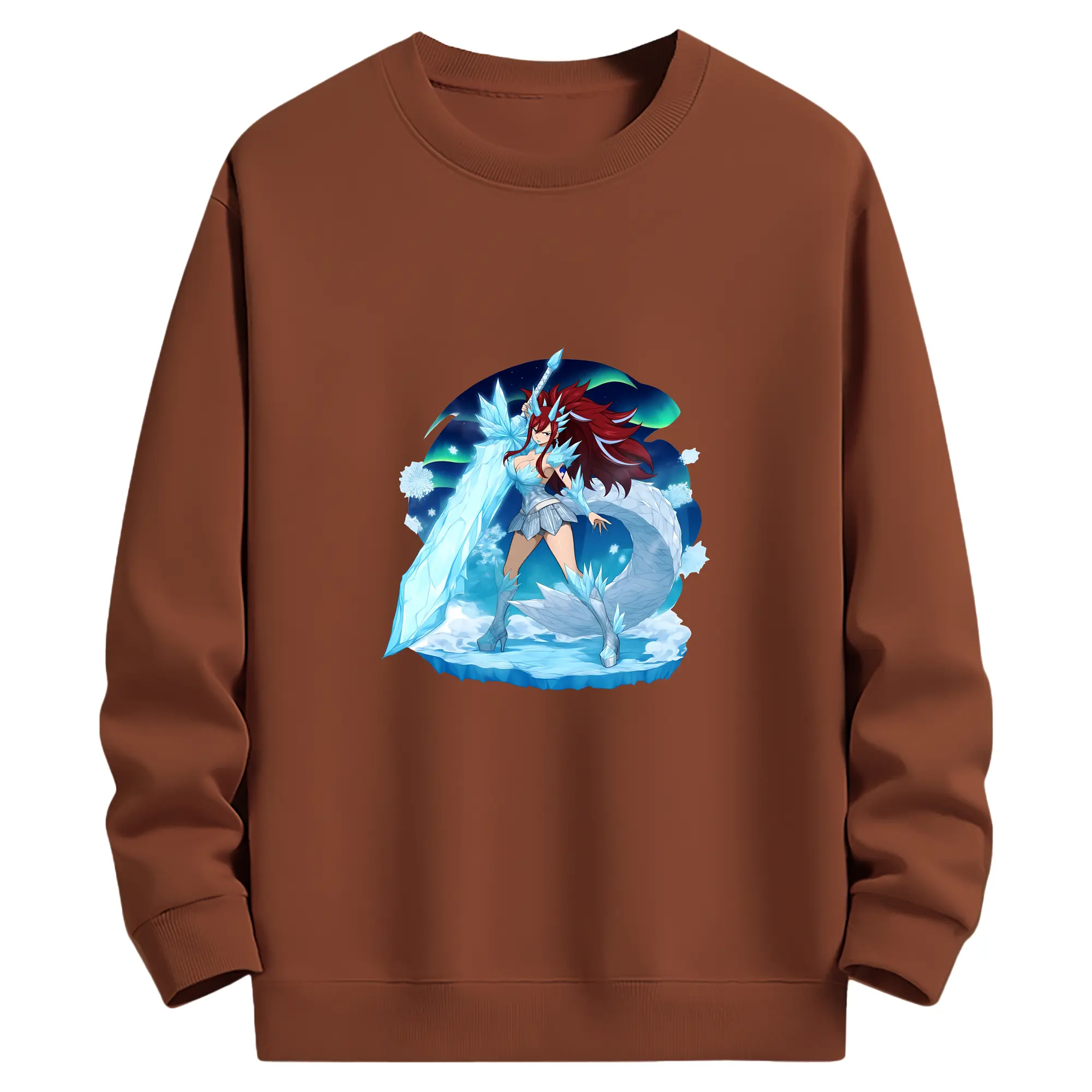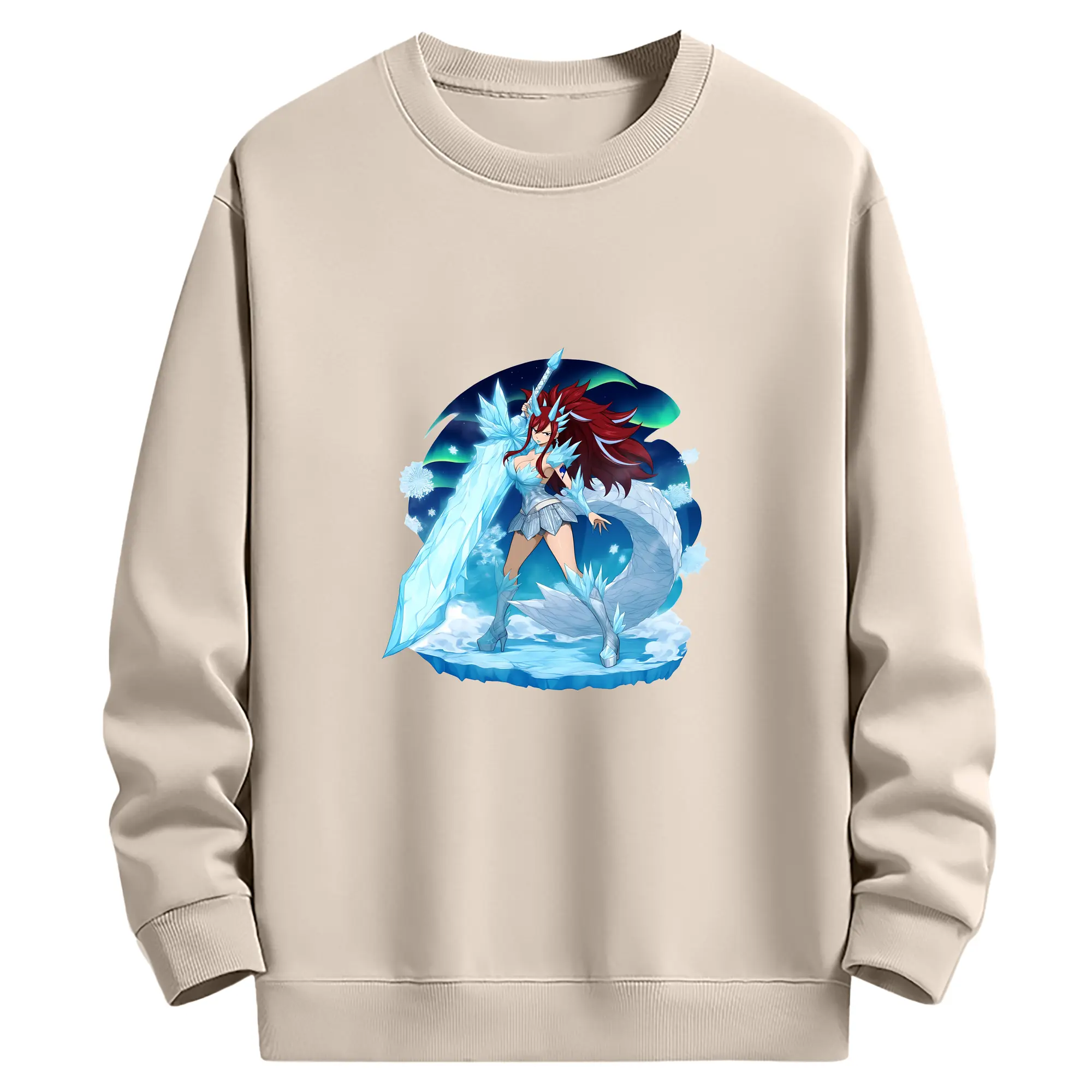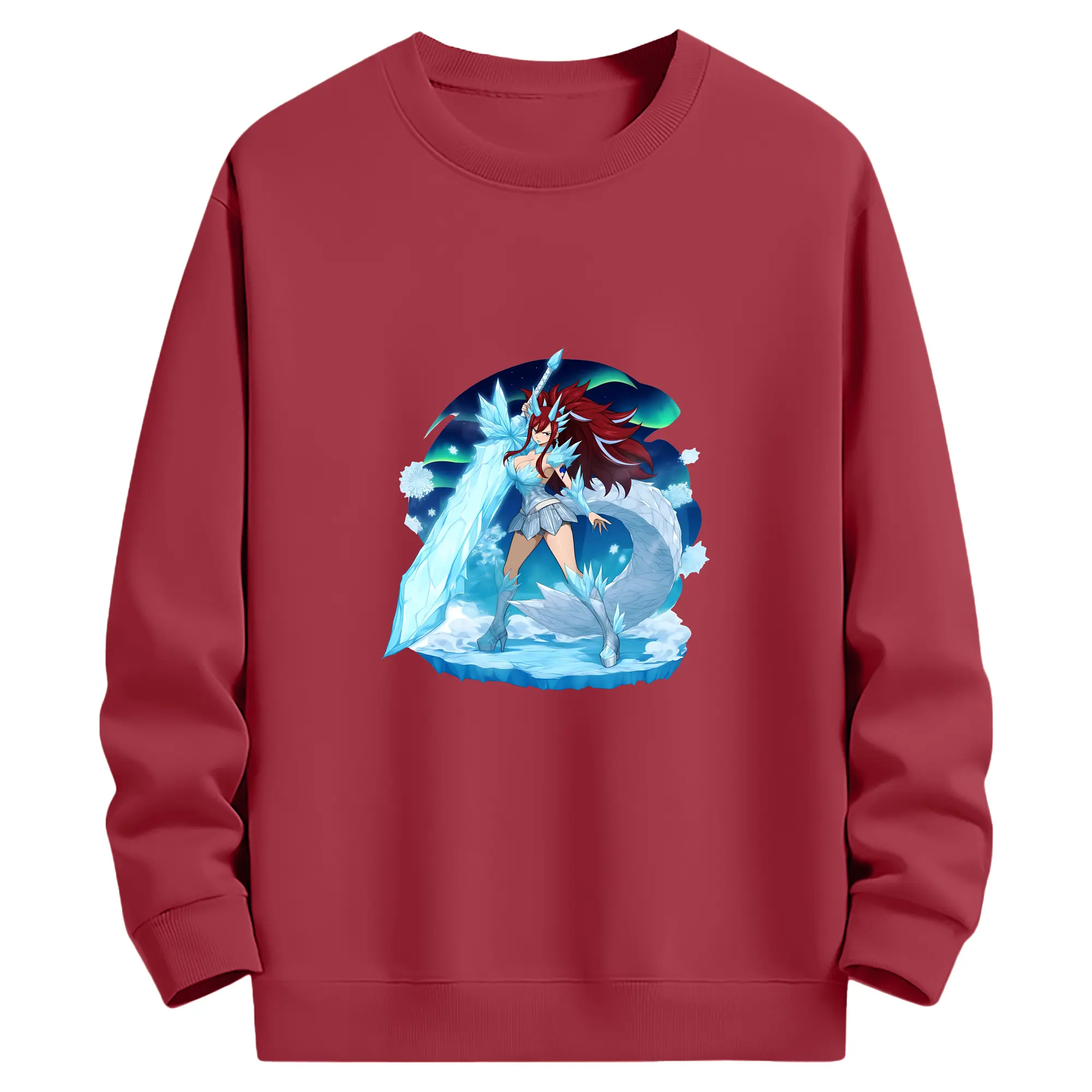 フェアリーテイル グッズ エルザ・スカーレット - 薄手 クルーネック スウェット 裏毛260g · ポリエステル 春秋向け カジュアル 男女兼用 · トレーナー デイリー スポーツ 散歩に最適