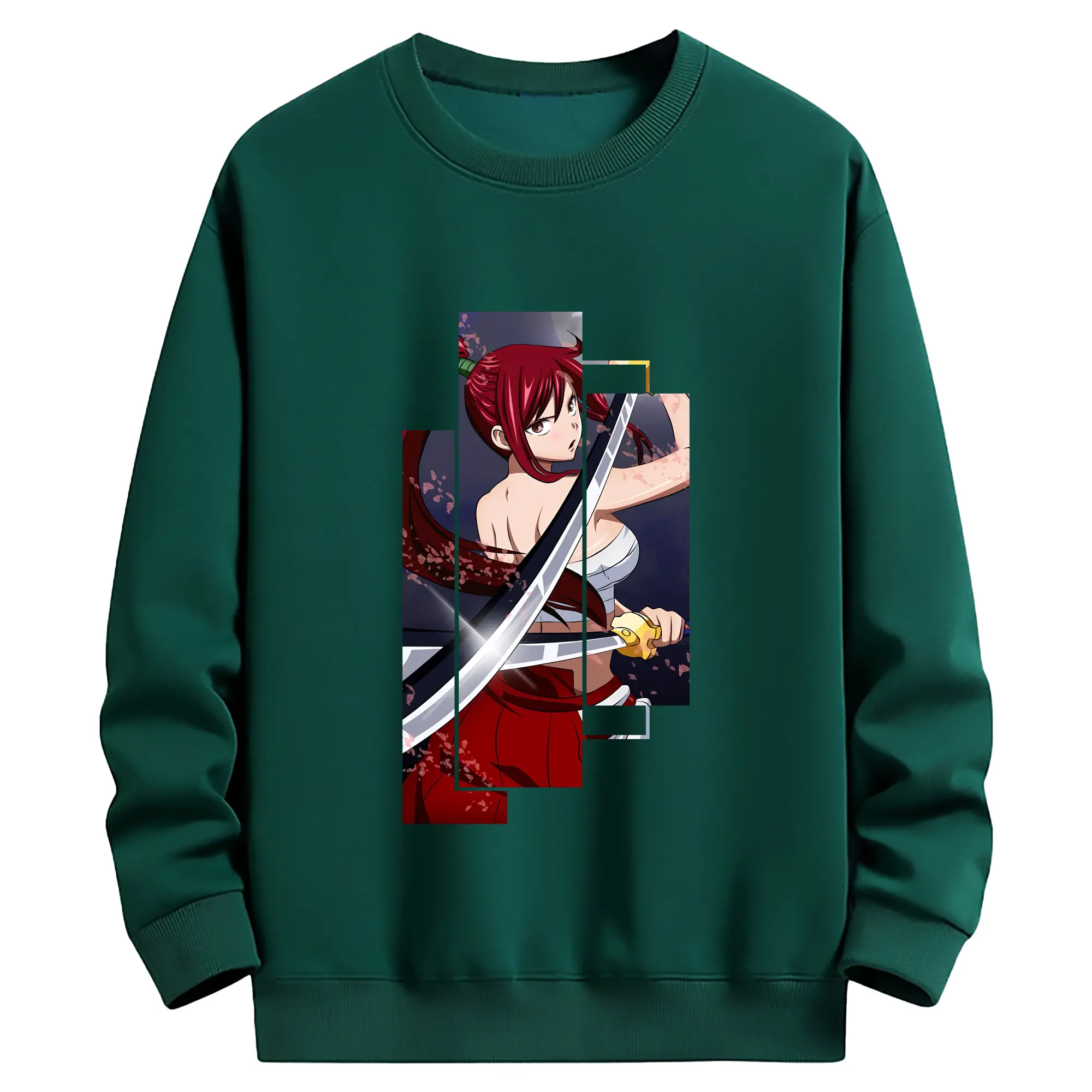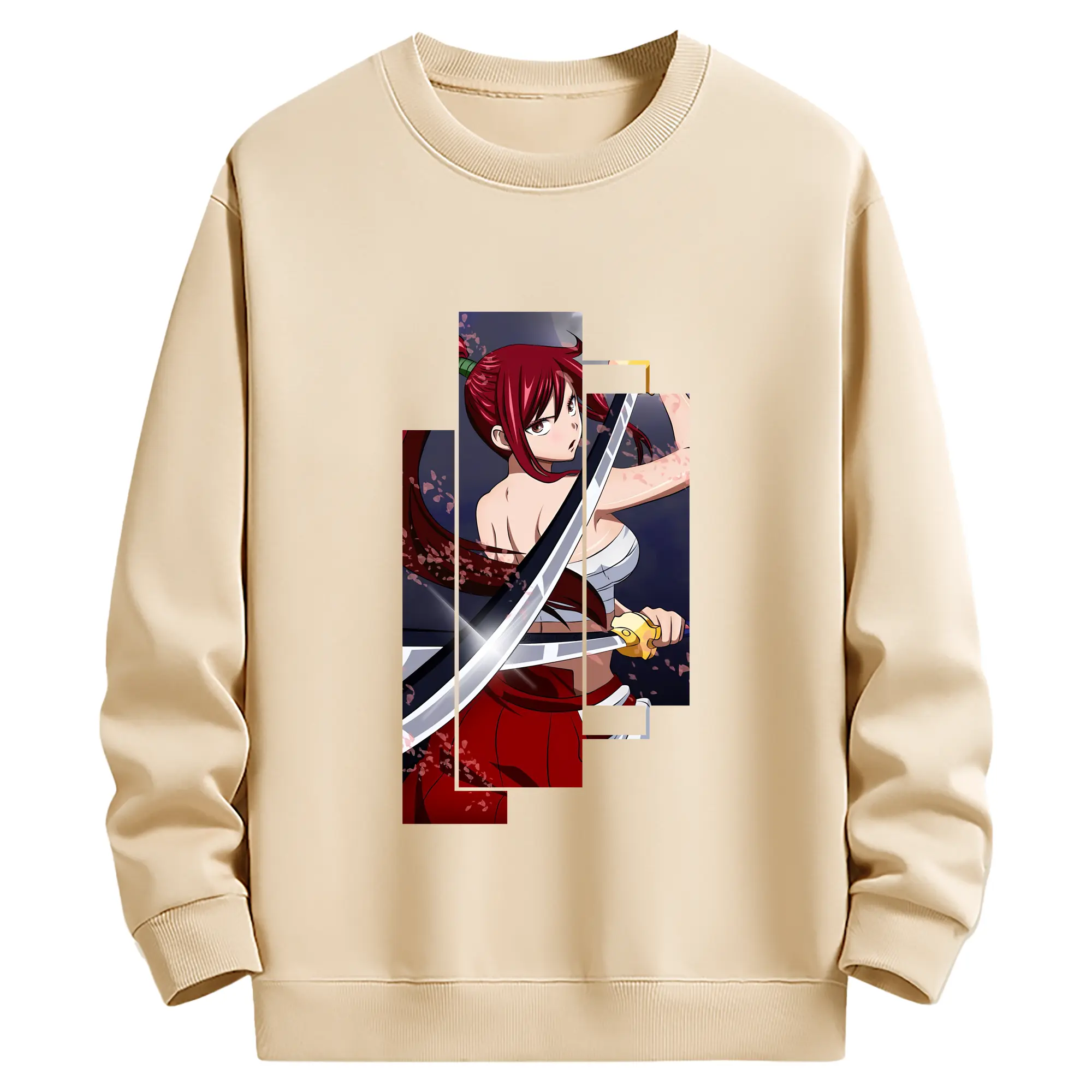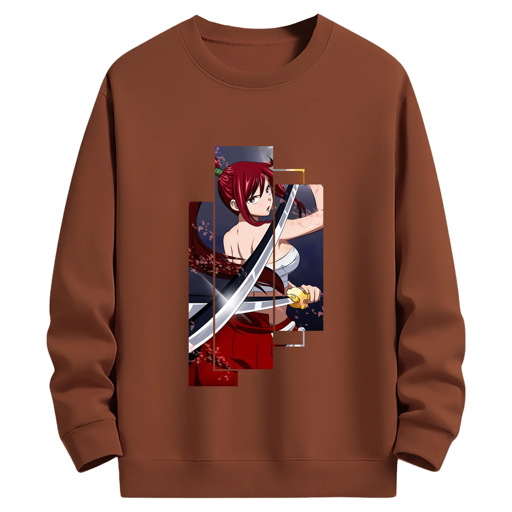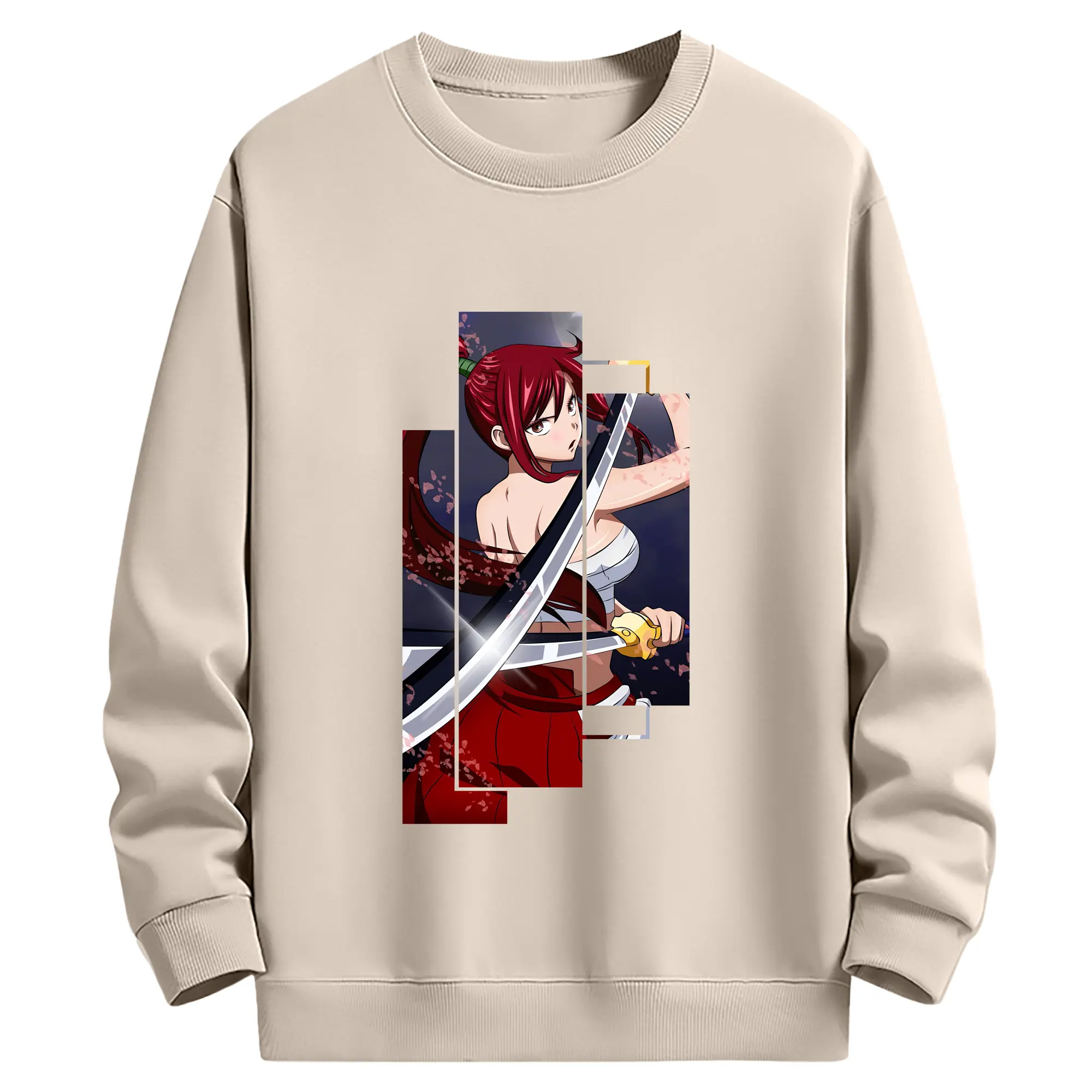 フェアリーテイル グッズ エルザ・スカーレット - 薄手 クルーネック スウェット 裏毛260g · ポリエステル 春秋向け カジュアル 男女兼用 · トレーナー デイリー スポーツ 散歩に最適