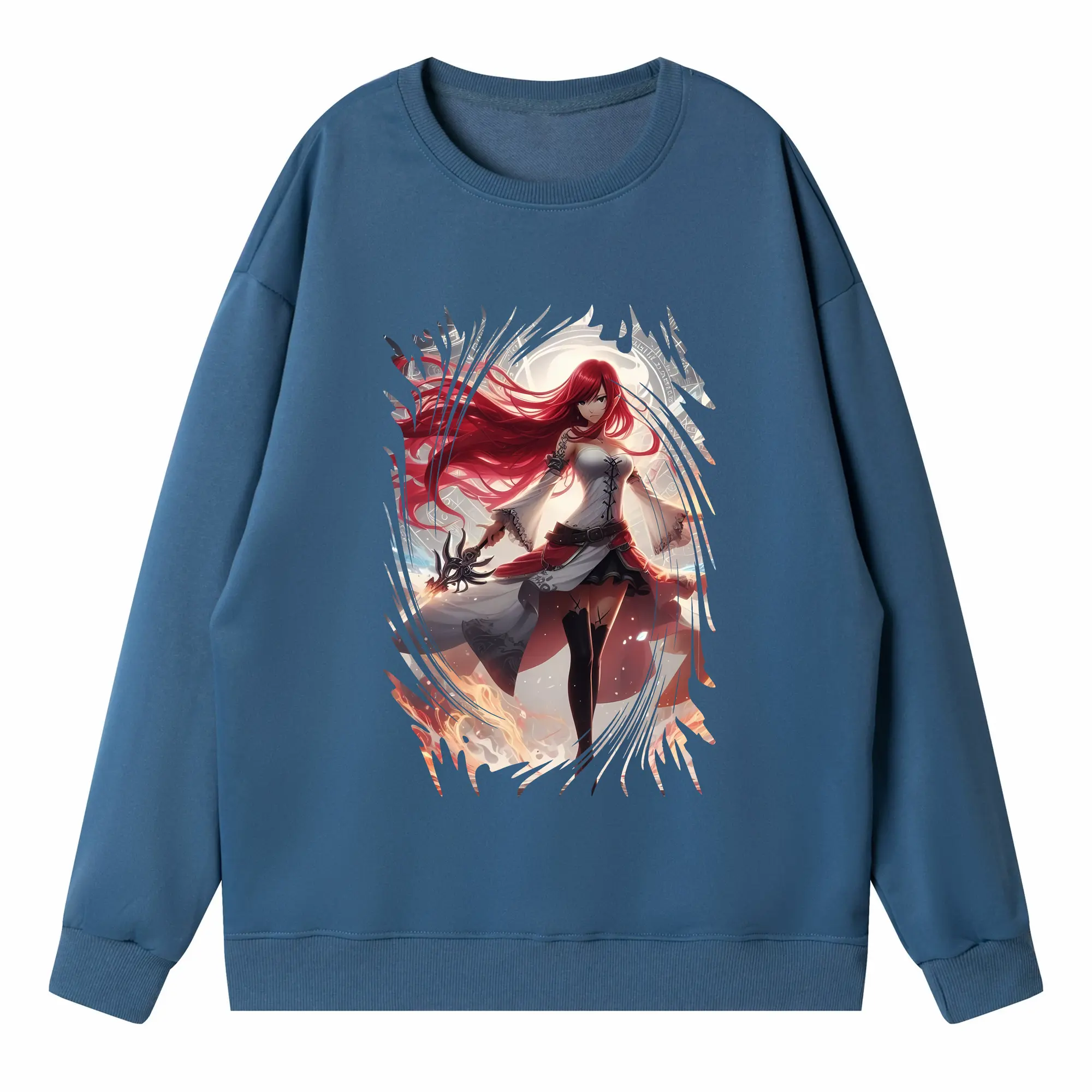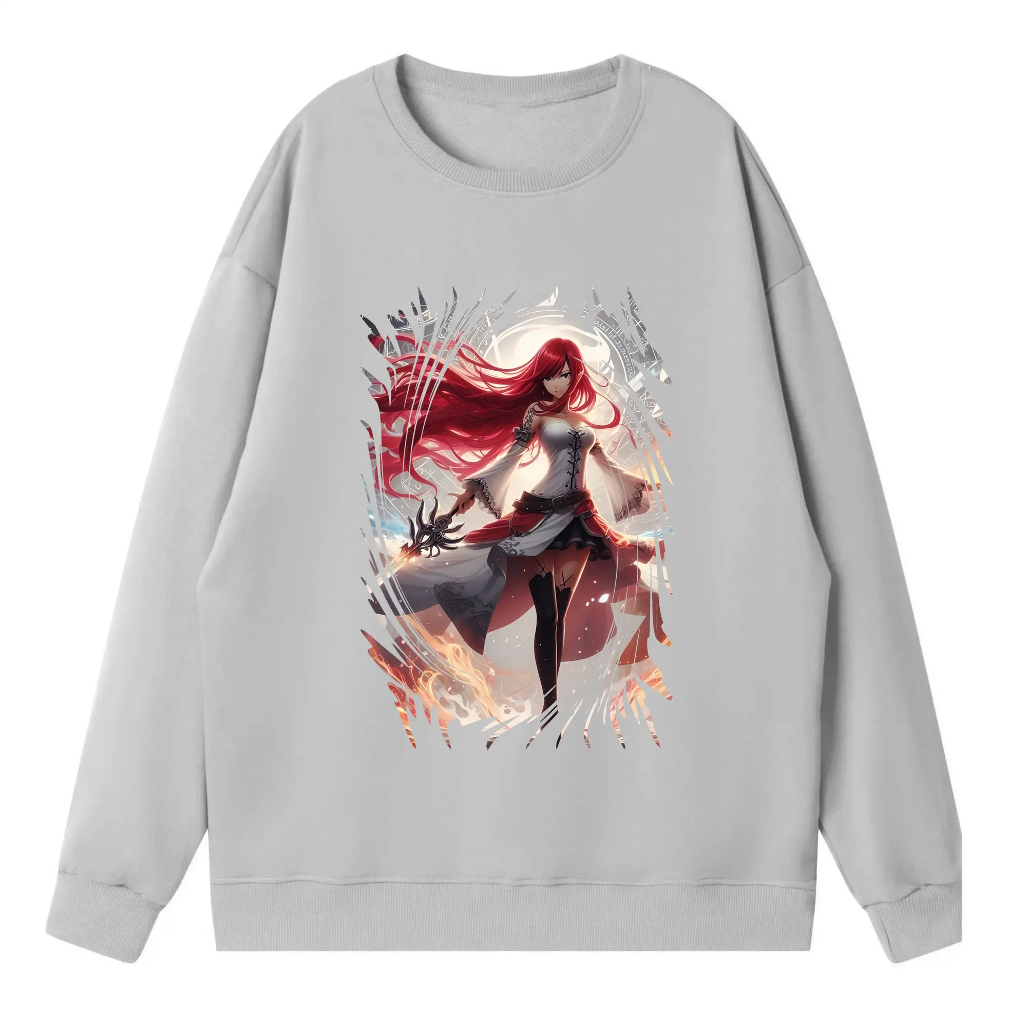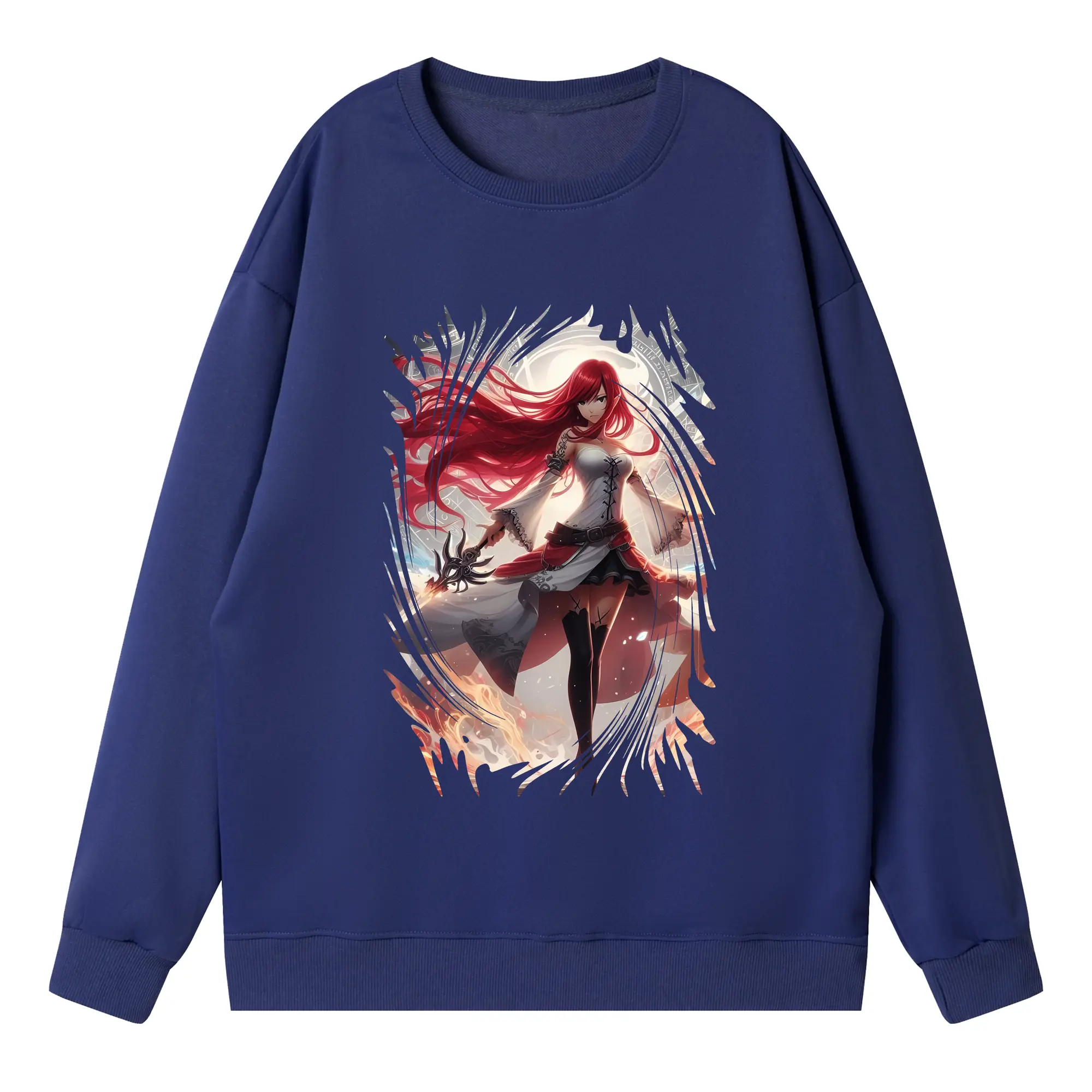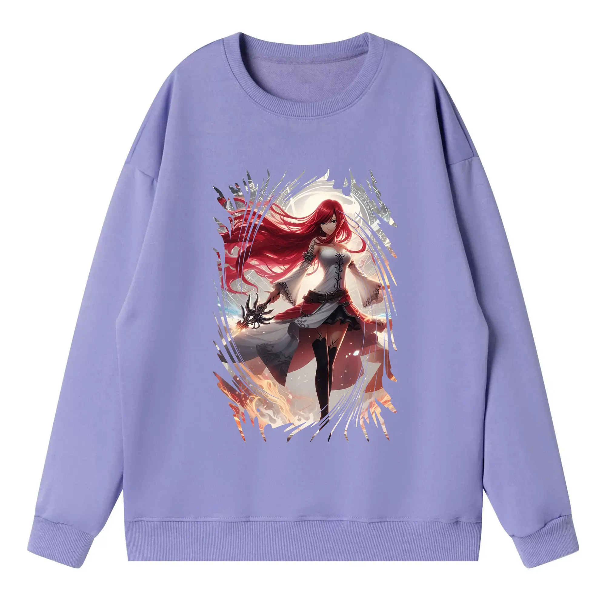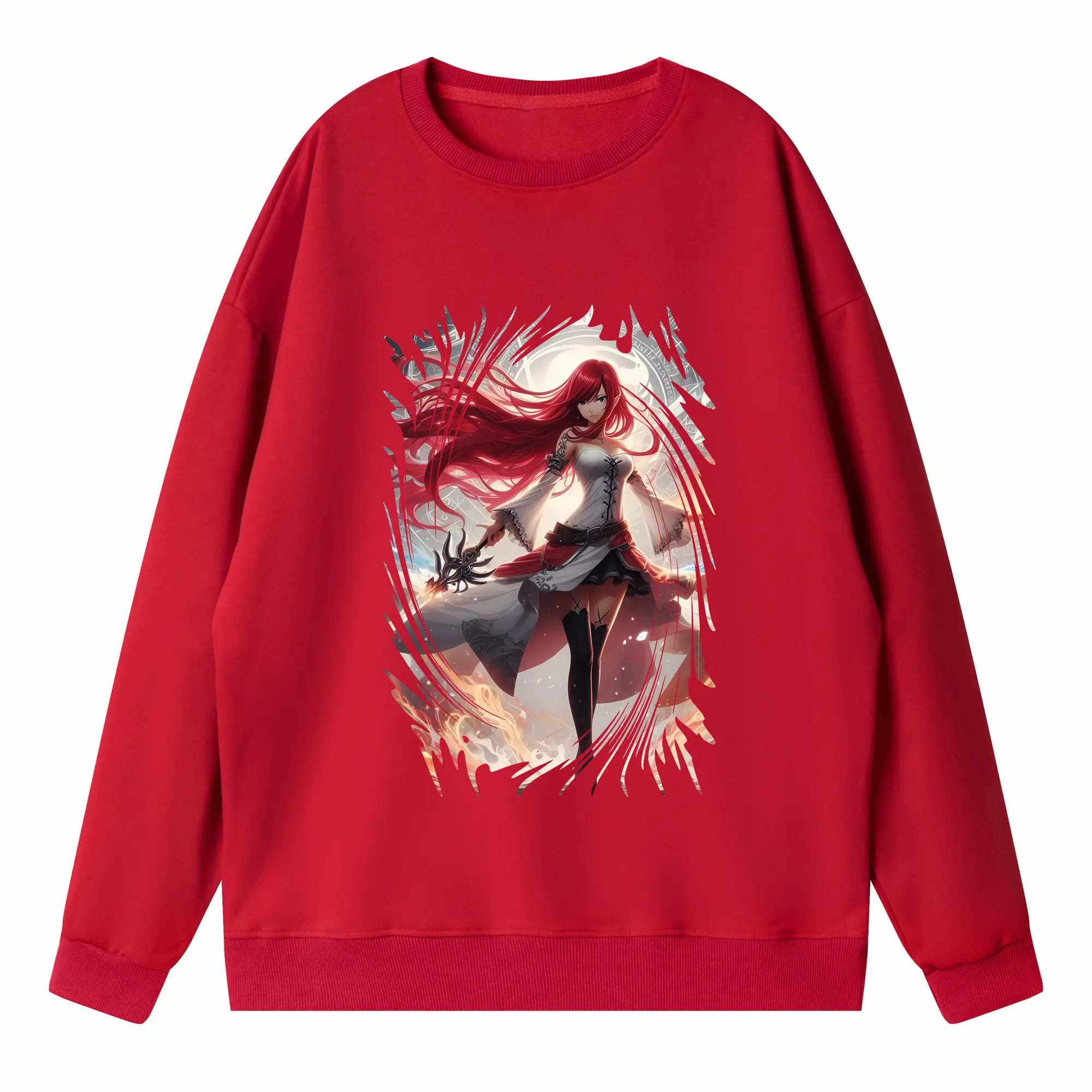 フェアリーテイル グッズ エルザ・スカーレット - 高品質 クルーネック スウェット ・ コットン59% ポリエステル41% ・ ユニセックス 長袖 トレーナー ・ カジュアル デイリー スポーツ 散歩用