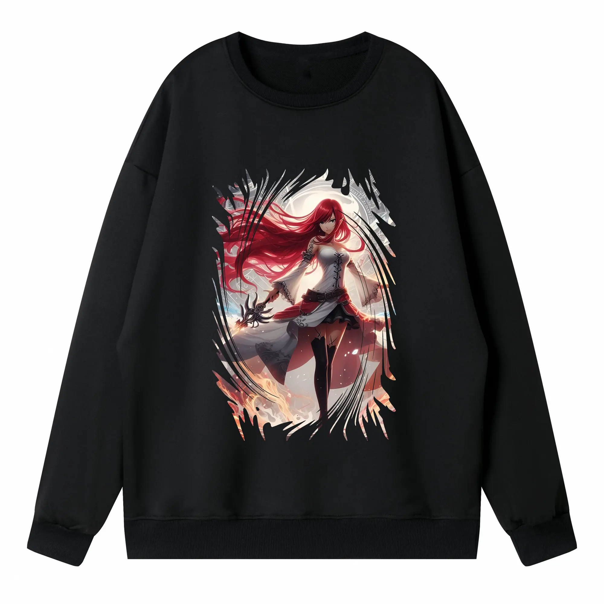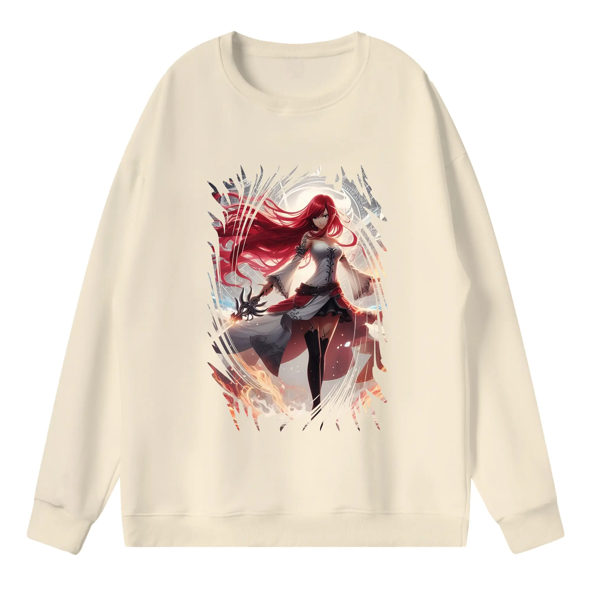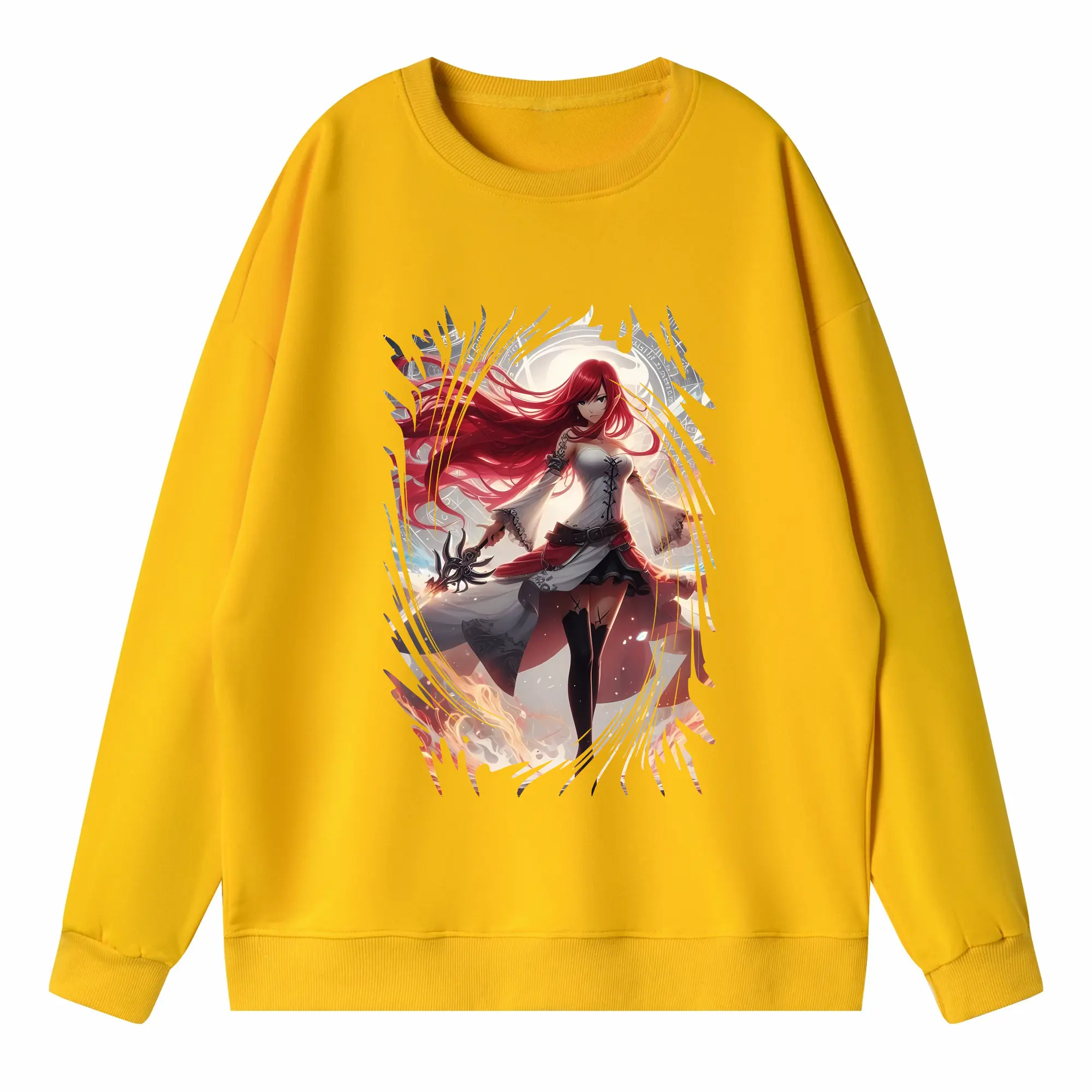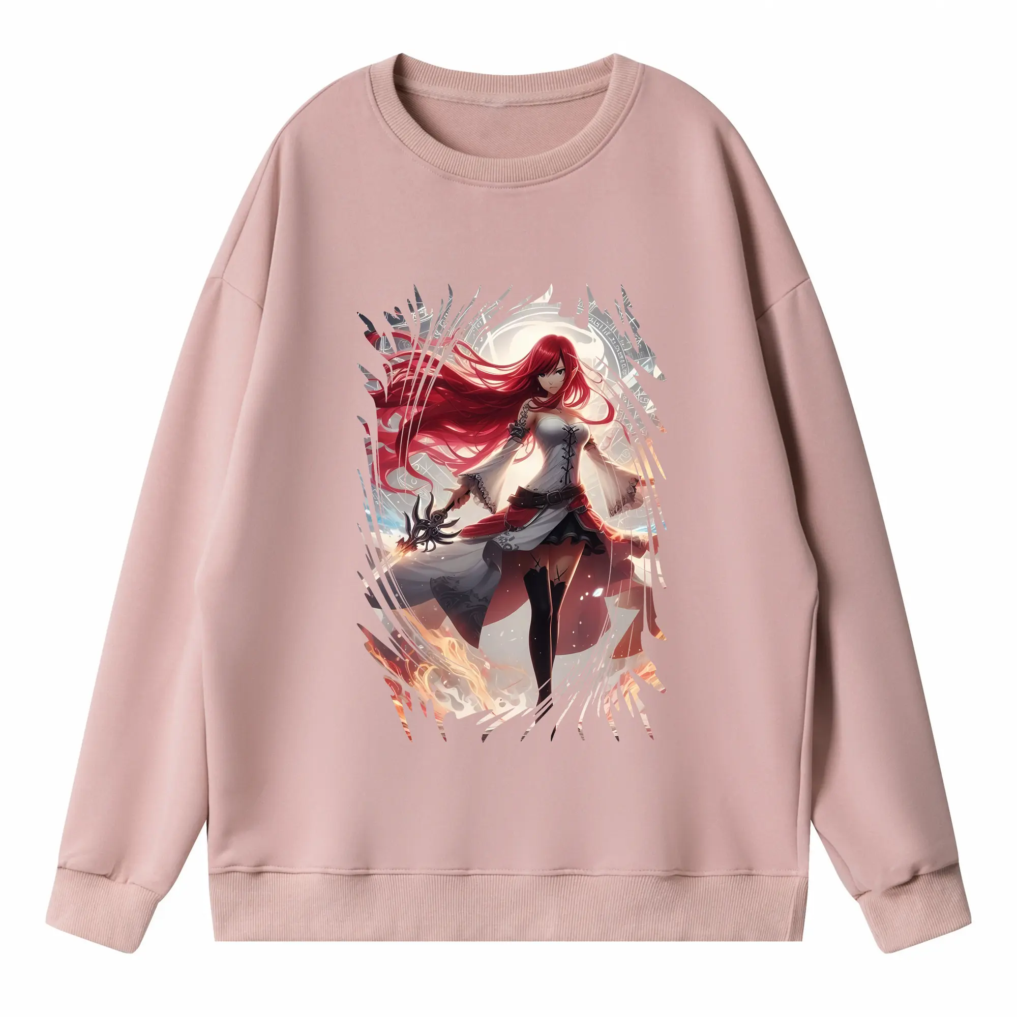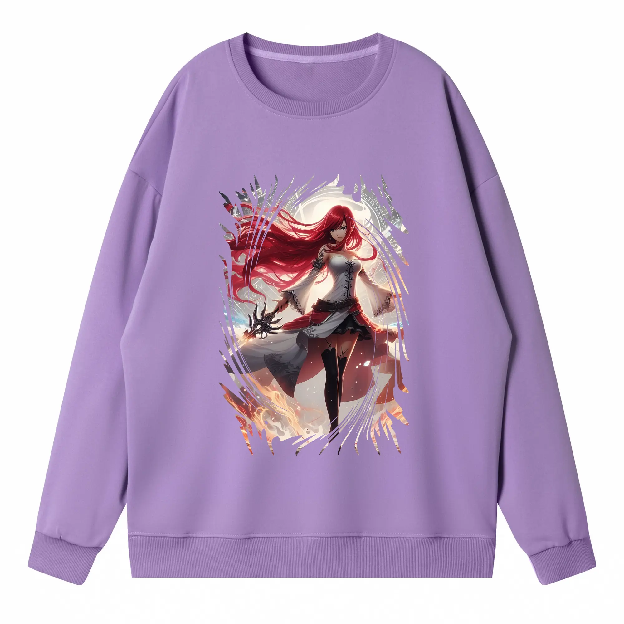 フェアリーテイル グッズ エルザ・スカーレット - 高品質 クルーネック スウェット ・ コットン59% ポリエステル41% ・ ユニセックス 長袖 トレーナー ・ カジュアル デイリー スポーツ 散歩用
