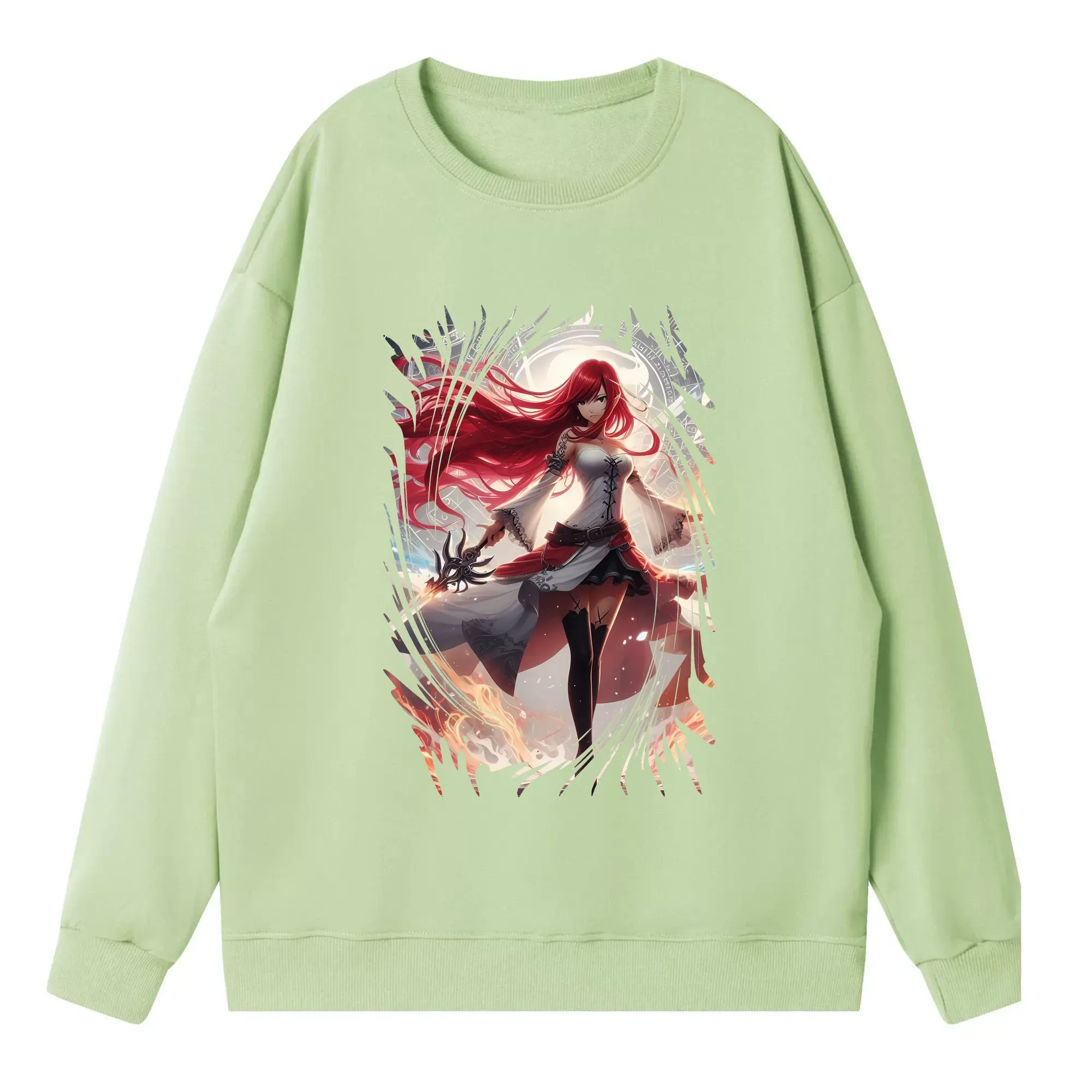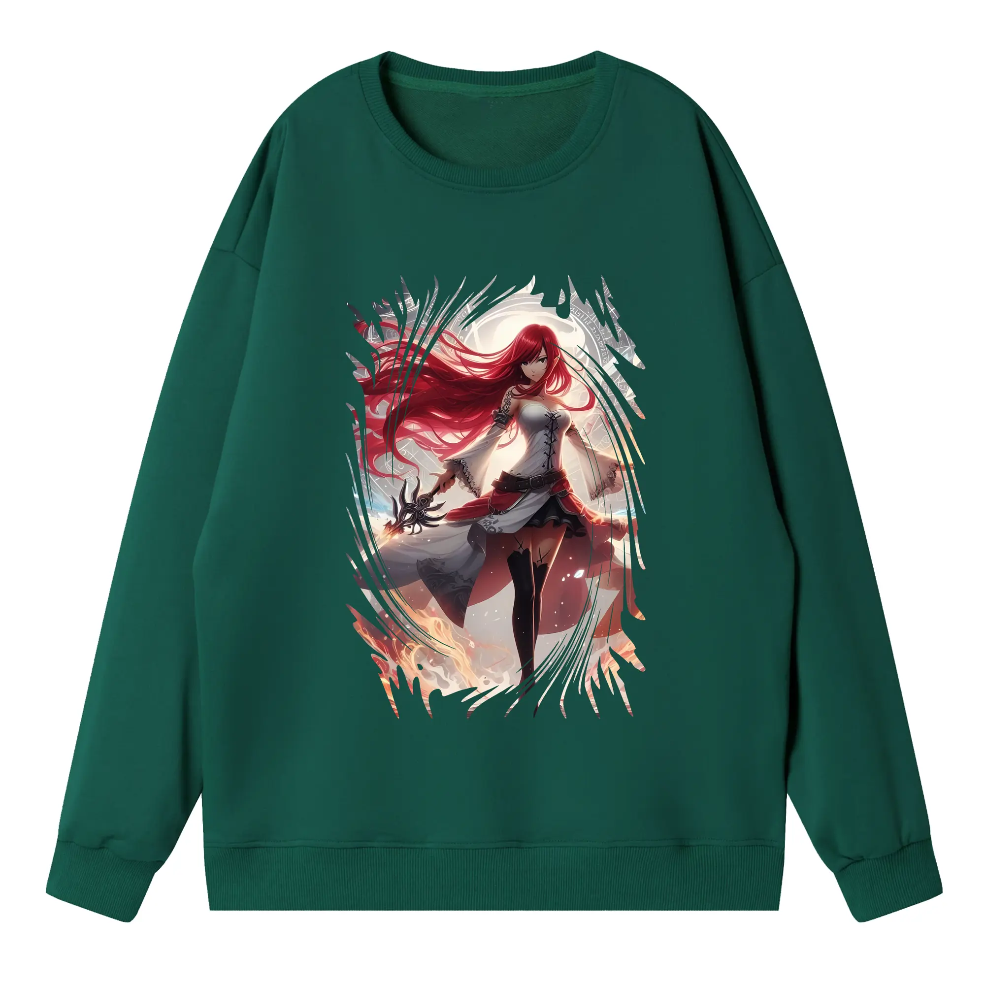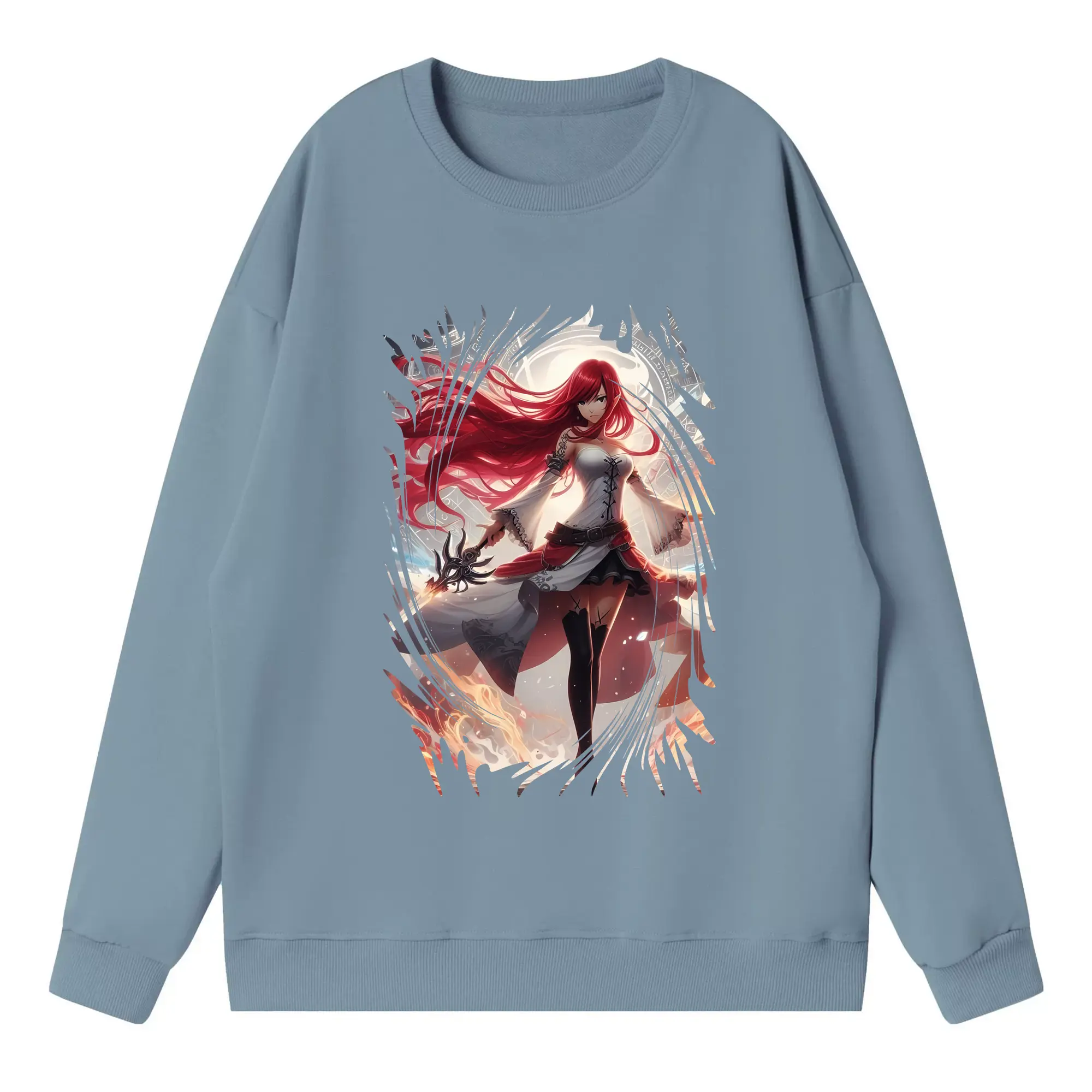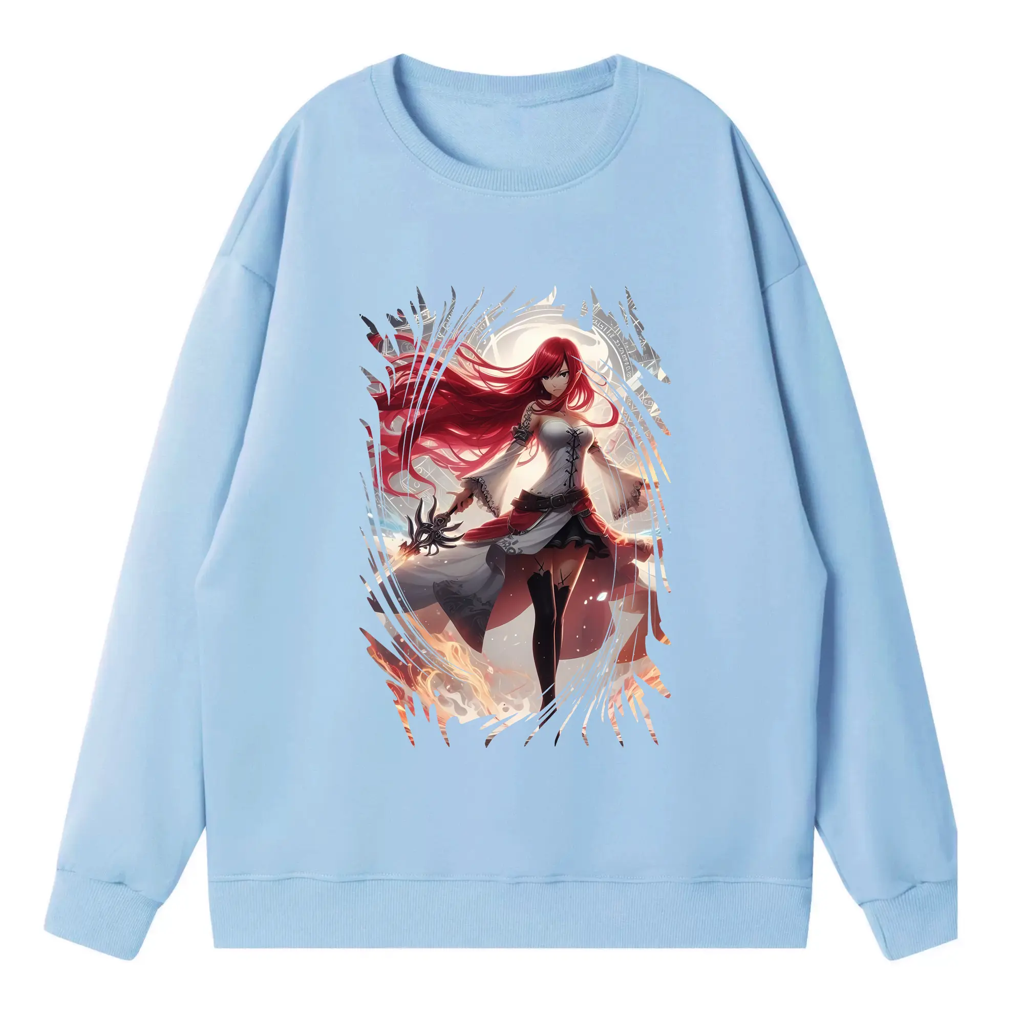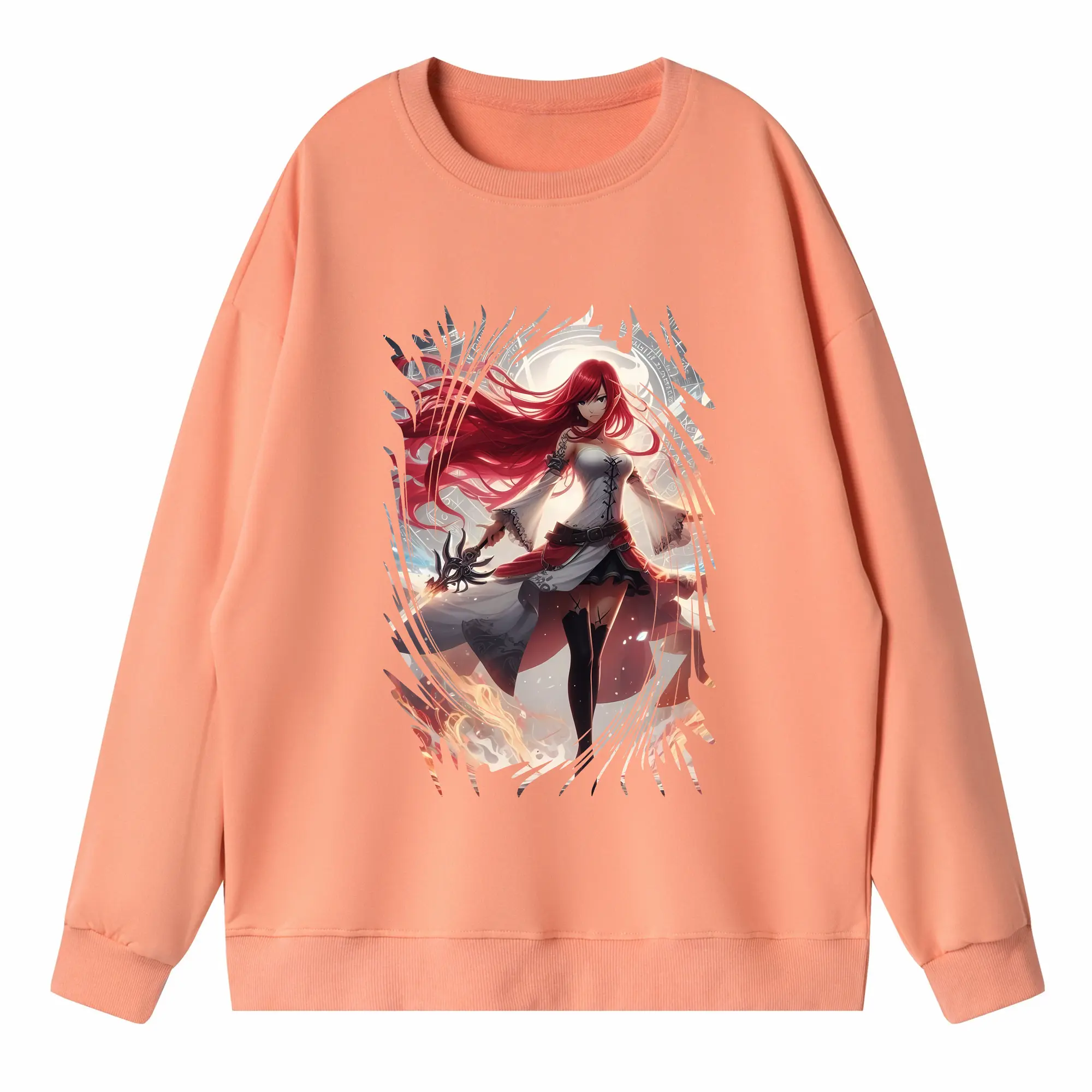 フェアリーテイル グッズ エルザ・スカーレット - 高品質 クルーネック スウェット ・ コットン59% ポリエステル41% ・ ユニセックス 長袖 トレーナー ・ カジュアル デイリー スポーツ 散歩用