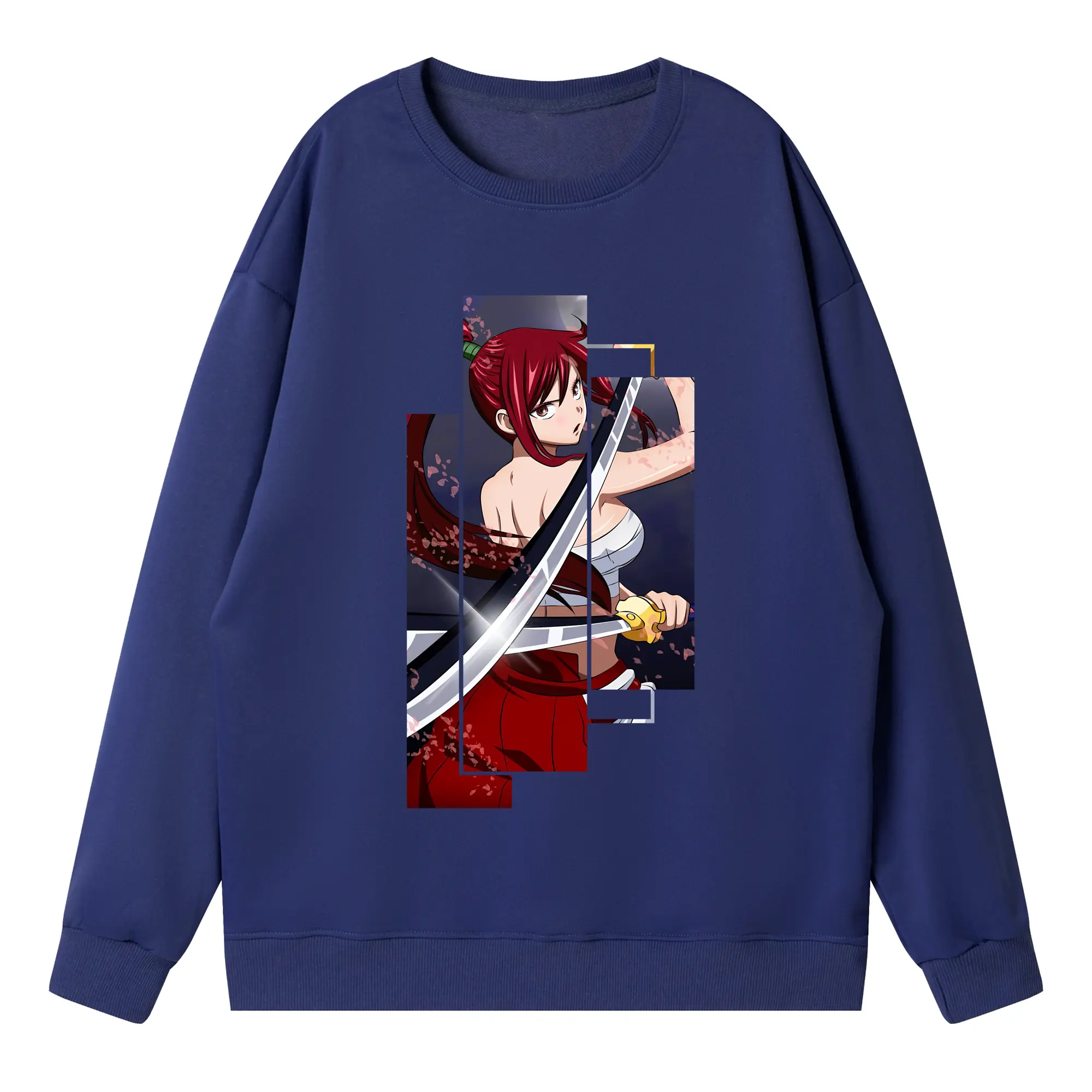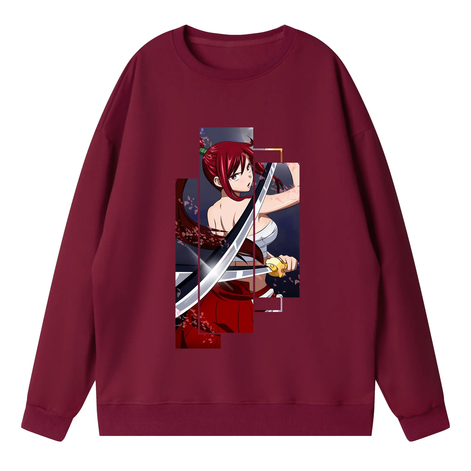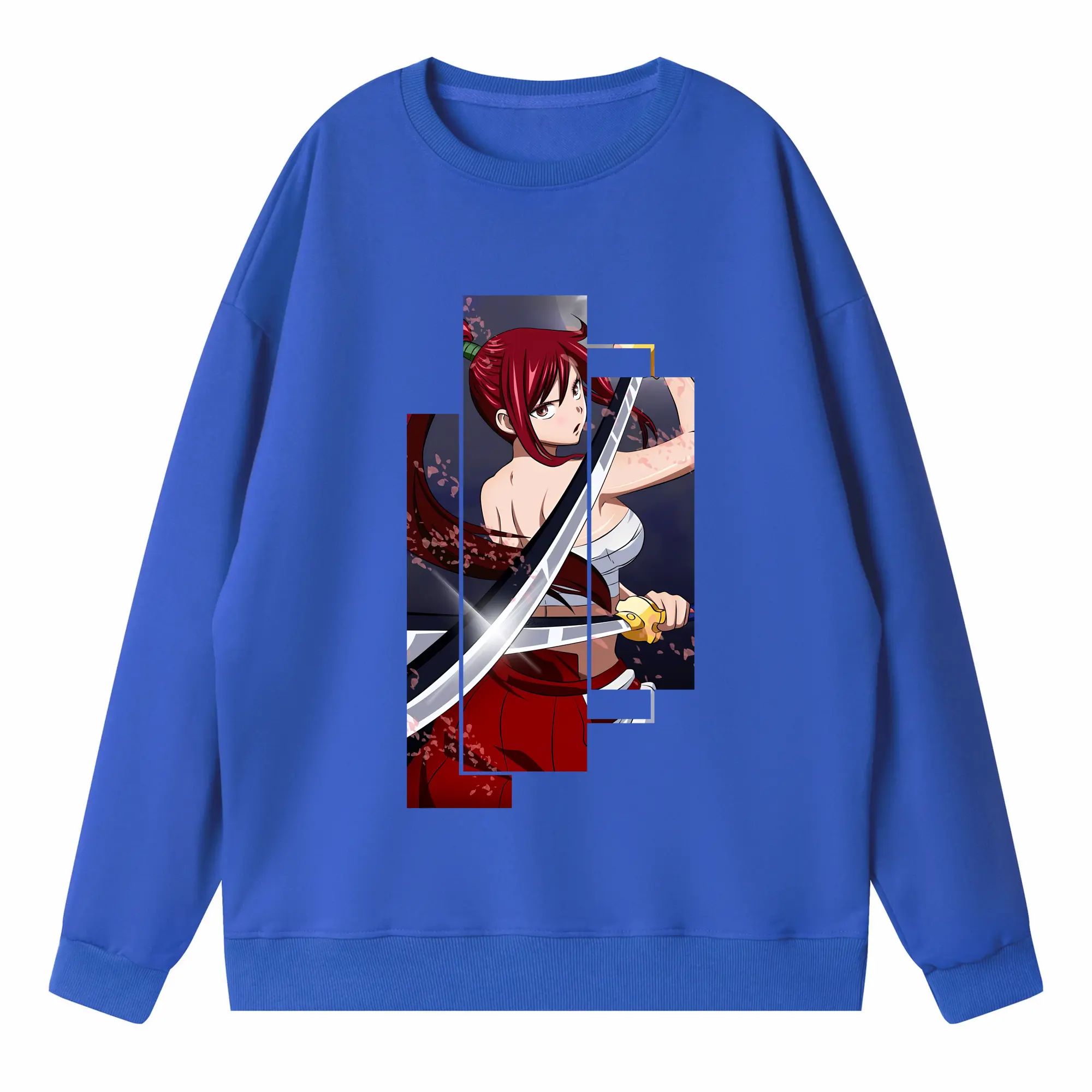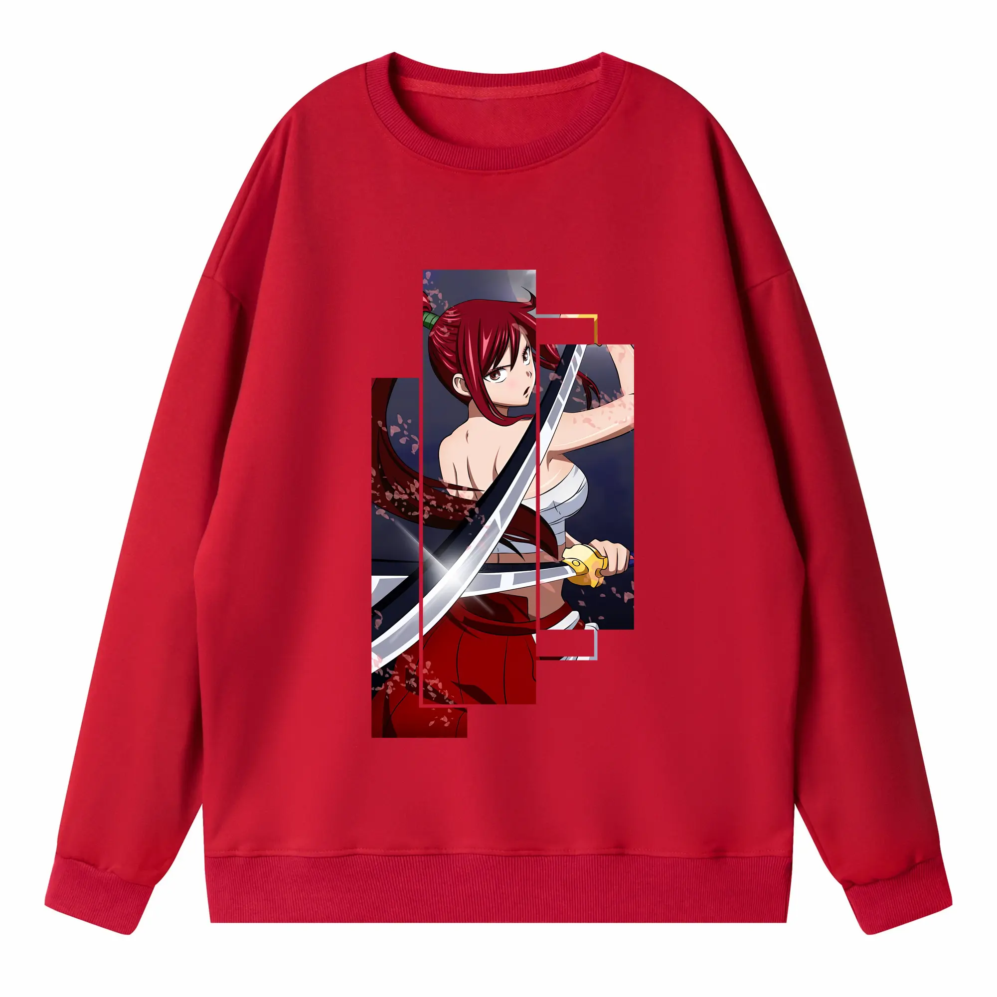 フェアリーテイル グッズ エルザ・スカーレット - 高品質 クルーネック スウェット ・ コットン59% ポリエステル41% ・ ユニセックス 長袖 トレーナー ・ カジュアル デイリー スポーツ 散歩用