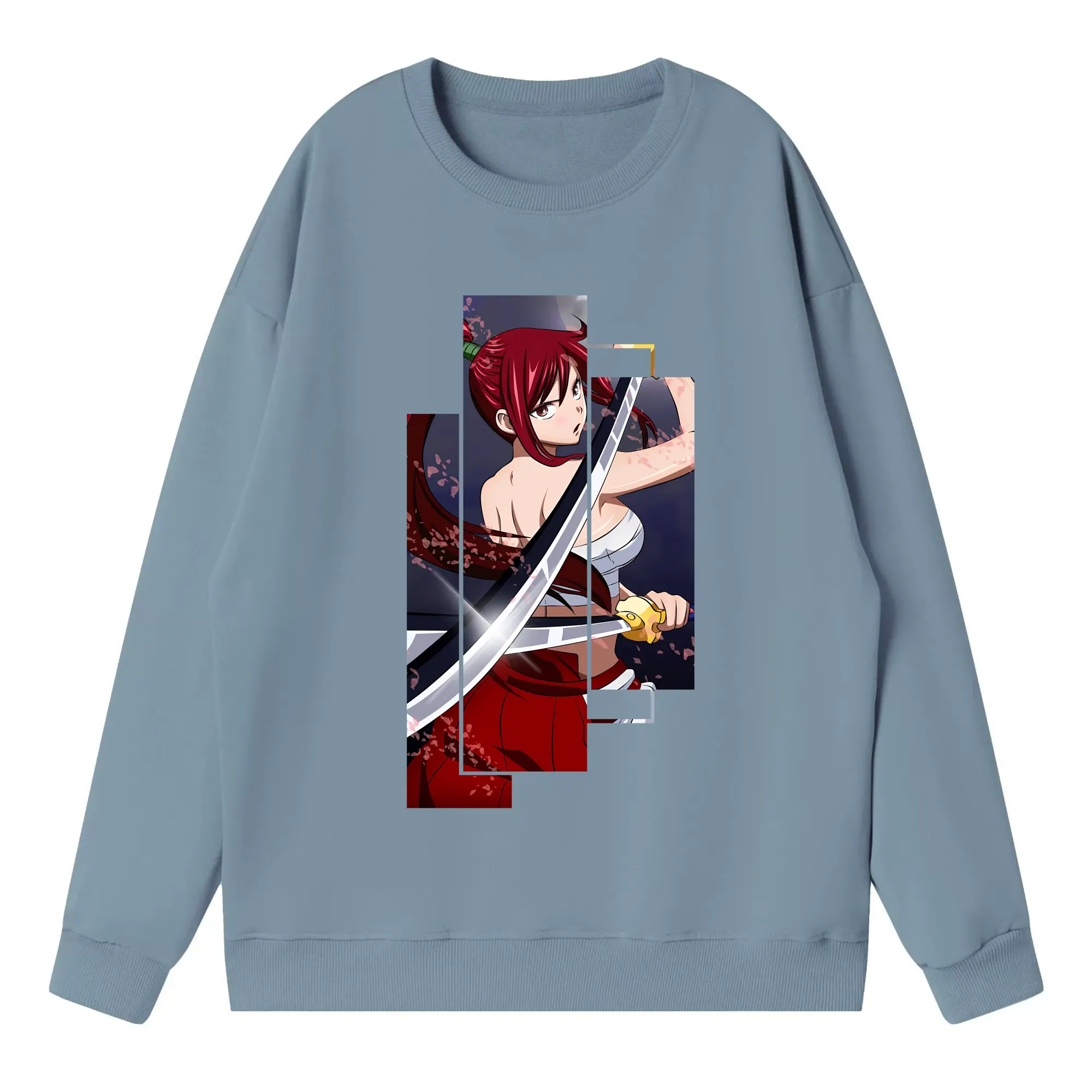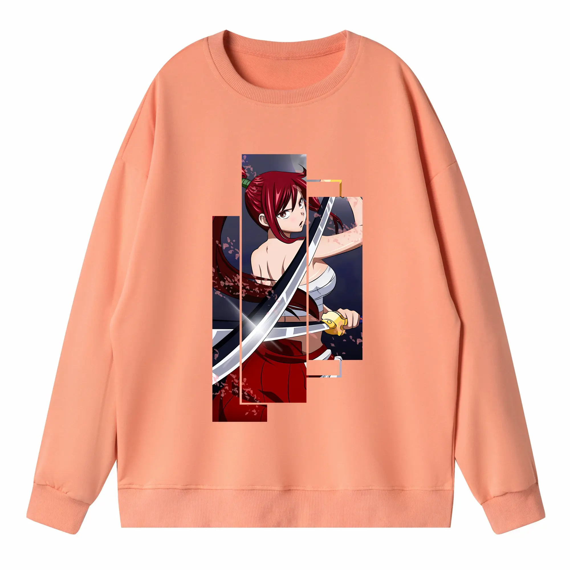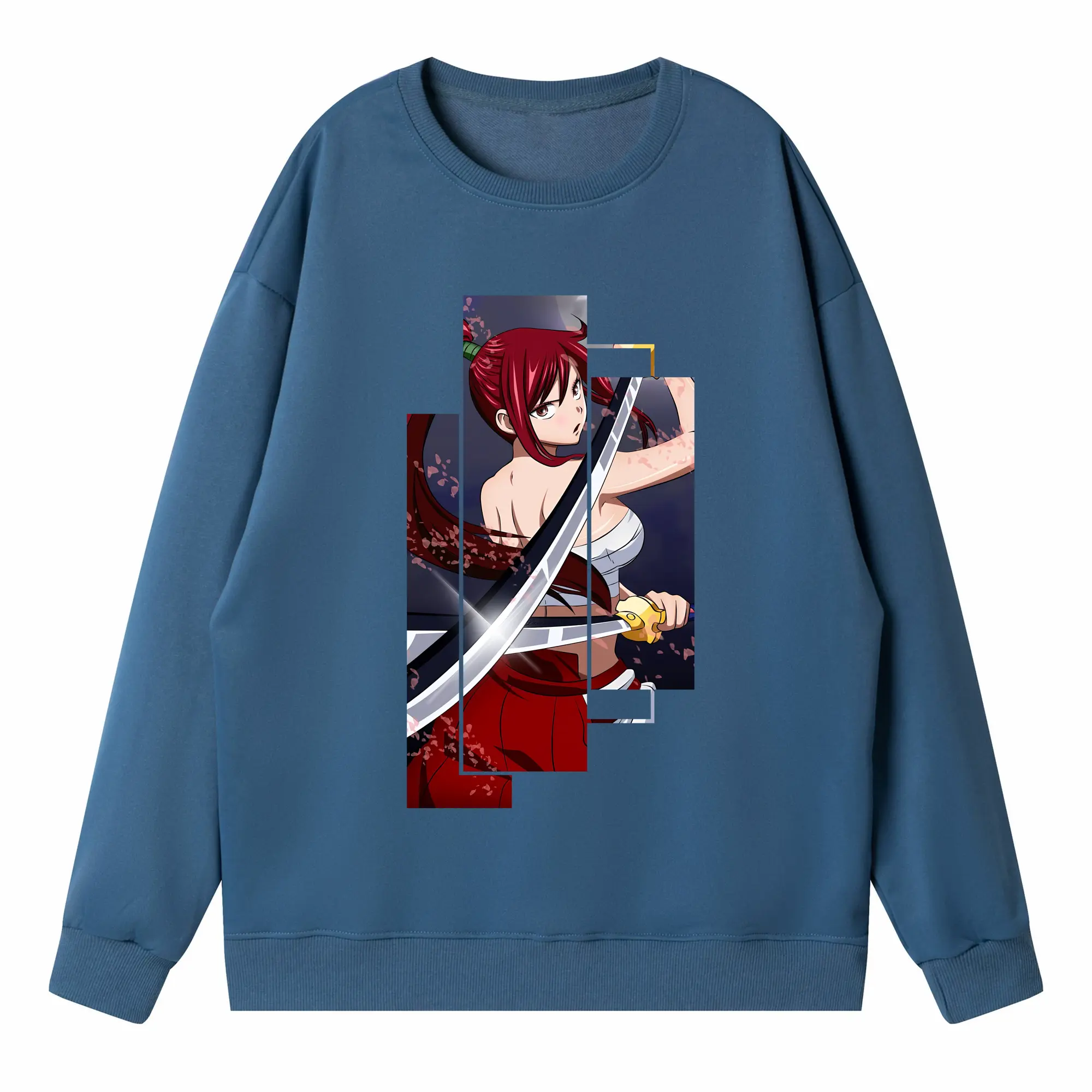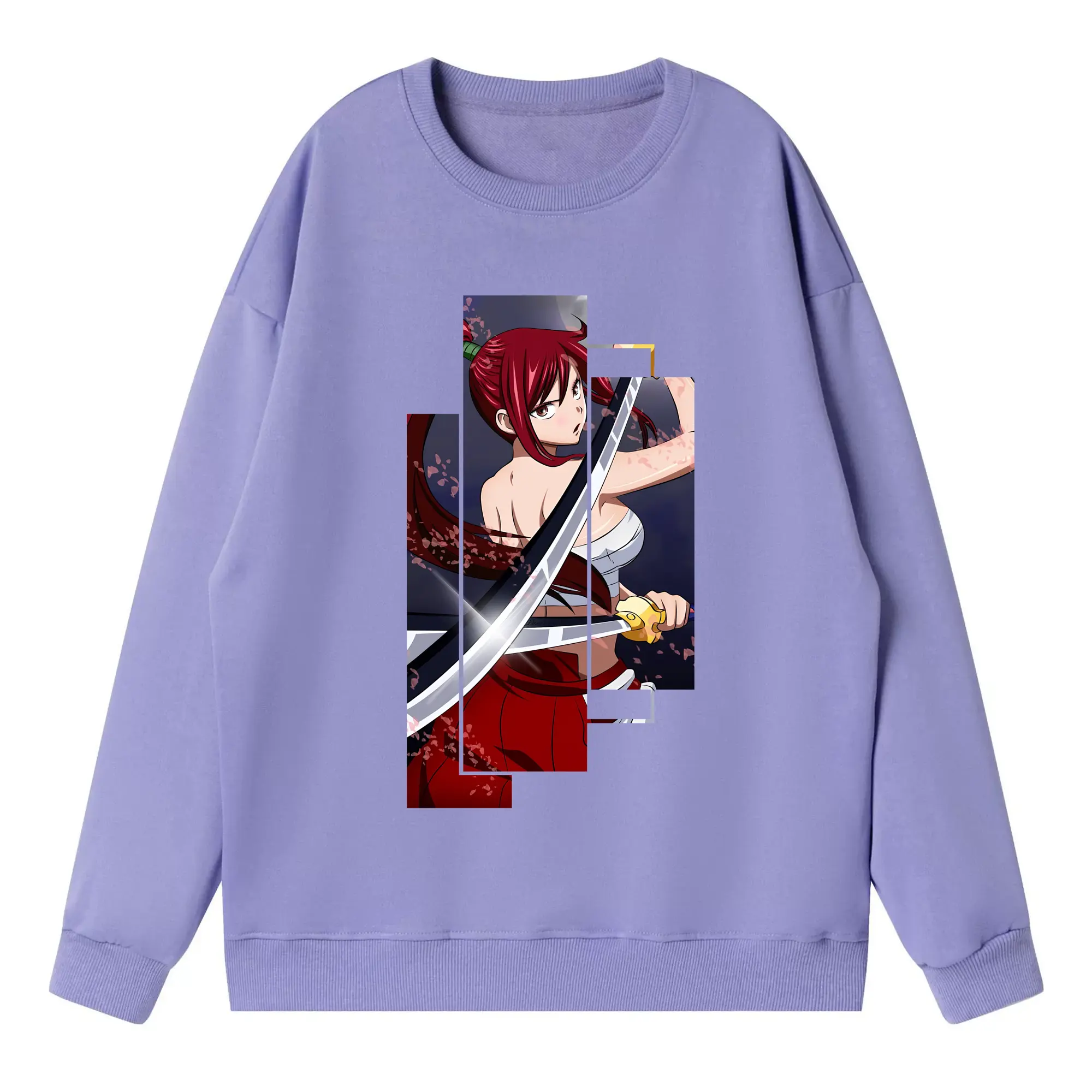 フェアリーテイル グッズ エルザ・スカーレット - 高品質 クルーネック スウェット ・ コットン59% ポリエステル41% ・ ユニセックス 長袖 トレーナー ・ カジュアル デイリー スポーツ 散歩用