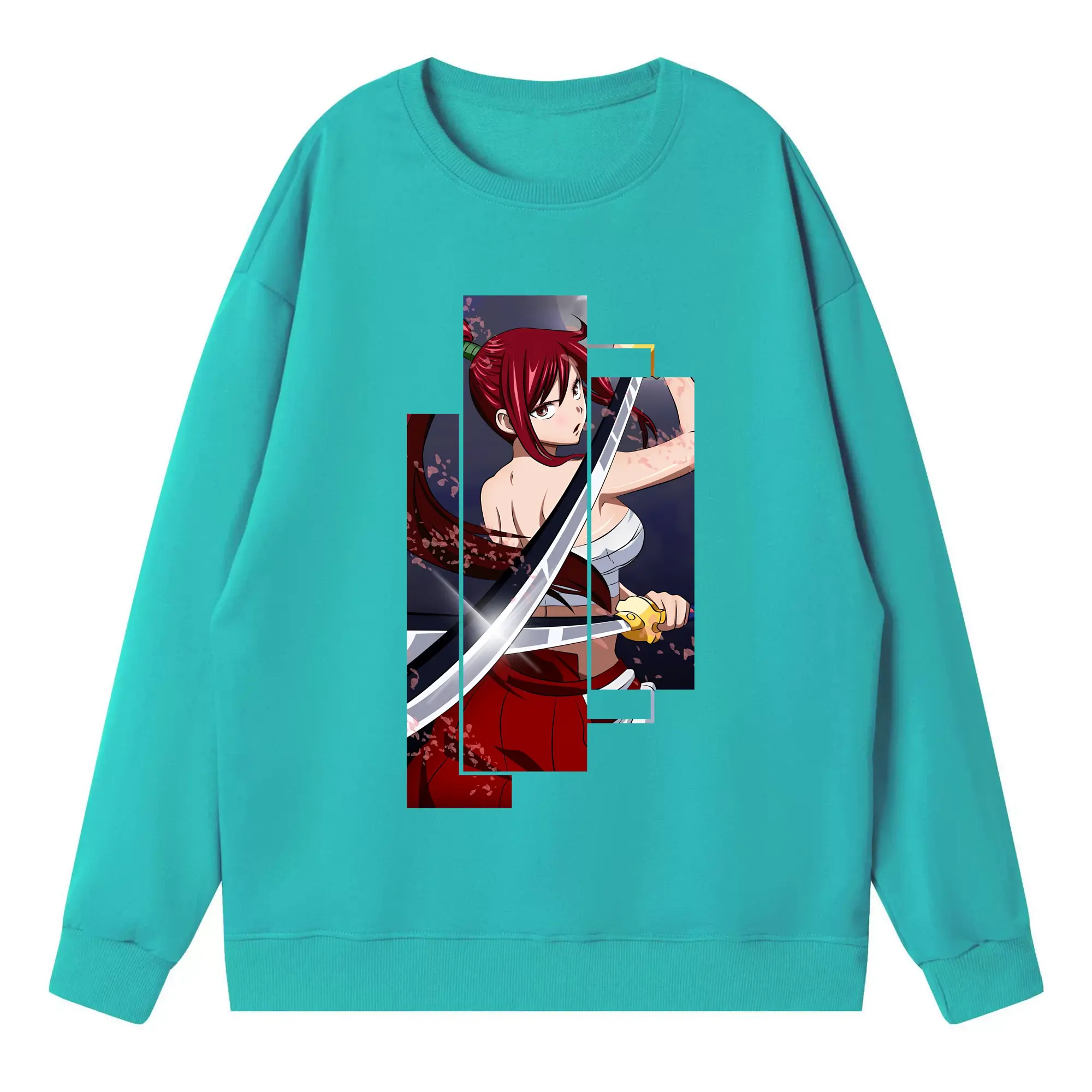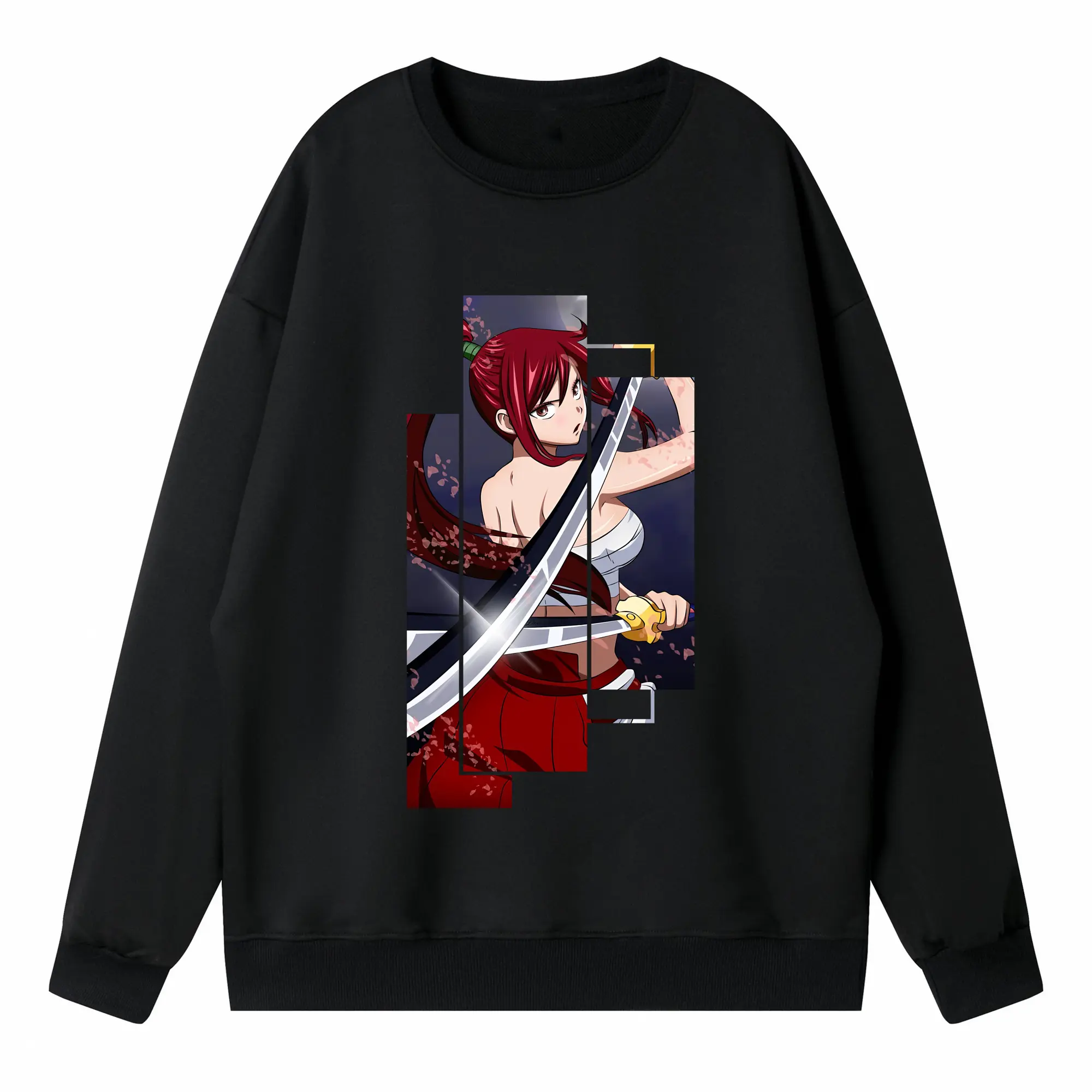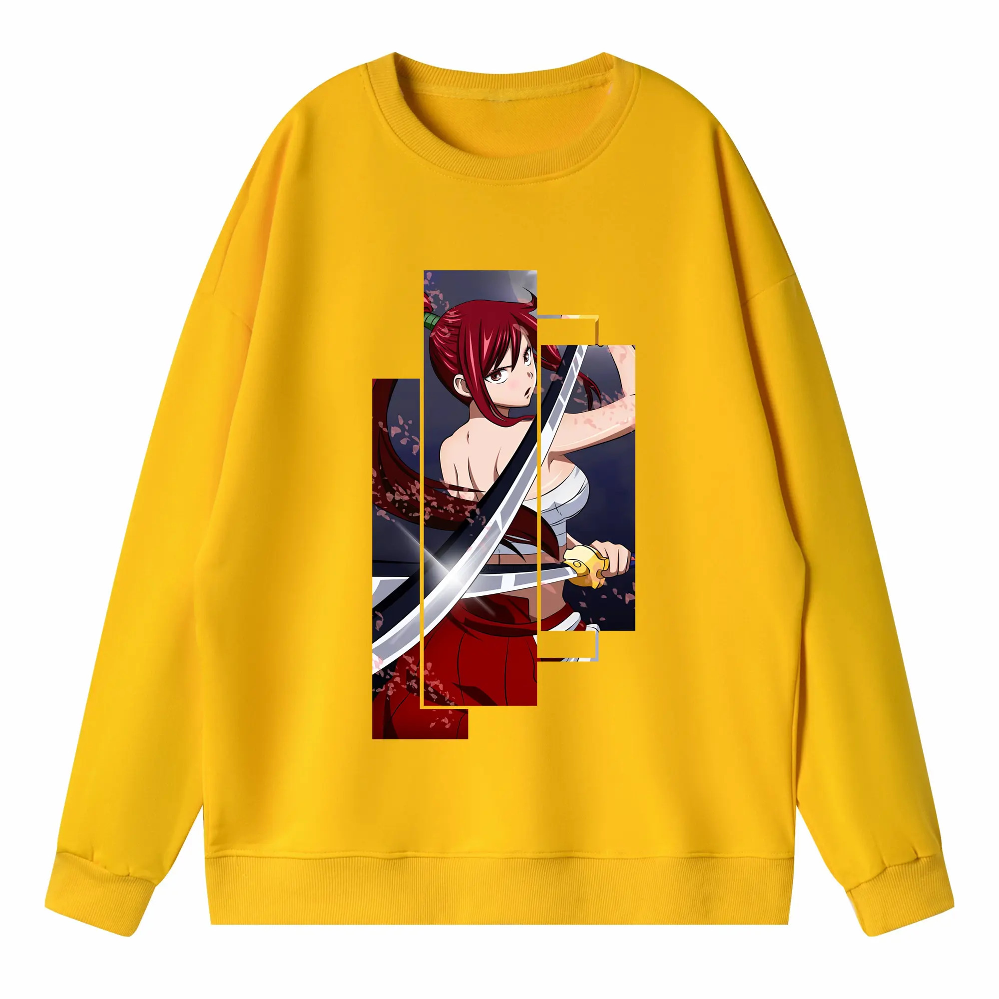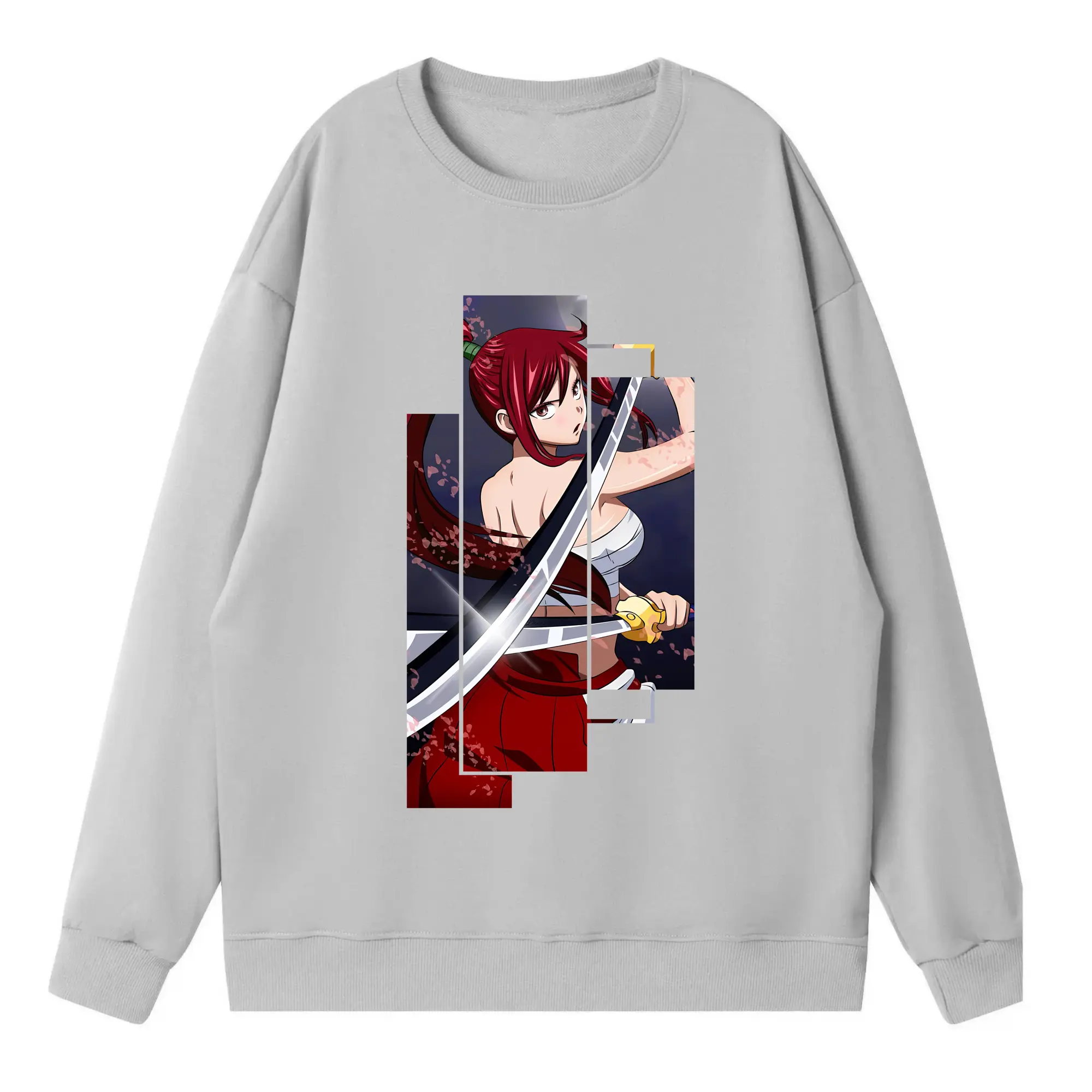 フェアリーテイル グッズ エルザ・スカーレット - 高品質 クルーネック スウェット ・ コットン59% ポリエステル41% ・ ユニセックス 長袖 トレーナー ・ カジュアル デイリー スポーツ 散歩用