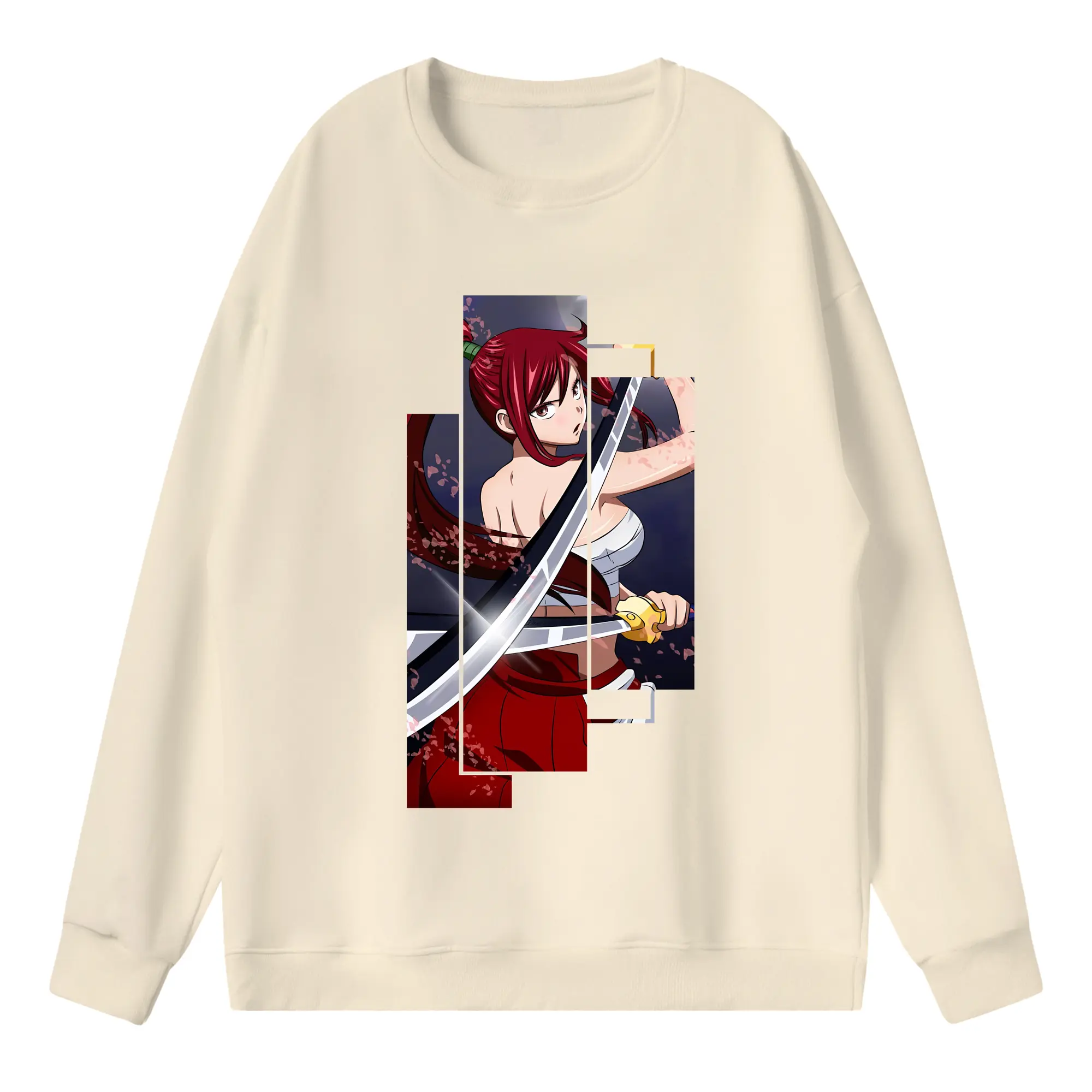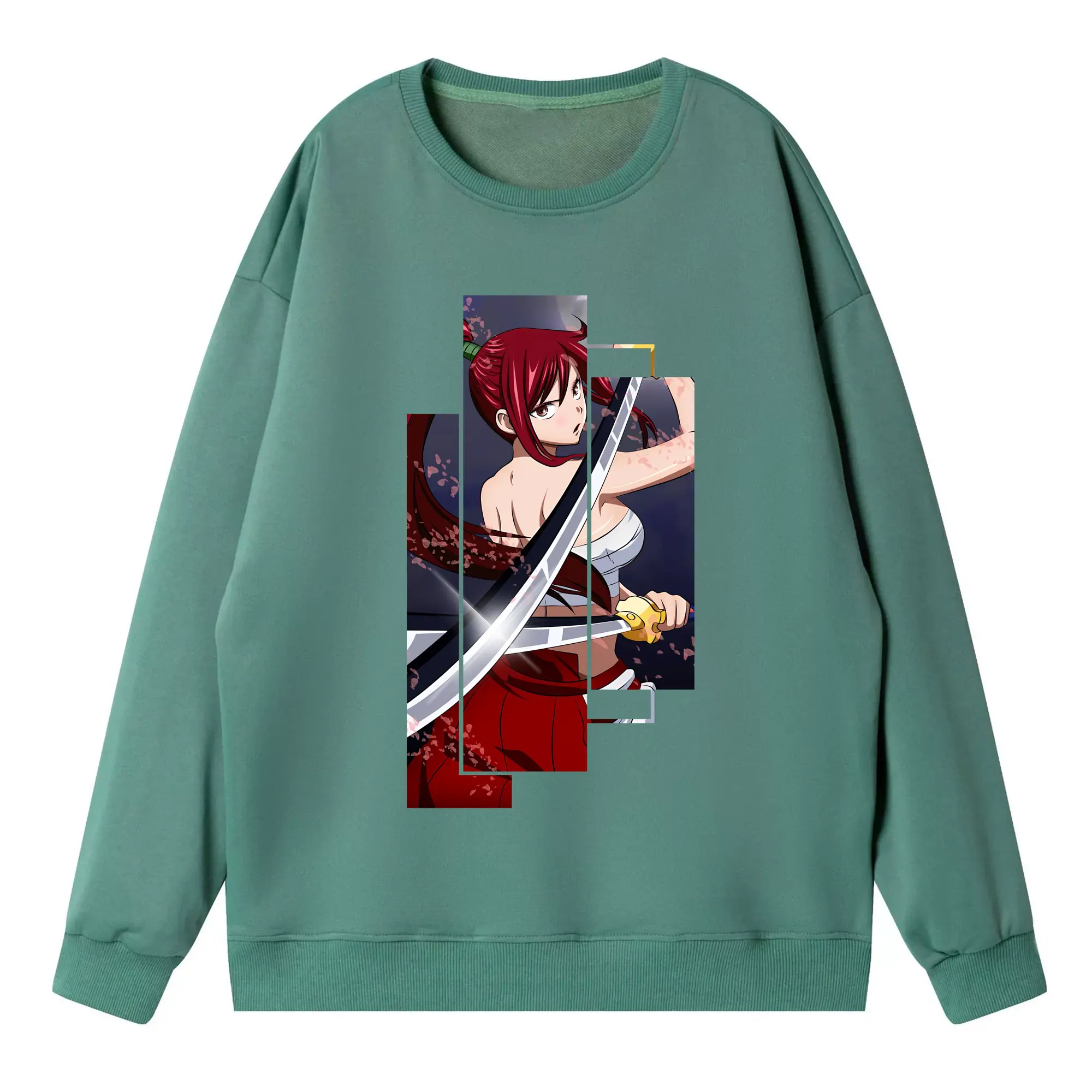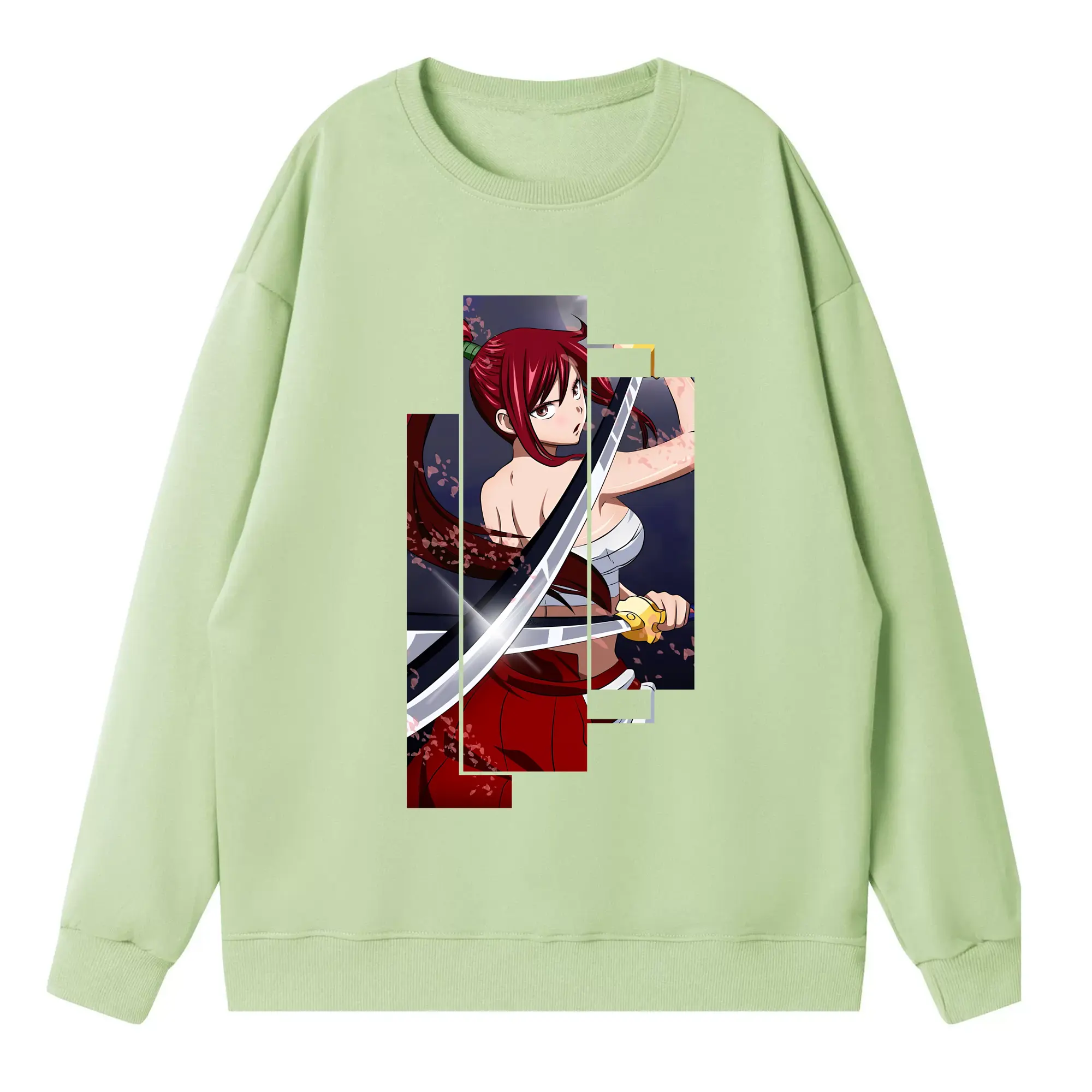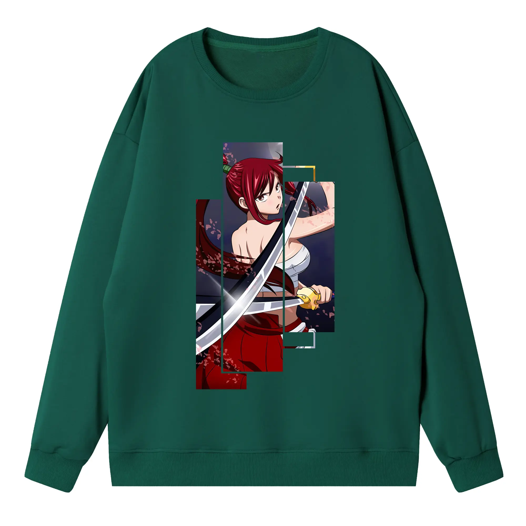 フェアリーテイル グッズ エルザ・スカーレット - 高品質 クルーネック スウェット ・ コットン59% ポリエステル41% ・ ユニセックス 長袖 トレーナー ・ カジュアル デイリー スポーツ 散歩用