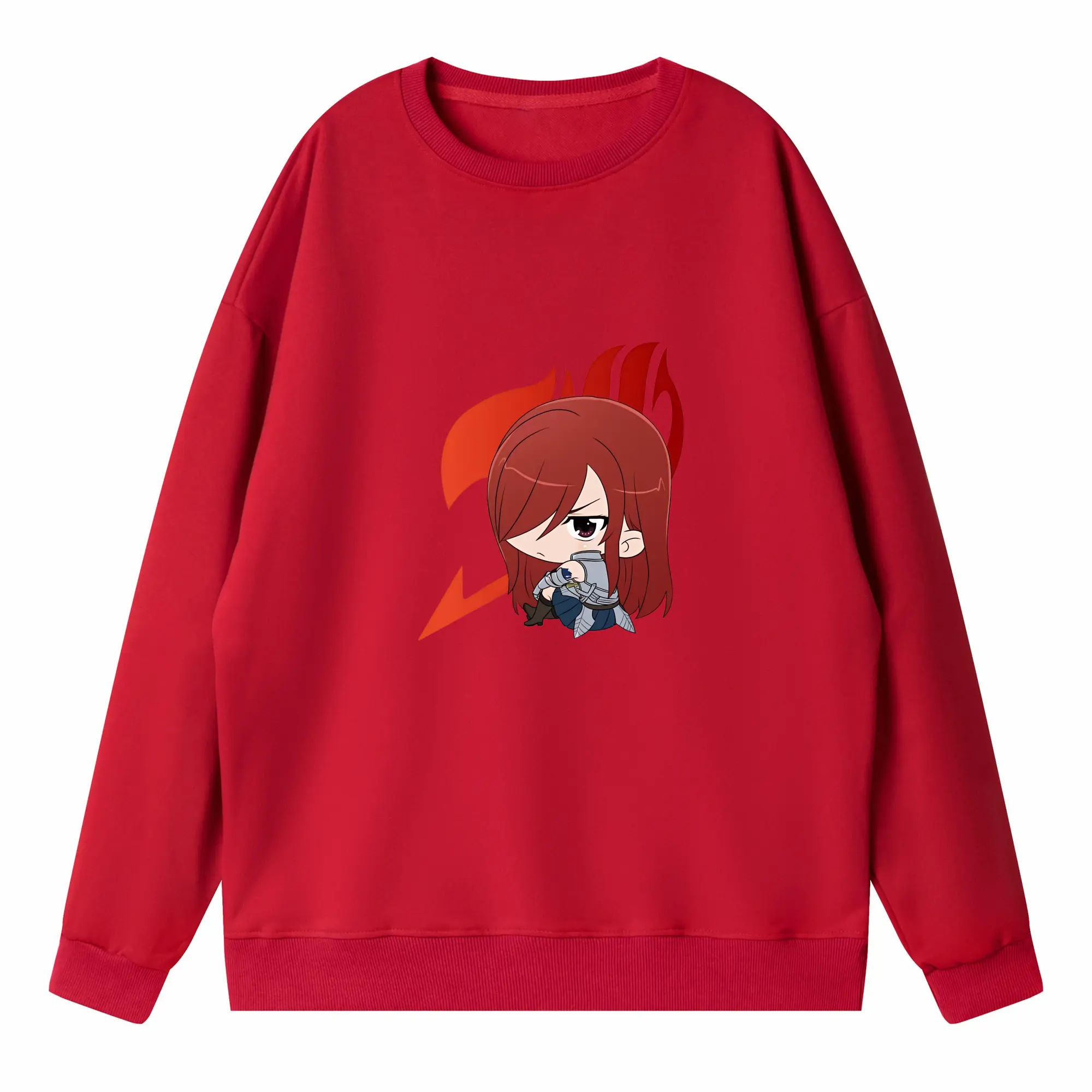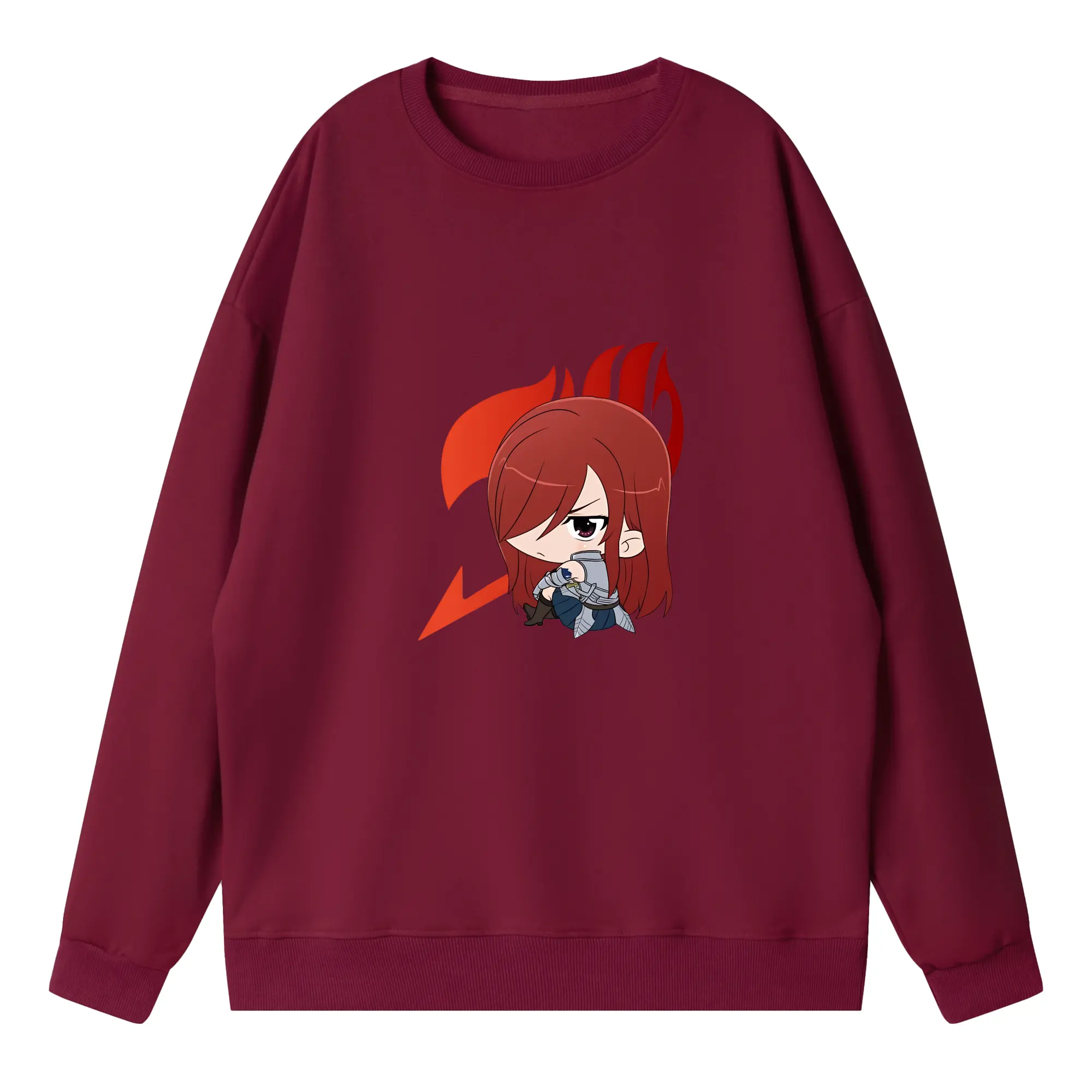 フェアリーテイル グッズ エルザ・スカーレット - 高品質 クルーネック スウェット ・ コットン59% ポリエステル41% ・ ユニセックス 長袖 トレーナー ・ カジュアル デイリー スポーツ 散歩用