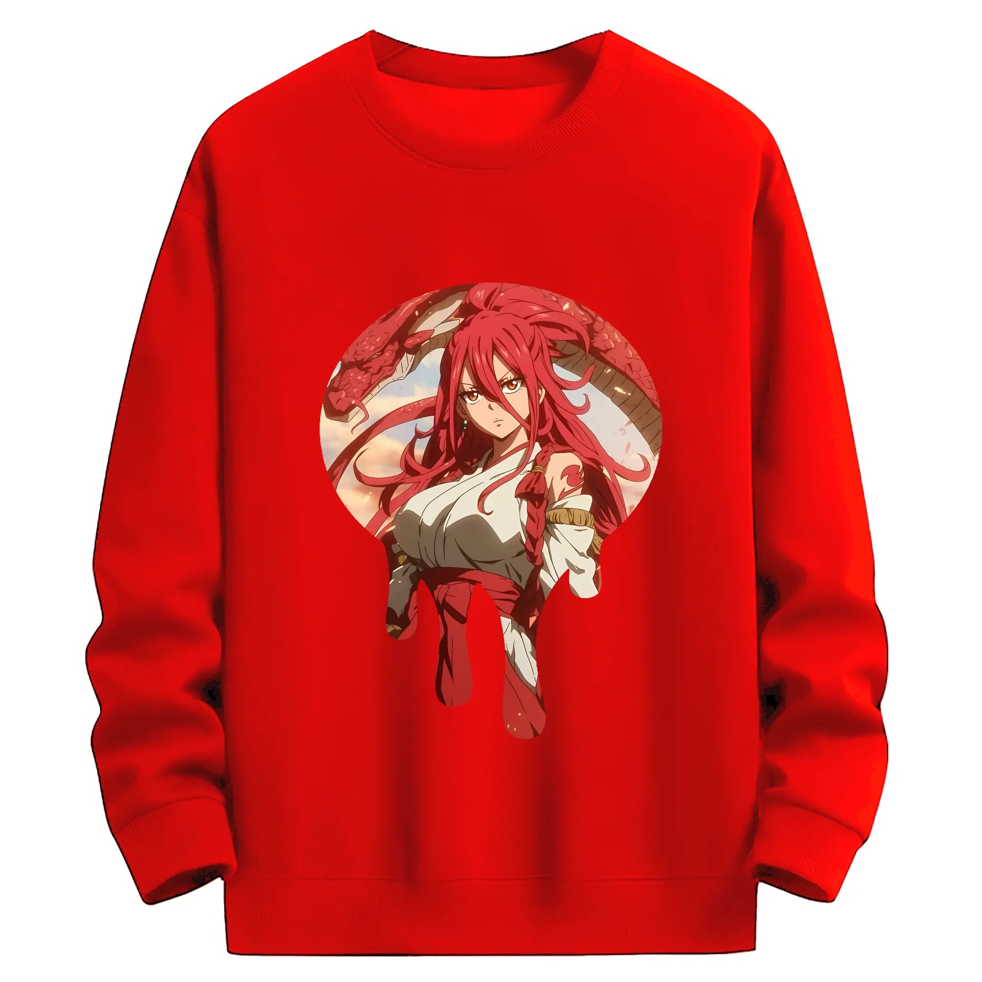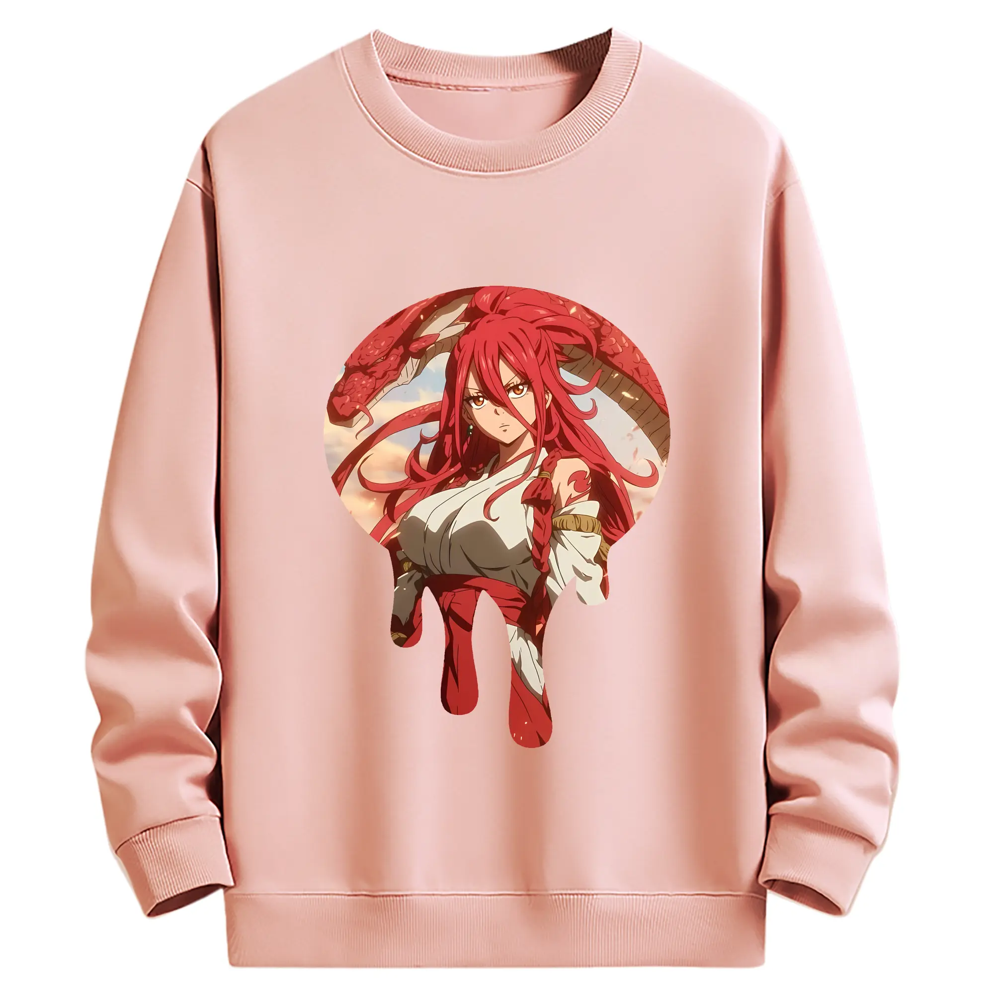 フェアリーテイル グッズ エルザ・スカーレット - 薄手 クルーネック スウェット 裏毛260g · ポリエステル 春秋向け カジュアル 男女兼用 · トレーナー デイリー スポーツ 散歩に最適
