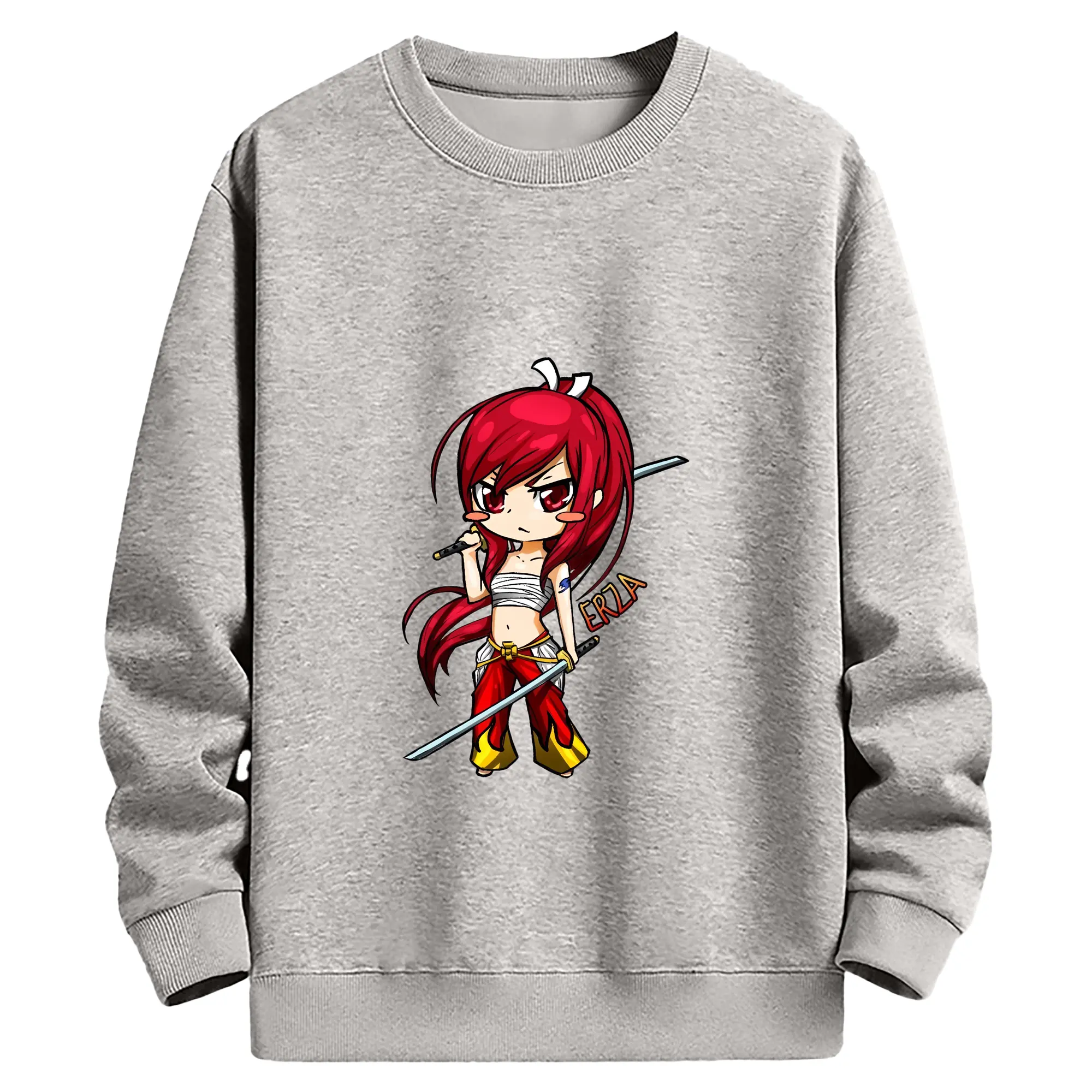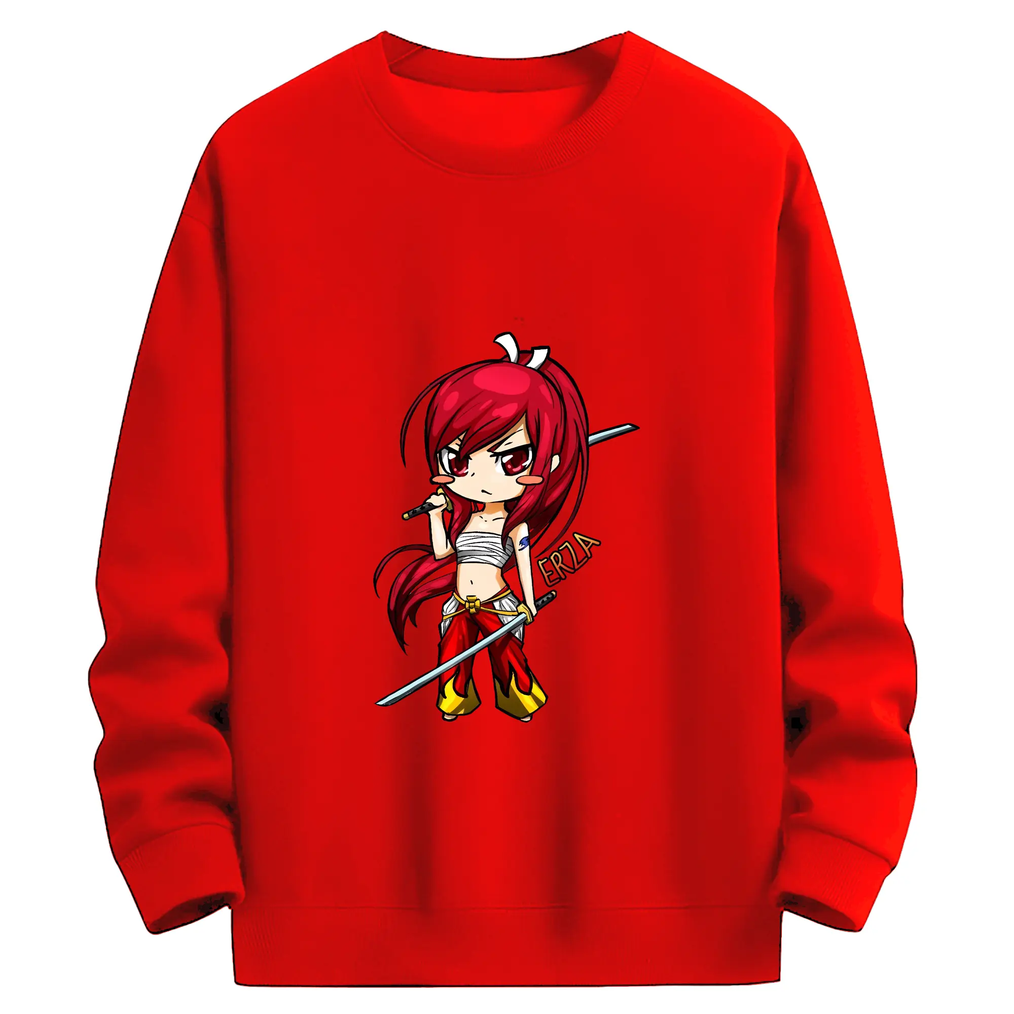 フェアリーテイル グッズ エルザ・スカーレット - 高品質 クルーネック スウェット ・ コットン59% ポリエステル41% ・ ユニセックス 長袖 トレーナー ・ カジュアル デイリー スポーツ 散歩用