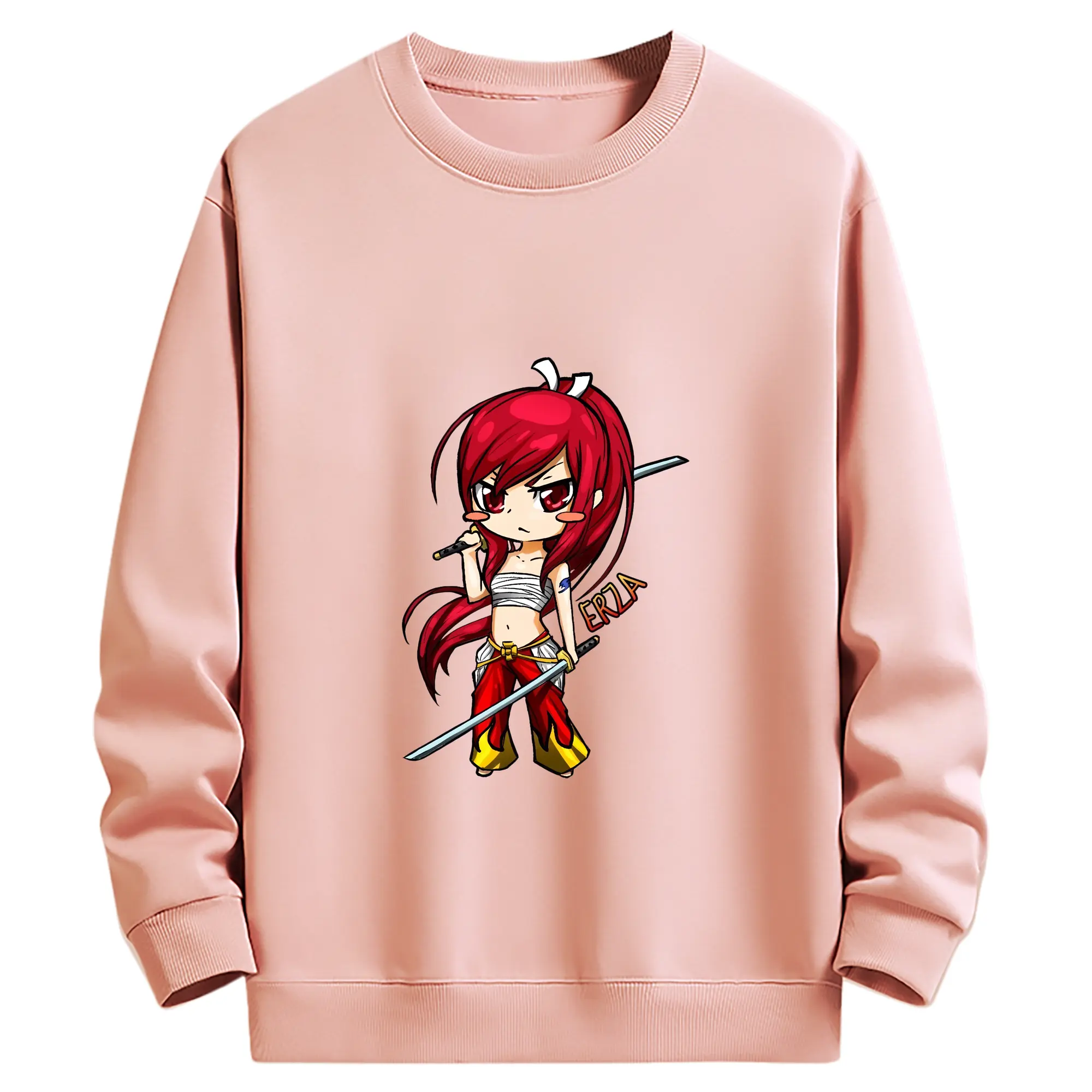 フェアリーテイル グッズ エルザ・スカーレット - 薄手 クルーネック スウェット 裏毛260g · ポリエステル 春秋向け カジュアル 男女兼用 · トレーナー デイリー スポーツ 散歩に最適