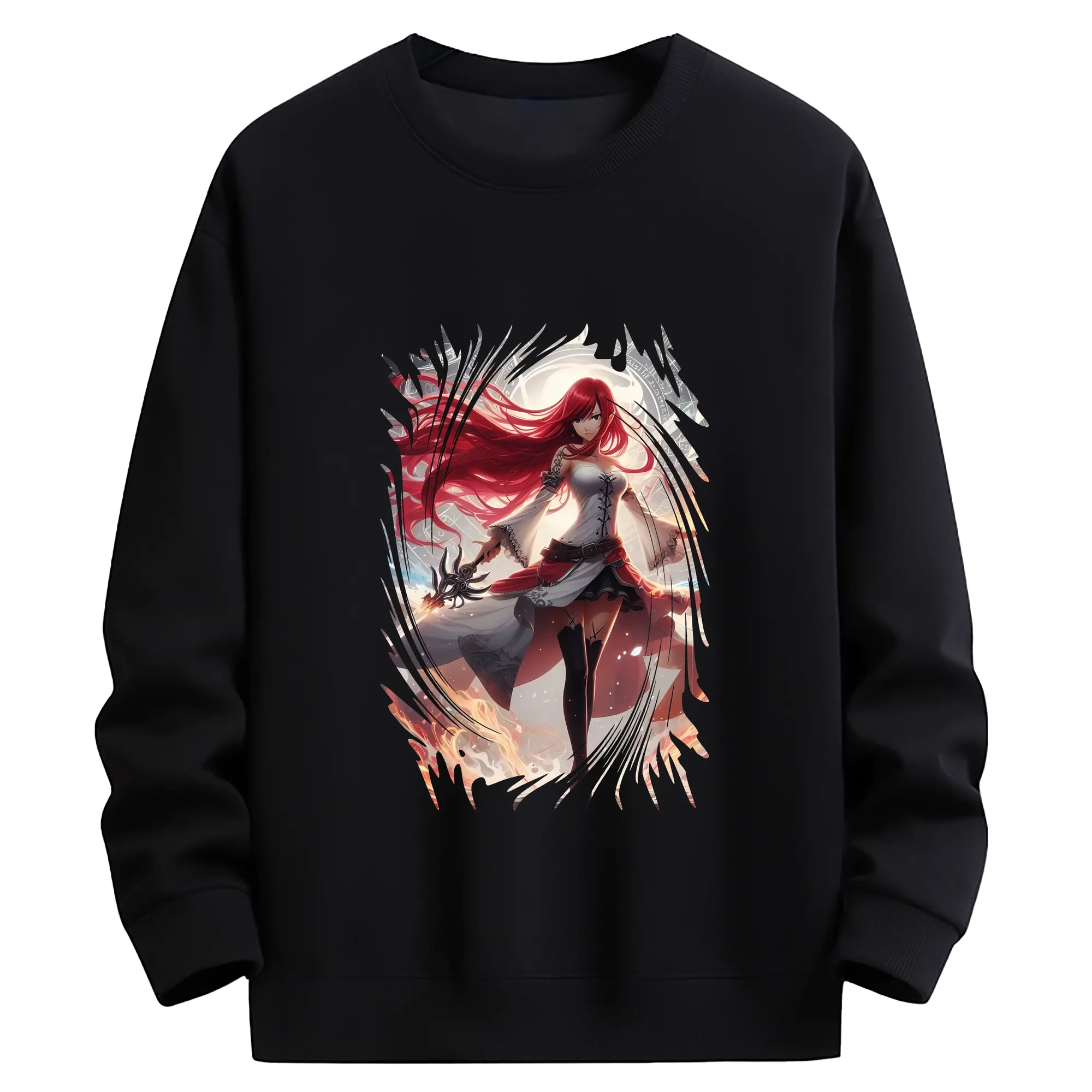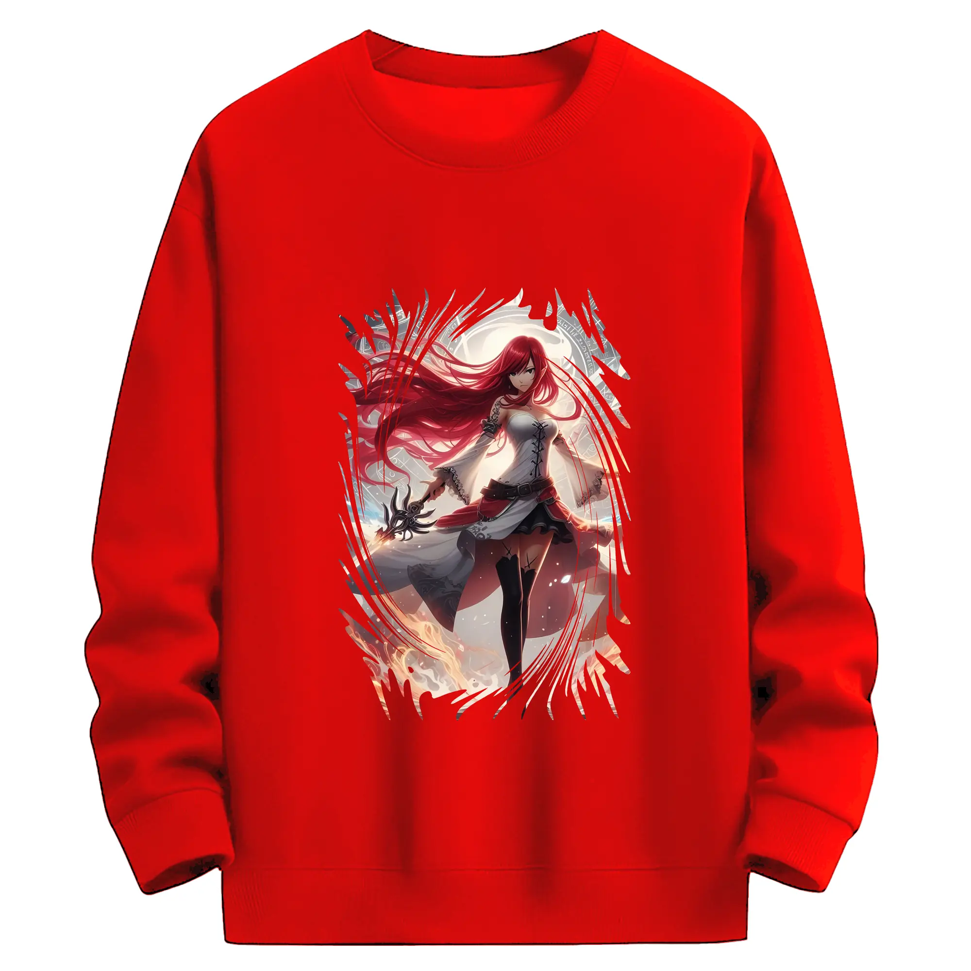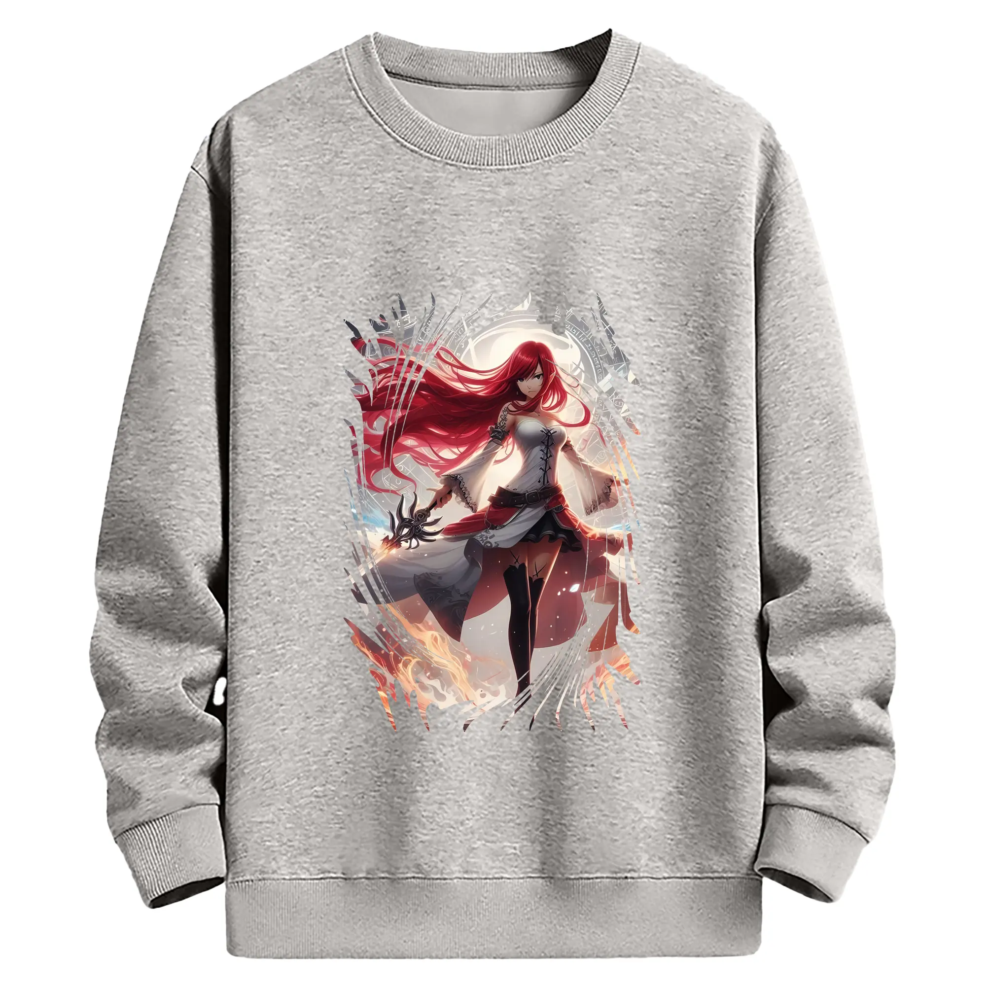 フェアリーテイル グッズ エルザ・スカーレット - 高品質 クルーネック スウェット ・ コットン59% ポリエステル41% ・ ユニセックス 長袖 トレーナー ・ カジュアル デイリー スポーツ 散歩用