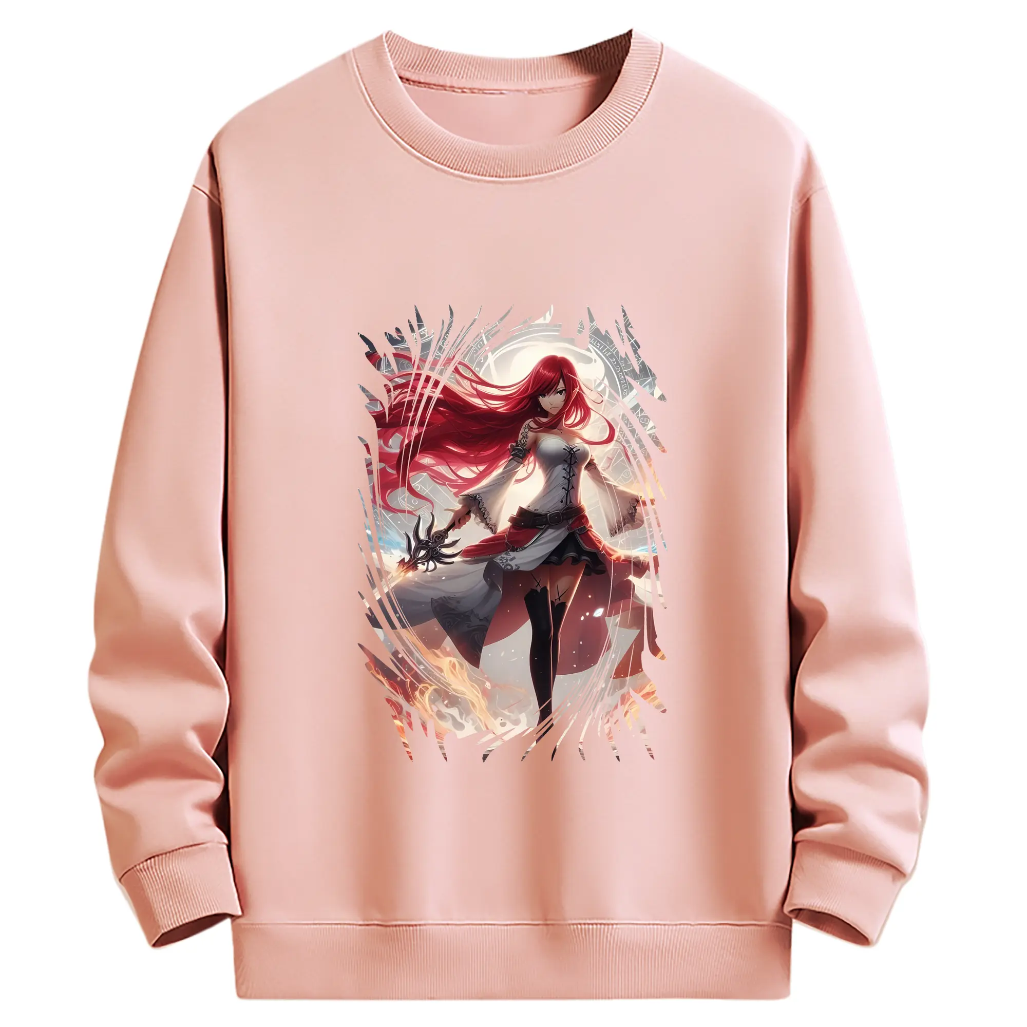 フェアリーテイル グッズ エルザ・スカーレット - 薄手 クルーネック スウェット 裏毛260g · ポリエステル 春秋向け カジュアル 男女兼用 · トレーナー デイリー スポーツ 散歩に最適