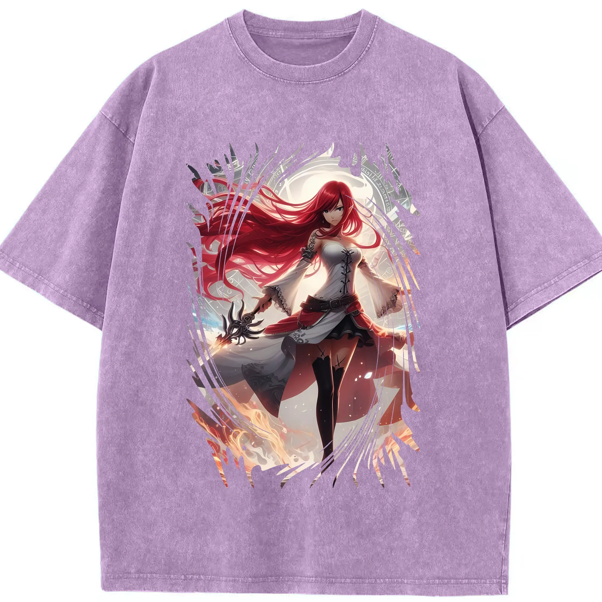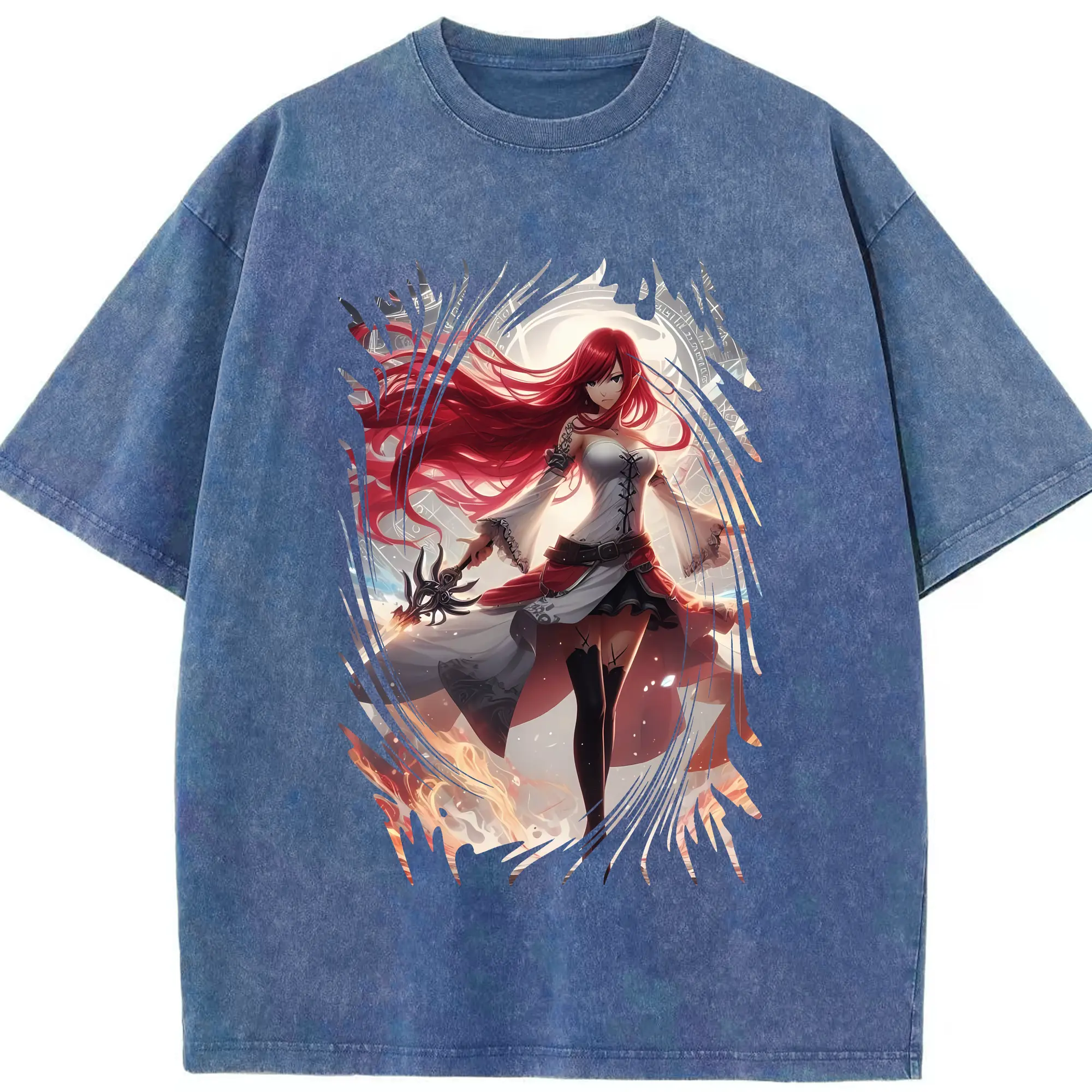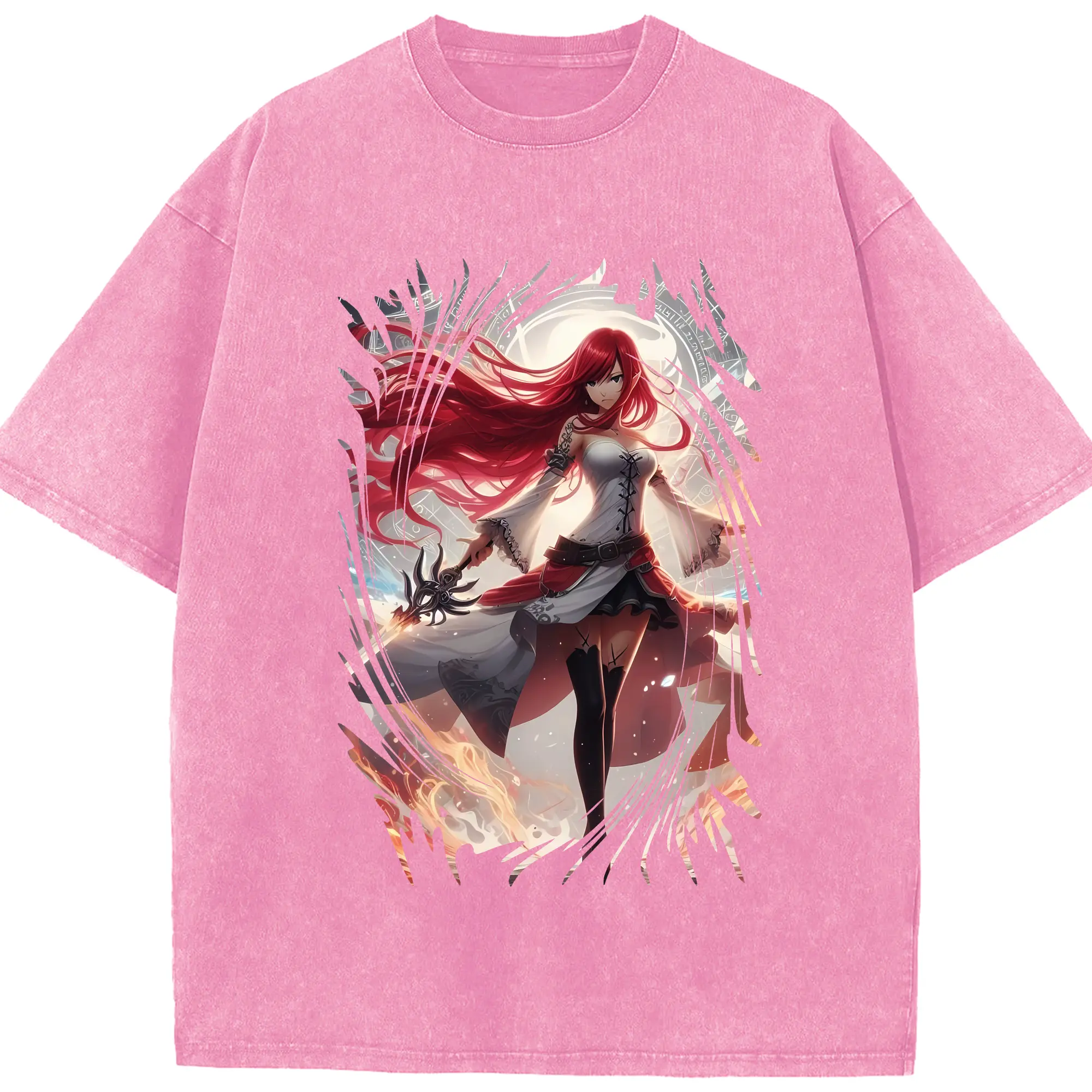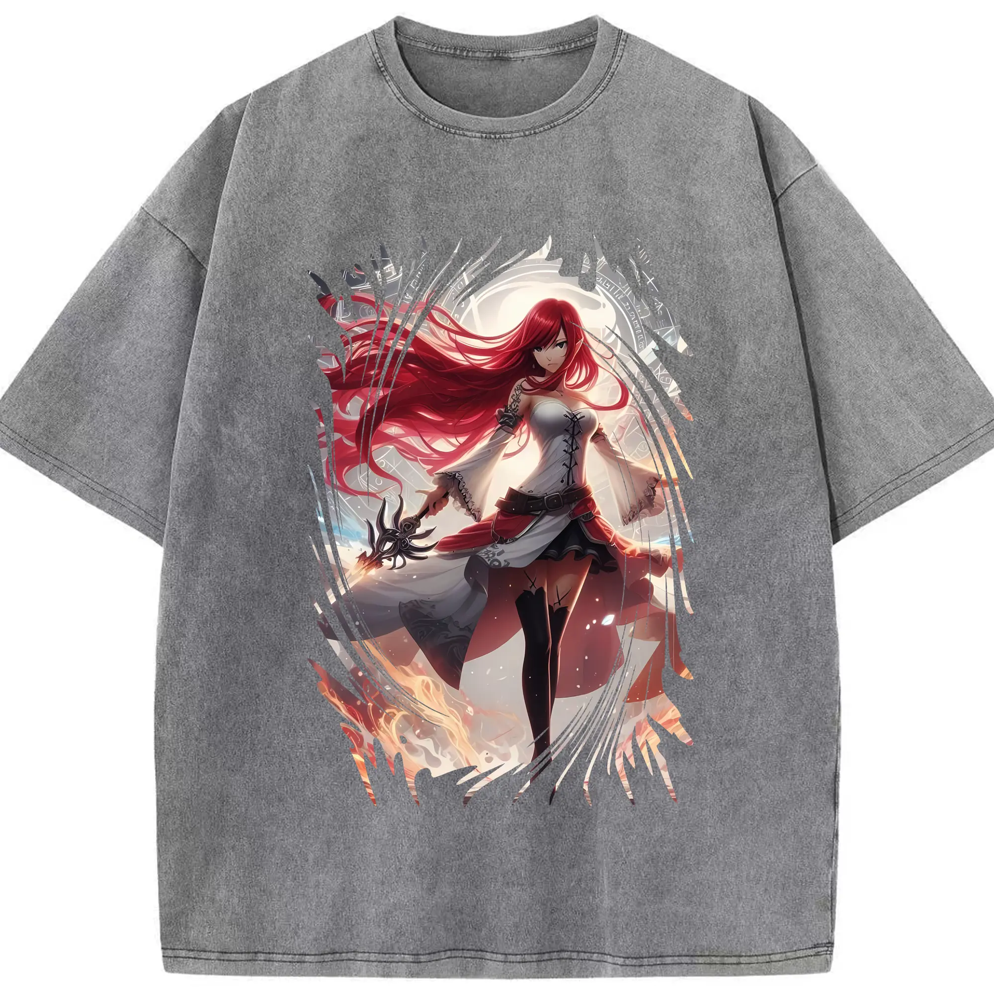 フェアリーテイル グッズ エルザ・スカーレット - 綿100% ヴィンテージ風 半袖Tシャツ ・ 背面プリント ・ 柔らか肌触り ・ 通気性 快適 ・ スポーツ カジュアル 外出用