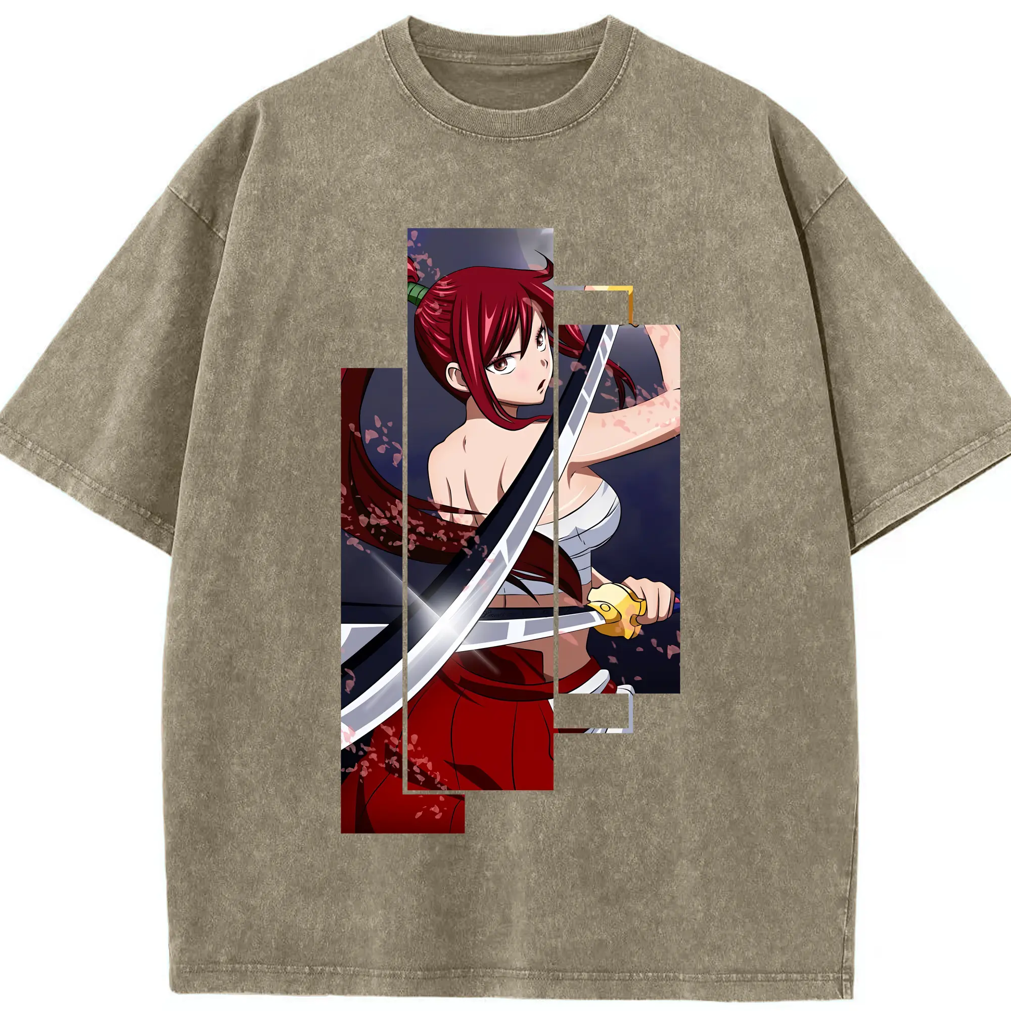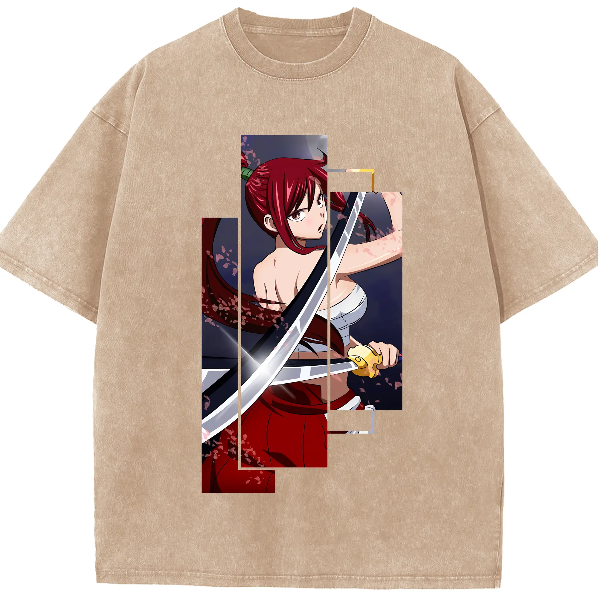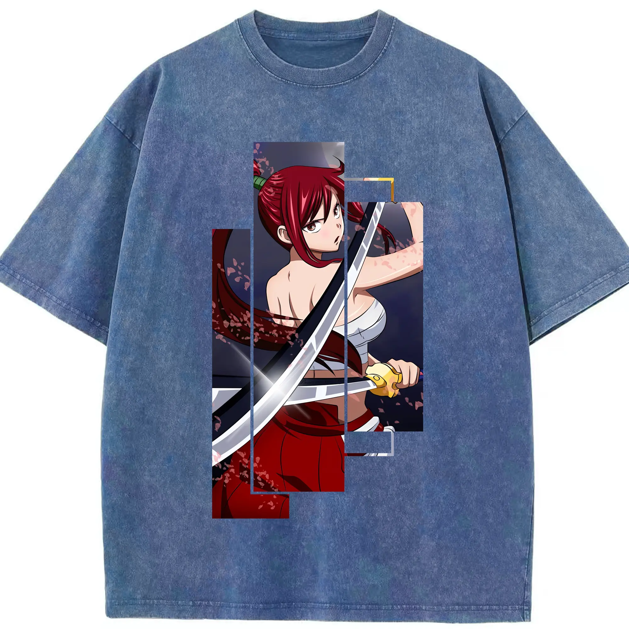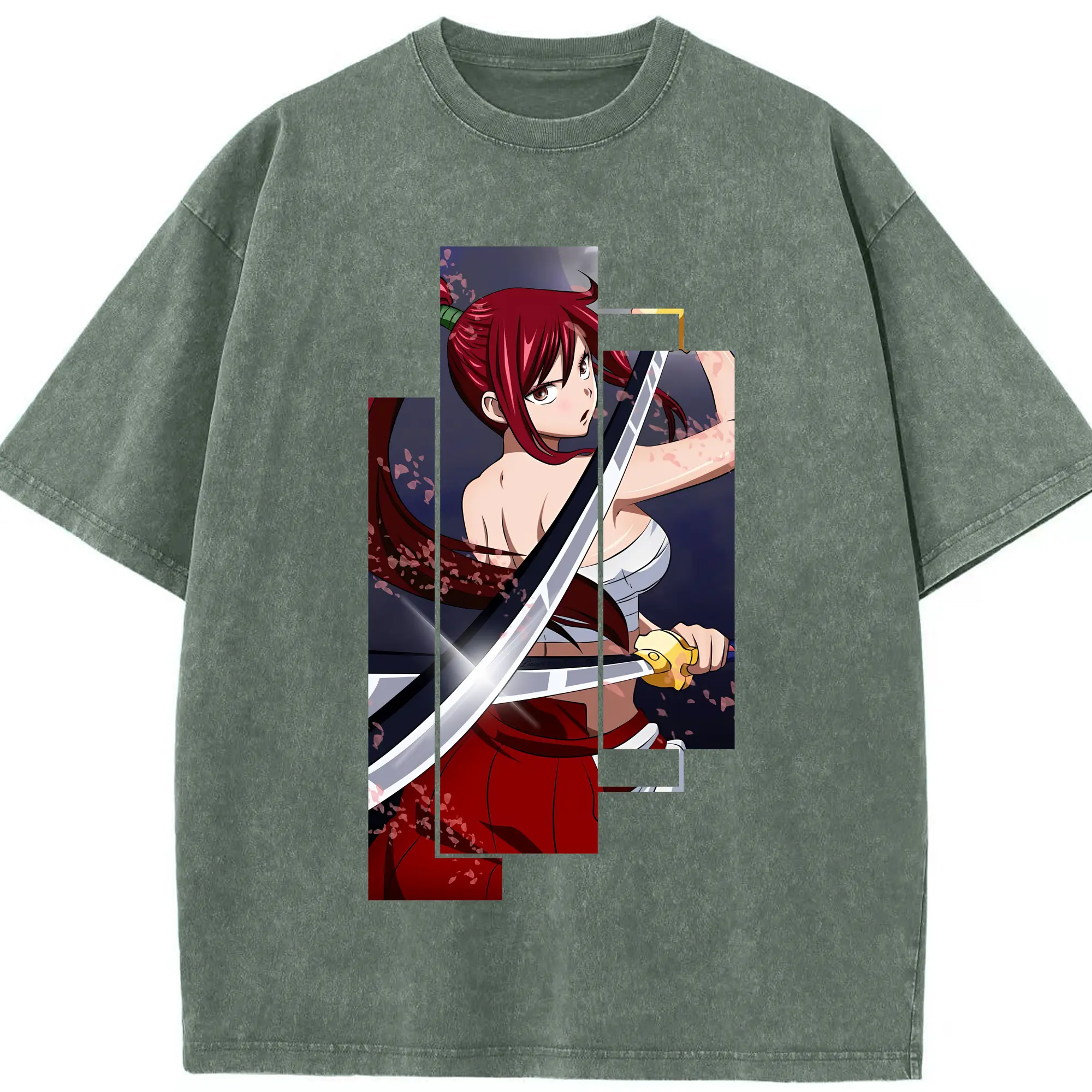 フェアリーテイル グッズ エルザ・スカーレット - 綿100% ヴィンテージ風 半袖Tシャツ ・ 背面プリント ・ 柔らか肌触り ・ 通気性 快適 ・ スポーツ カジュアル 外出用