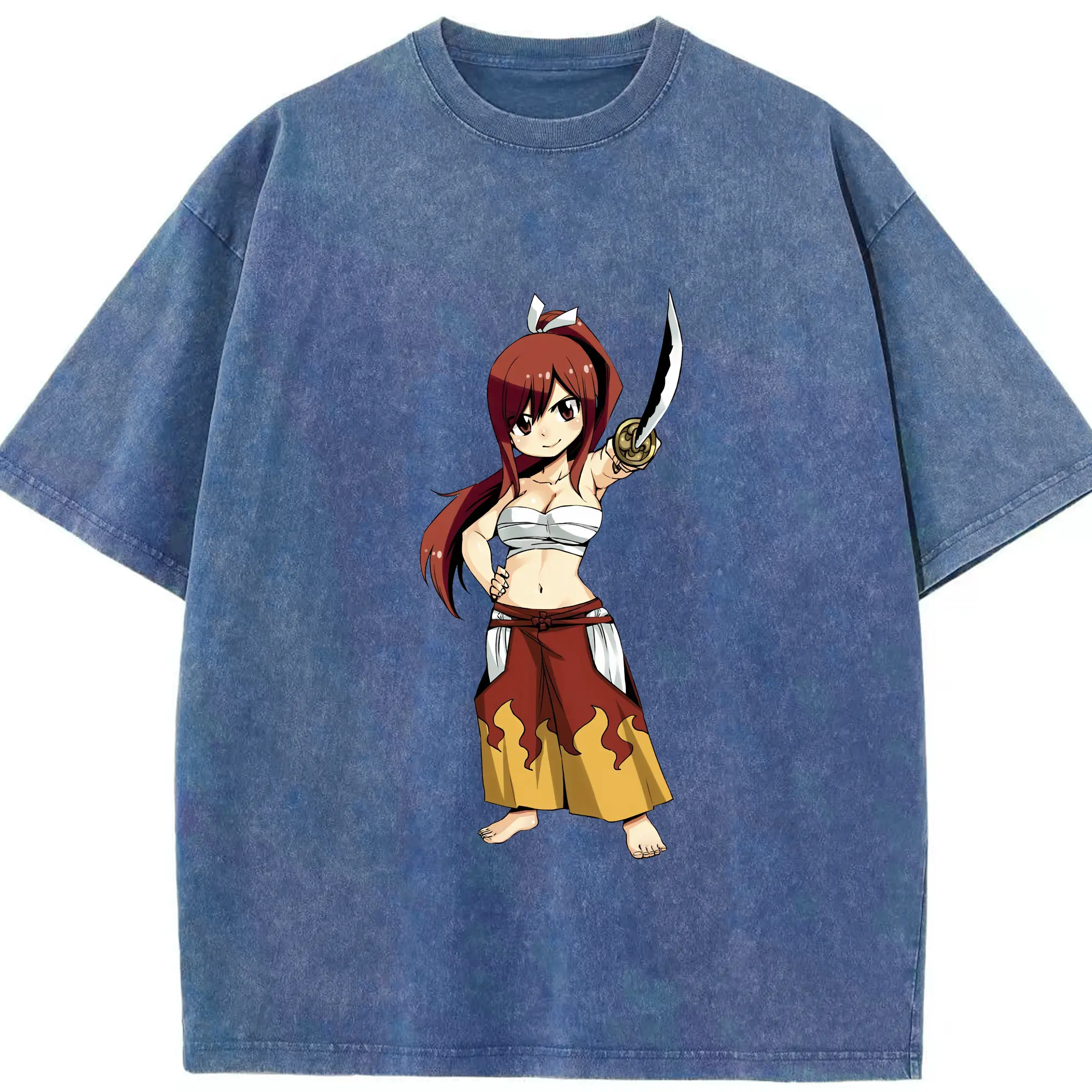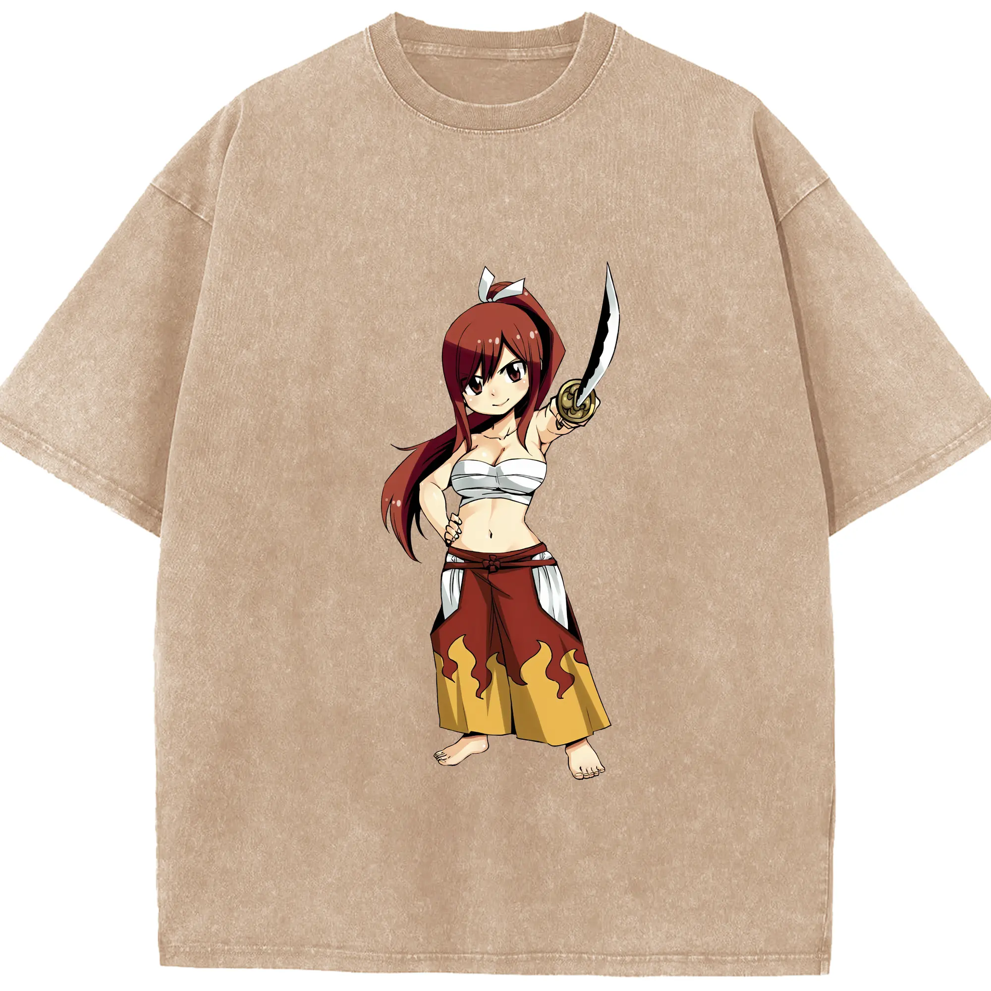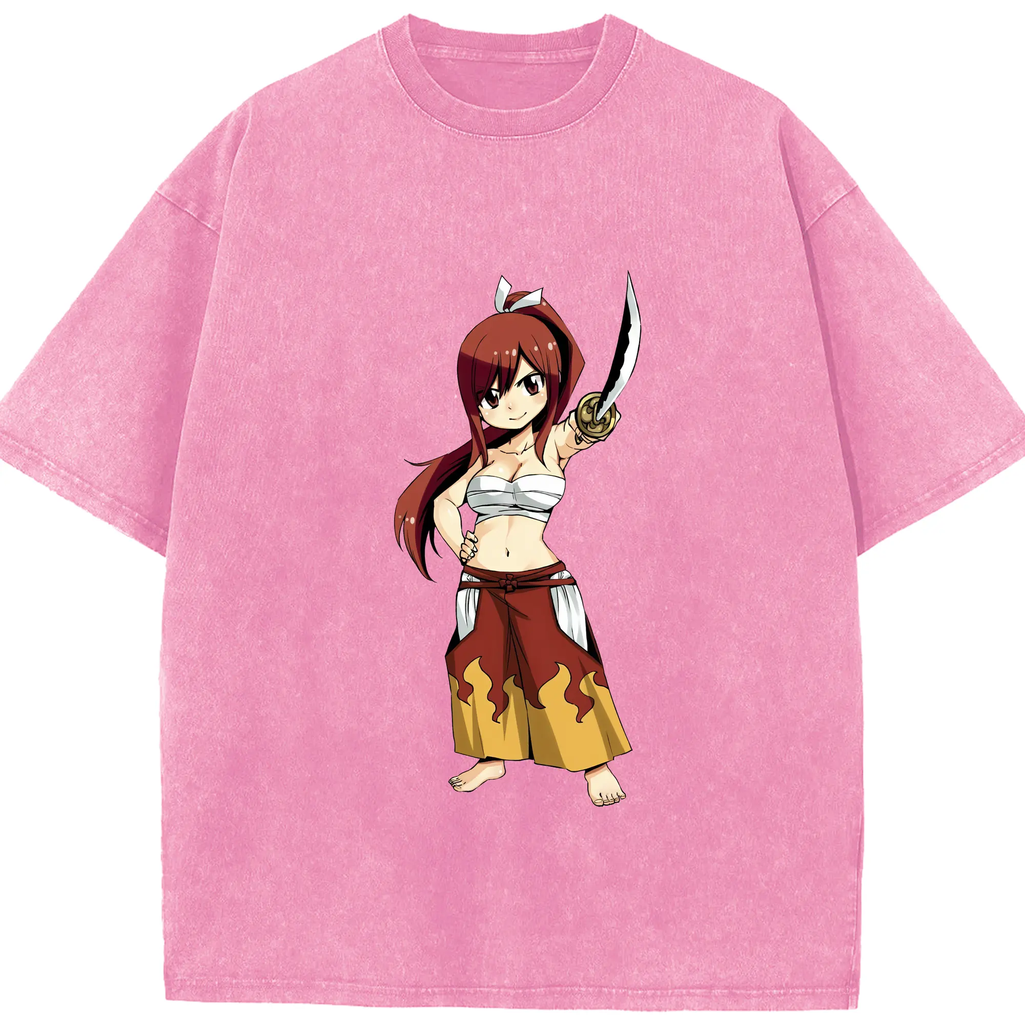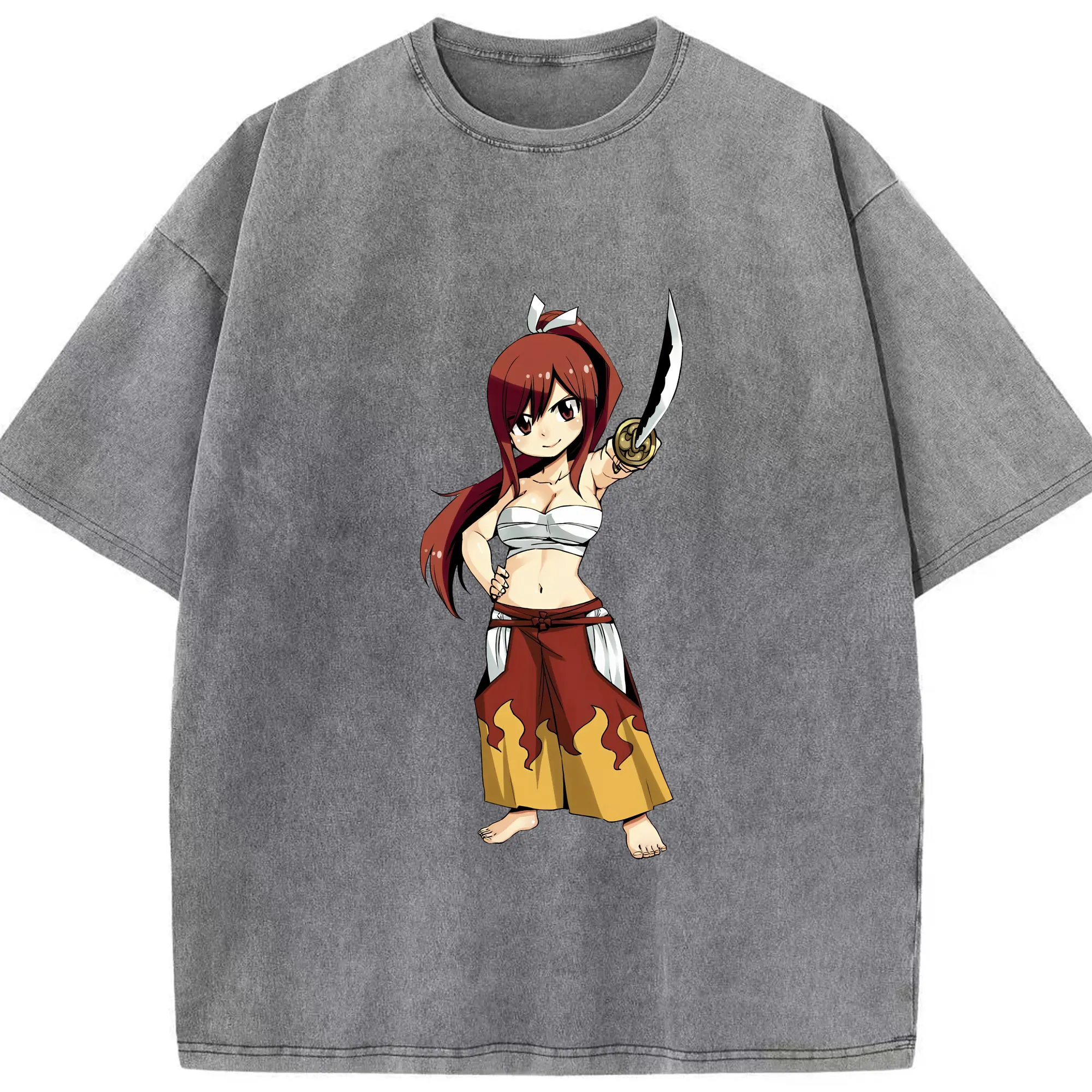 フェアリーテイル グッズ エルザ・スカーレット - 綿100% ヴィンテージ風 半袖Tシャツ ・ 背面プリント ・ 柔らか肌触り ・ 通気性 快適 ・ スポーツ カジュアル 外出用