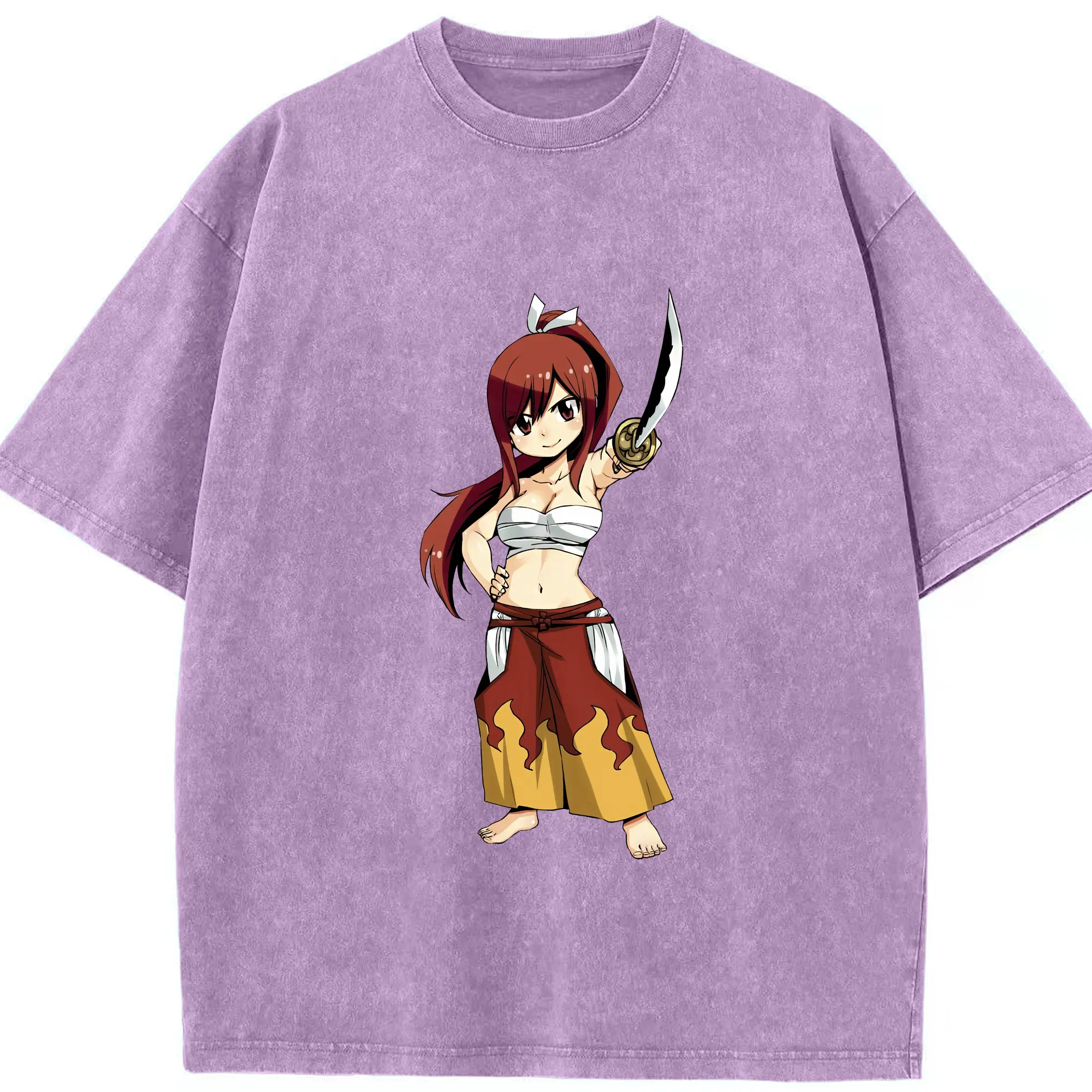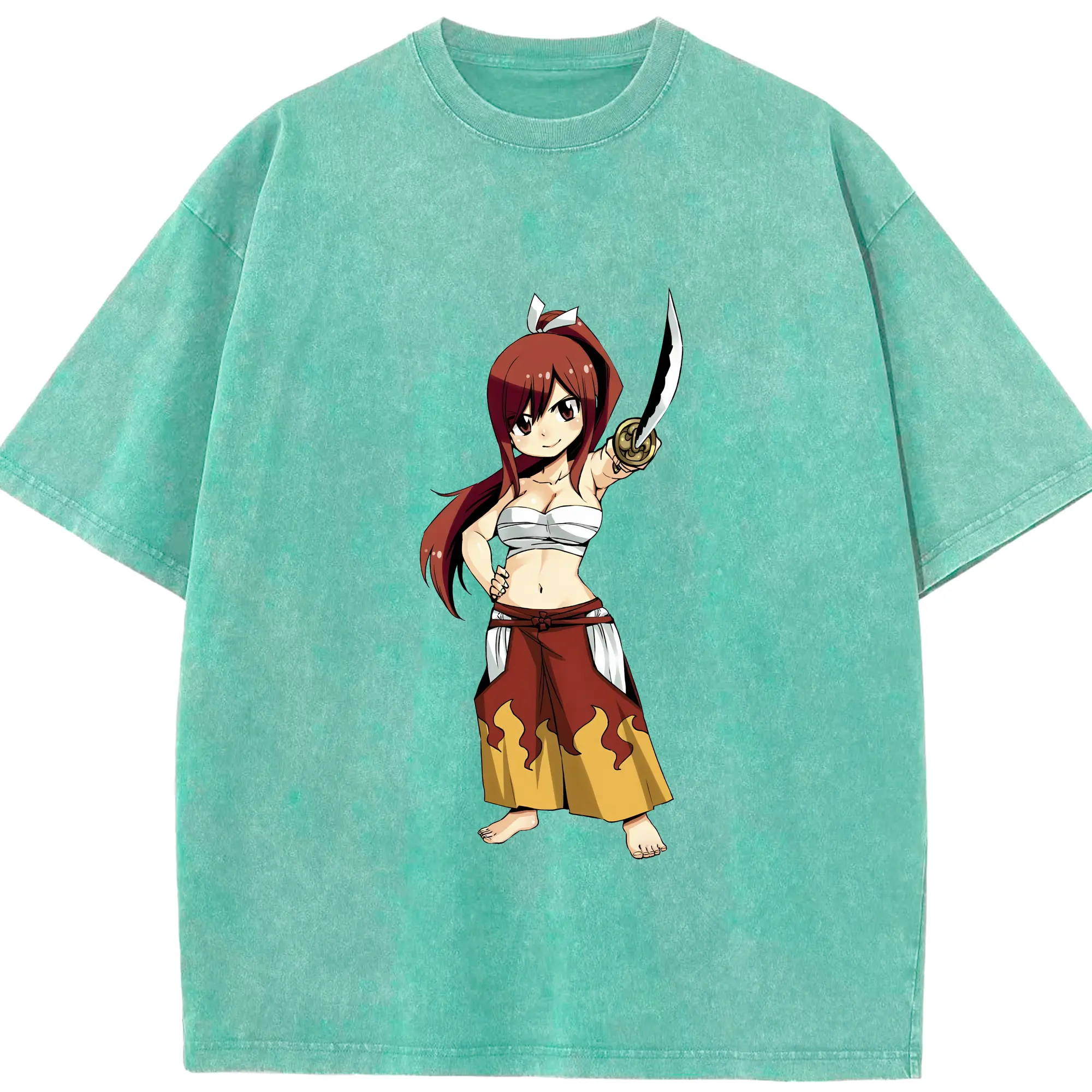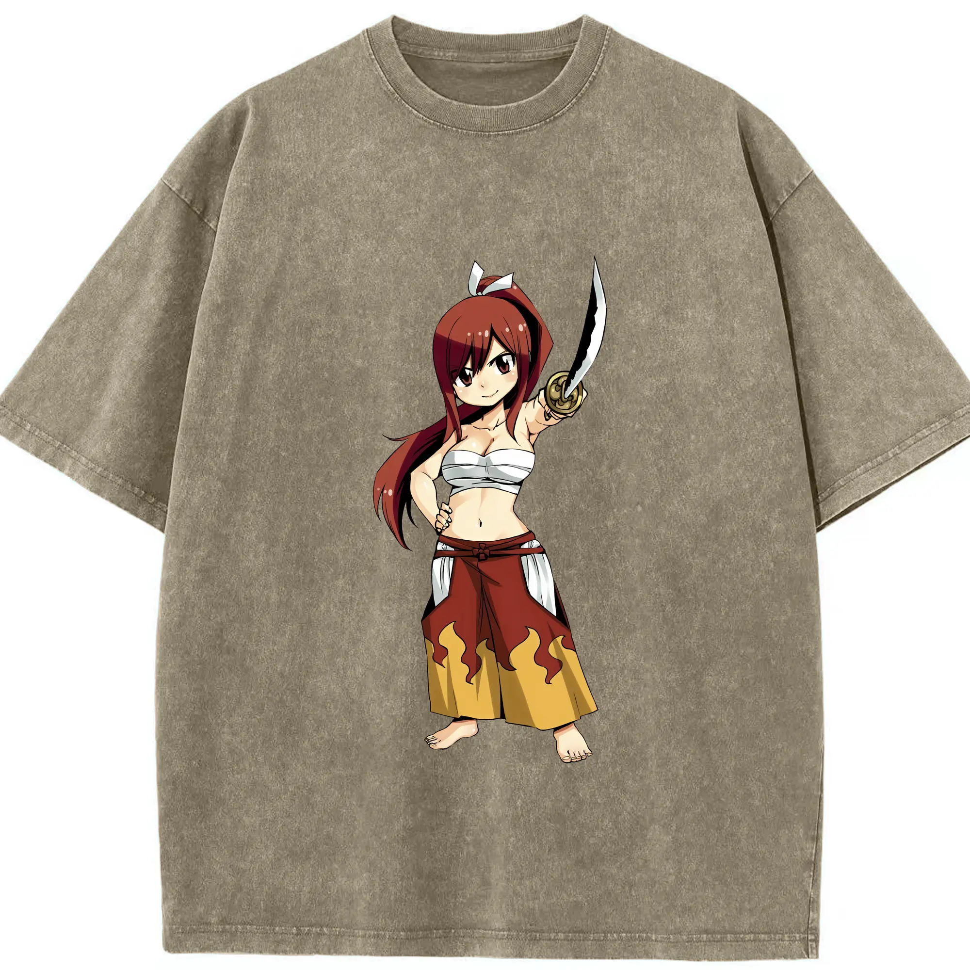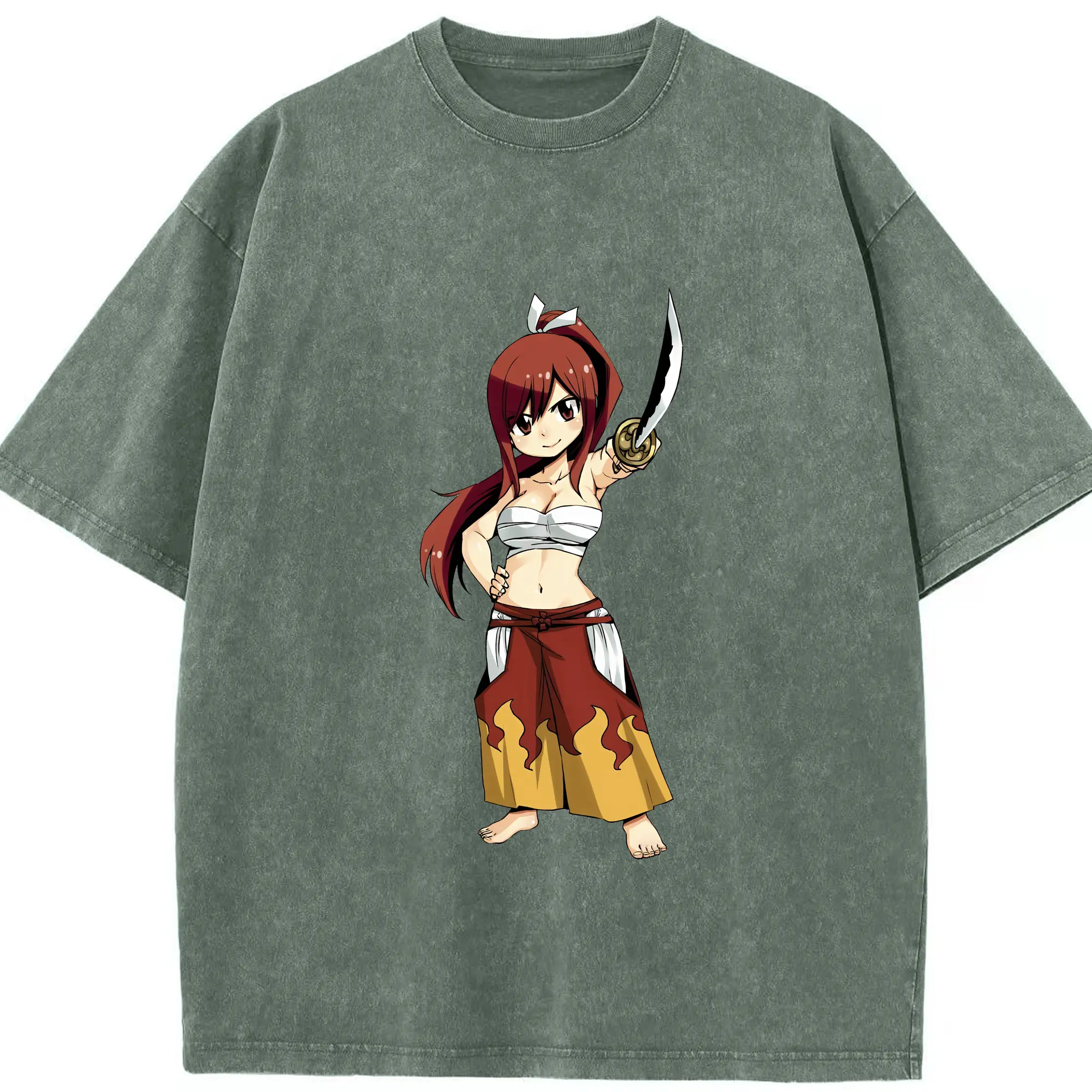 フェアリーテイル グッズ エルザ・スカーレット - 綿100% ヴィンテージ風 半袖Tシャツ ・ 背面プリント ・ 柔らか肌触り ・ 通気性 快適 ・ スポーツ カジュアル 外出用