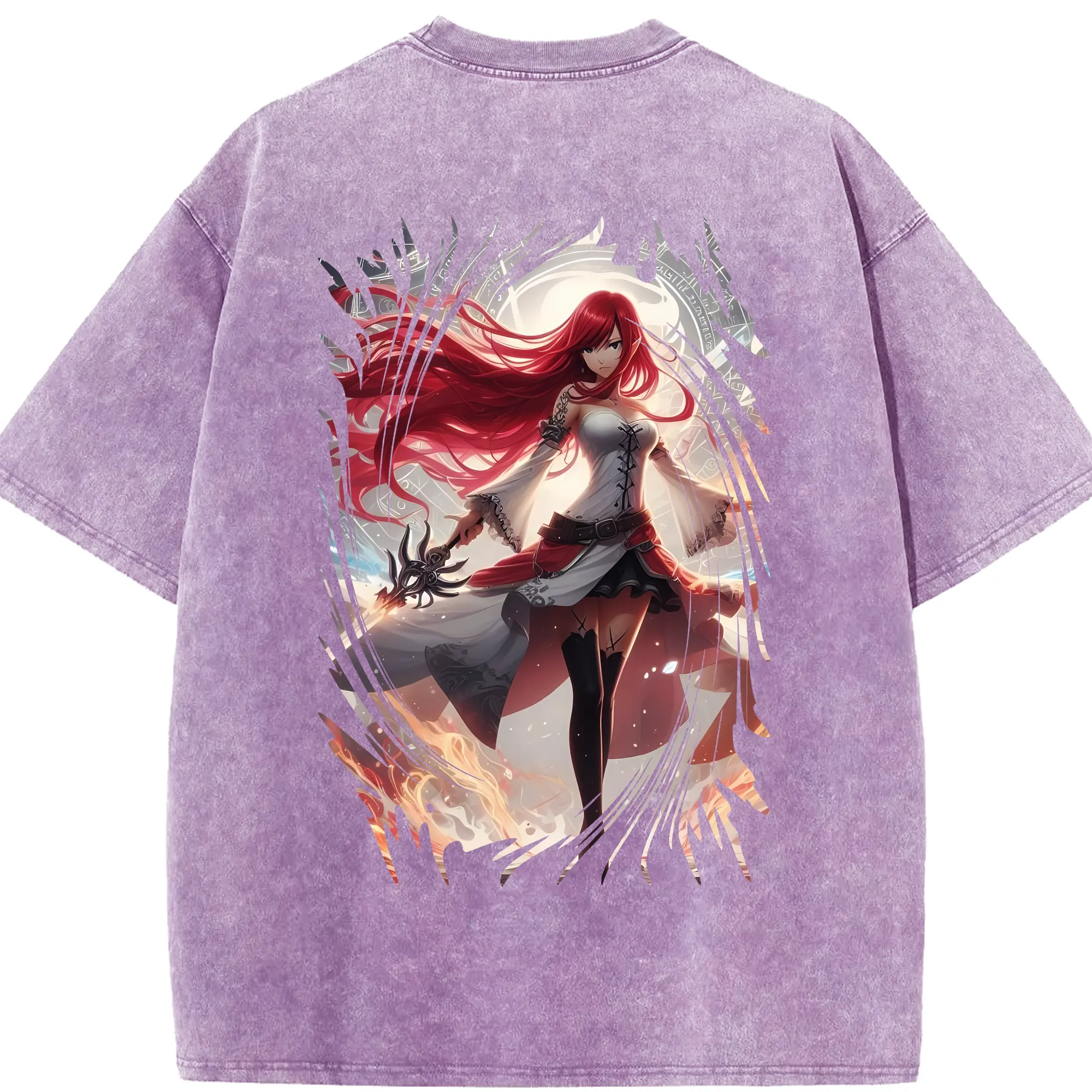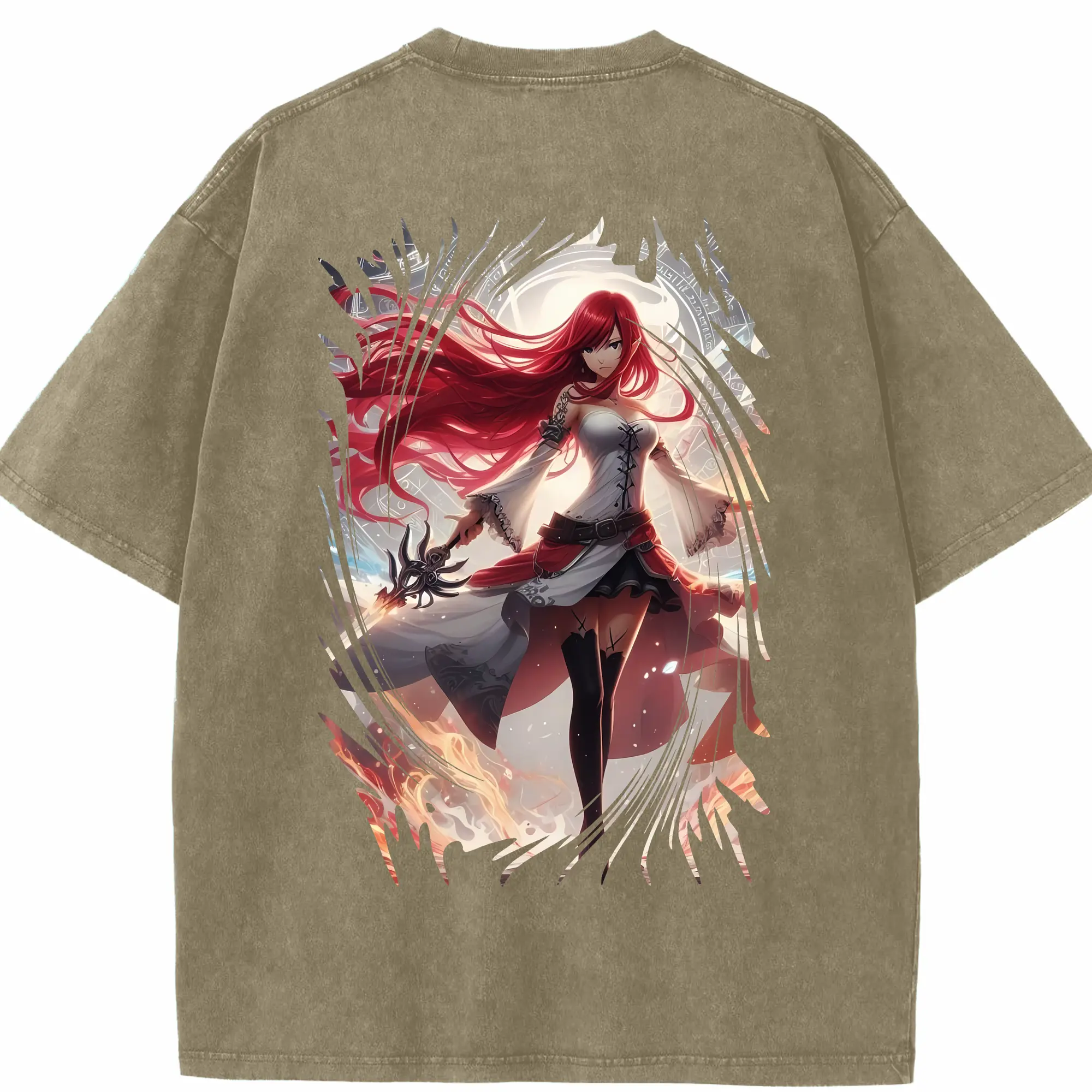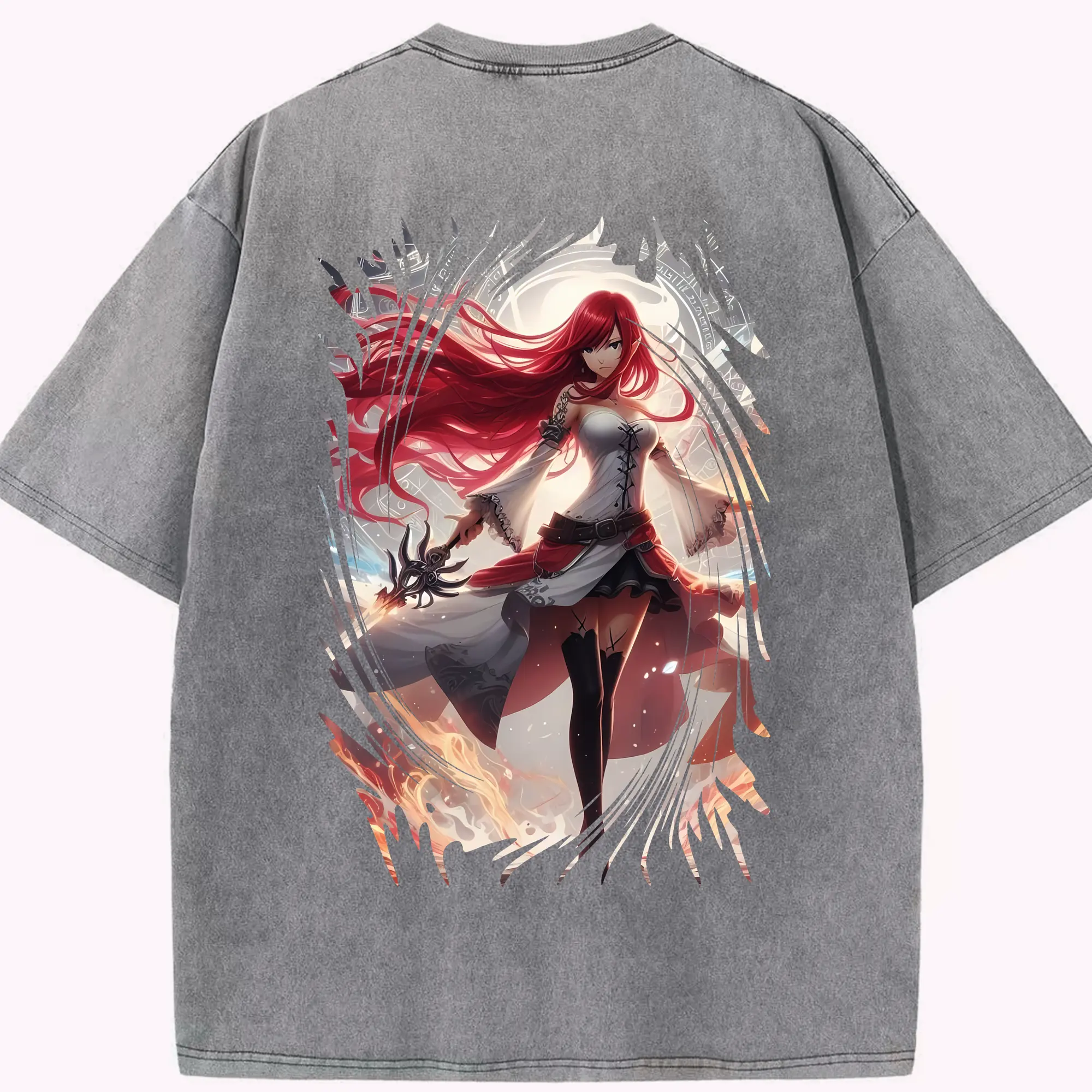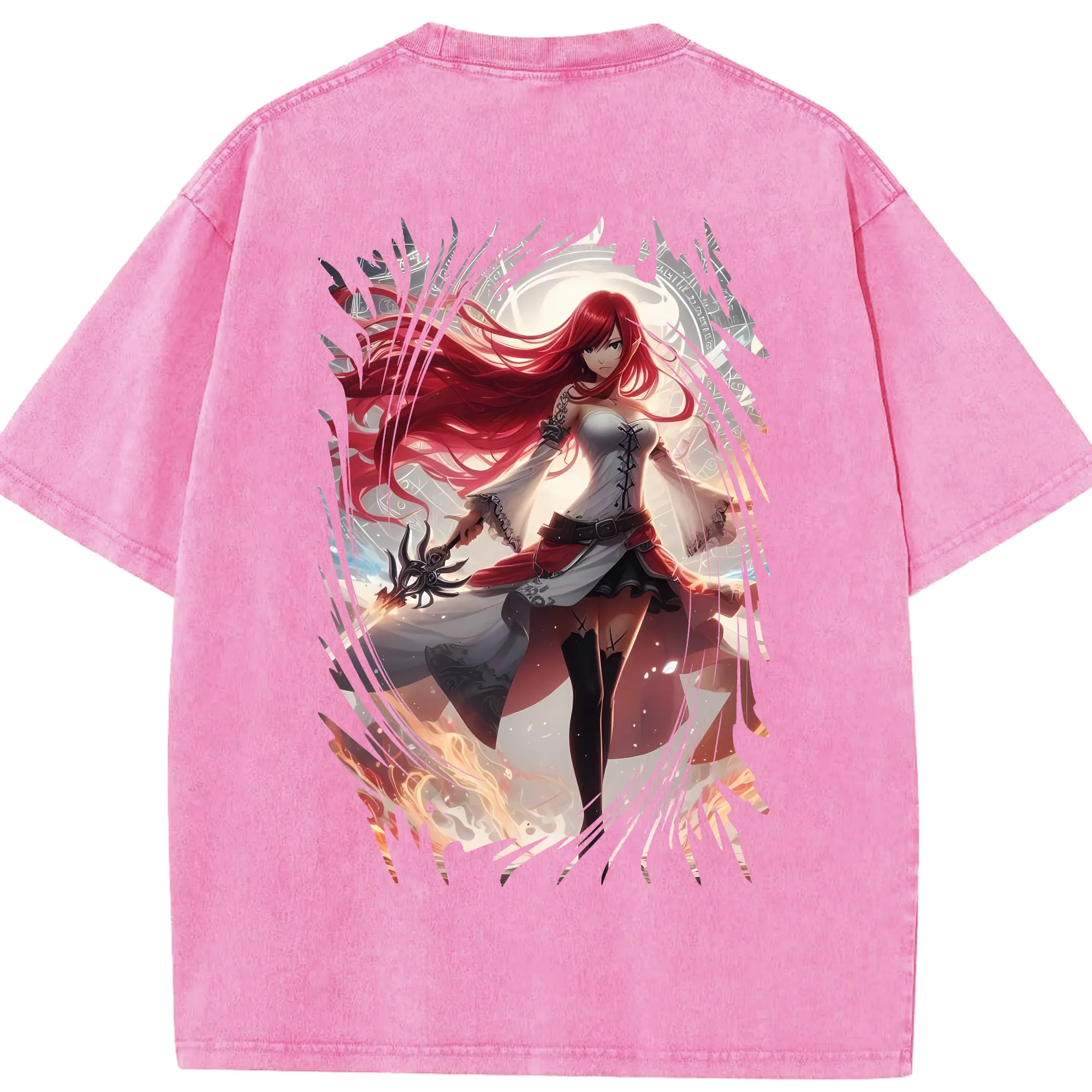 フェアリーテイル グッズ エルザ・スカーレット - 綿100% ヴィンテージ風 半袖Tシャツ ・ フロントプリント ・ 柔らか肌触り ・ 通気性 快適 ・ スポーツ カジュアル 外出用