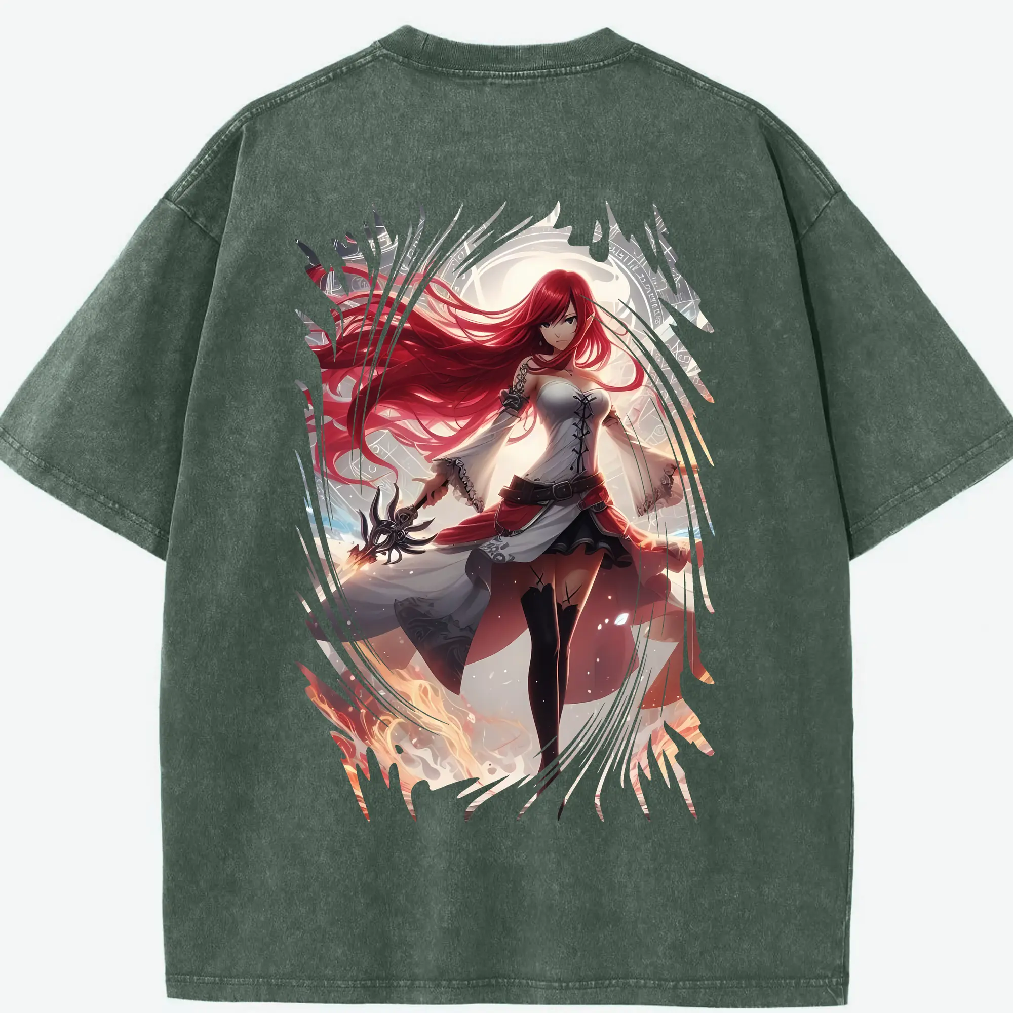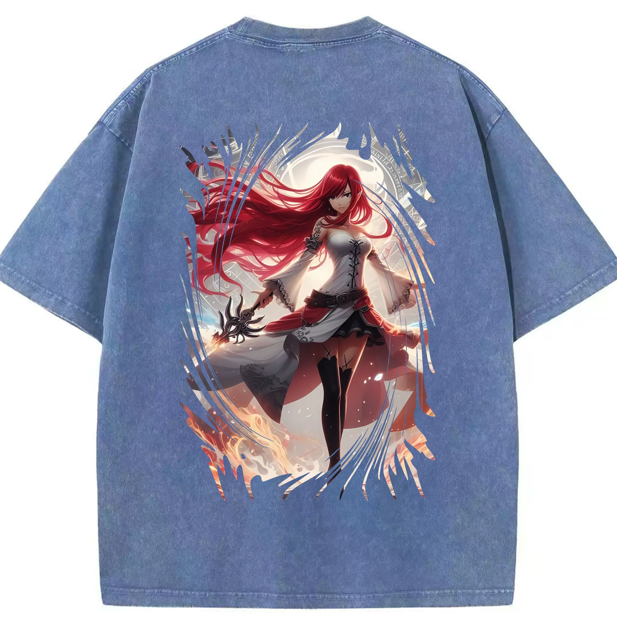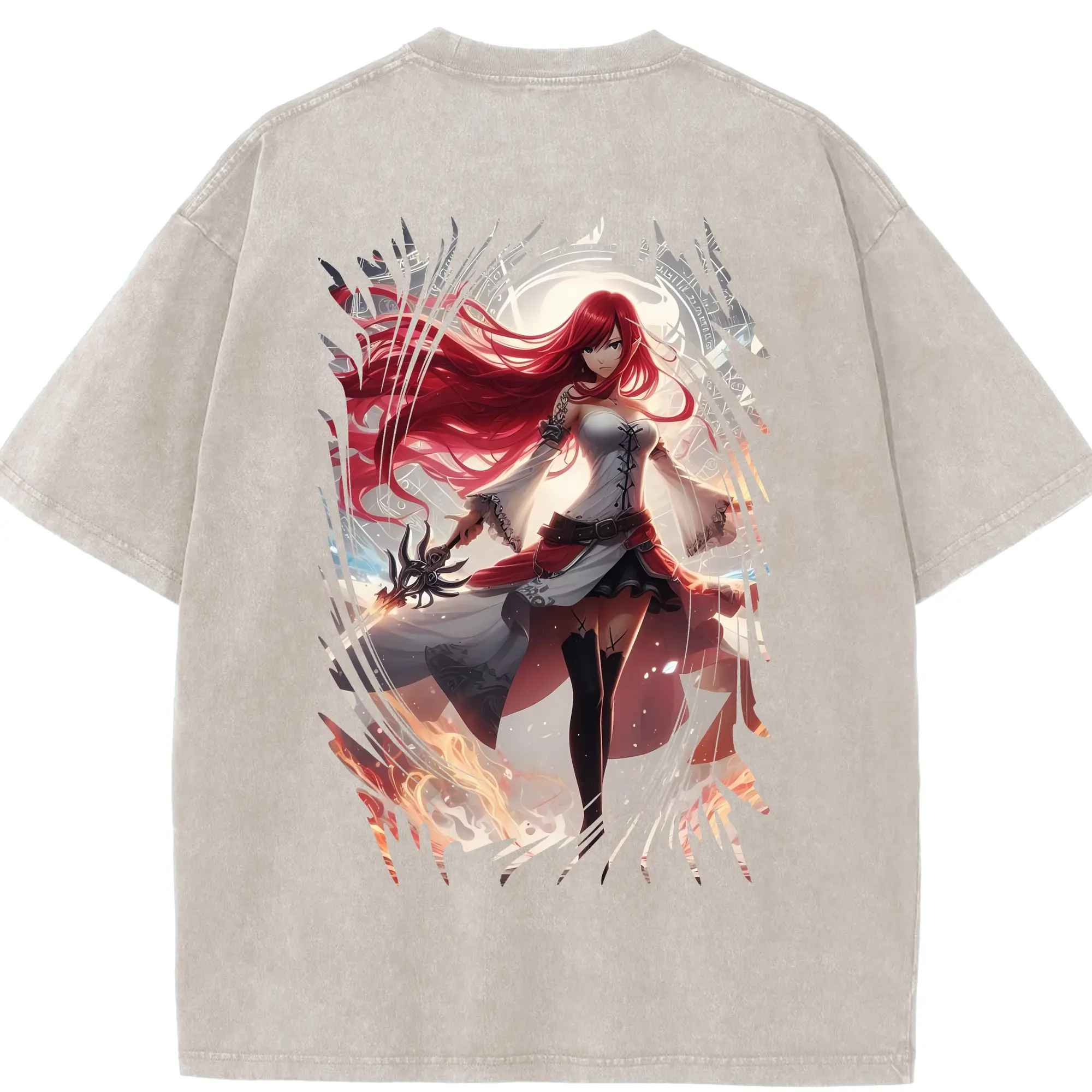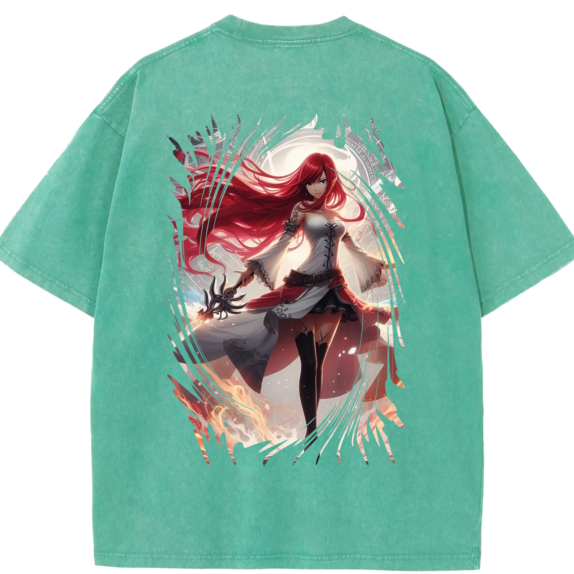 フェアリーテイル グッズ エルザ・スカーレット - 綿100% ヴィンテージ風 半袖Tシャツ ・ フロントプリント ・ 柔らか肌触り ・ 通気性 快適 ・ スポーツ カジュアル 外出用