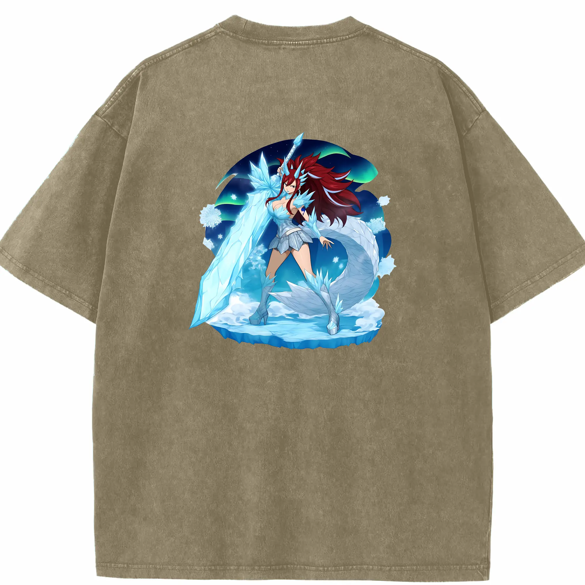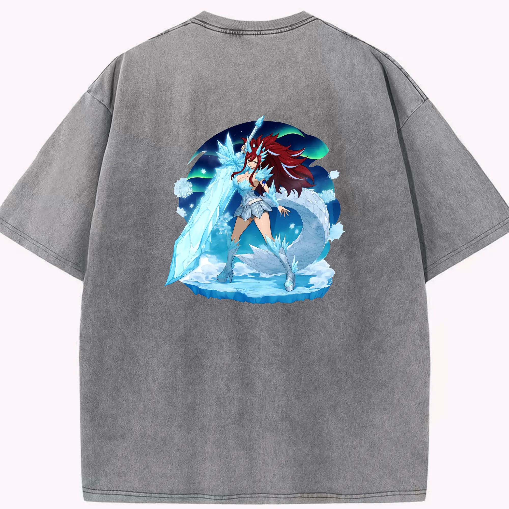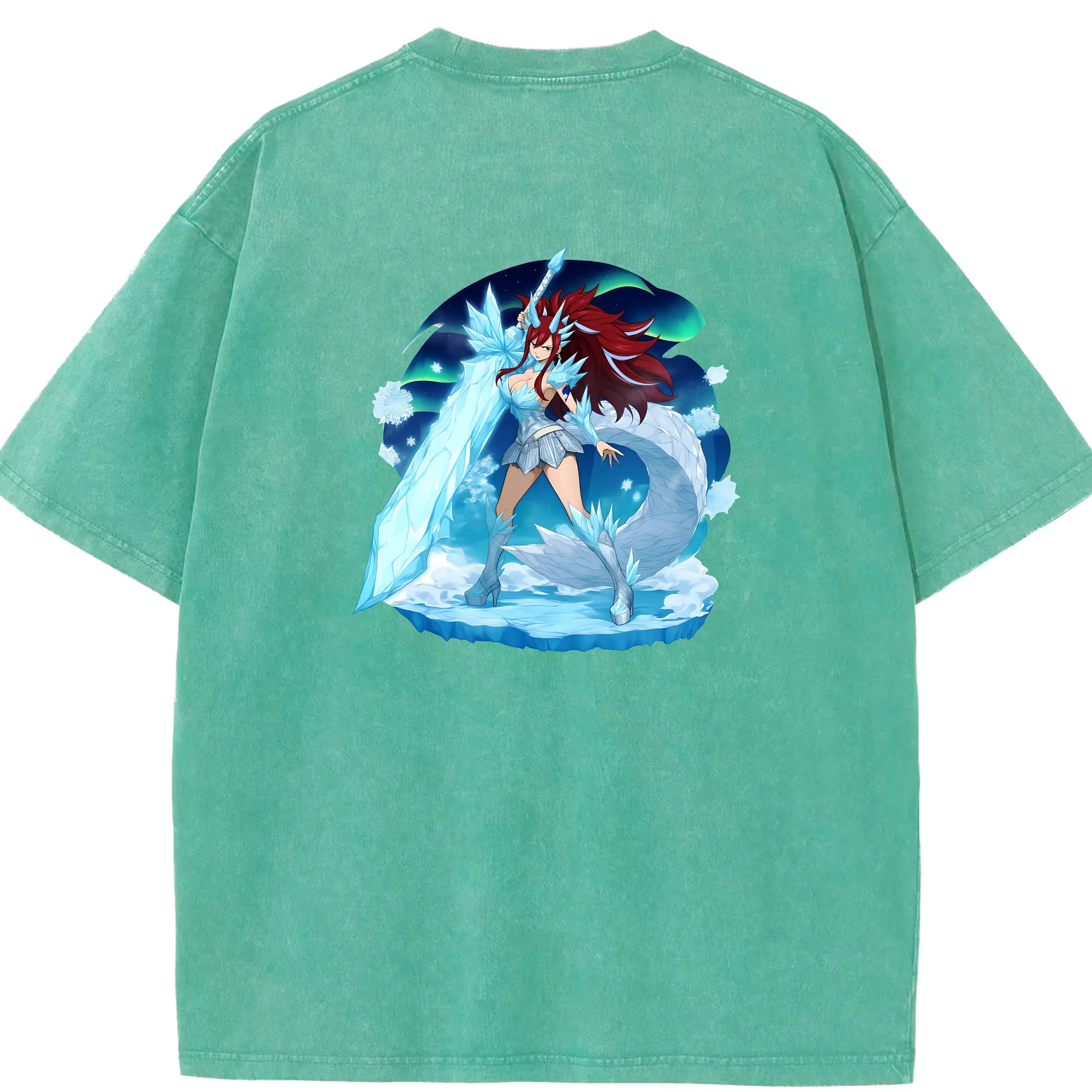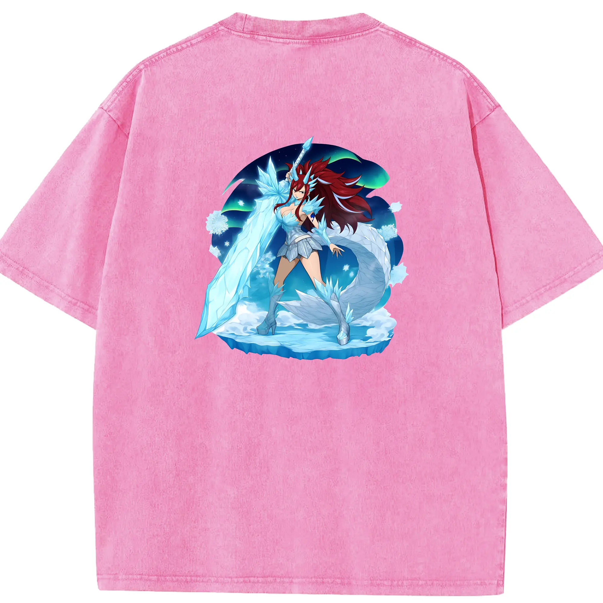 フェアリーテイル グッズ エルザ・スカーレット - 綿100% ヴィンテージ風 半袖Tシャツ ・ フロントプリント ・ 柔らか肌触り ・ 通気性 快適 ・ スポーツ カジュアル 外出用