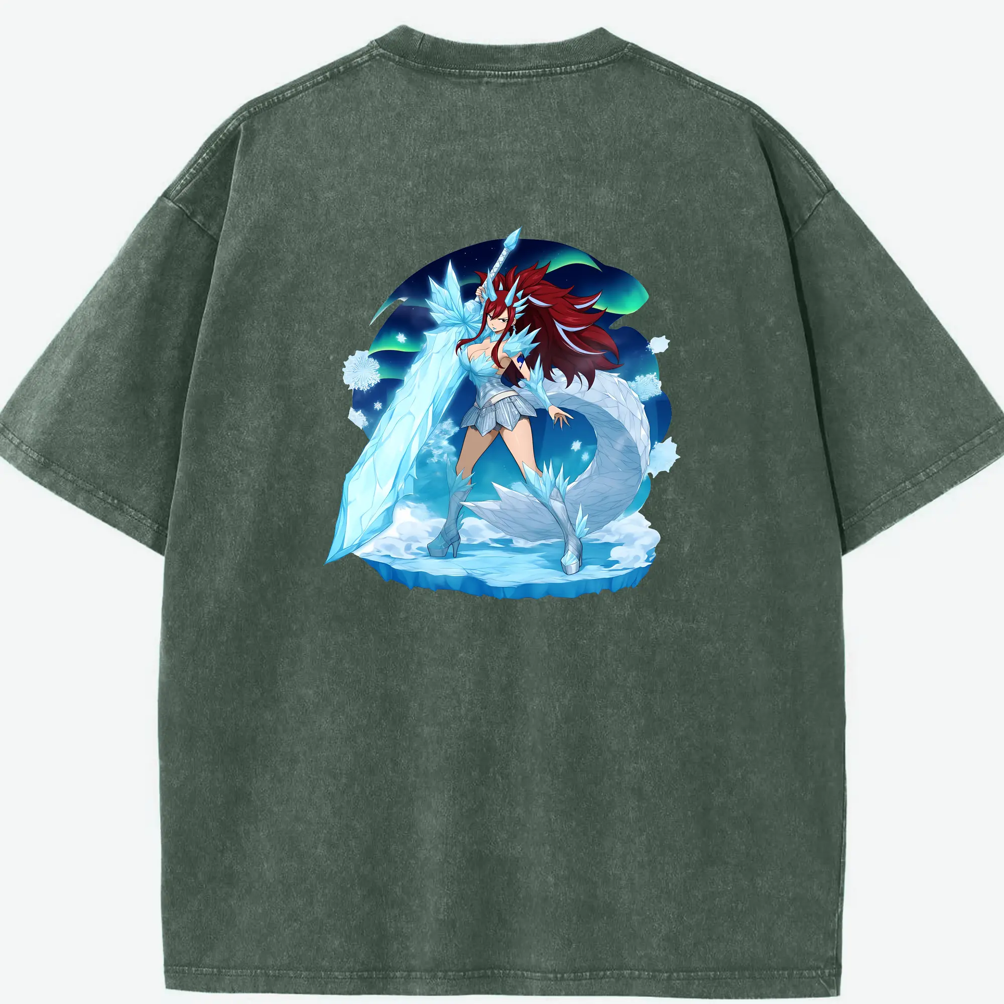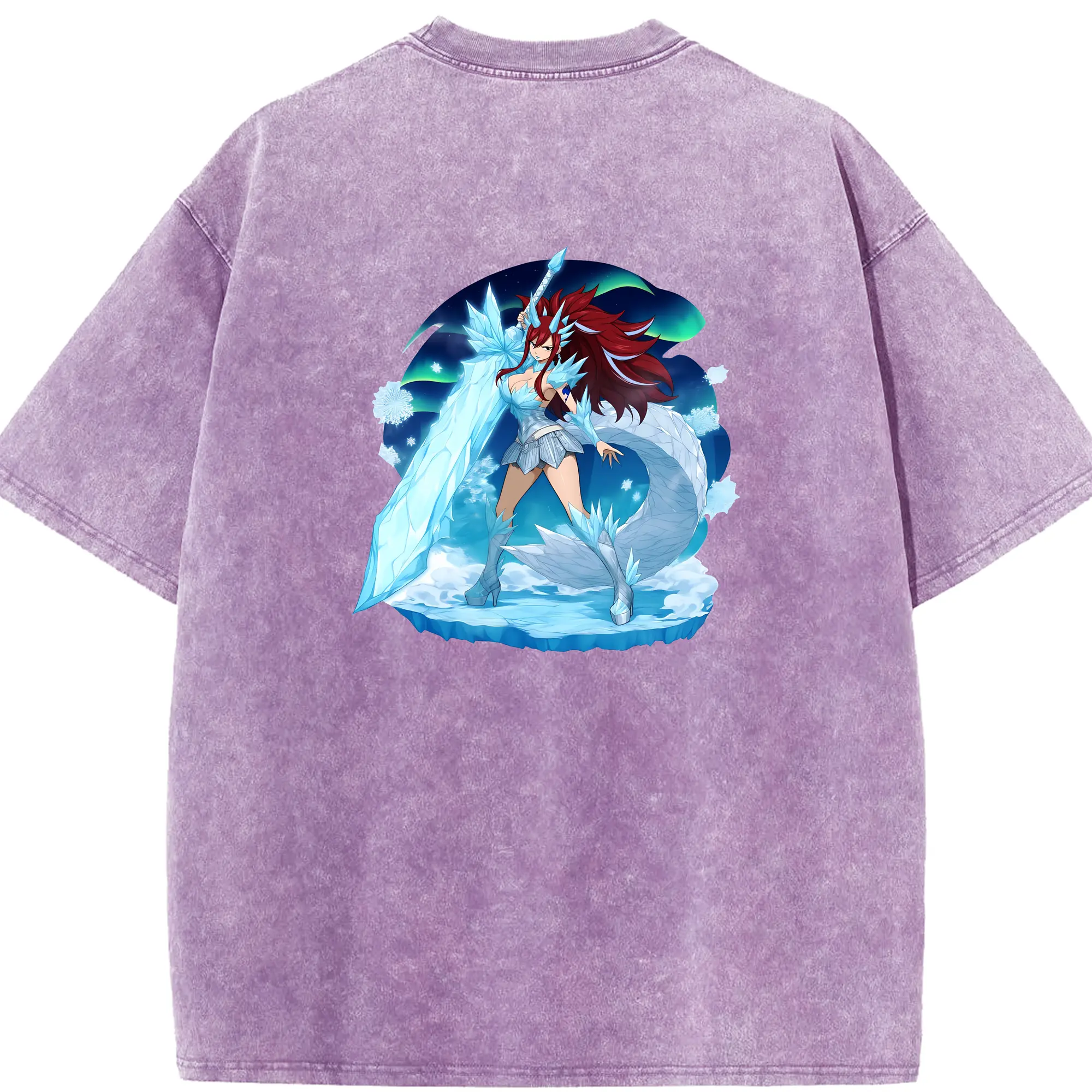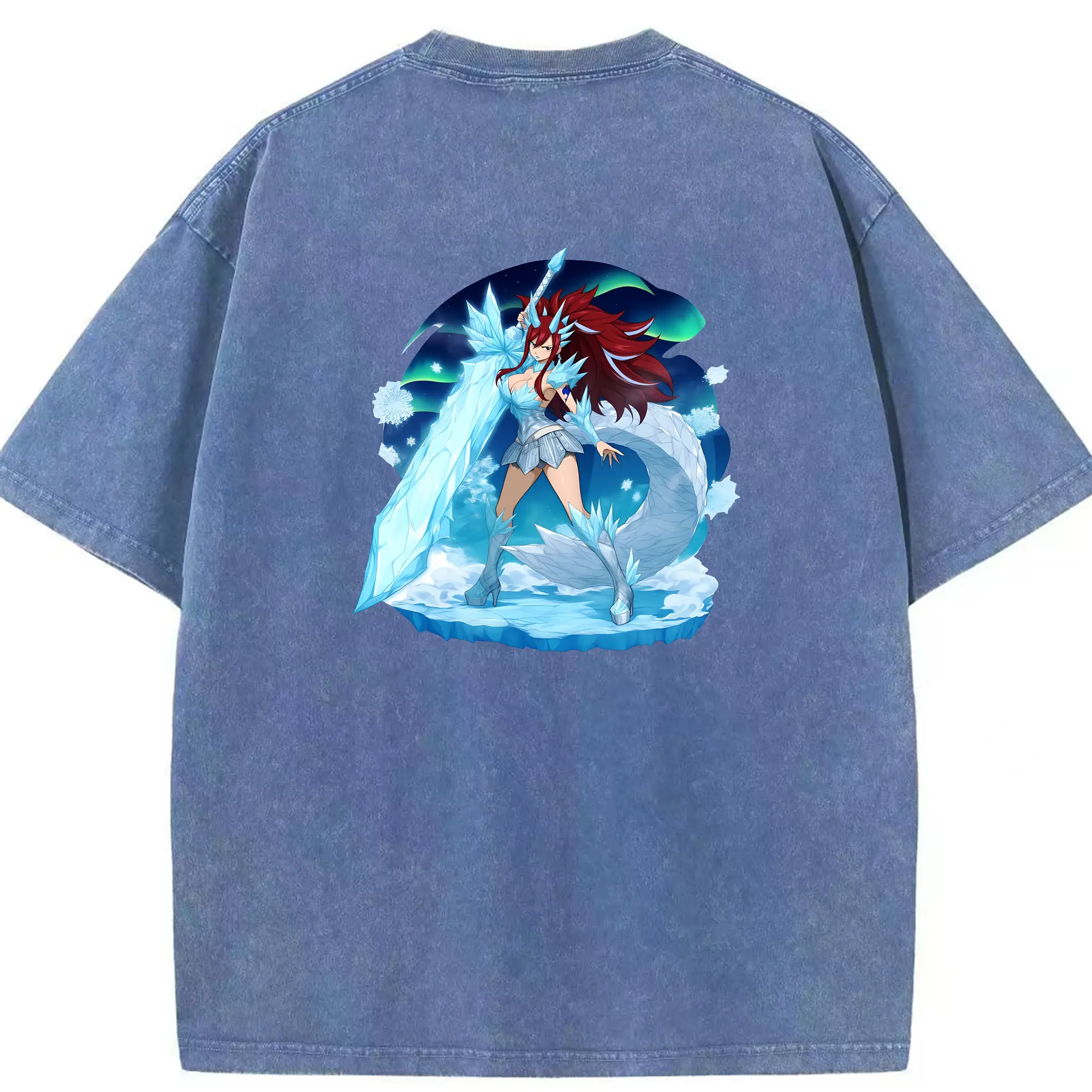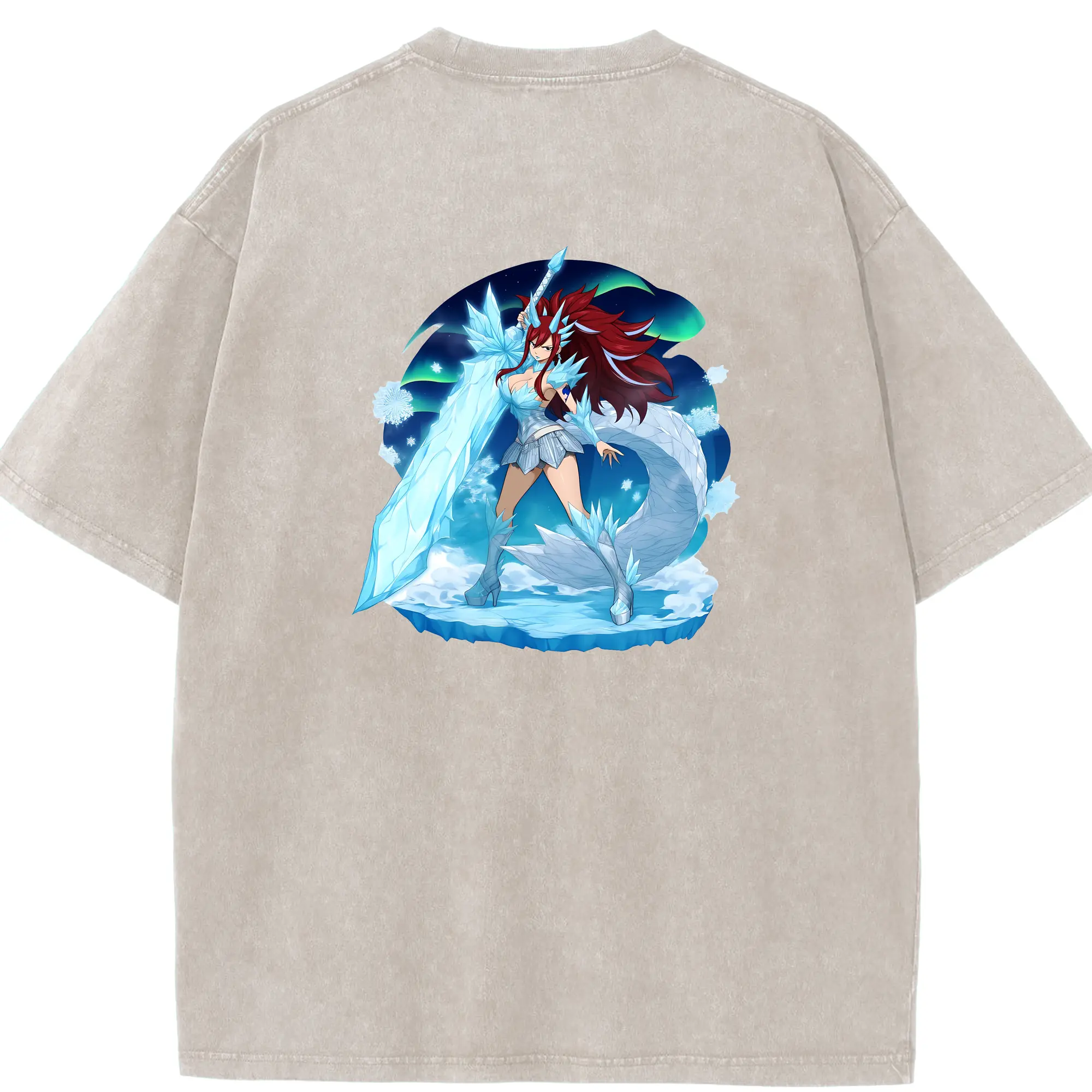 フェアリーテイル グッズ エルザ・スカーレット - 綿100% ヴィンテージ風 半袖Tシャツ ・ フロントプリント ・ 柔らか肌触り ・ 通気性 快適 ・ スポーツ カジュアル 外出用