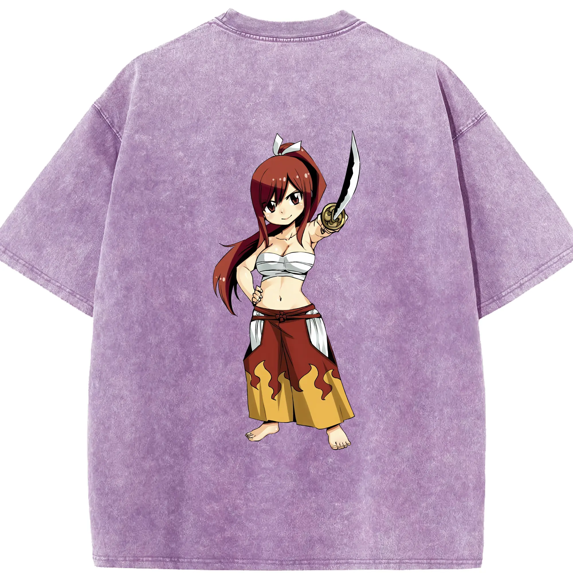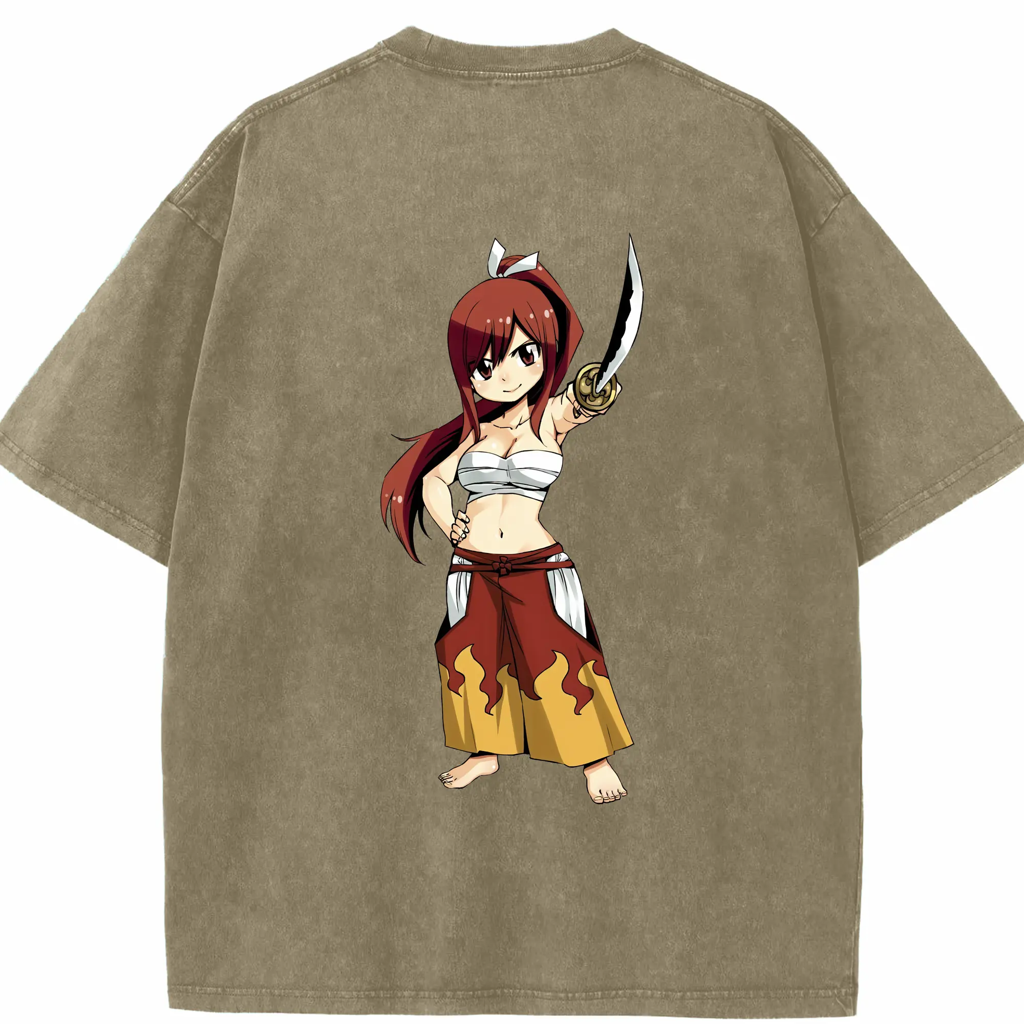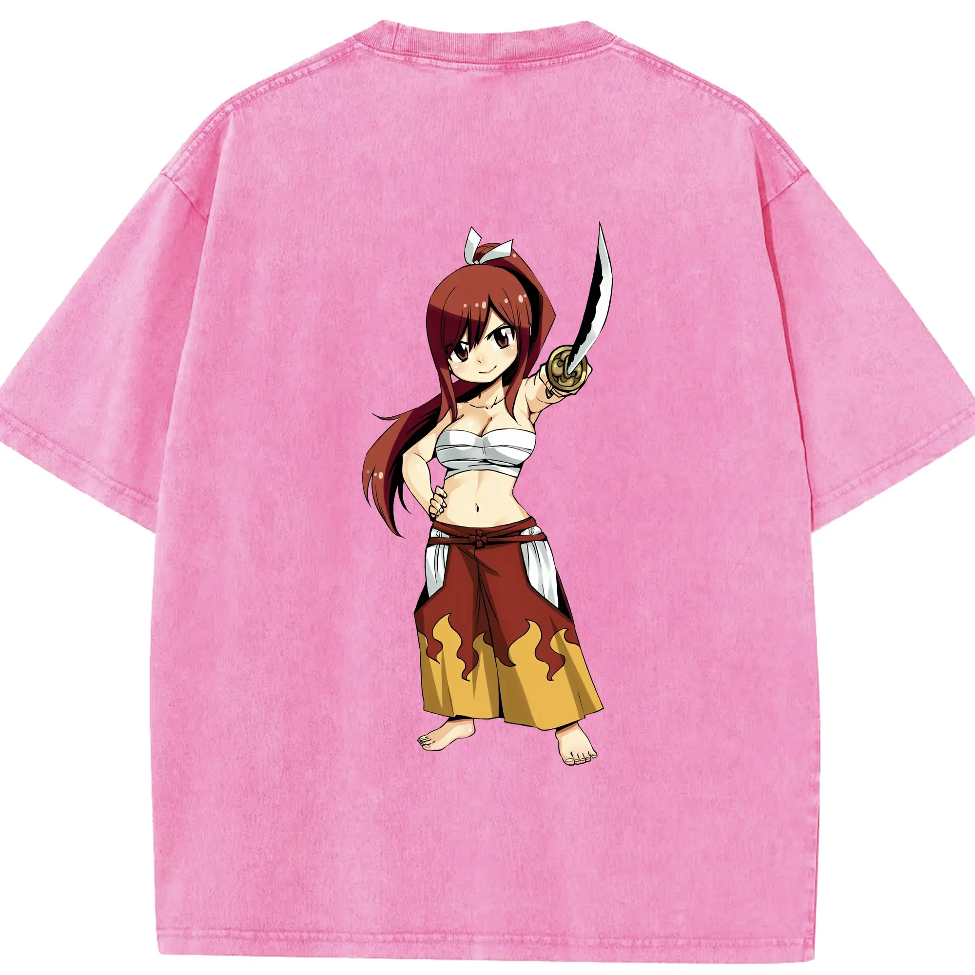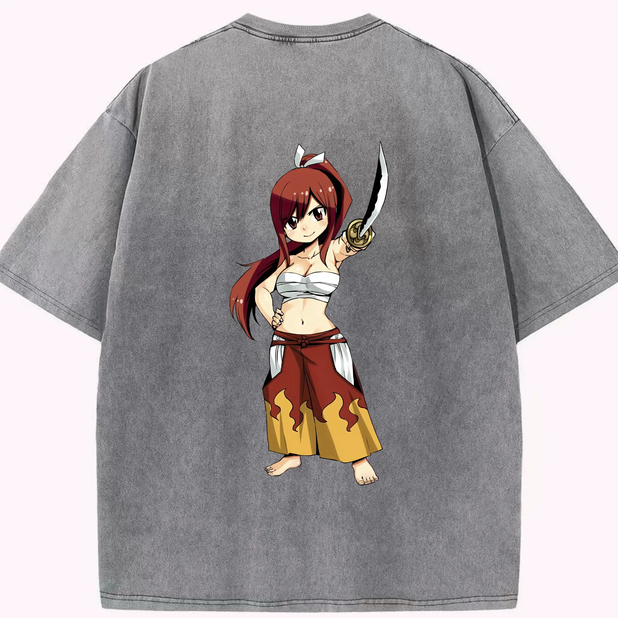 フェアリーテイル グッズ エルザ・スカーレット - 綿100% ヴィンテージ風 半袖Tシャツ ・ フロントプリント ・ 柔らか肌触り ・ 通気性 快適 ・ スポーツ カジュアル 外出用