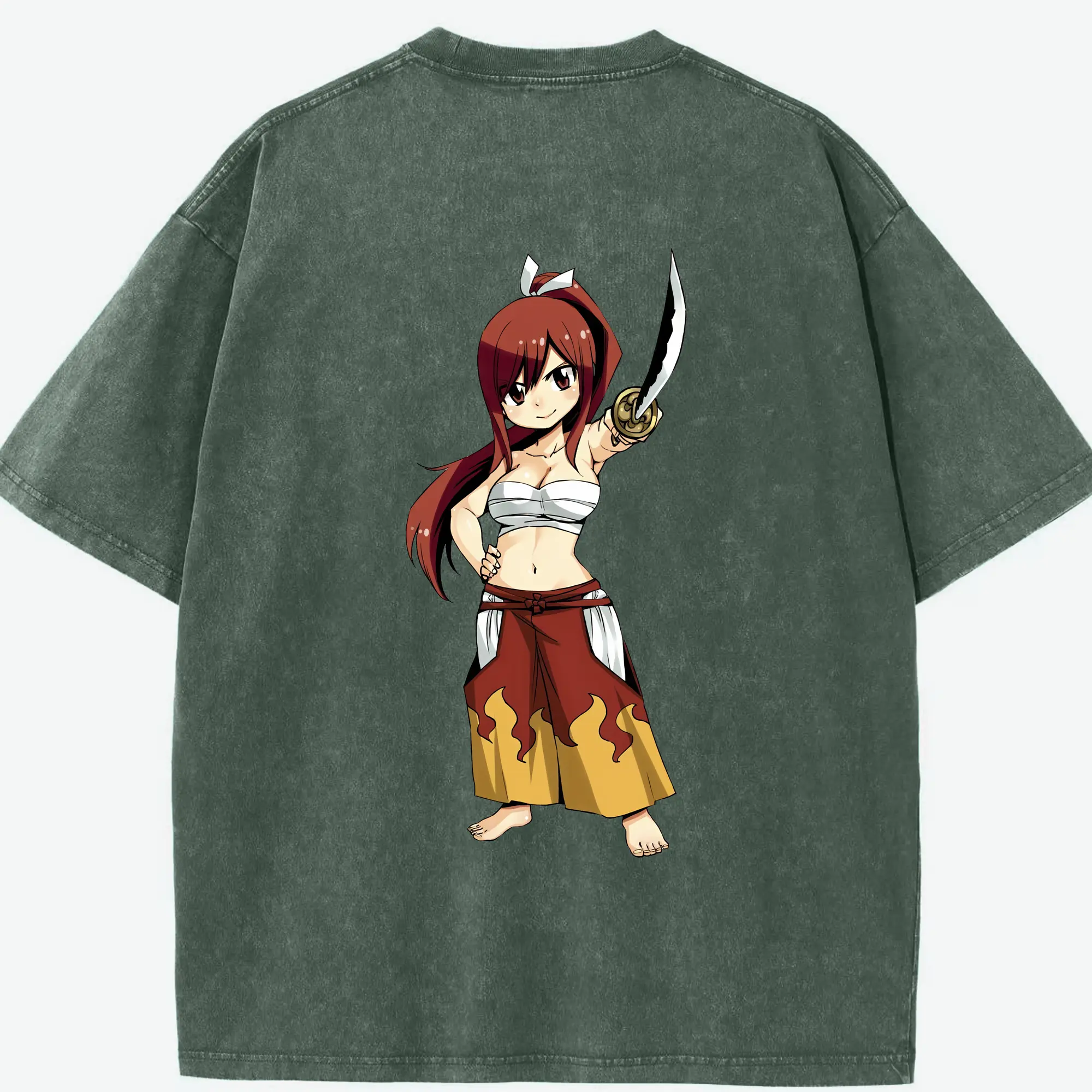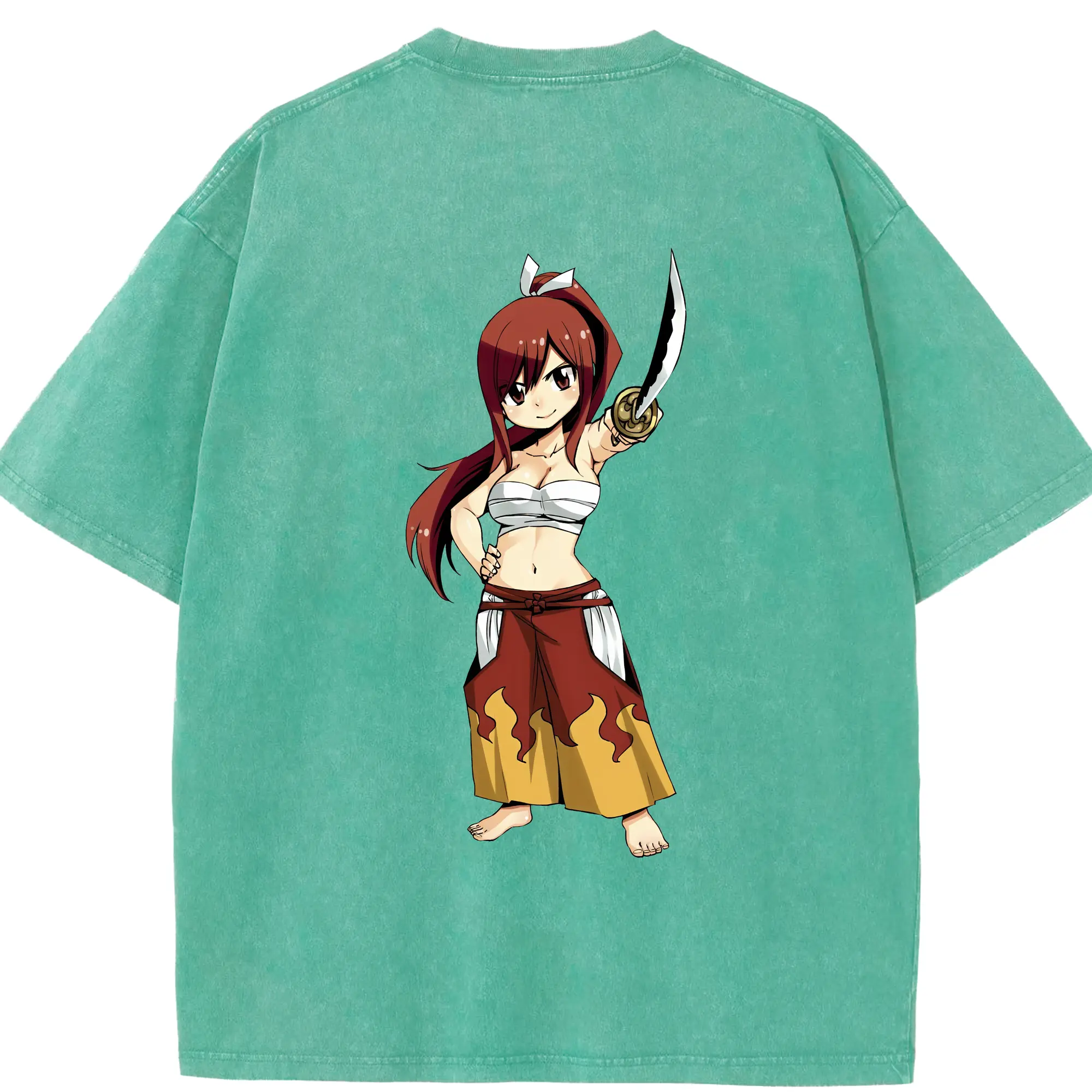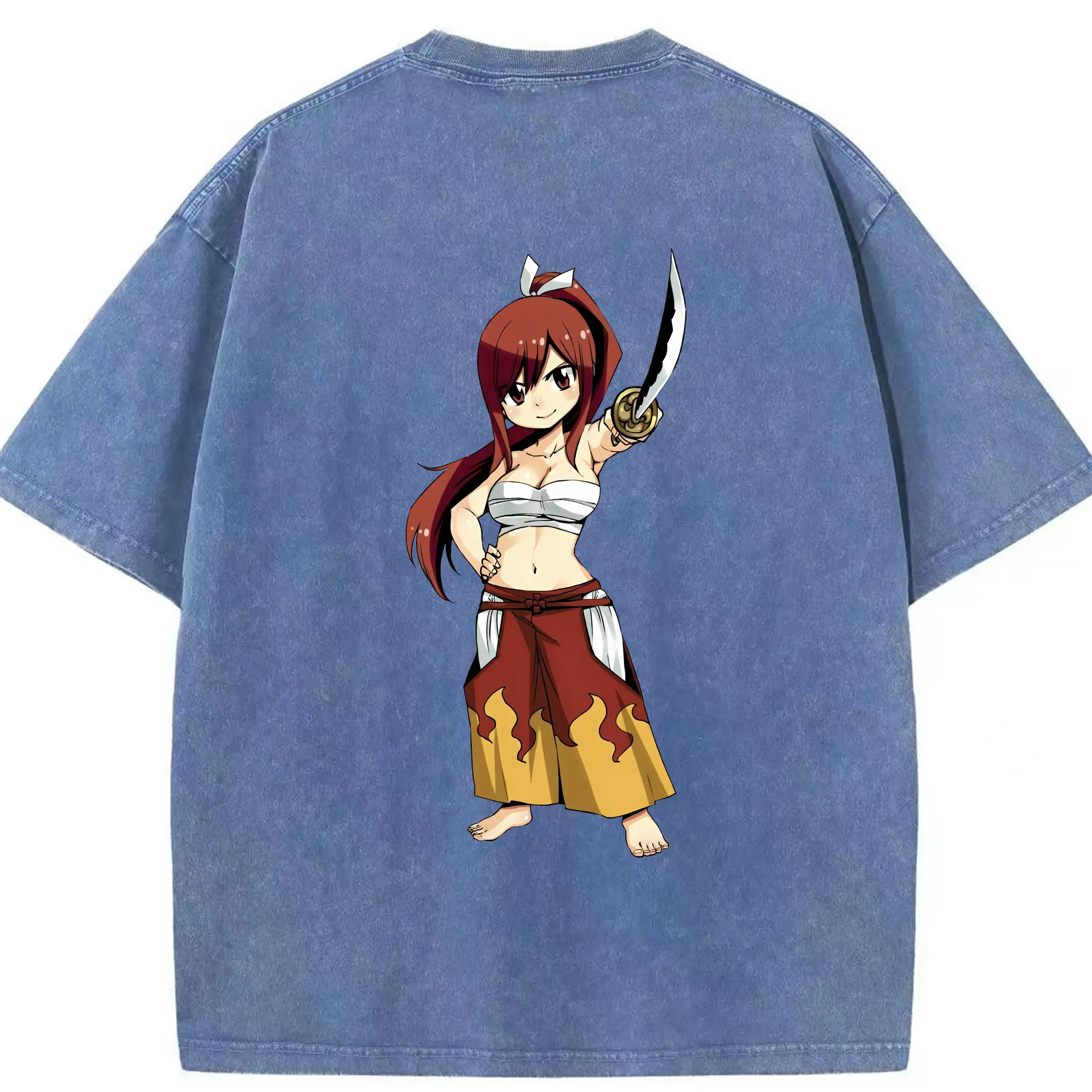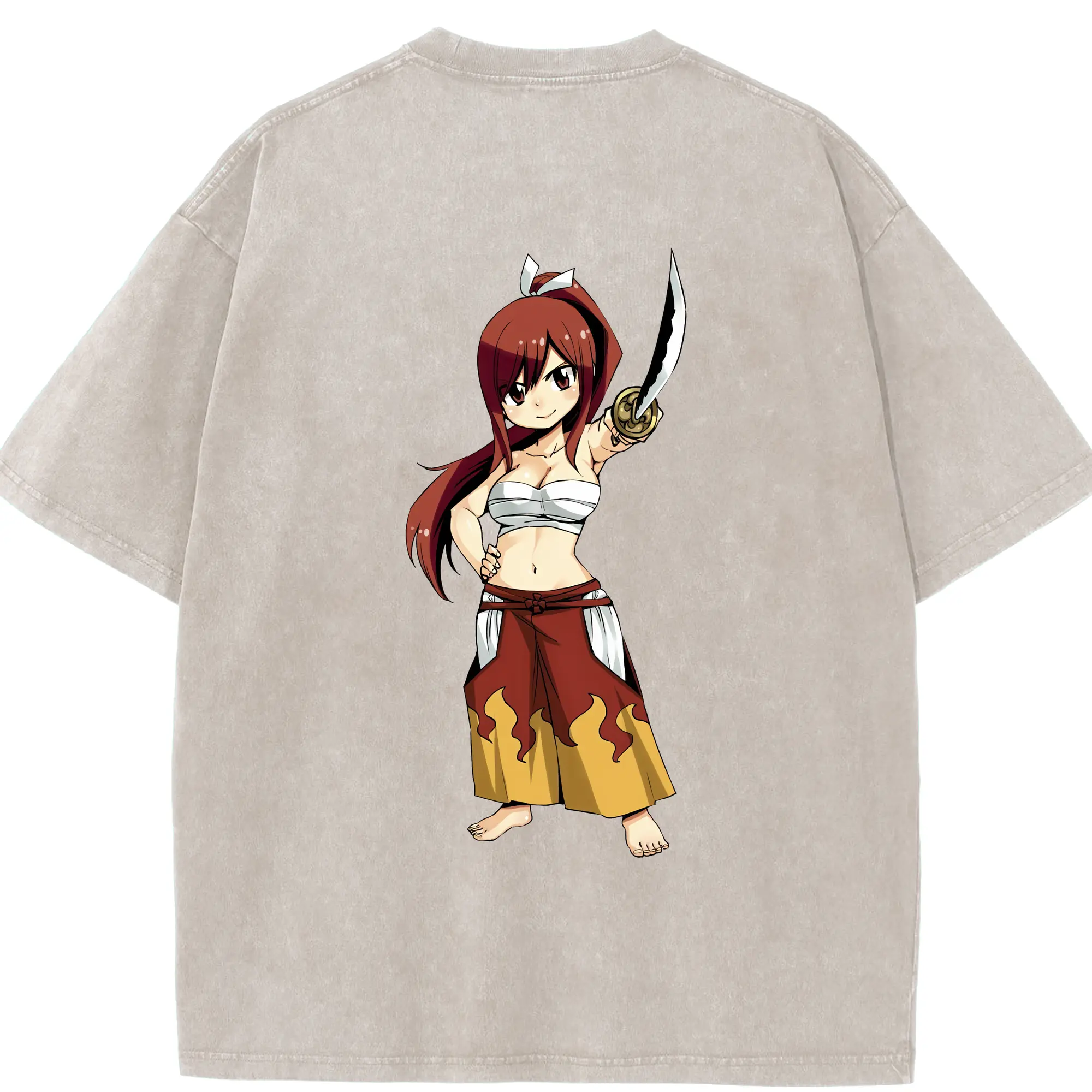 フェアリーテイル グッズ エルザ・スカーレット - 綿100% ヴィンテージ風 半袖Tシャツ ・ フロントプリント ・ 柔らか肌触り ・ 通気性 快適 ・ スポーツ カジュアル 外出用