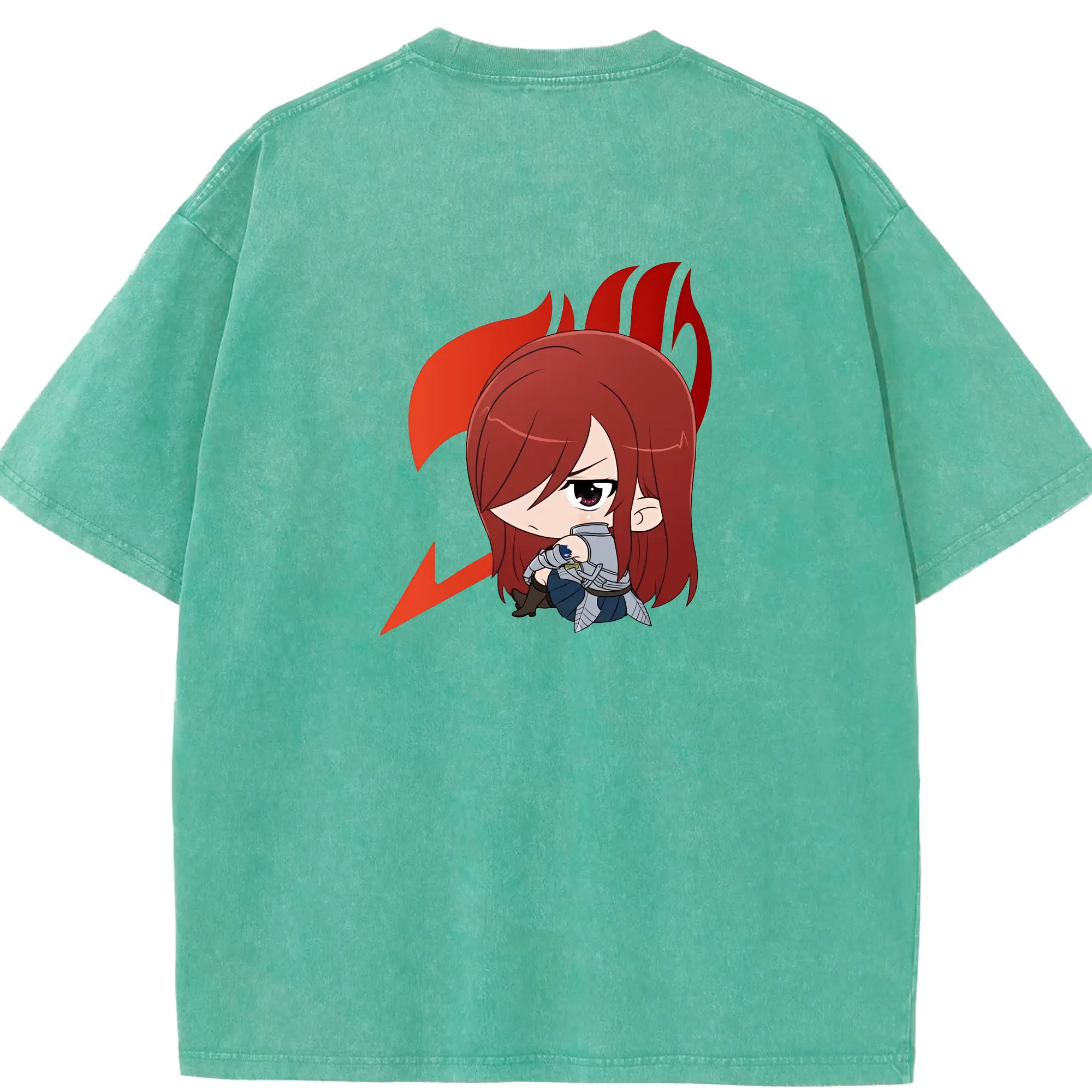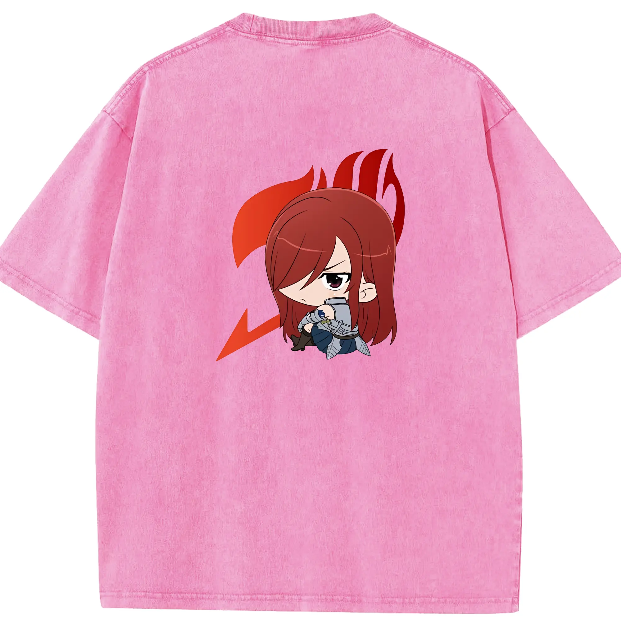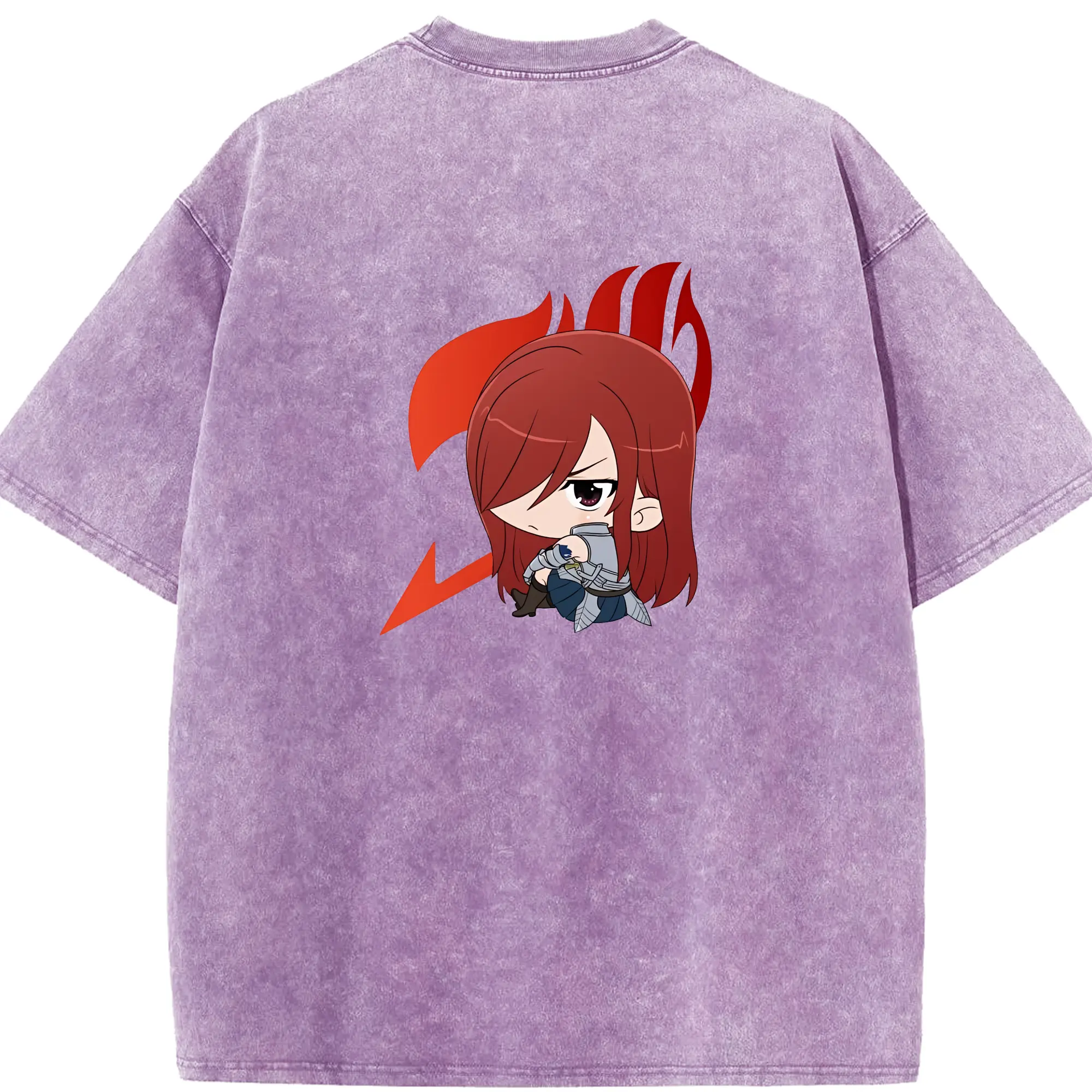フェアリーテイル グッズ エルザ・スカーレット - 綿100% ヴィンテージ風 半袖Tシャツ ・ フロントプリント ・ 柔らか肌触り ・ 通気性 快適 ・ スポーツ カジュアル 外出用