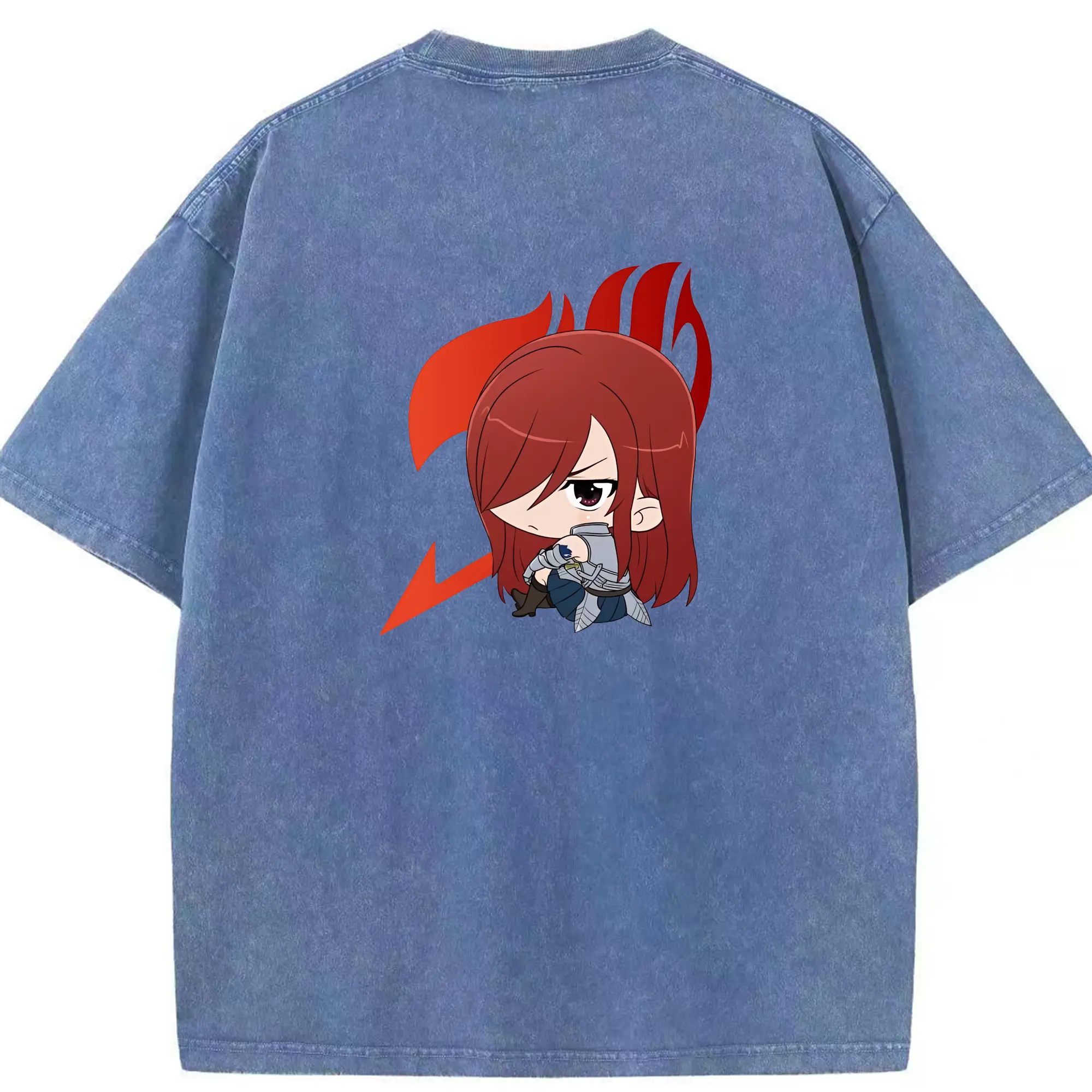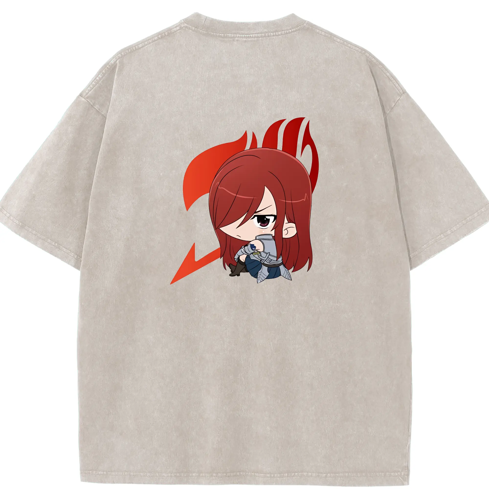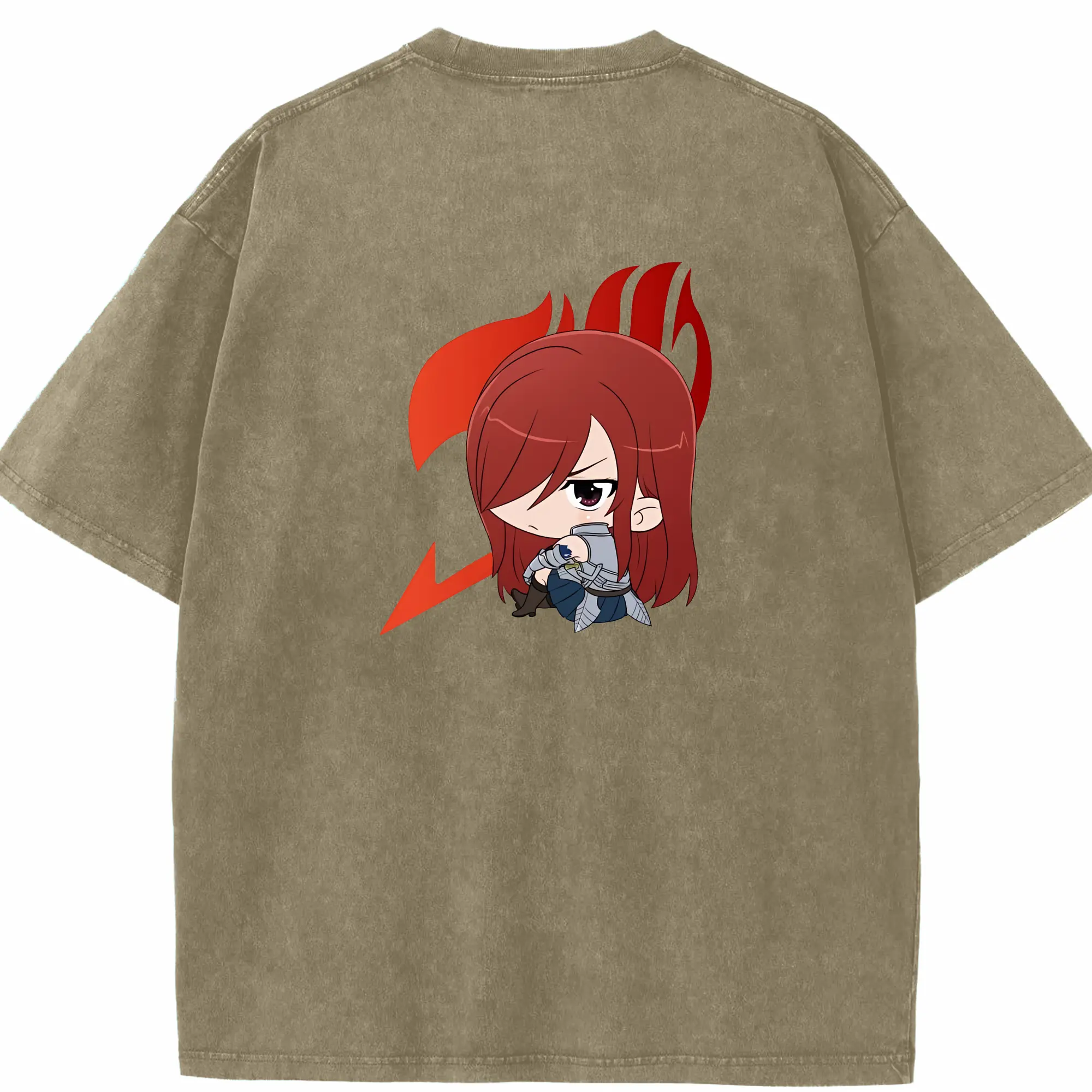 フェアリーテイル グッズ エルザ・スカーレット - 綿100% ヴィンテージ風 半袖Tシャツ ・ フロントプリント ・ 柔らか肌触り ・ 通気性 快適 ・ スポーツ カジュアル 外出用