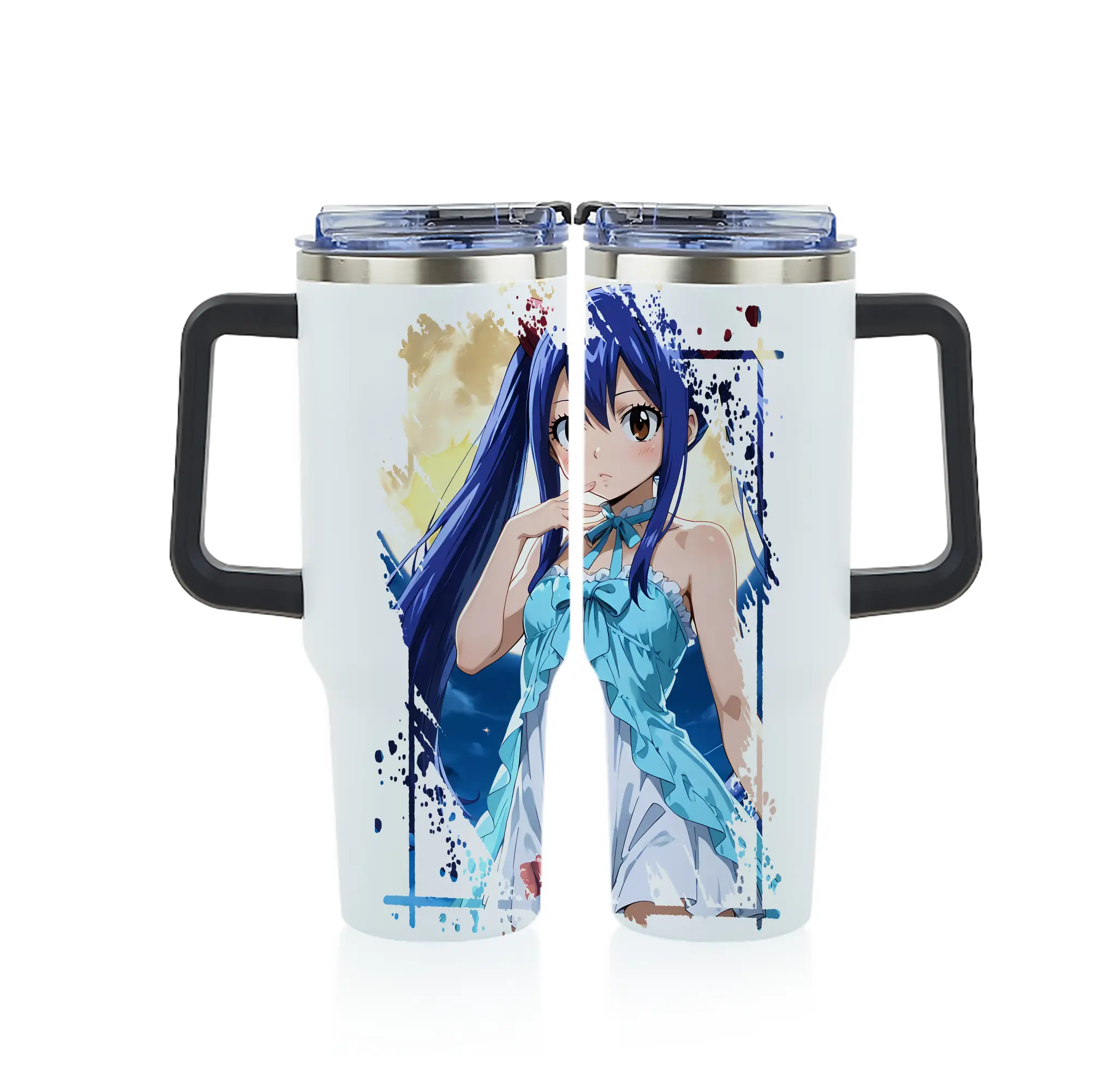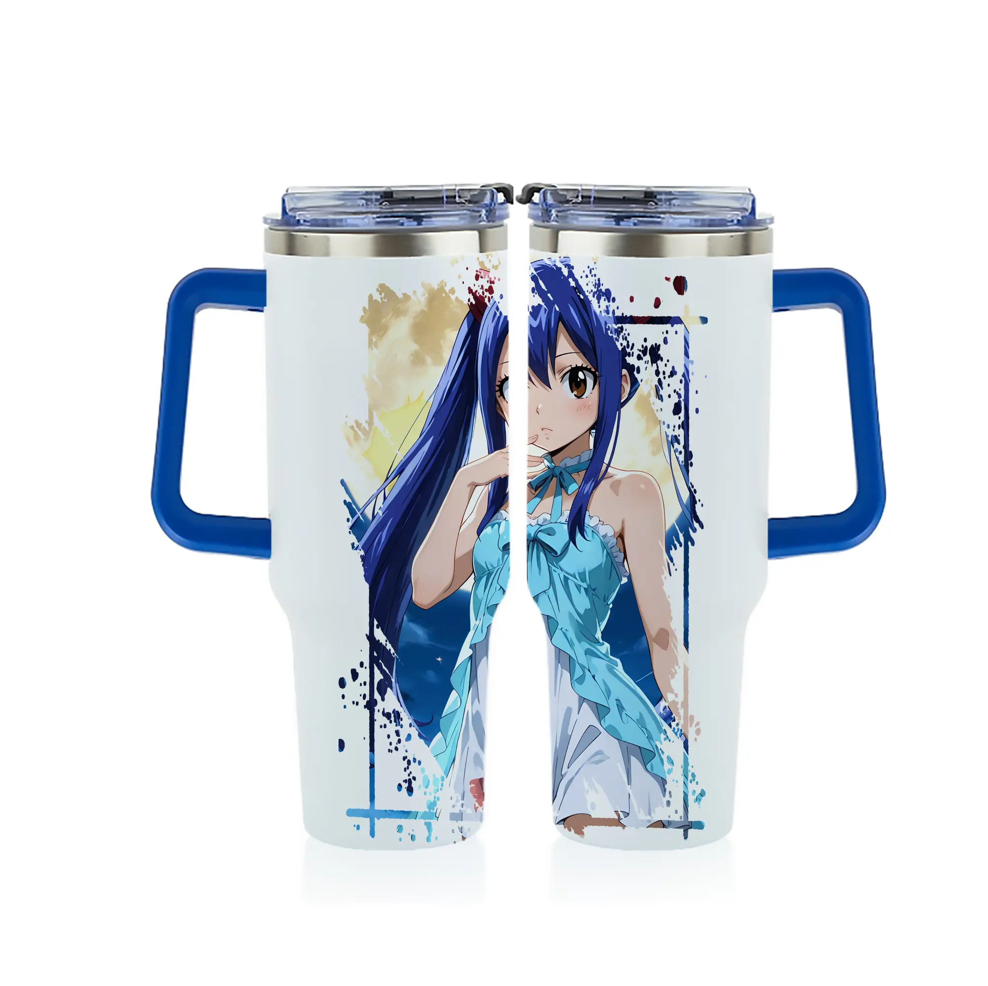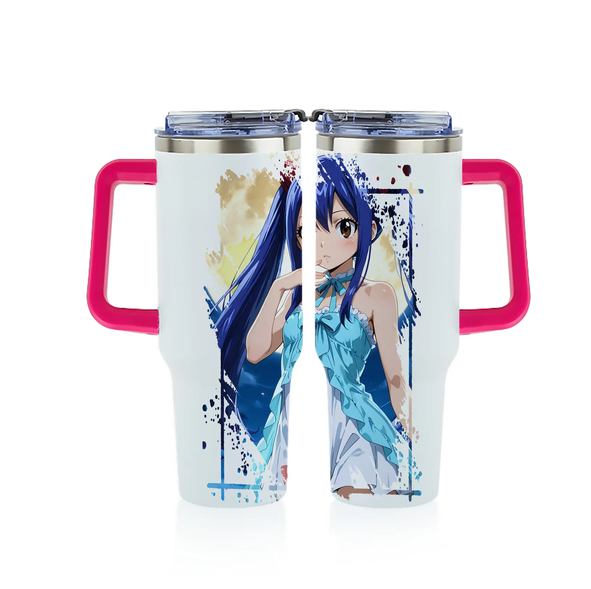 フェアリーテイル グッズ ウェンディ・マーベル - 1200mL フルプリント車用タンブラー ・ 304ステンレス 内側 ・ 201ステンレス 外側 ・ 保温 保冷 ・ 通勤 ドライブ アウトドア用