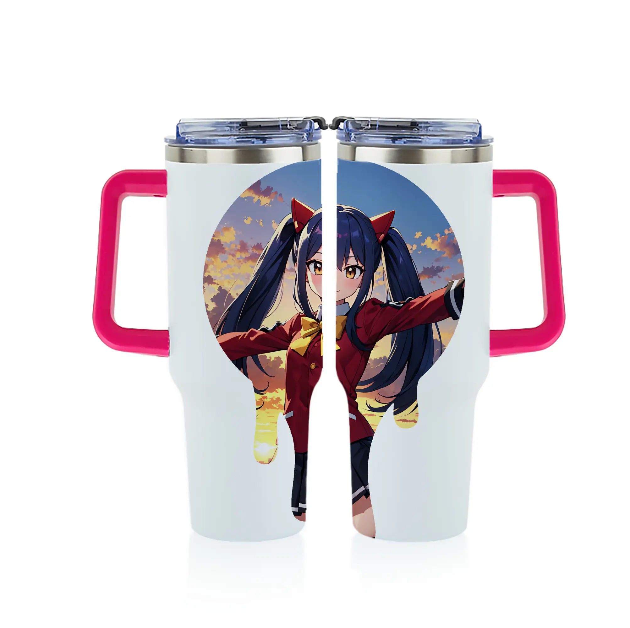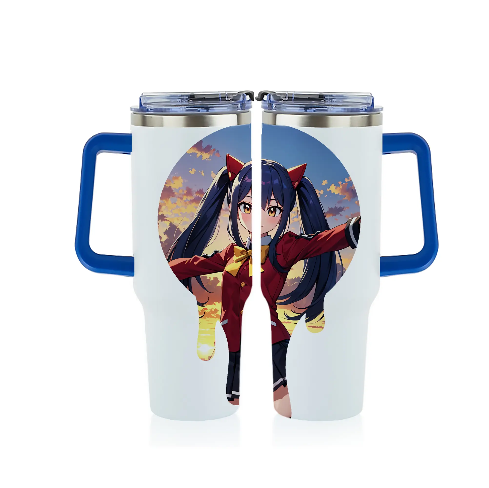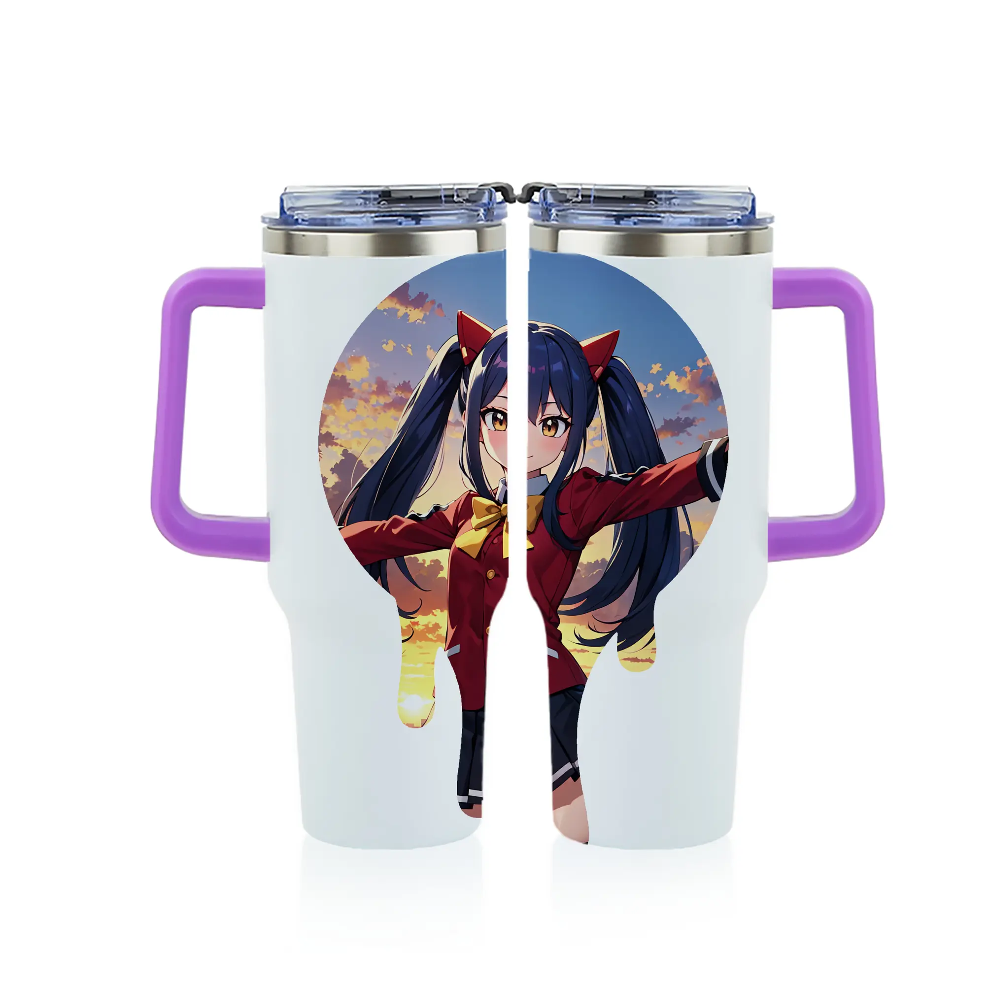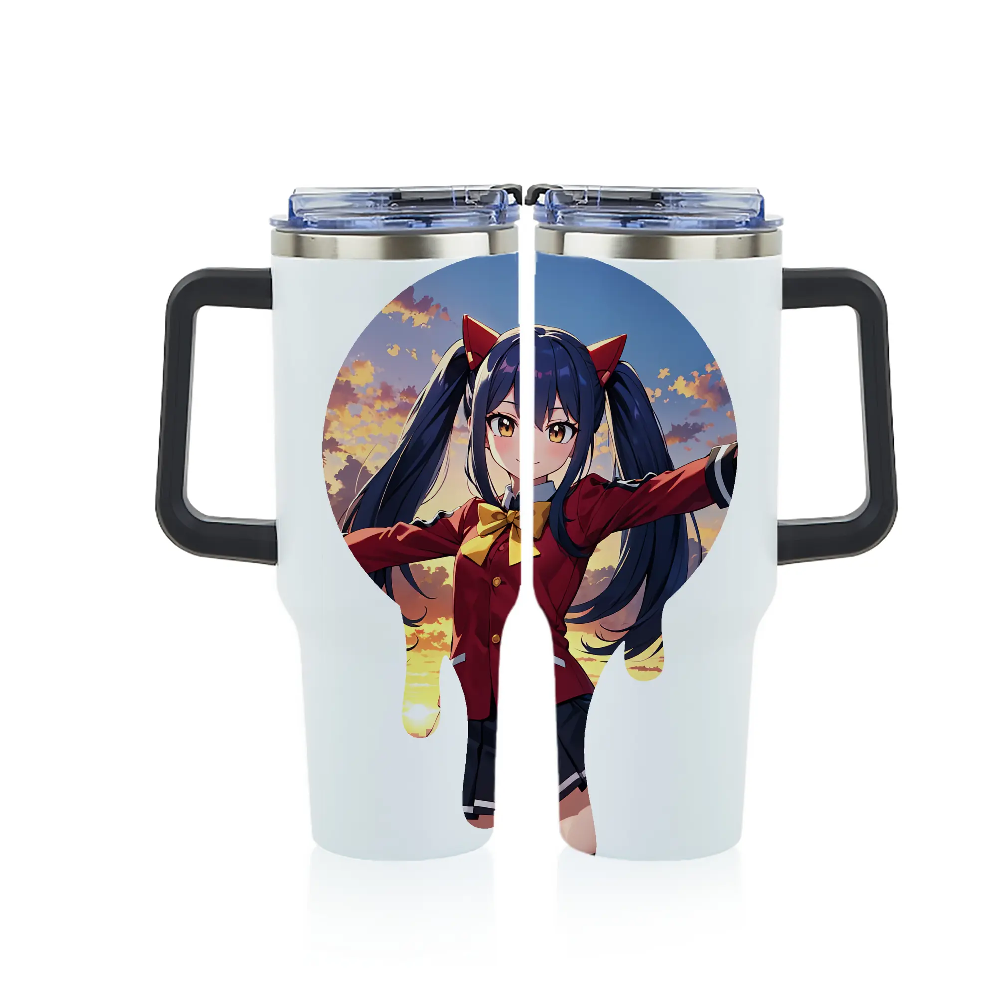 フェアリーテイル グッズ ウェンディ・マーベル - 1200mL フルプリント車用タンブラー ・ 304ステンレス 内側 ・ 201ステンレス 外側 ・ 保温 保冷 ・ 通勤 ドライブ アウトドア用