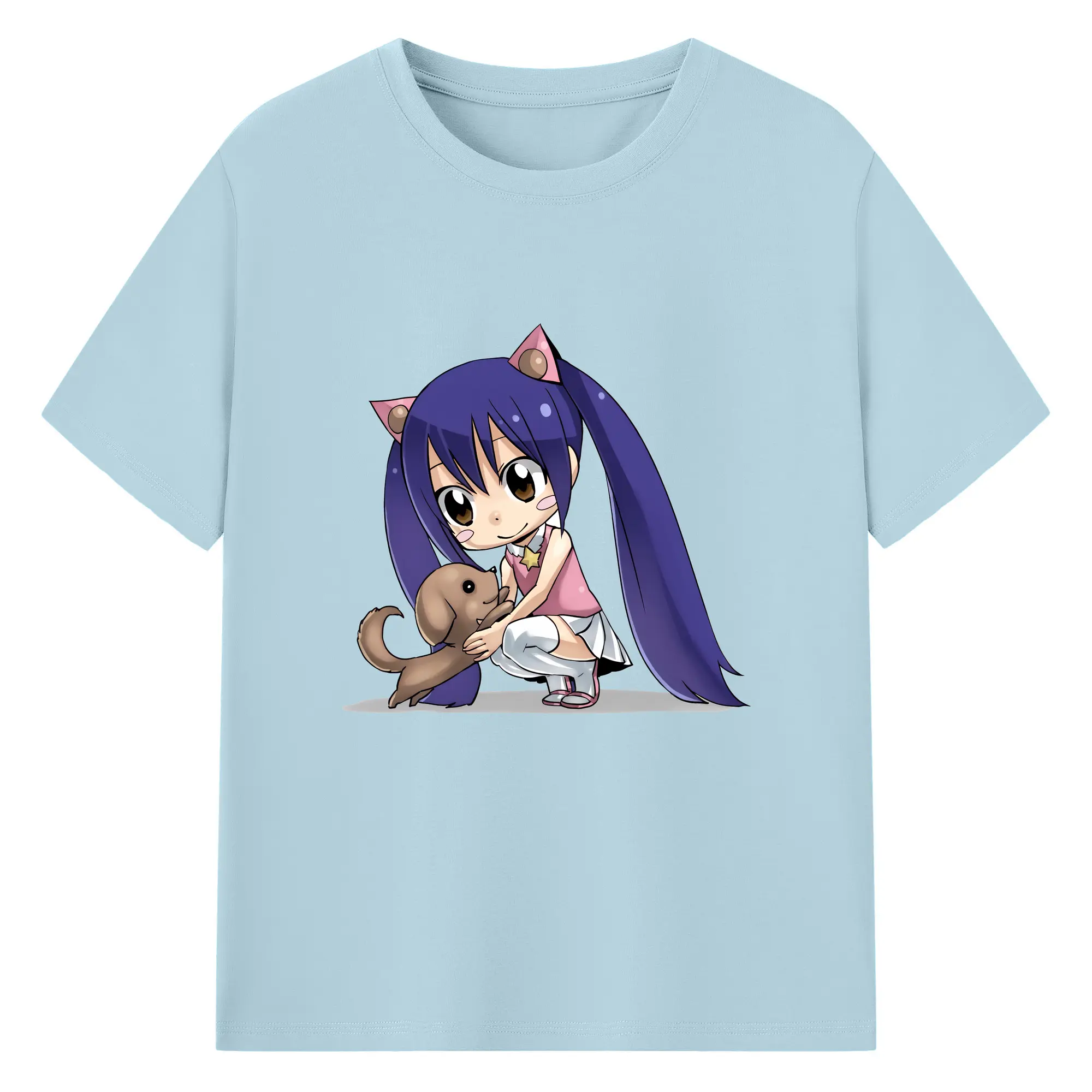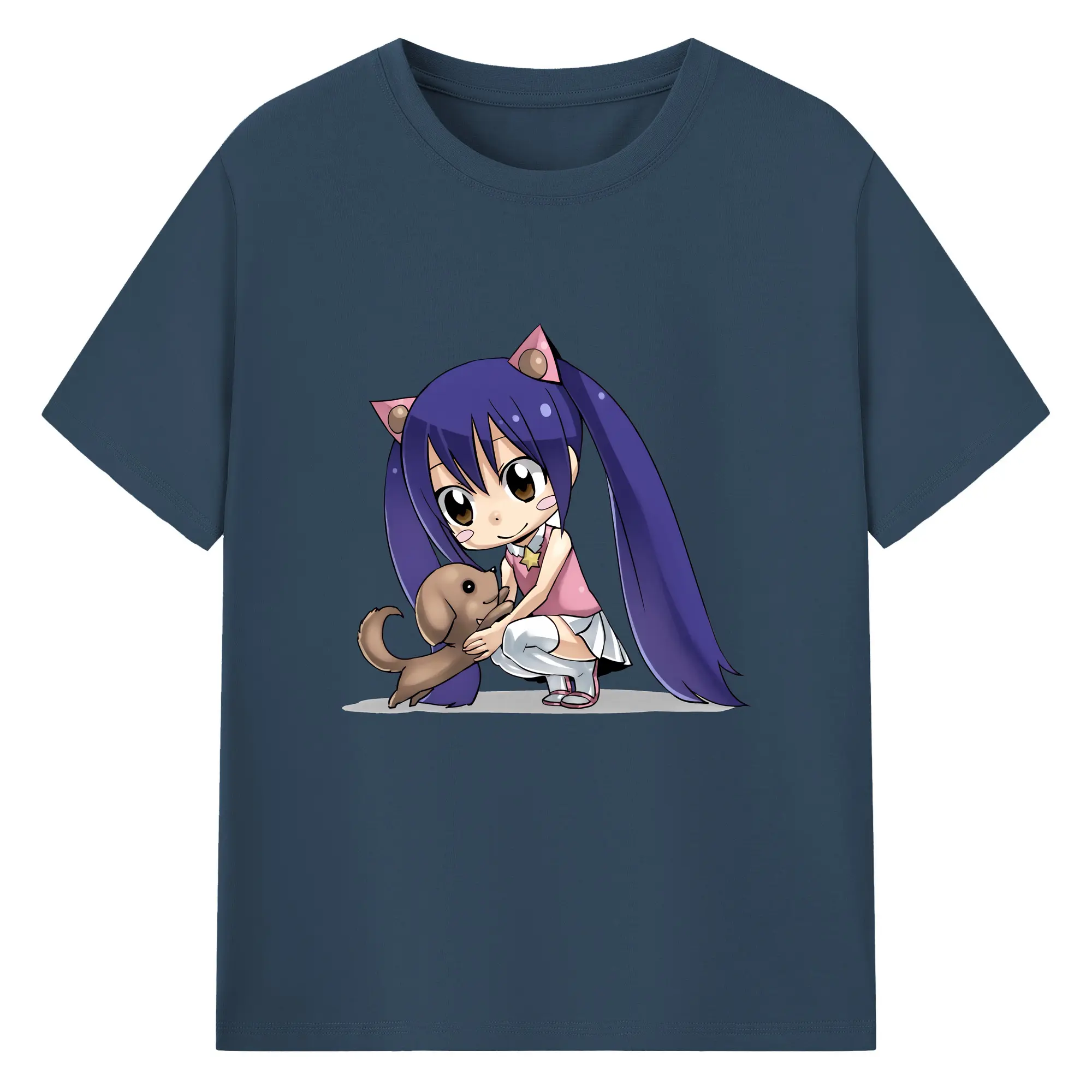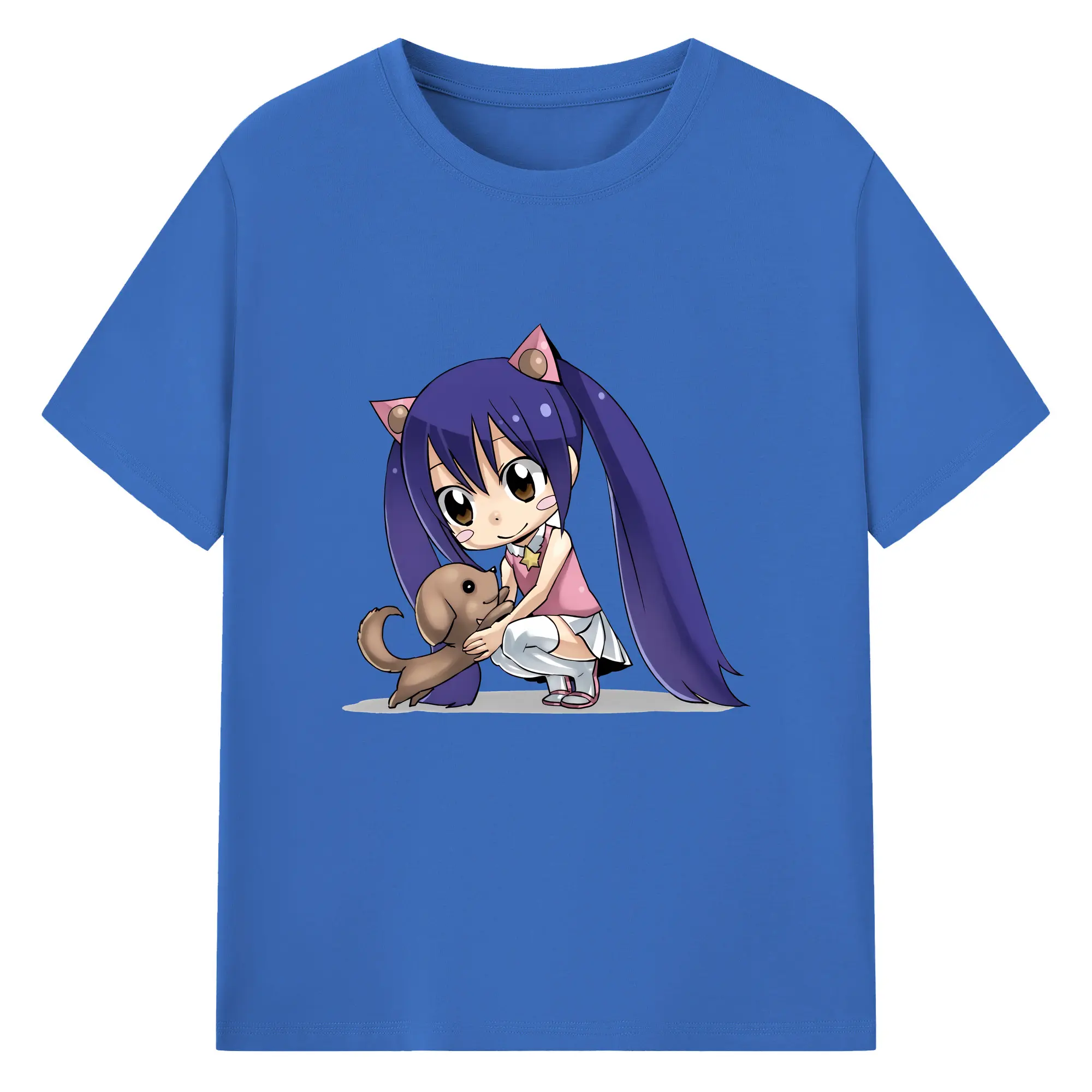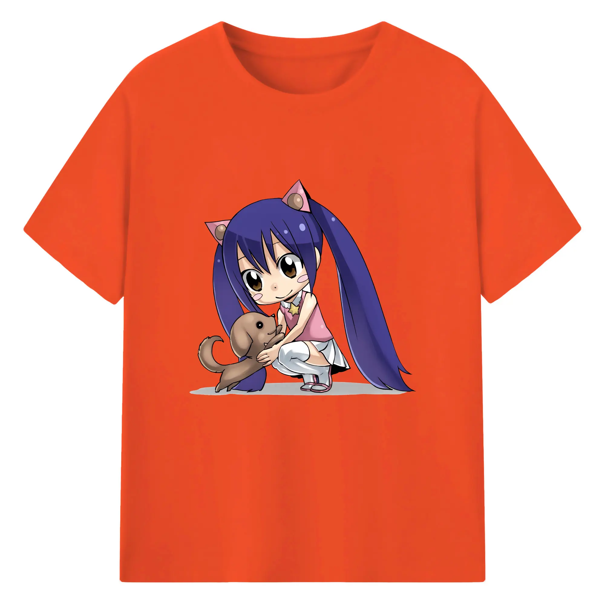 フェアリーテイル グッズ ウェンディ・マーベル - 綿100% 半袖Tシャツ ・ バックプリント ・ 快適 通気性 ・ 日常使い 散歩 スポーツ用