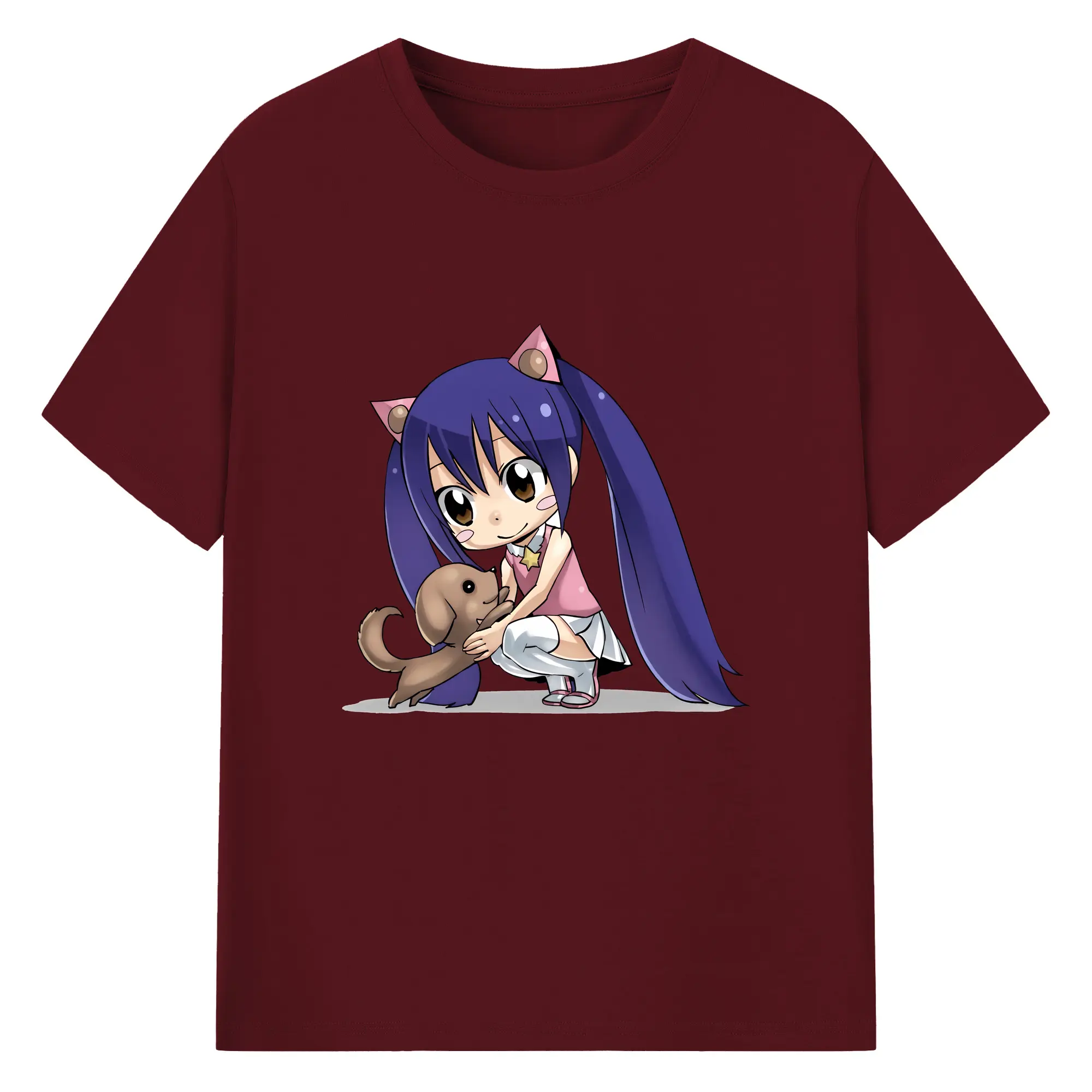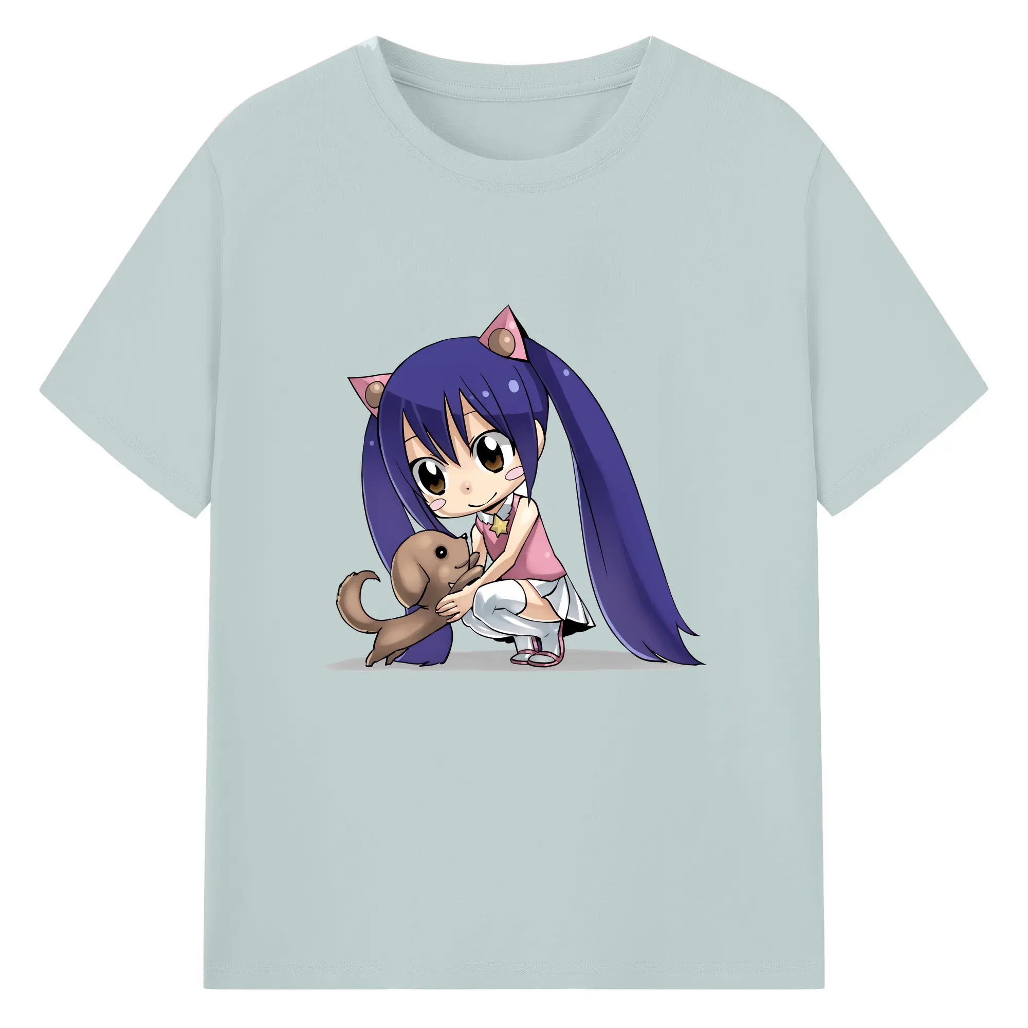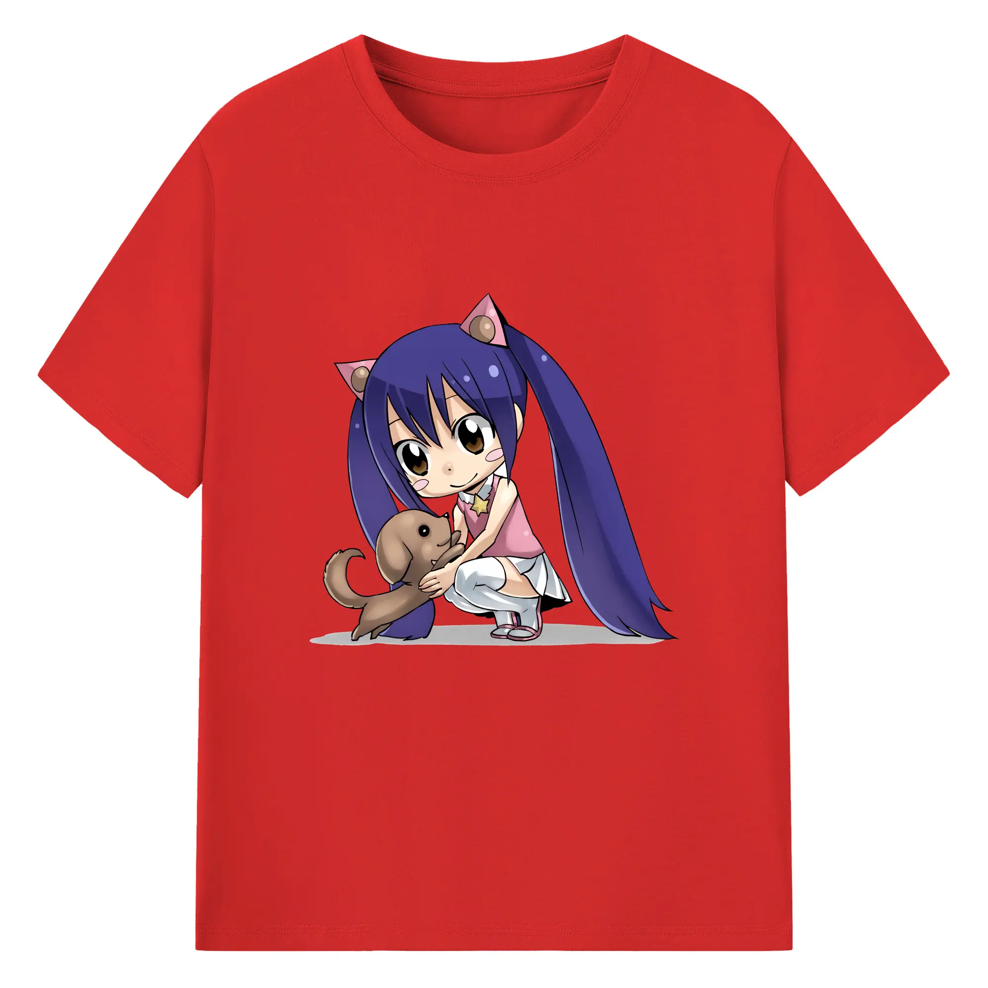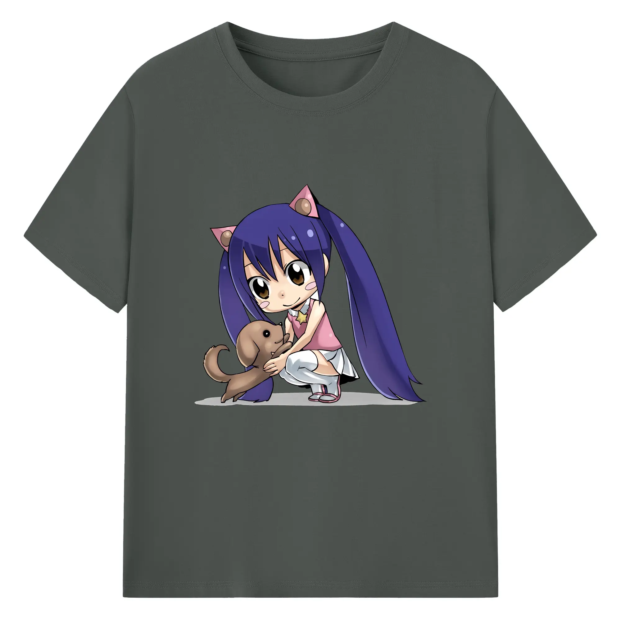フェアリーテイル グッズ ウェンディ・マーベル - 綿100% 半袖Tシャツ ・ バックプリント ・ 快適 通気性 ・ 日常使い 散歩 スポーツ用