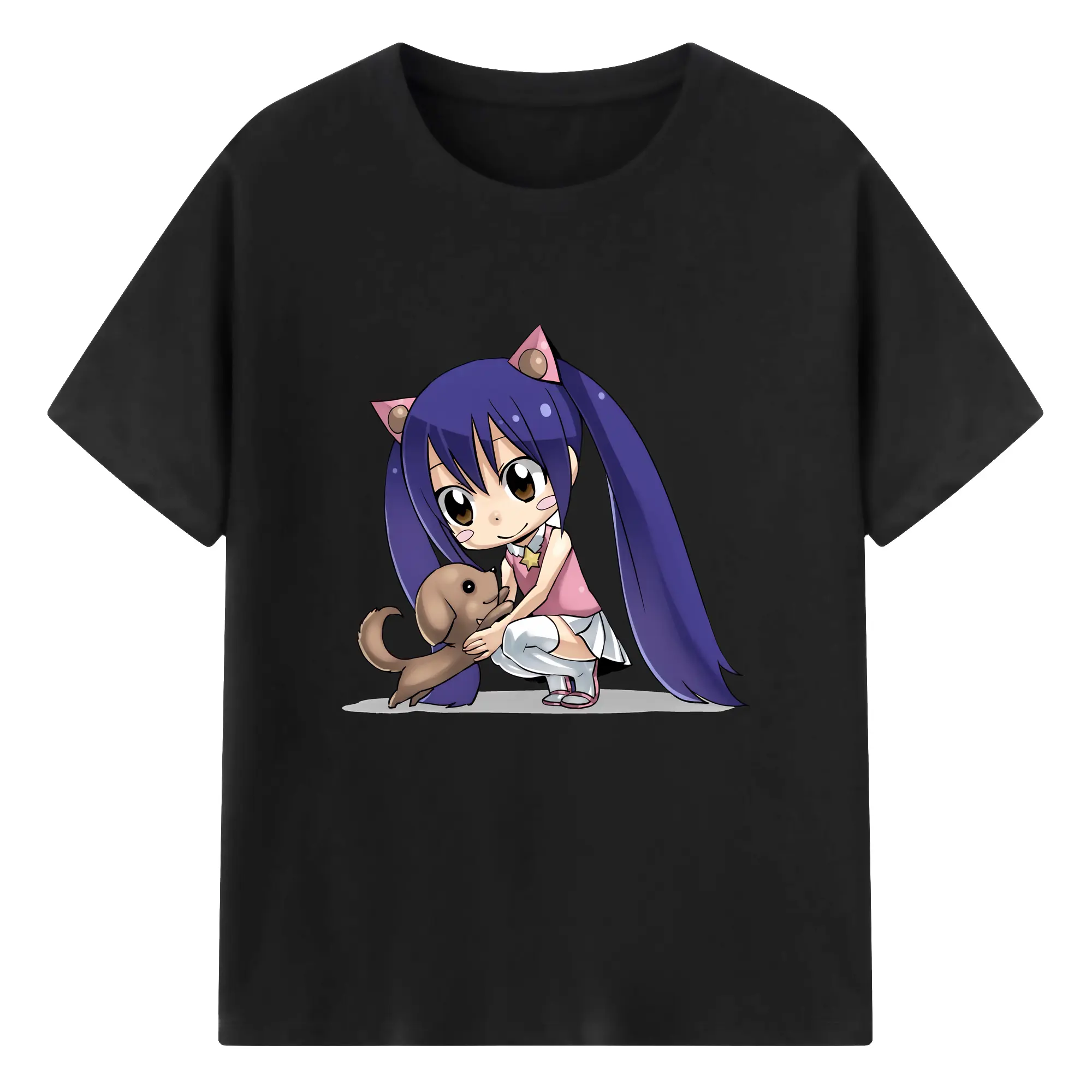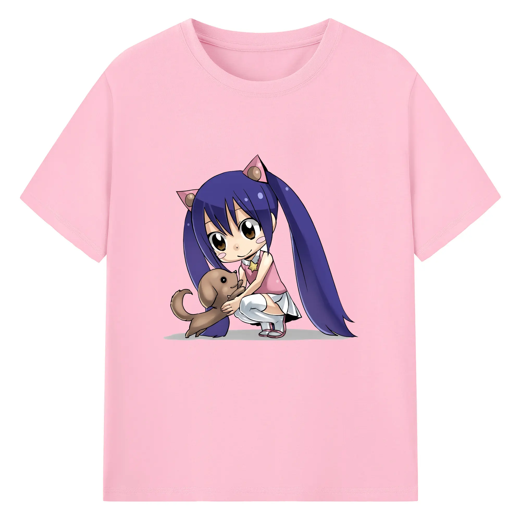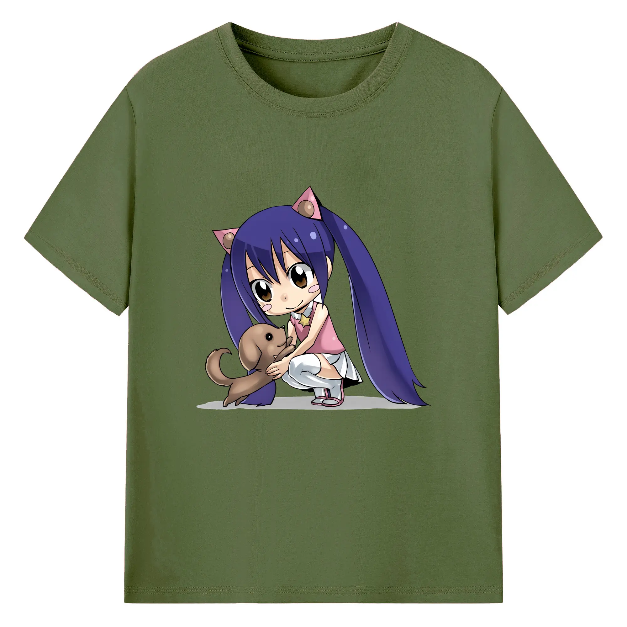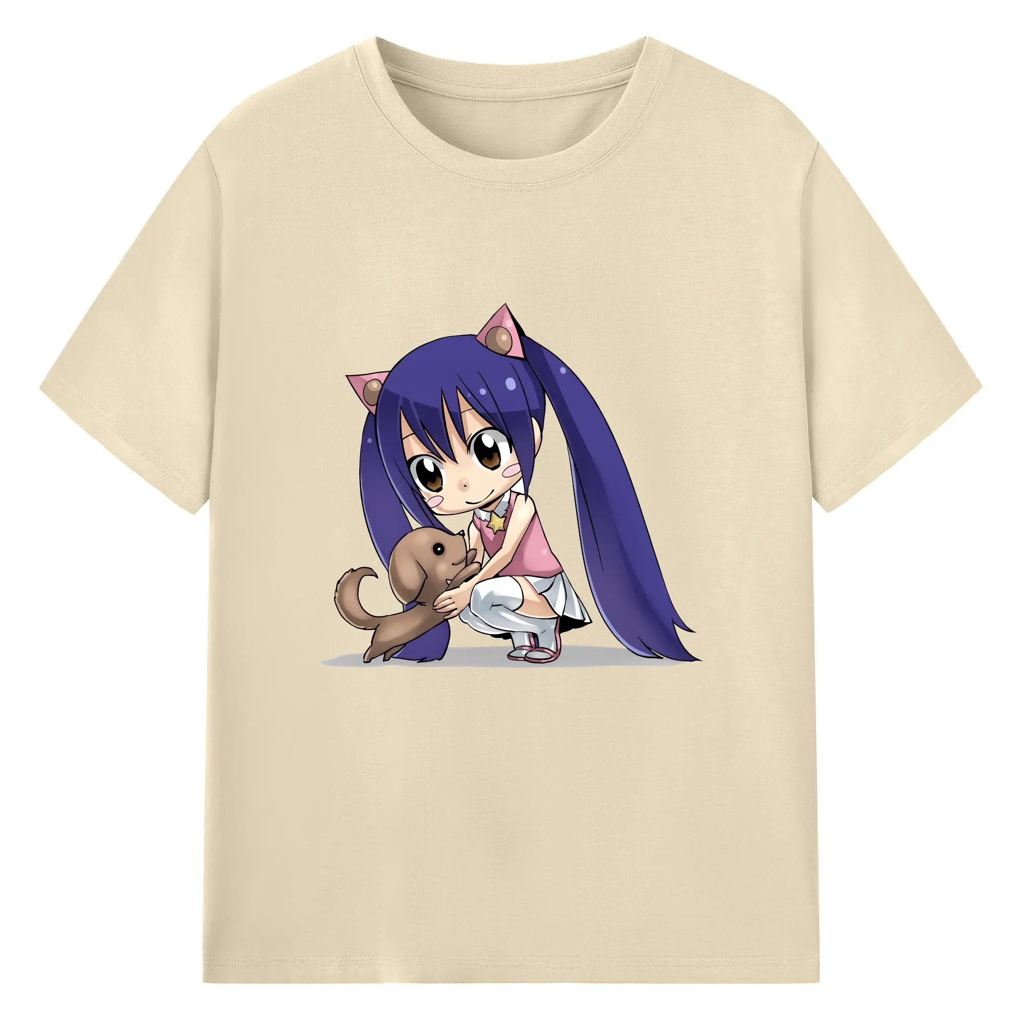 フェアリーテイル グッズ ウェンディ・マーベル - 綿100% 半袖Tシャツ ・ バックプリント ・ 快適 通気性 ・ 日常使い 散歩 スポーツ用