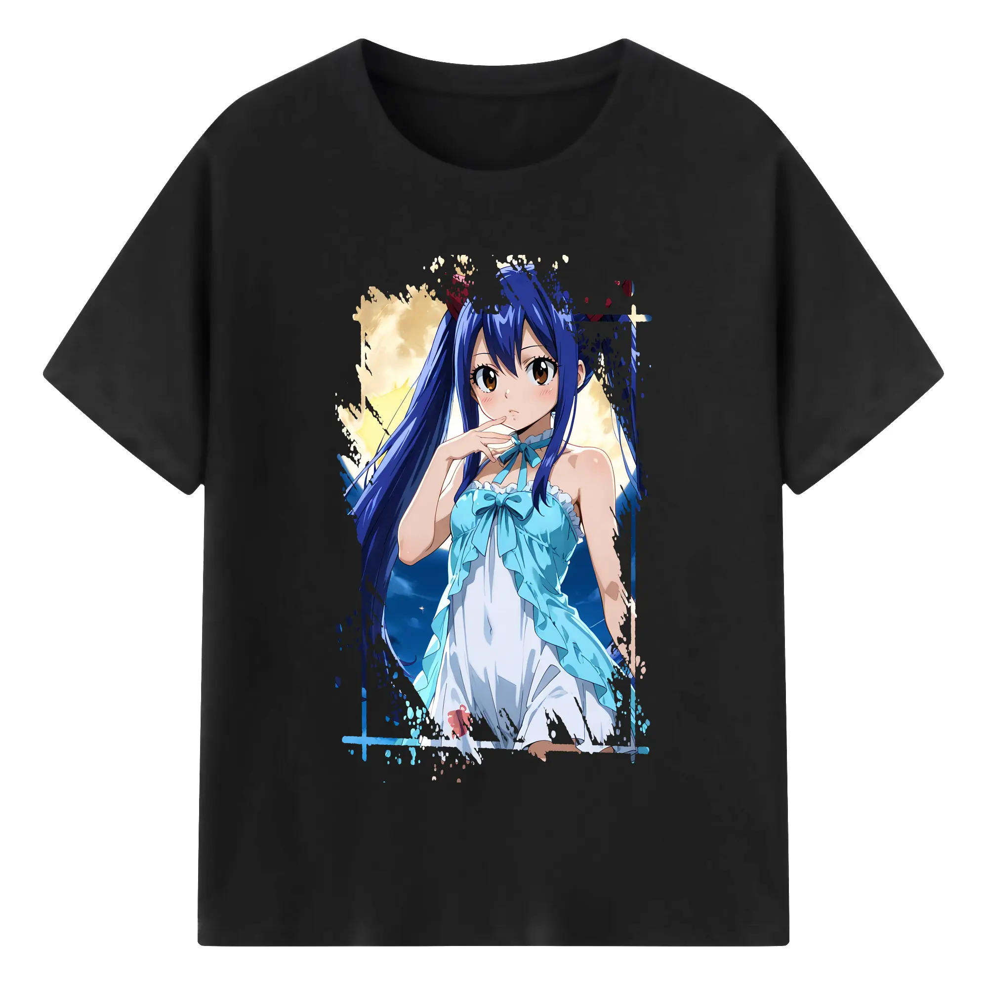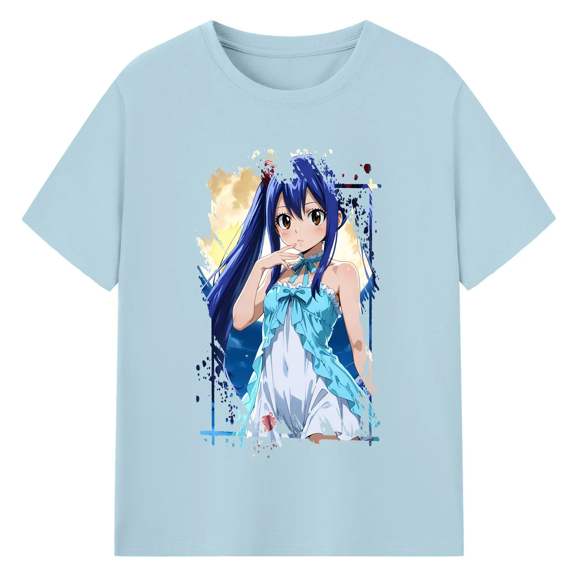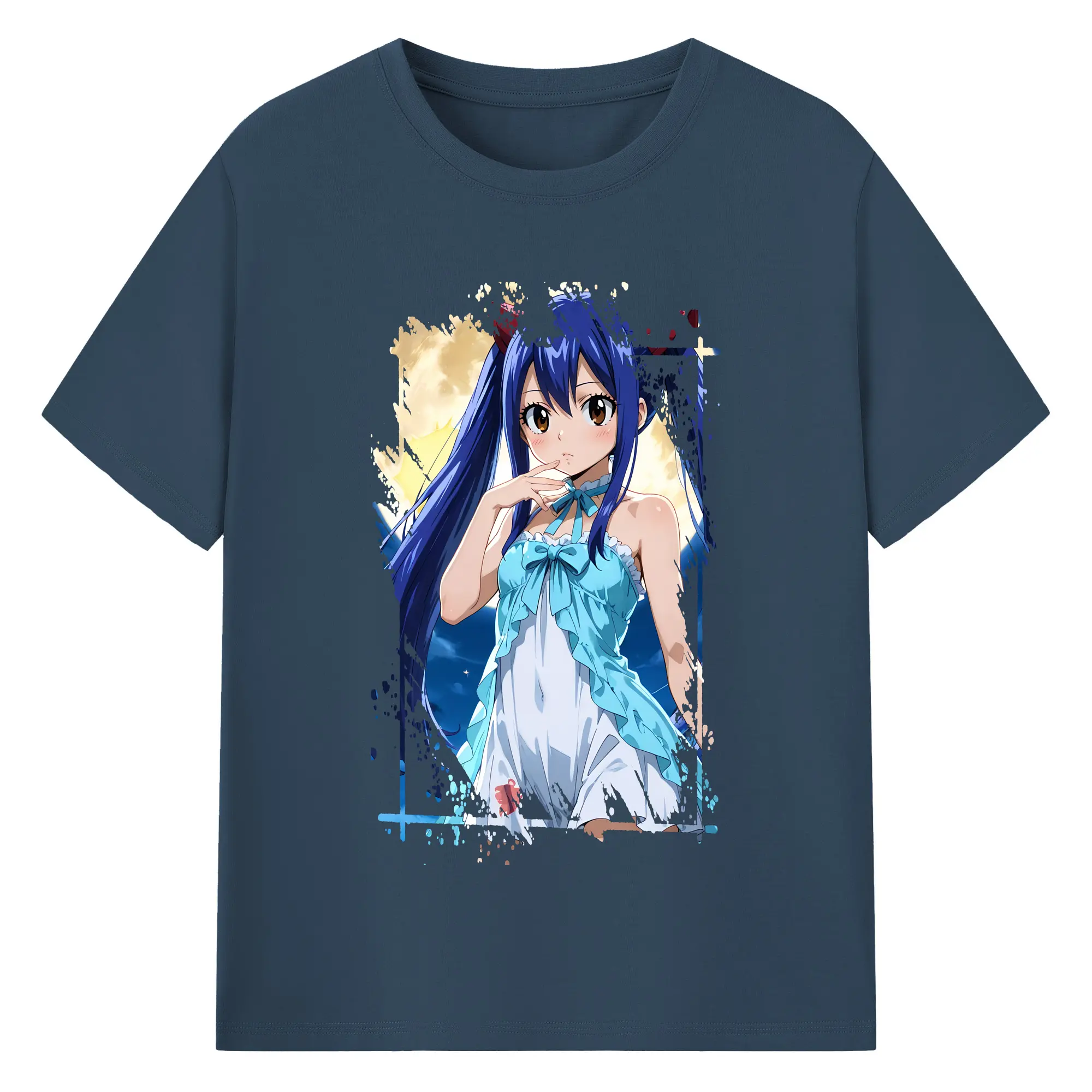 フェアリーテイル グッズ ウェンディ・マーベル - 綿100% 半袖Tシャツ ・ バックプリント ・ 快適 通気性 ・ 日常使い 散歩 スポーツ用