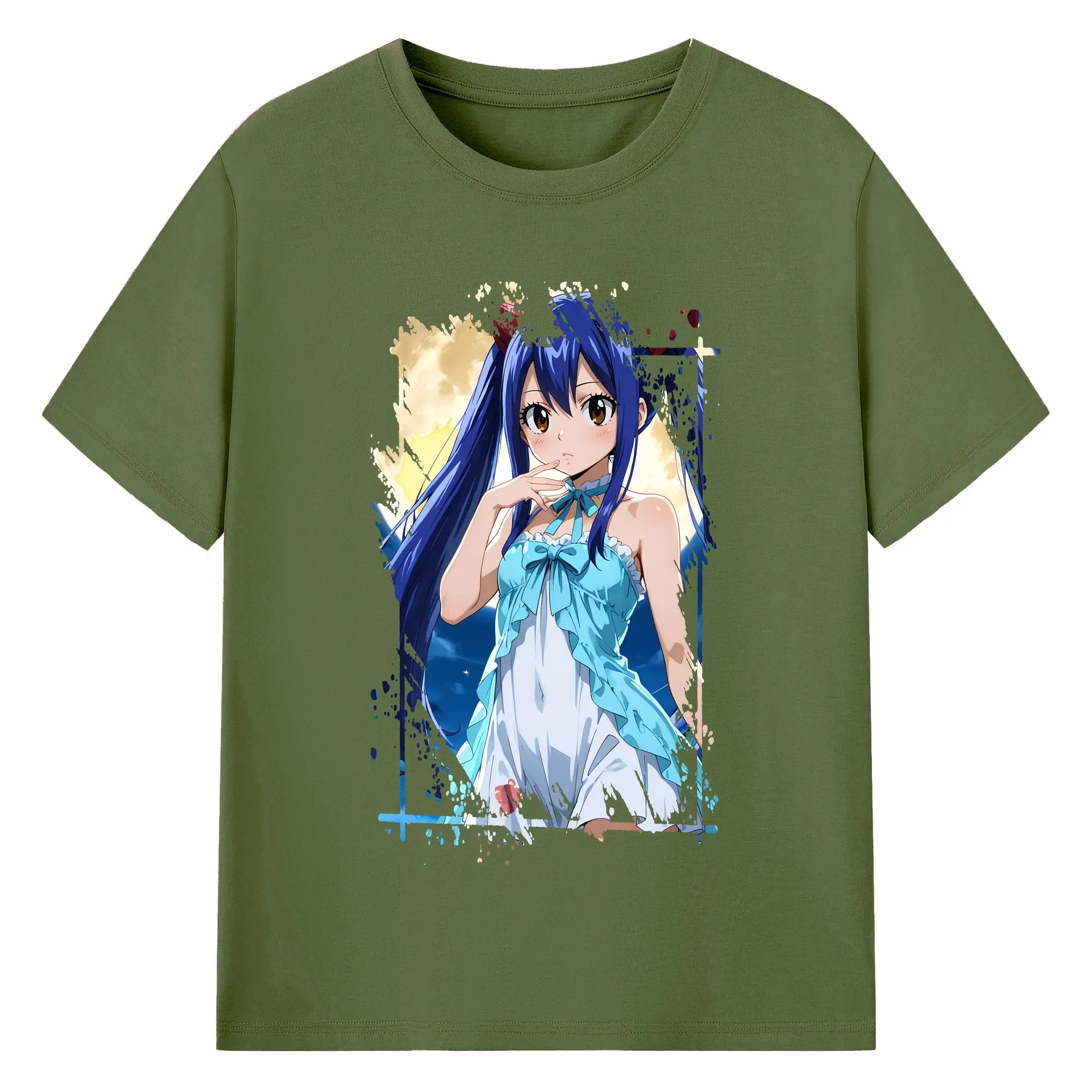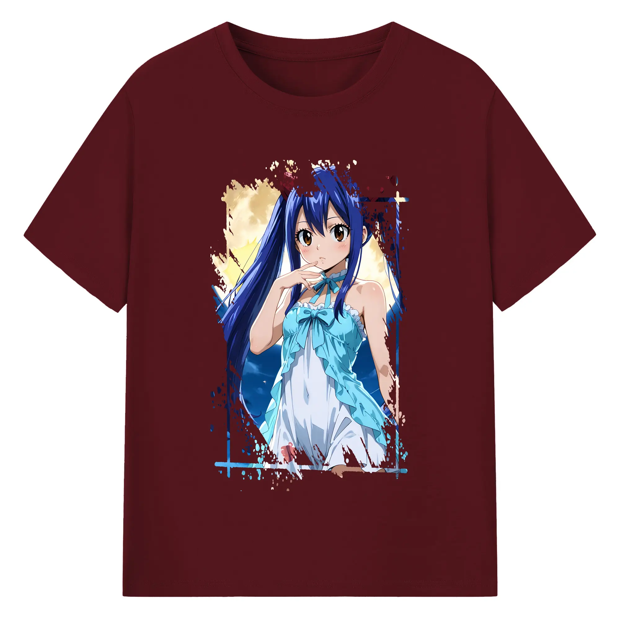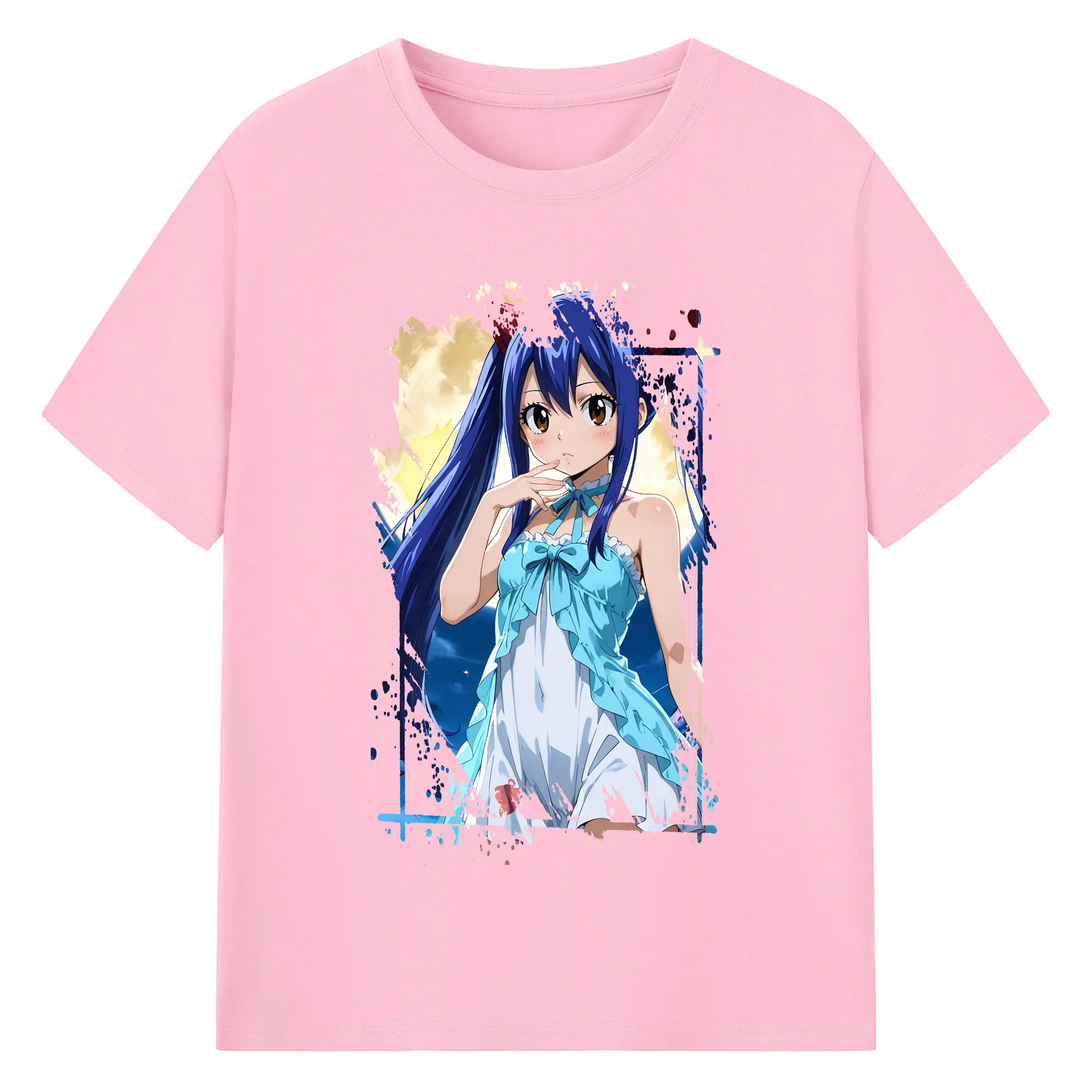 フェアリーテイル グッズ ウェンディ・マーベル - 綿100% 半袖Tシャツ ・ バックプリント ・ 快適 通気性 ・ 日常使い 散歩 スポーツ用